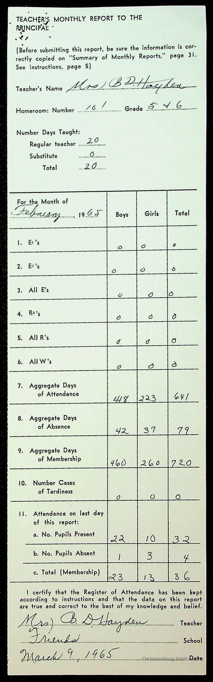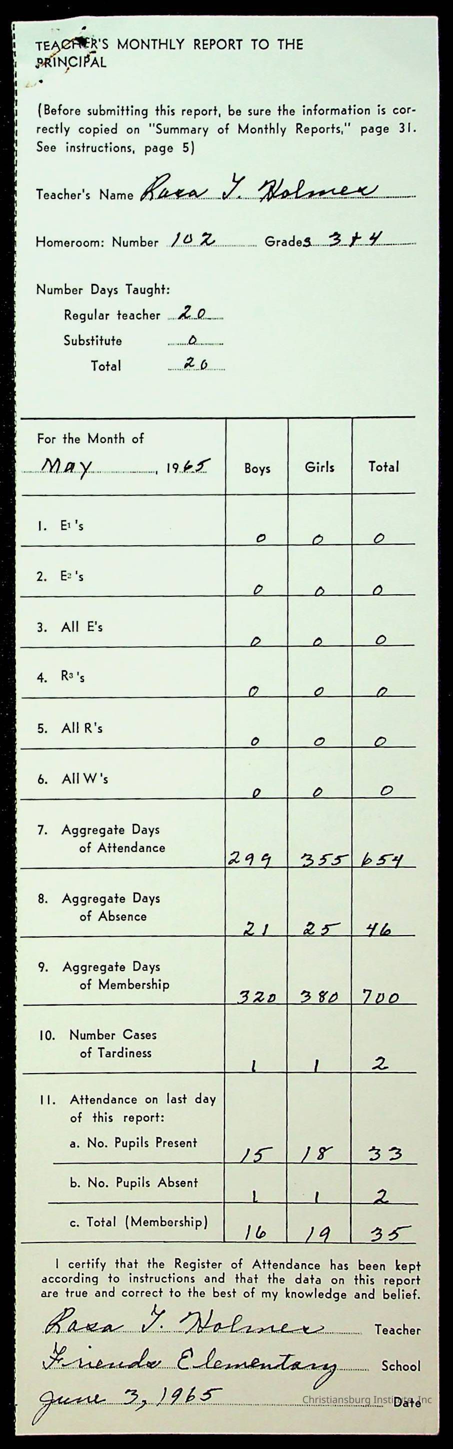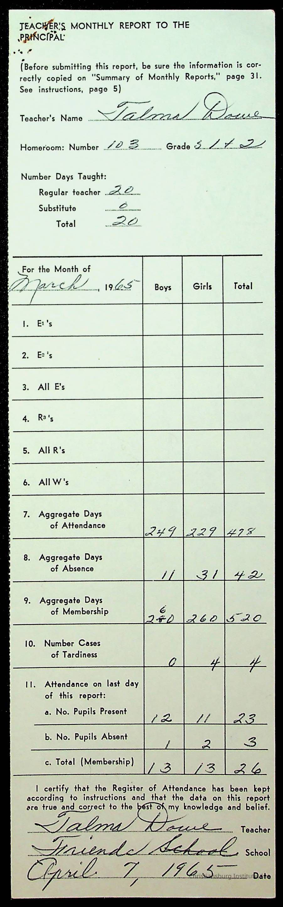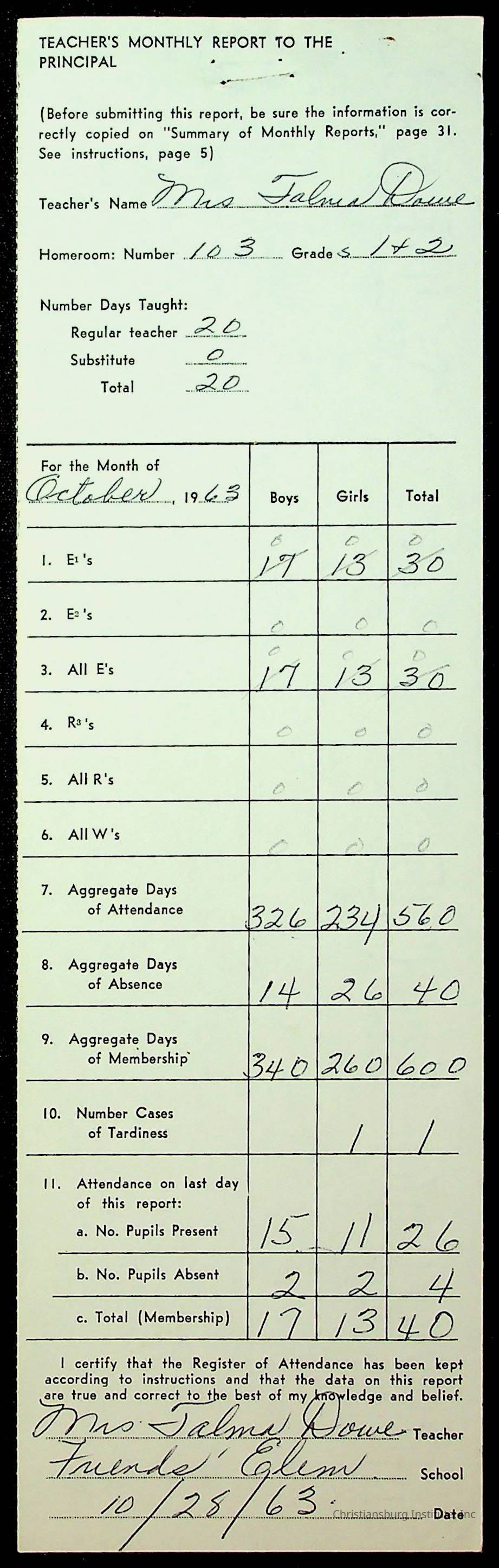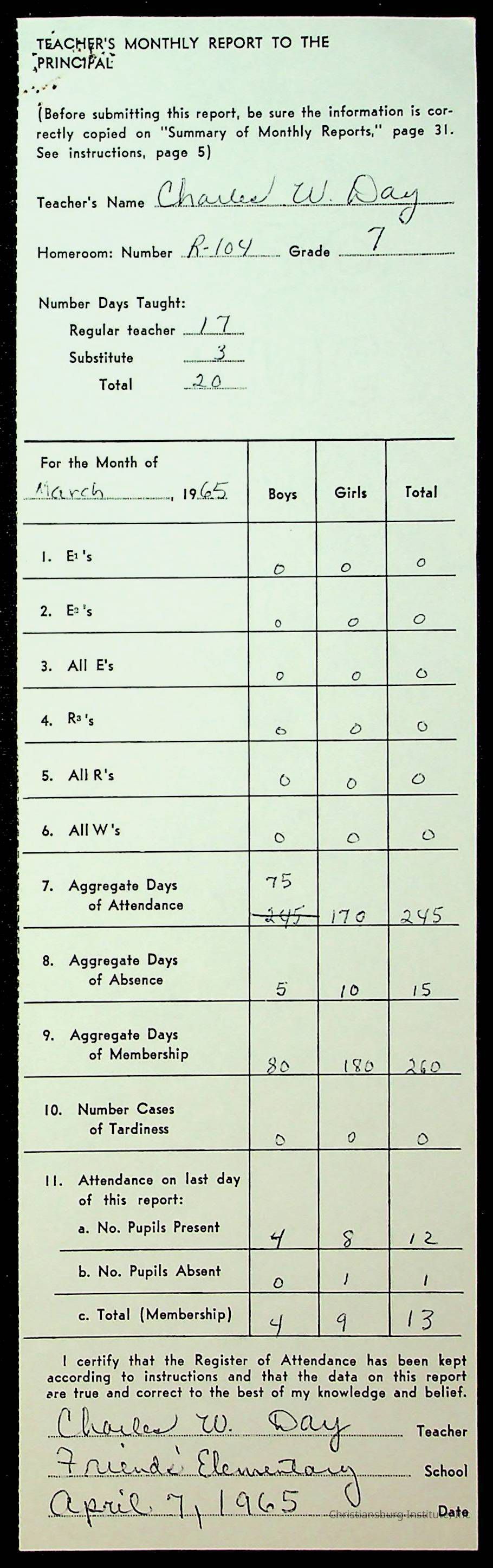 An archive of monthly principal reports for Christiansburg Institute and Friends Elementary School from 1963 through 1964.