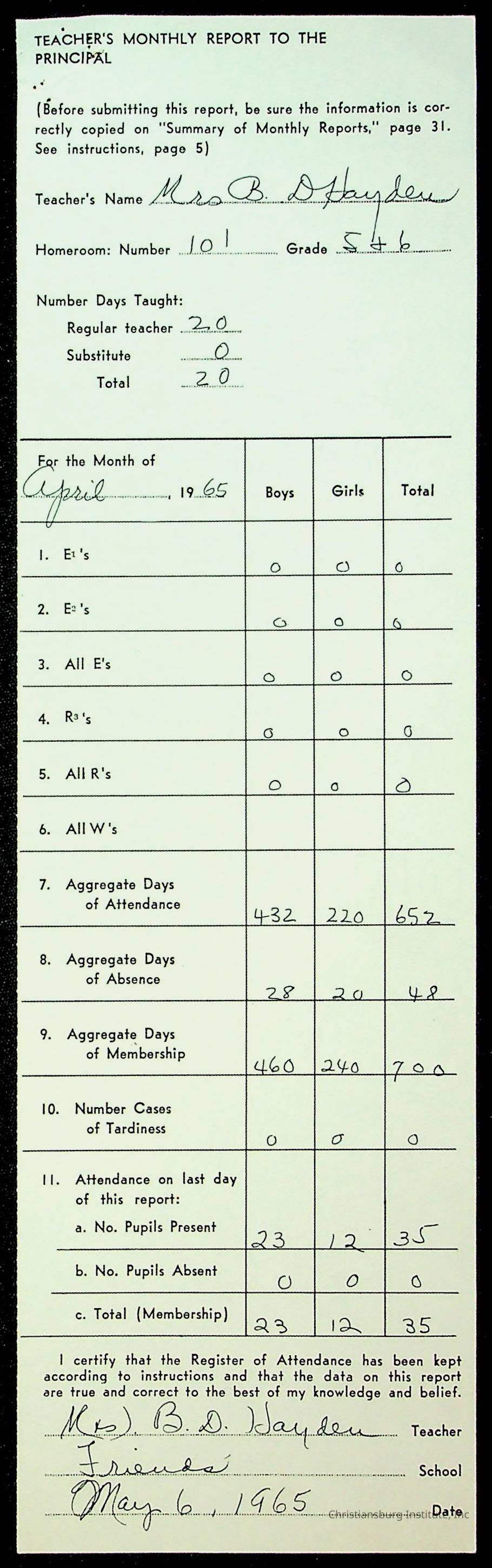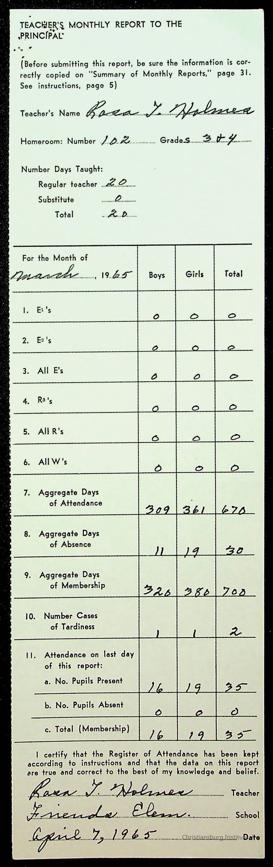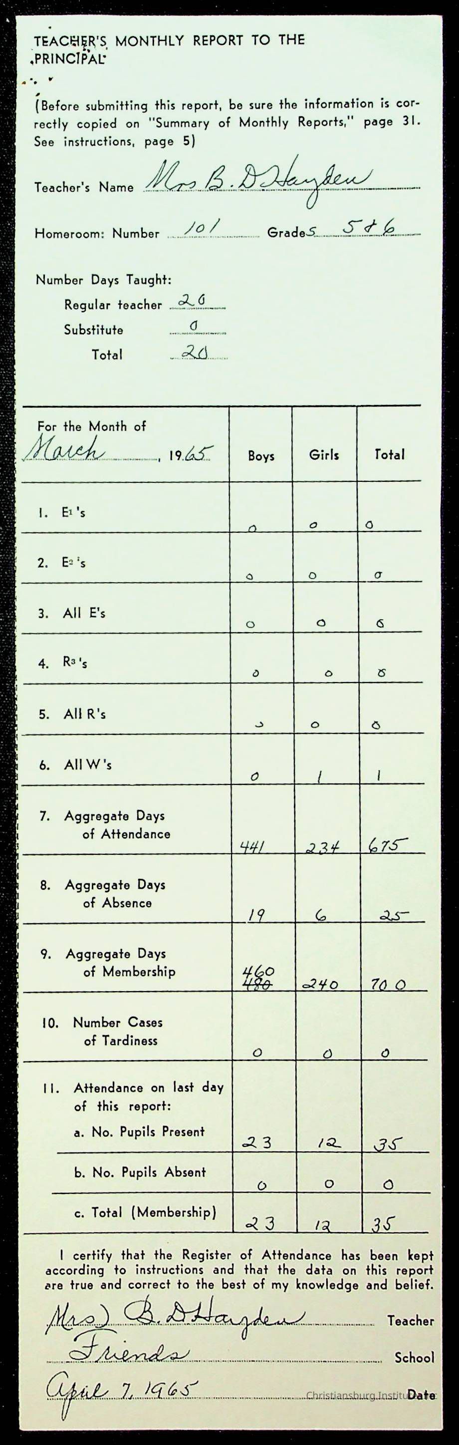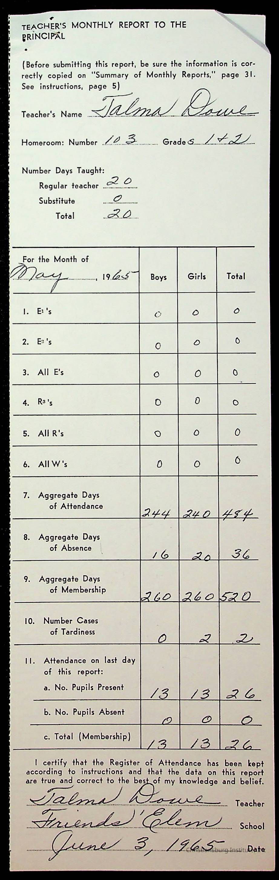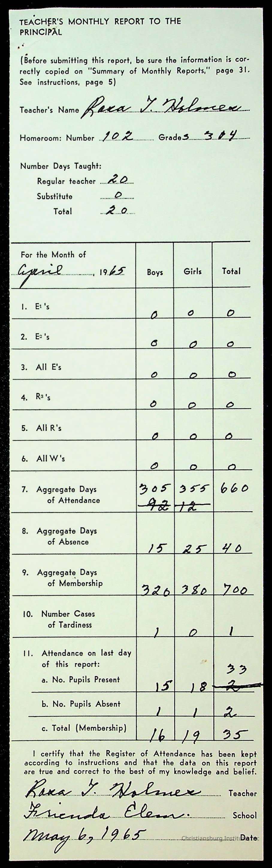 An archive of monthly principal reports for Christiansburg Institute and Friends Elementary School from 1963 through 1964.