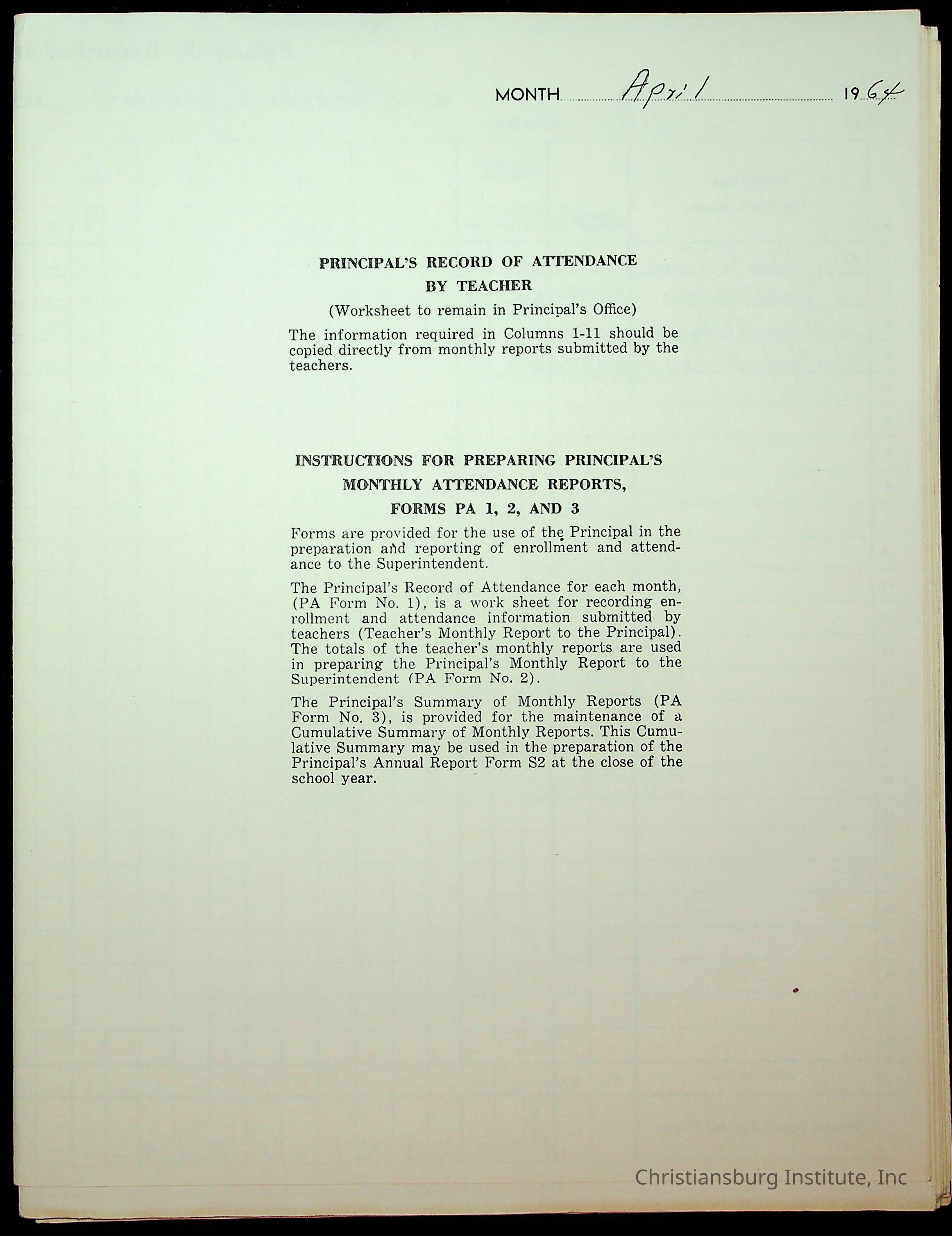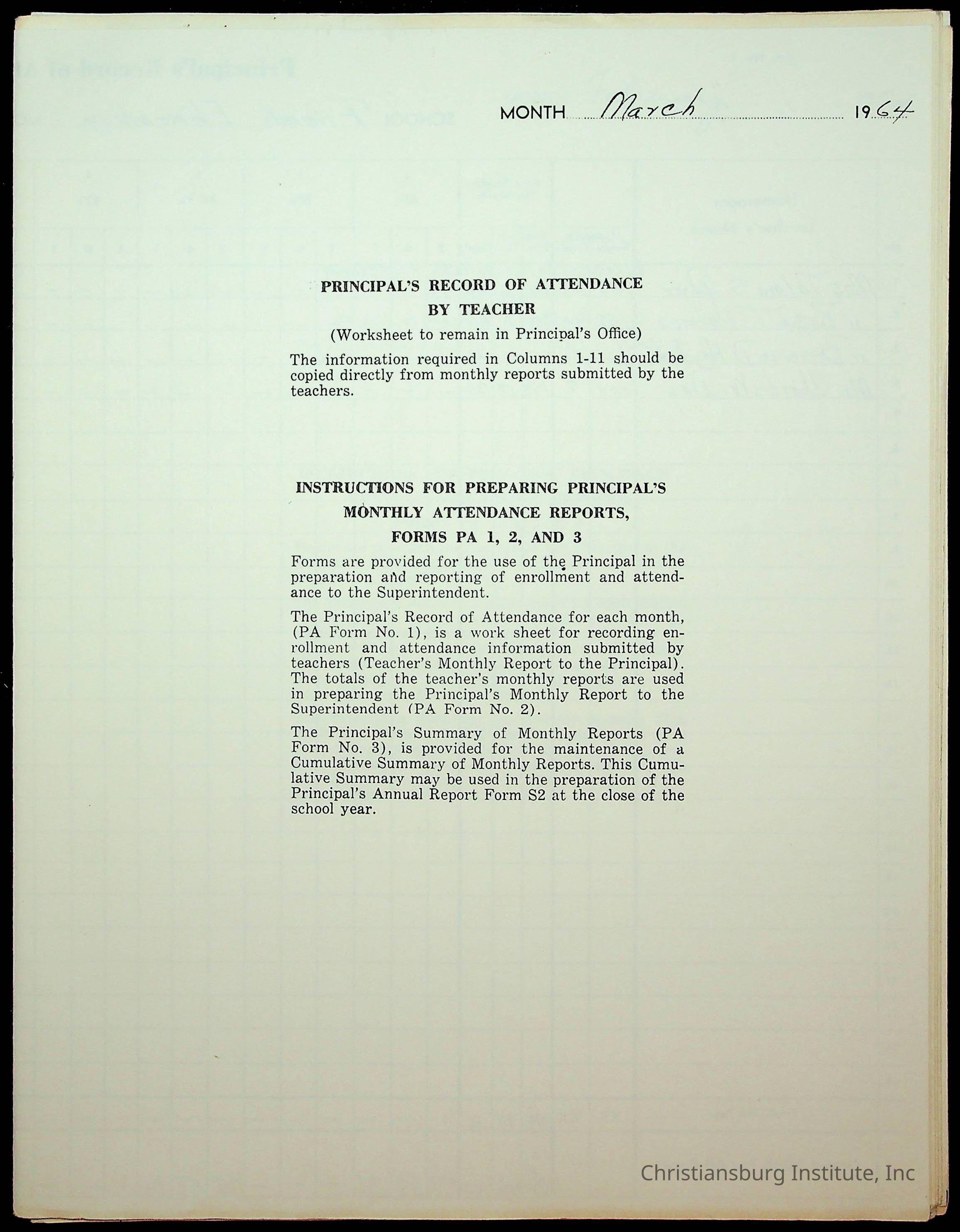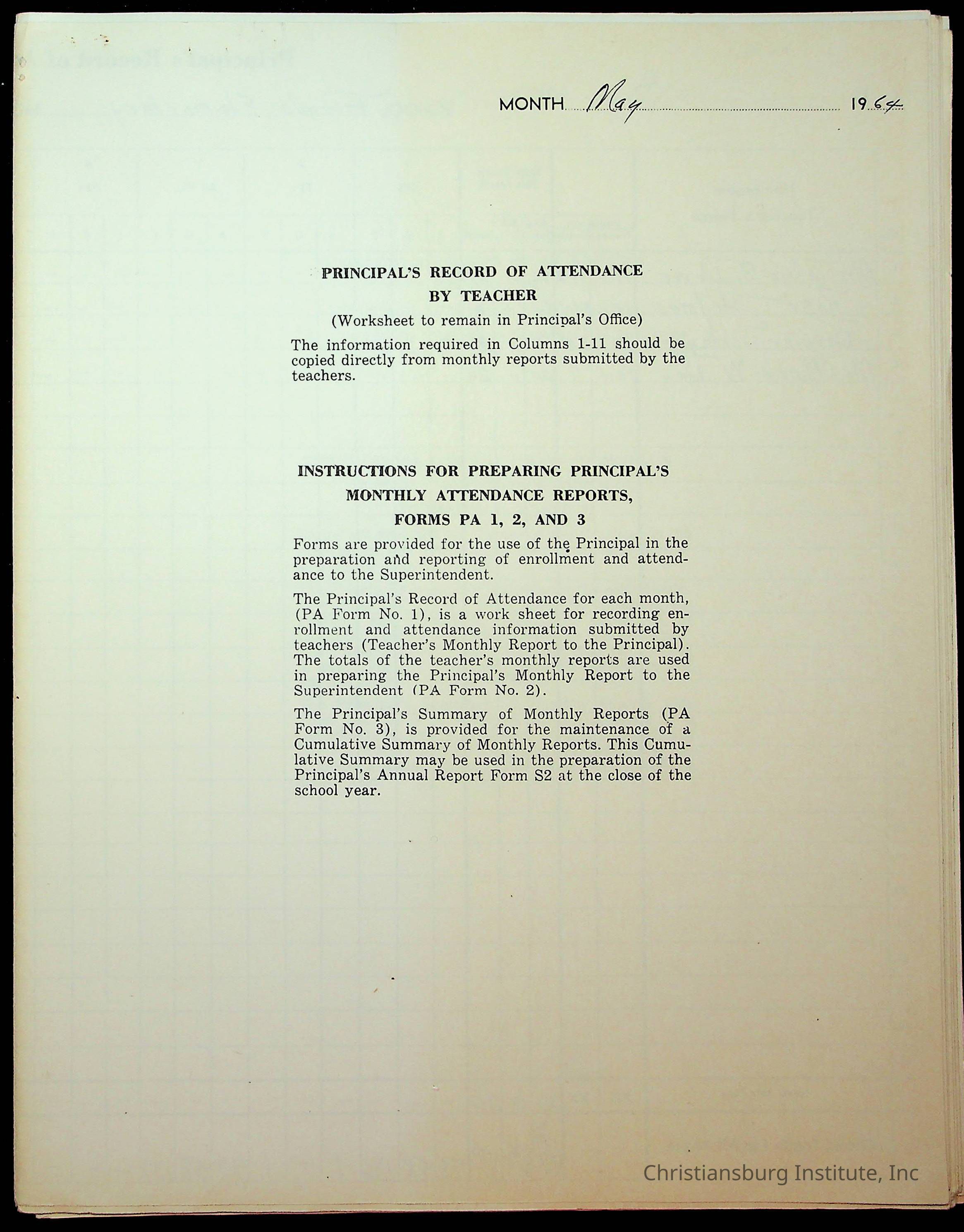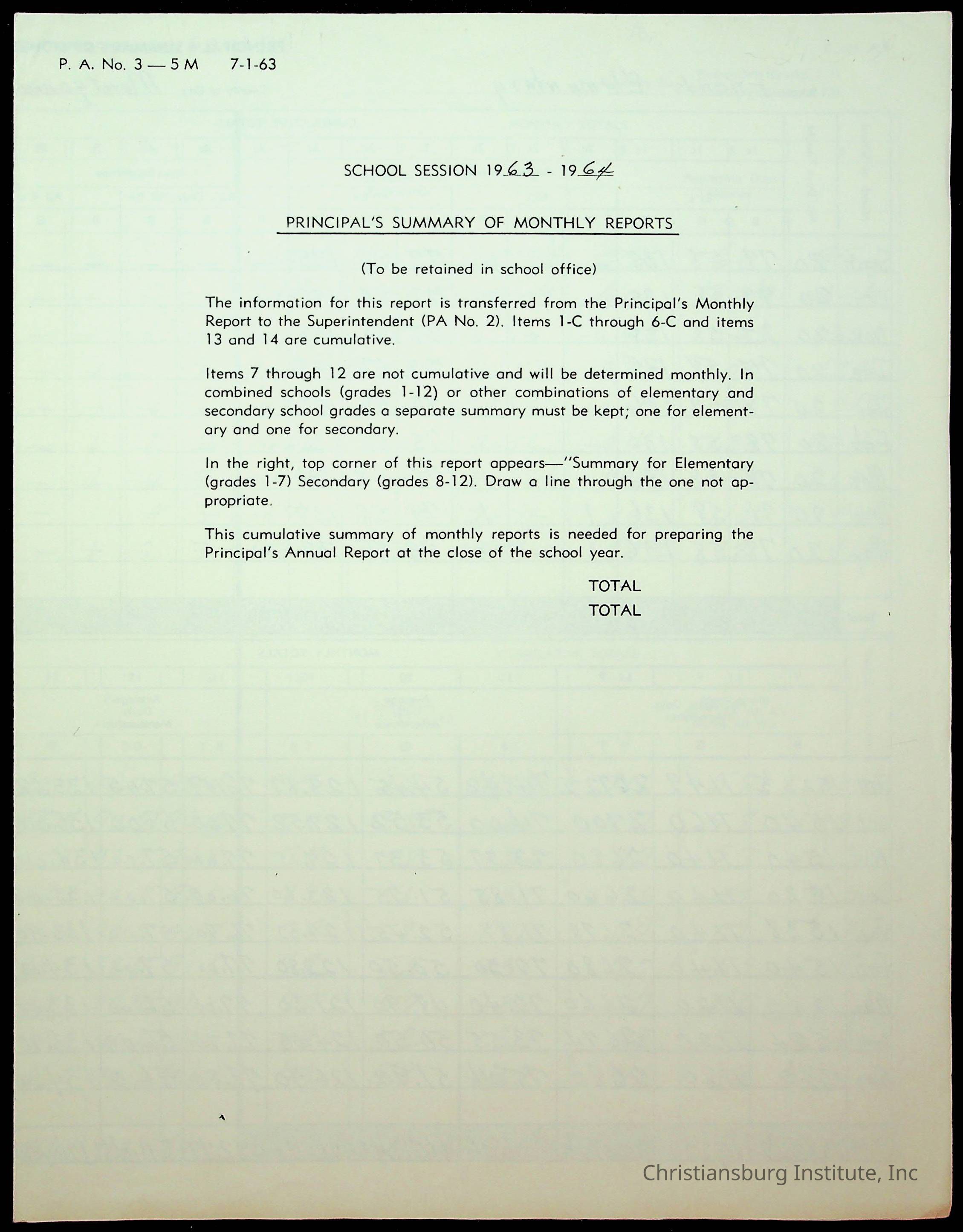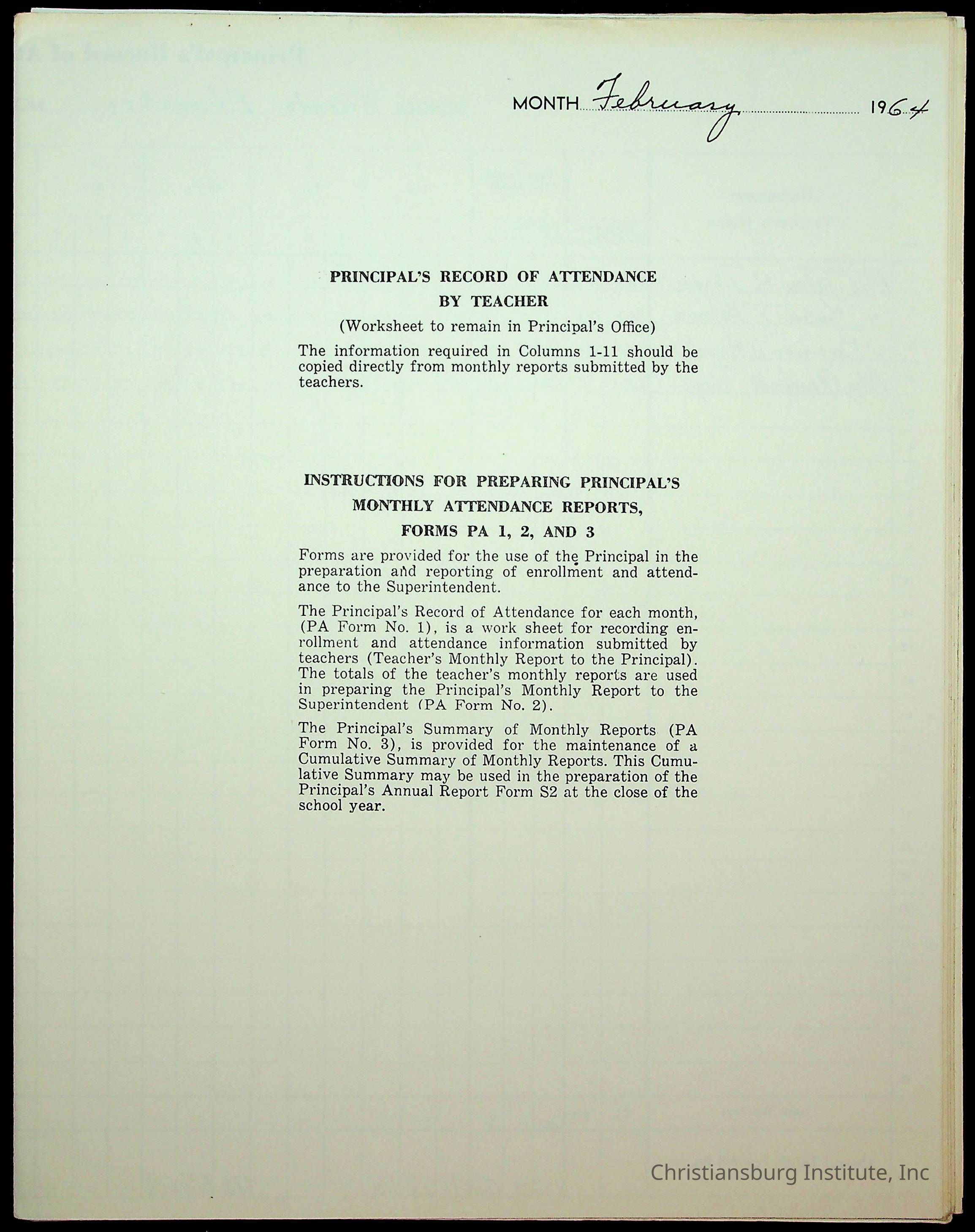 Monthly Principal Reports, 1963-1964