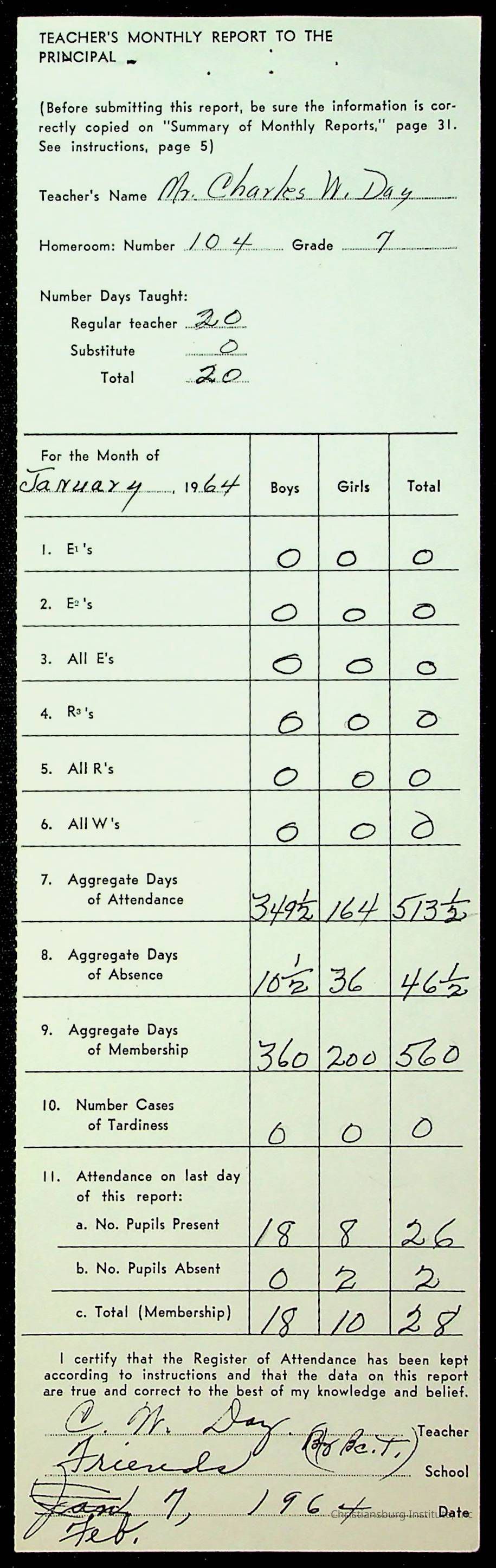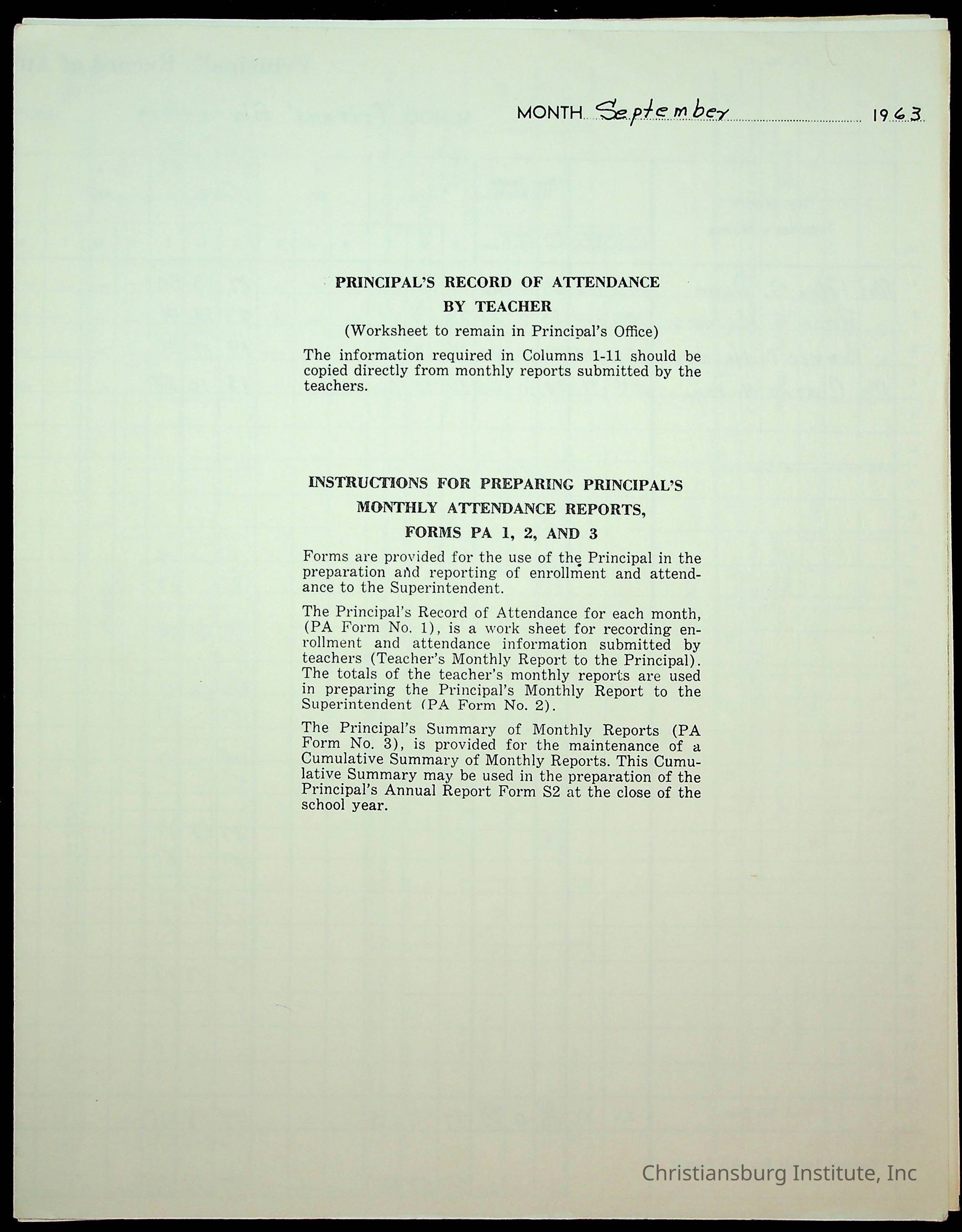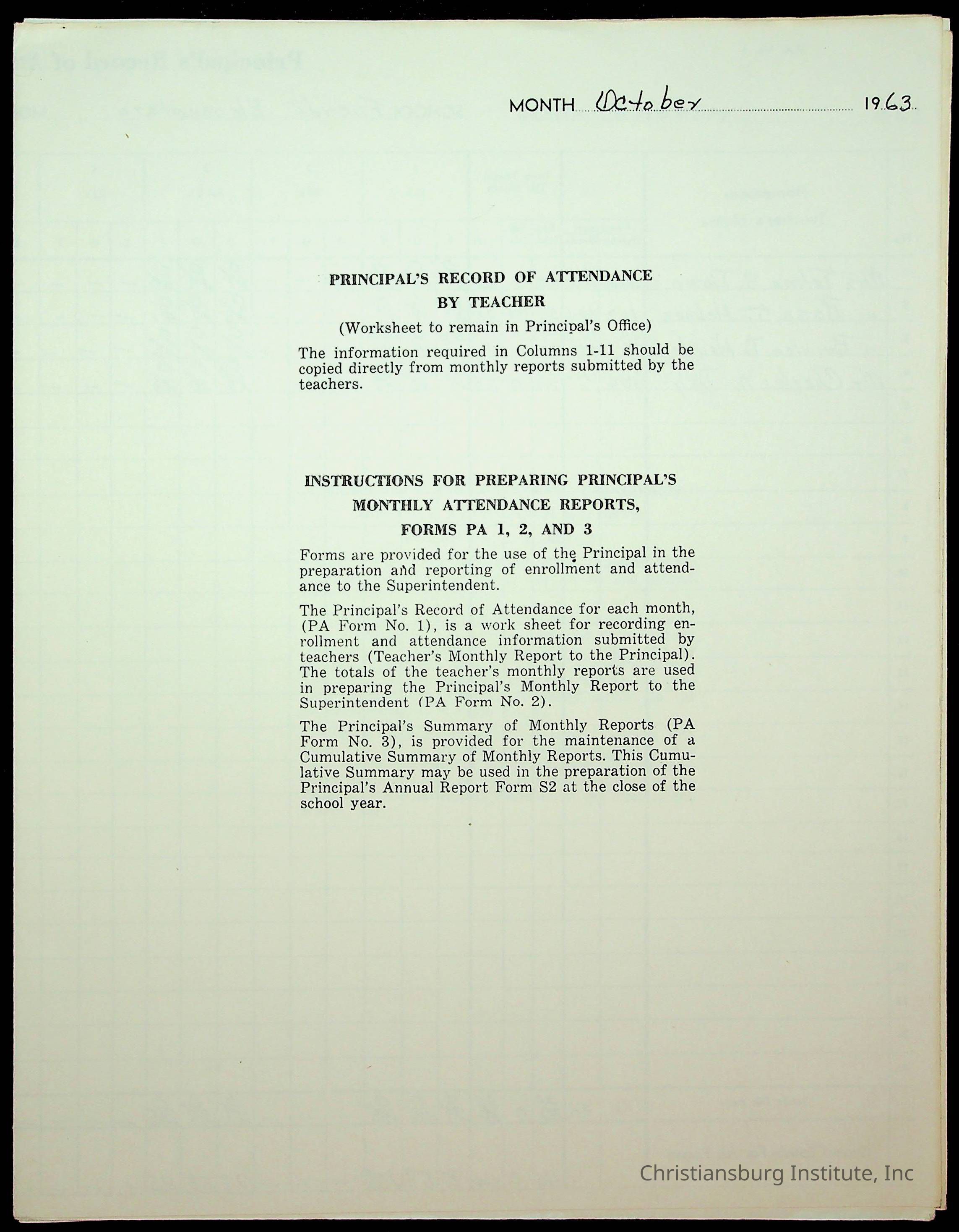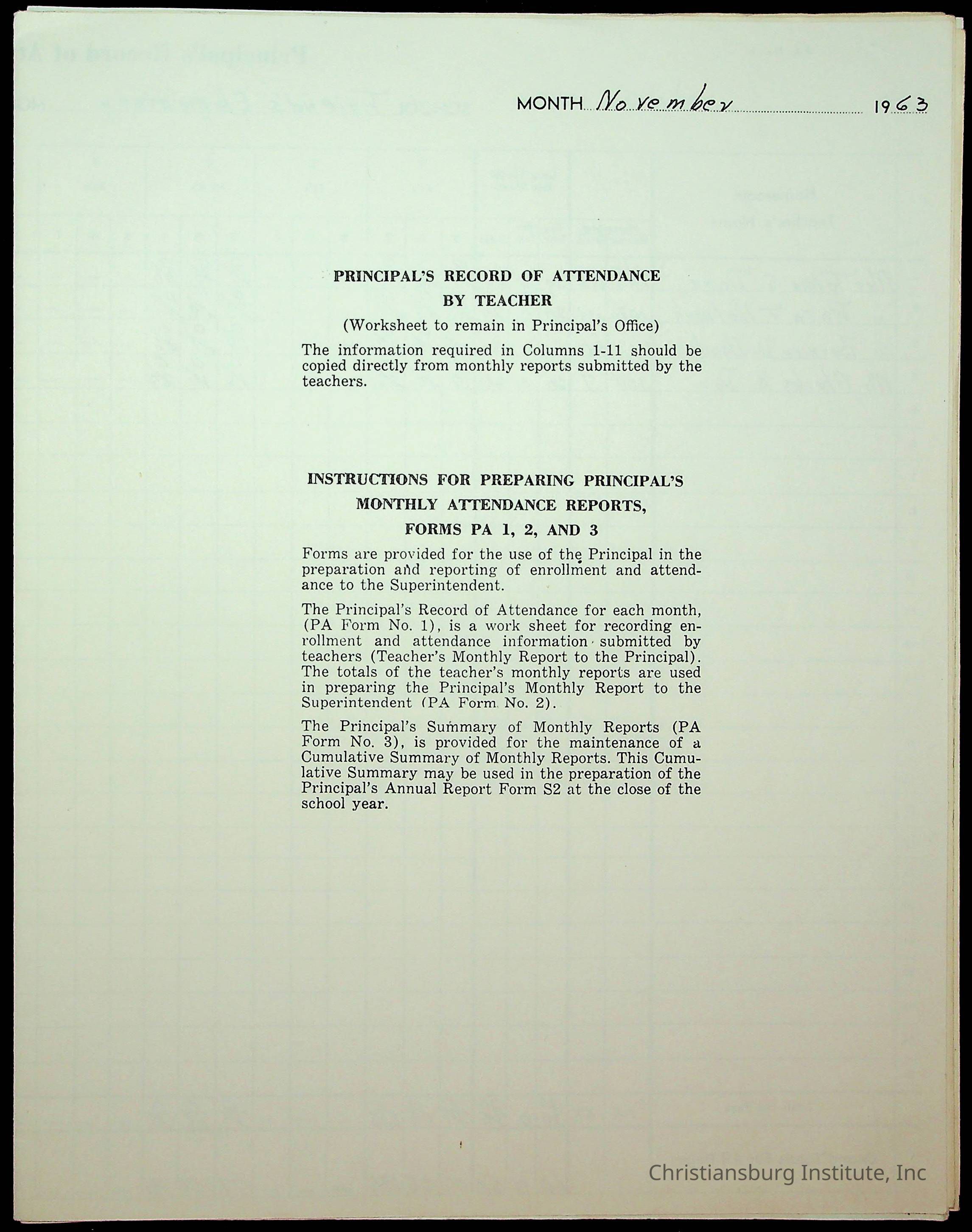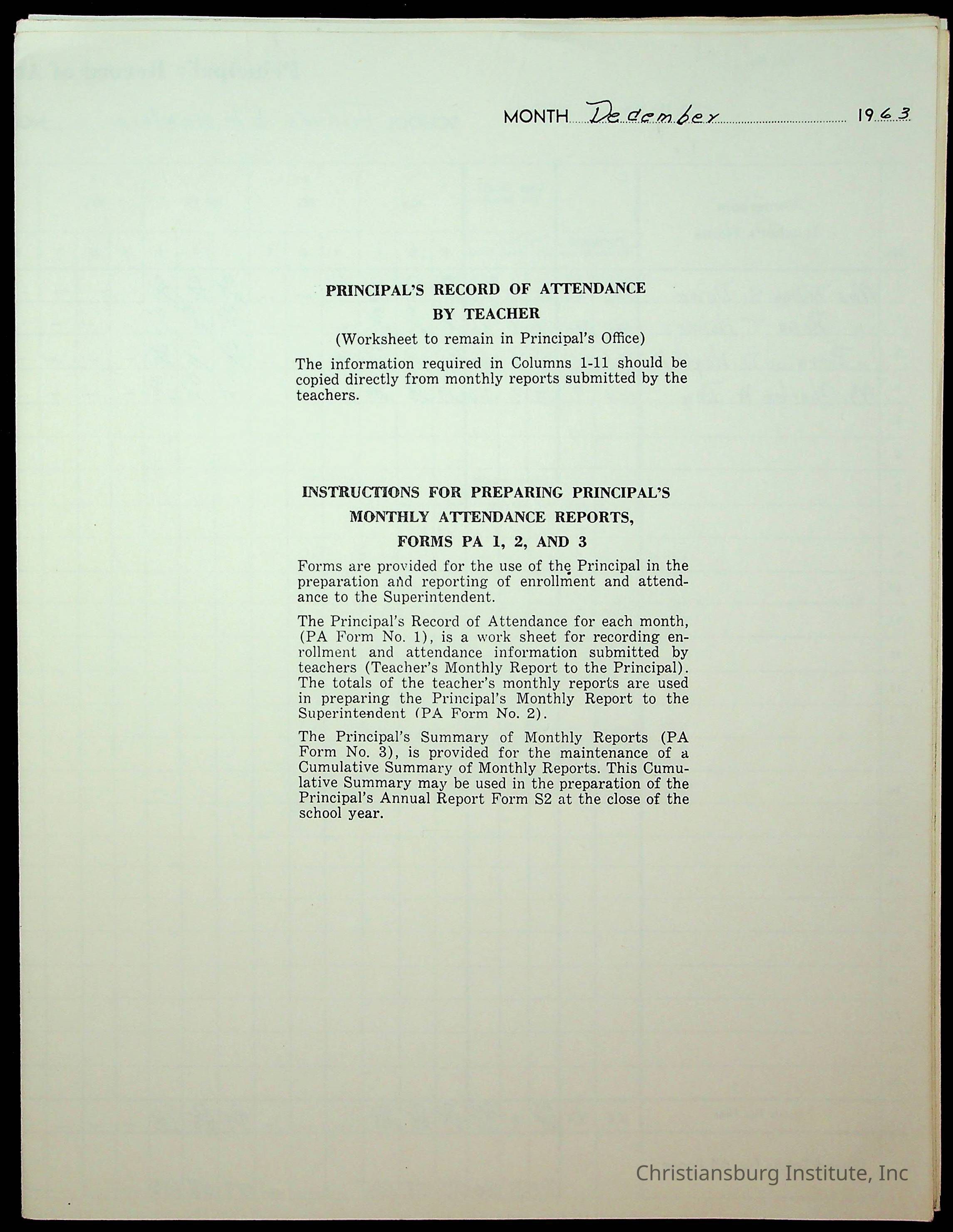 Monthly Principal Reports, 1963-1964