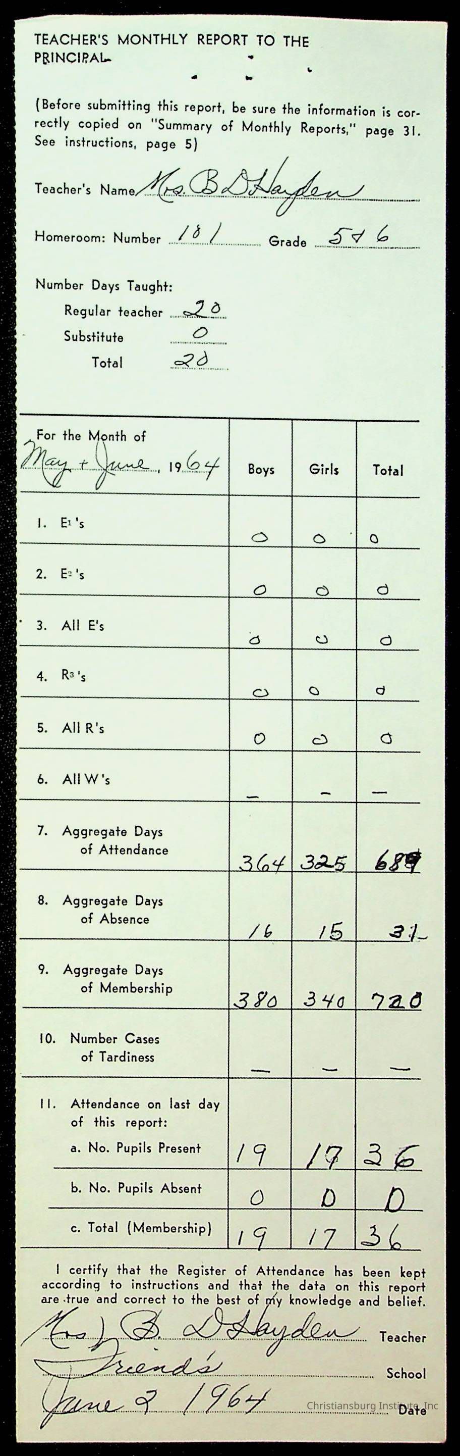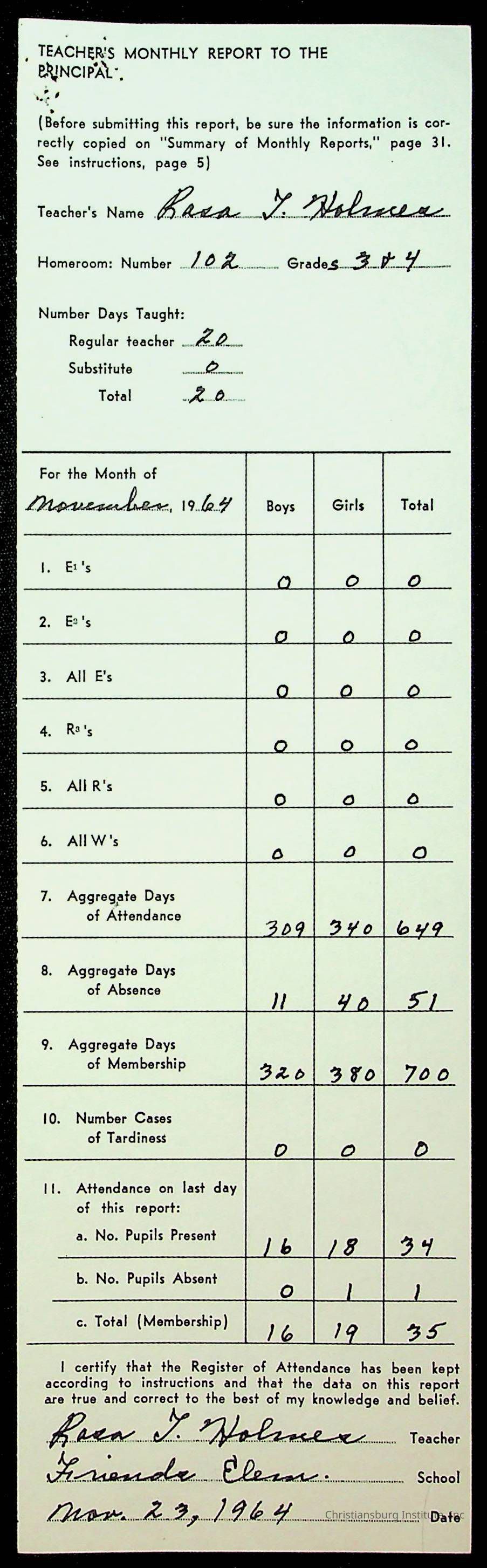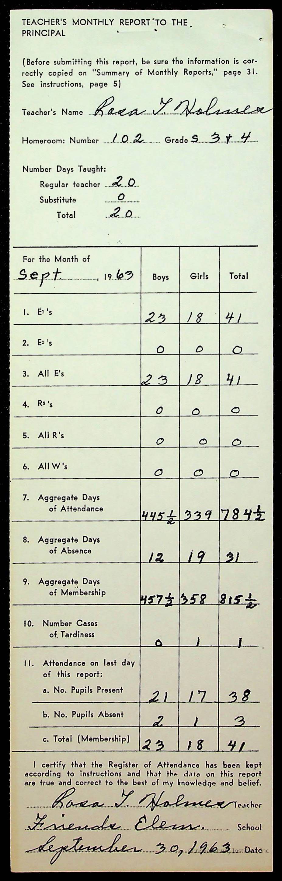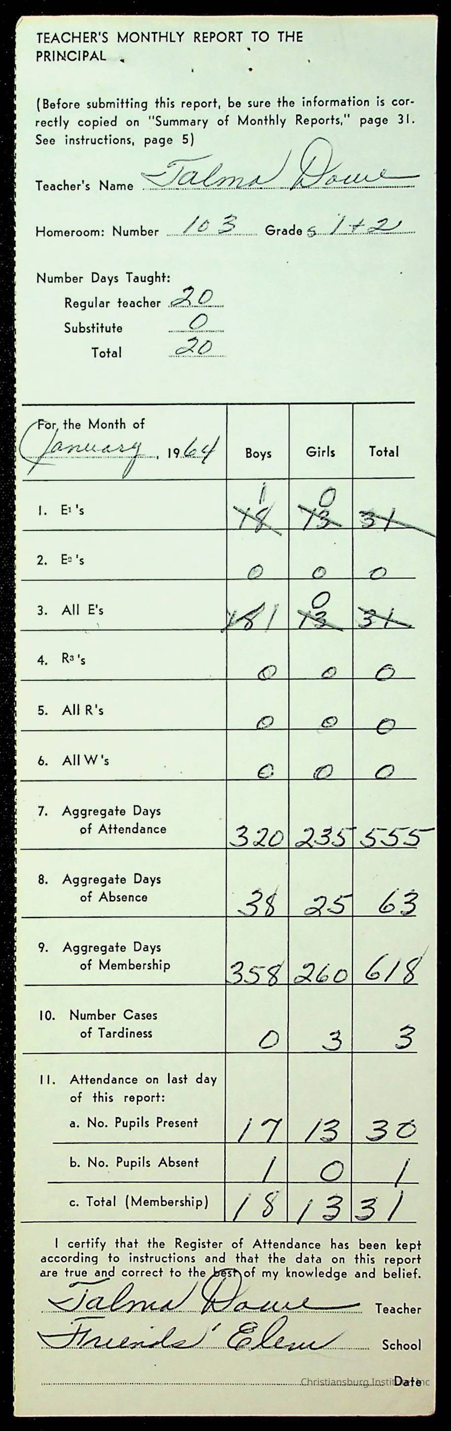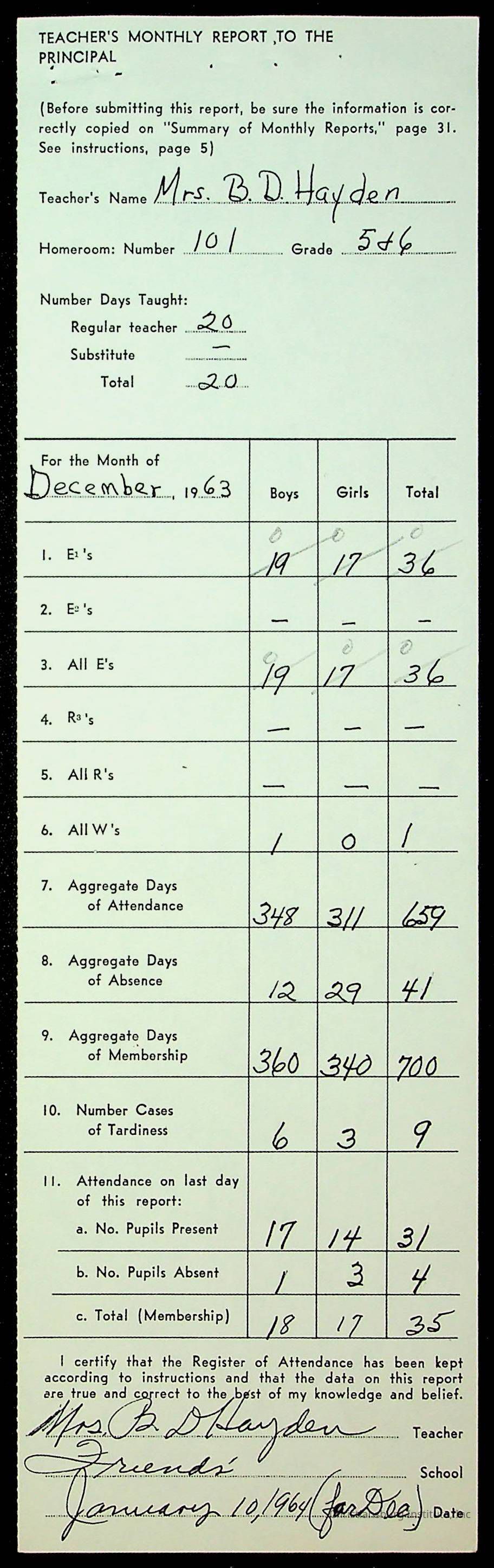 Monthly Principal Reports, 1963-1964