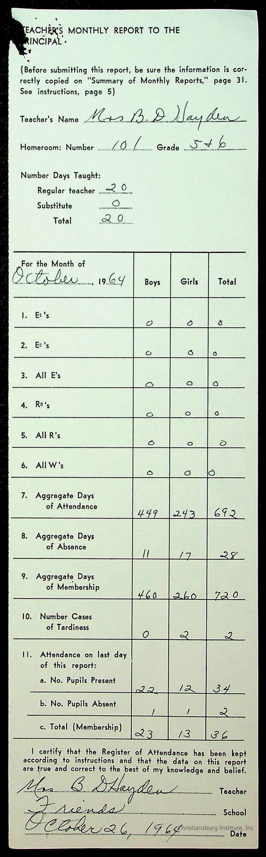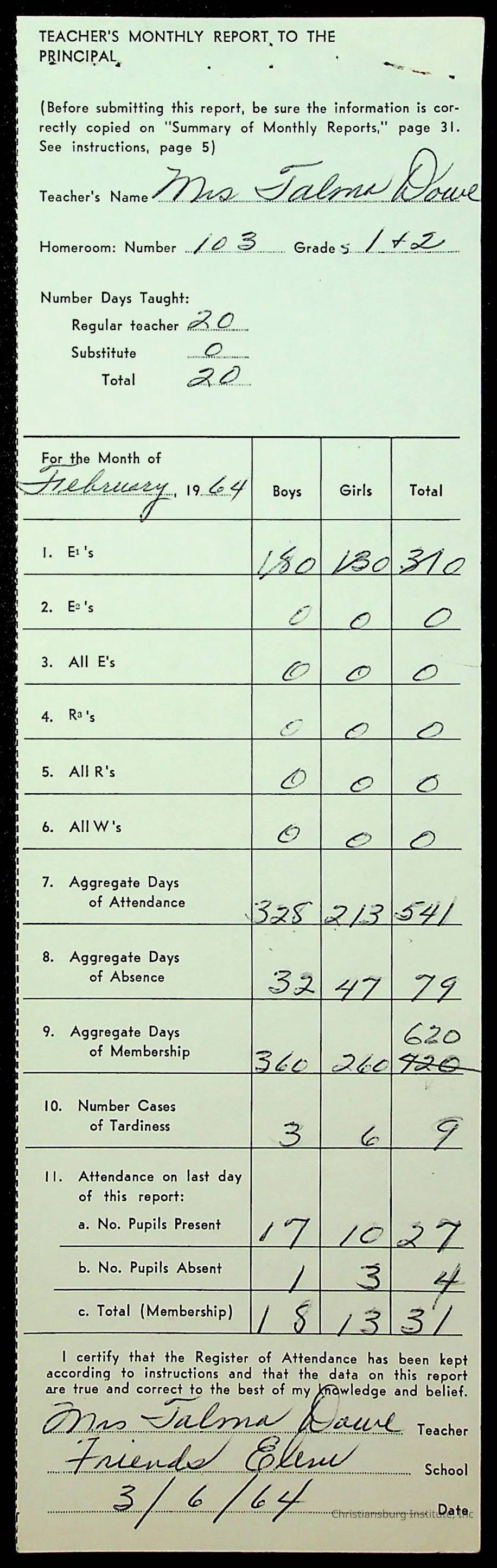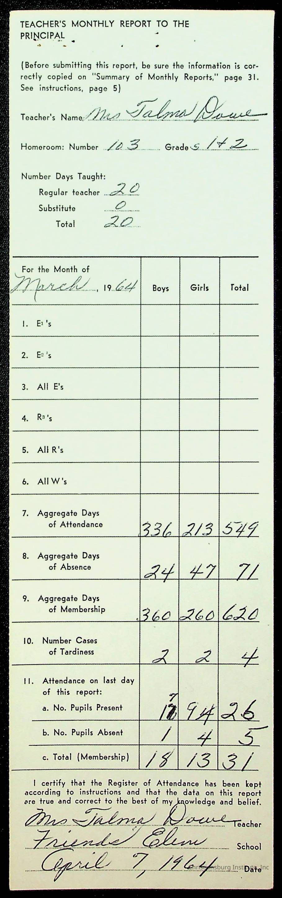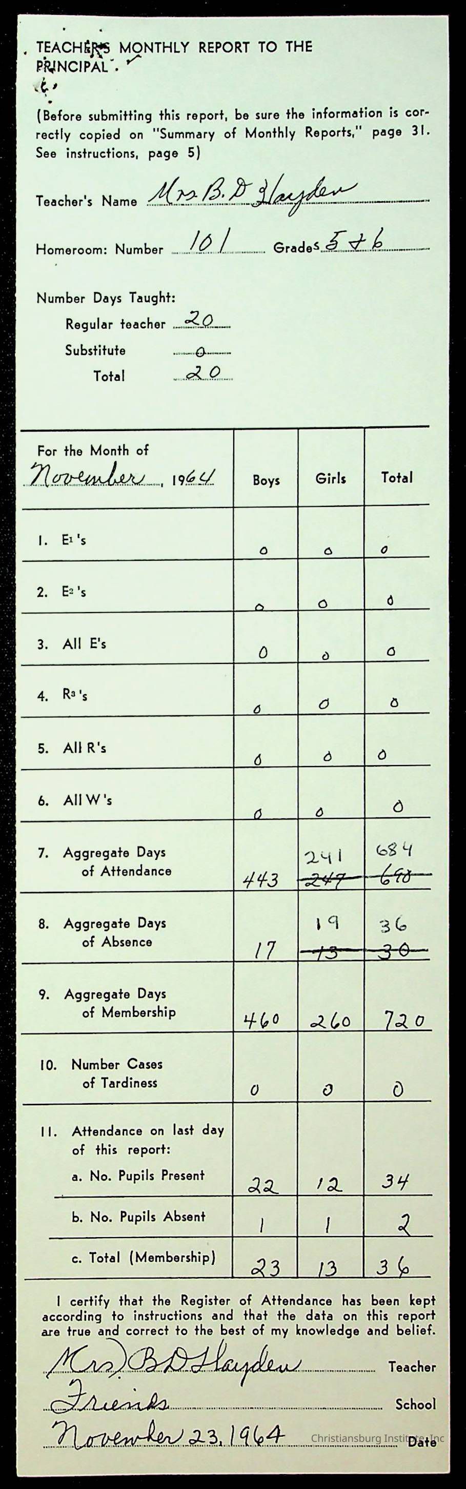 Monthly Principal Reports, 1963-1964