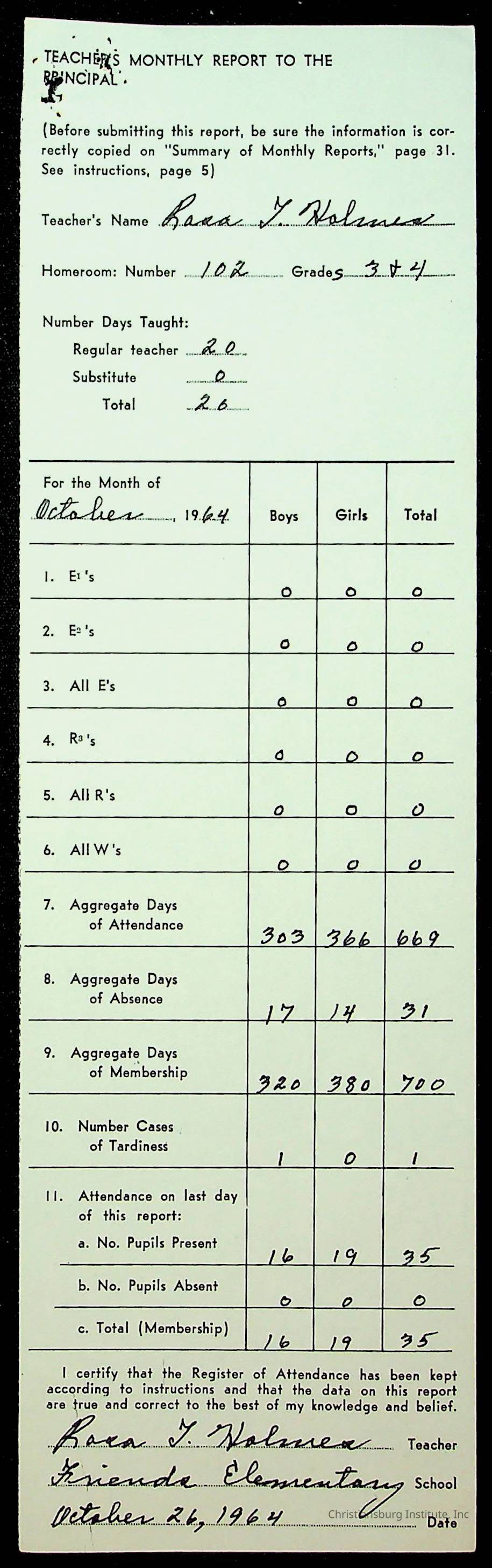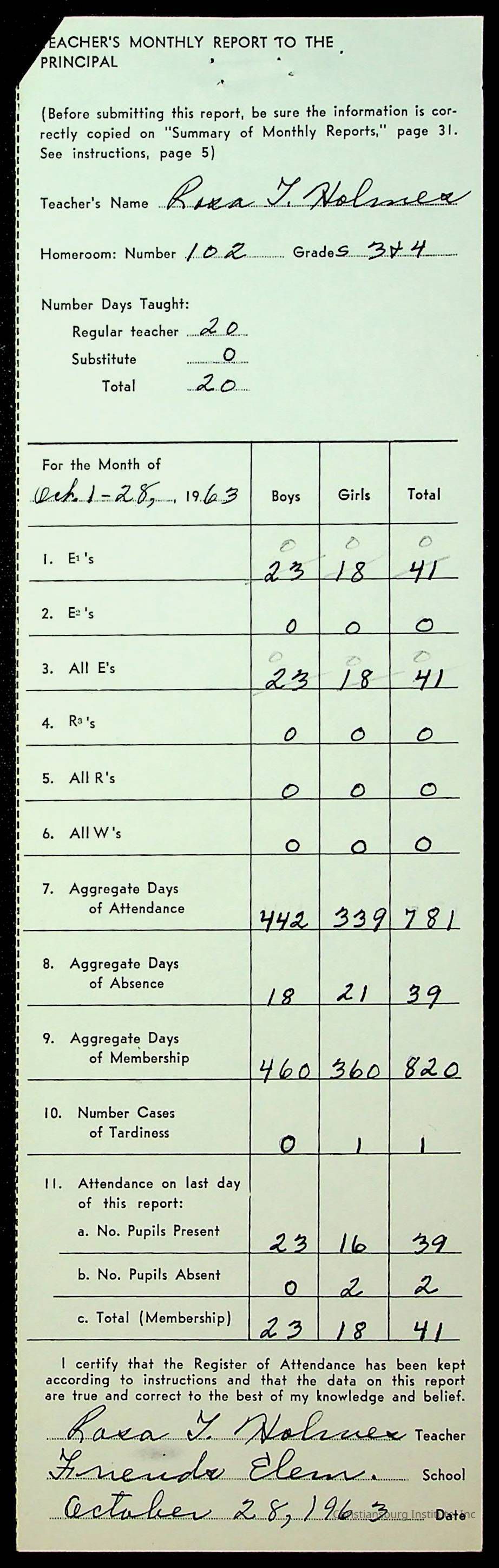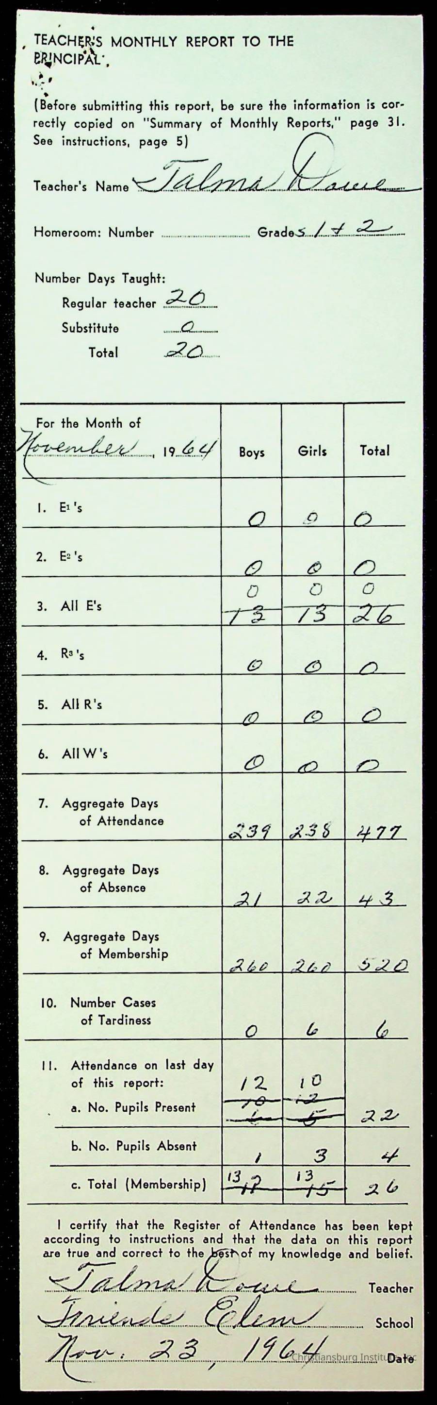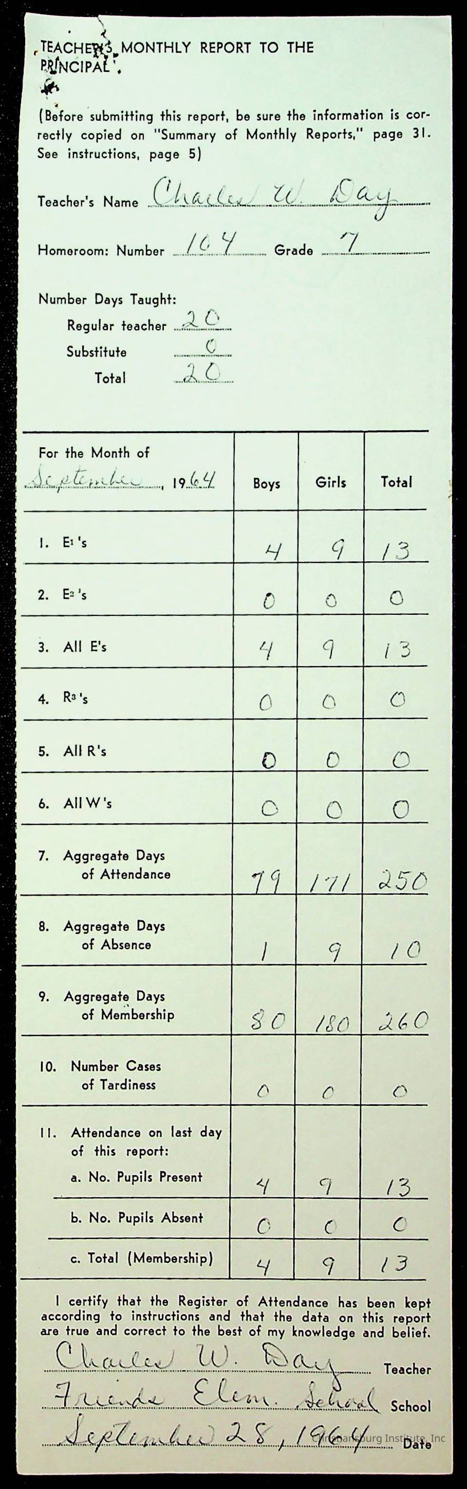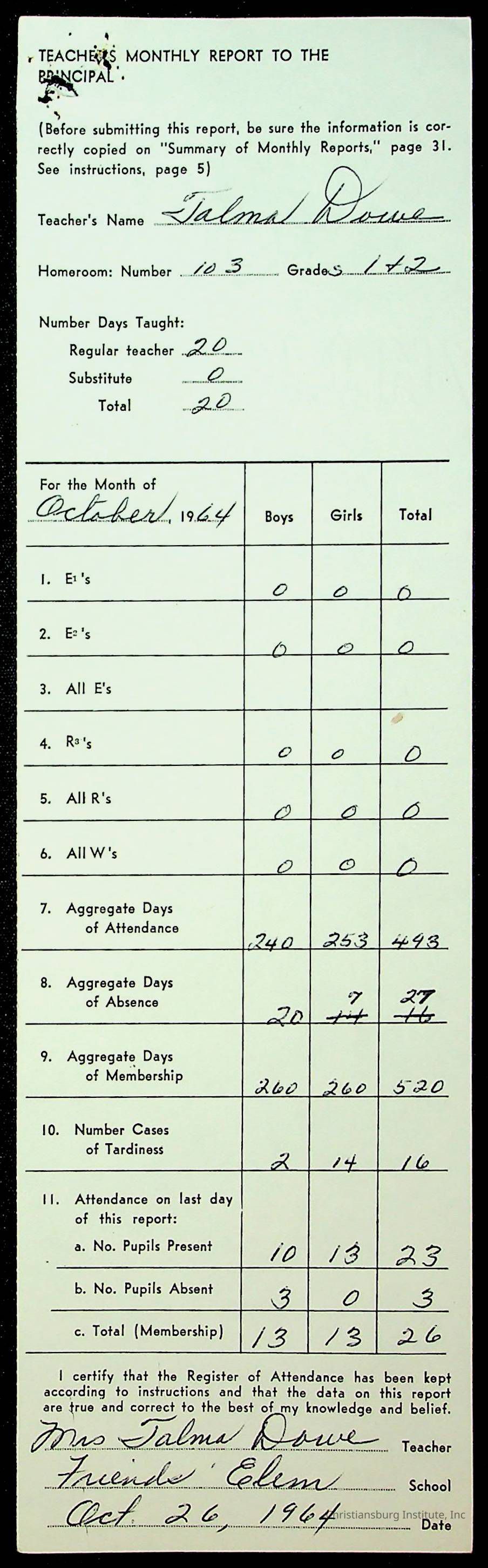 Monthly Principal Reports, 1963-1964