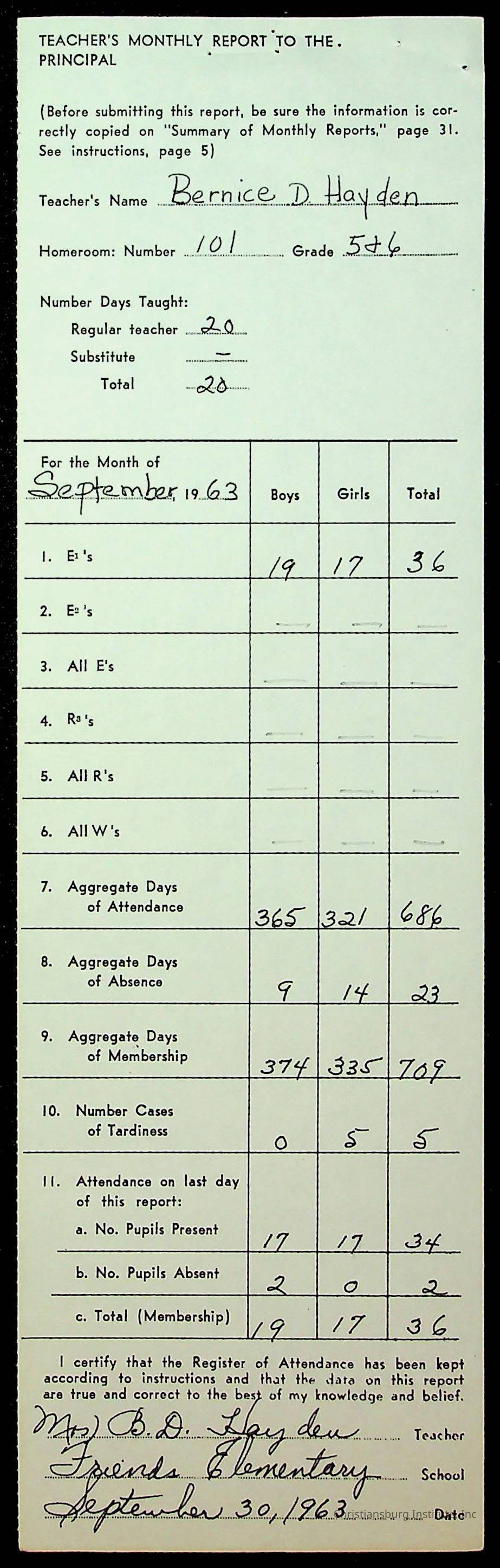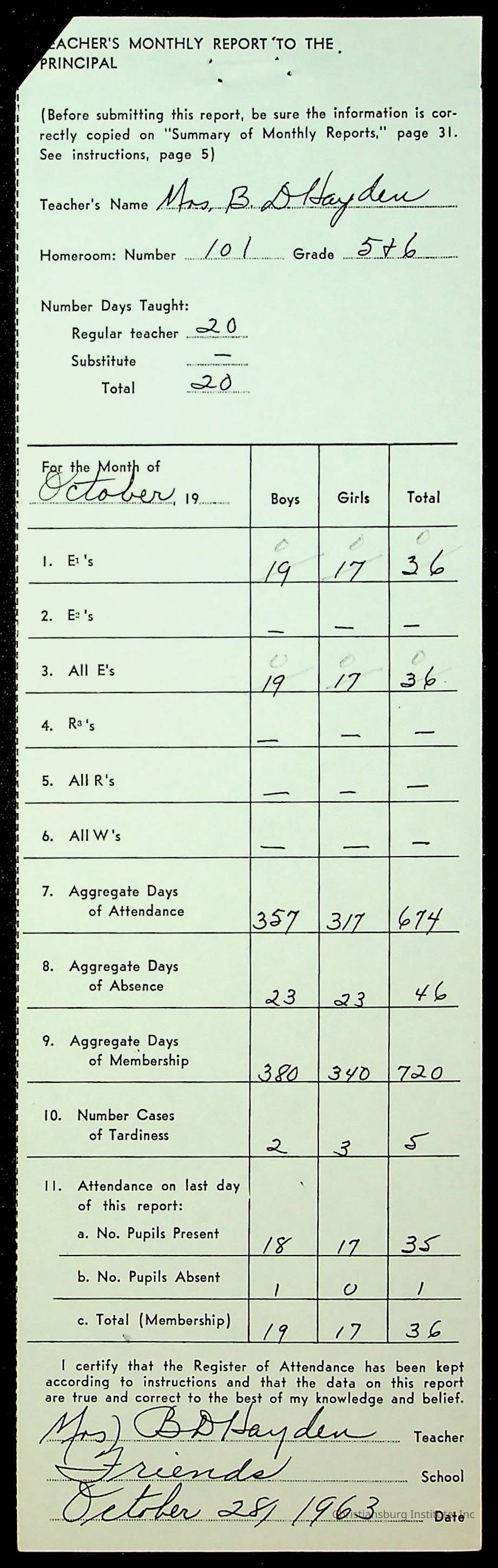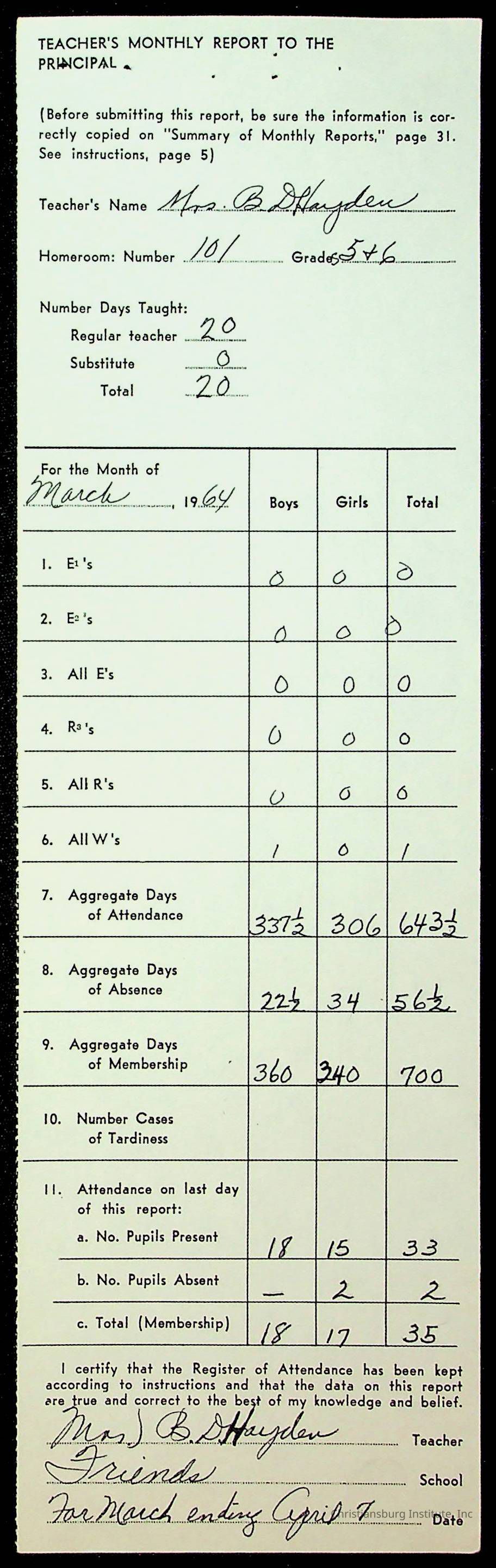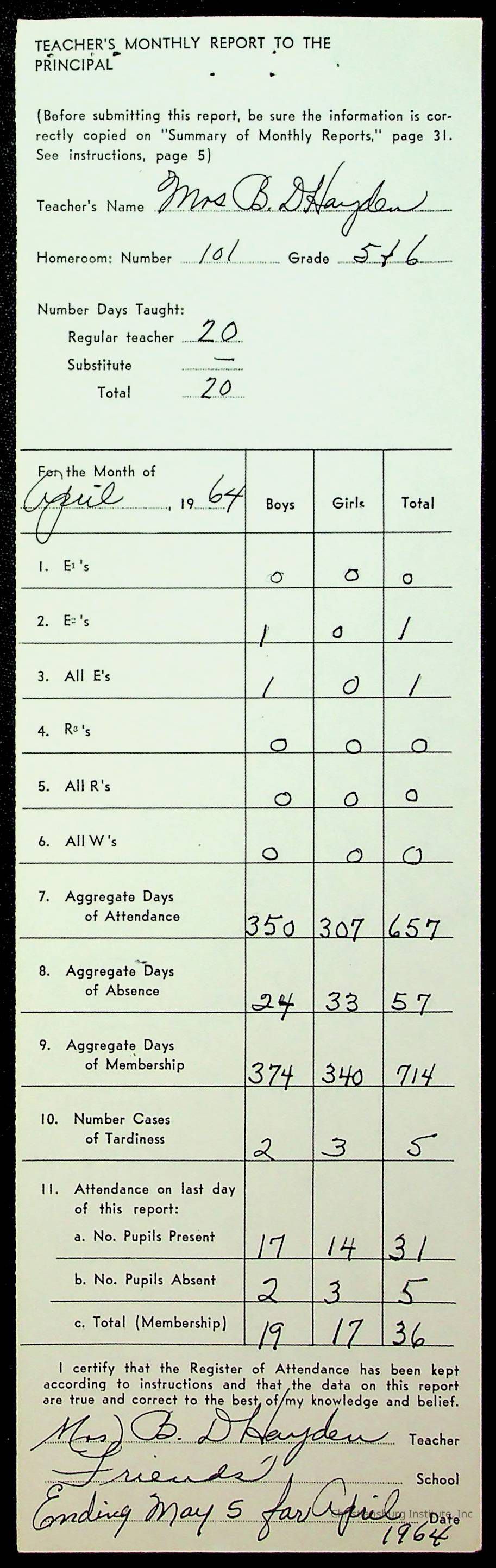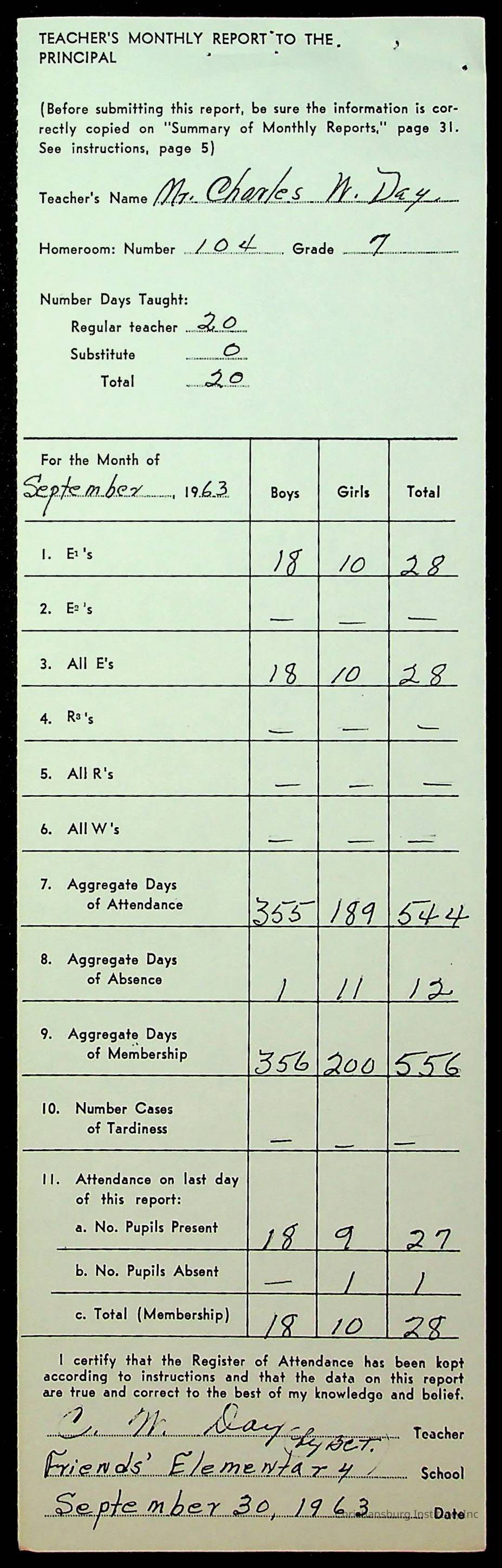 Monthly Principal Reports, 1963-1964
