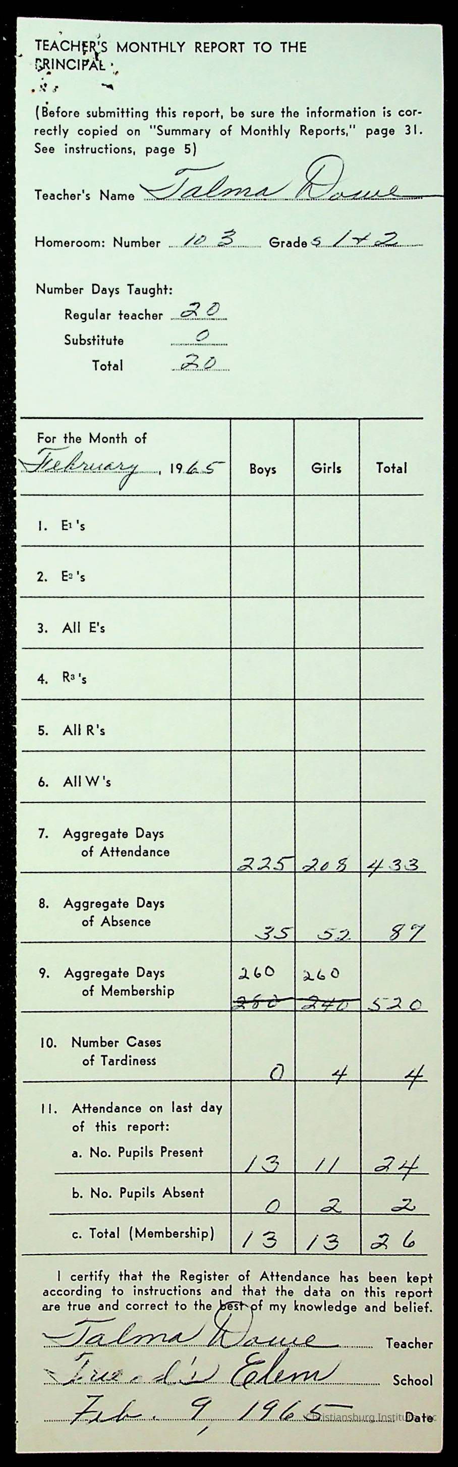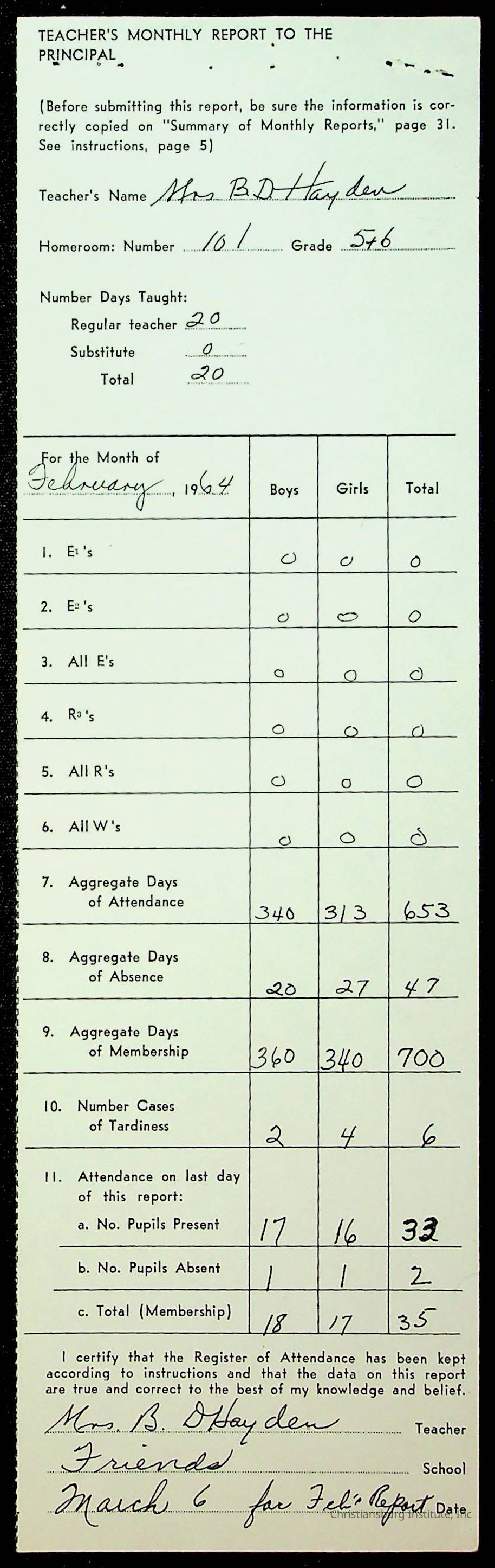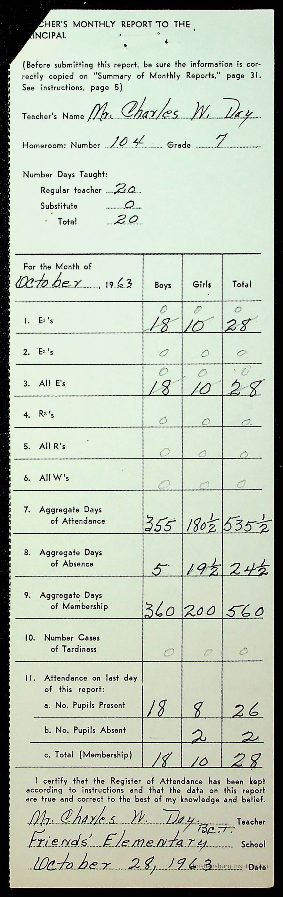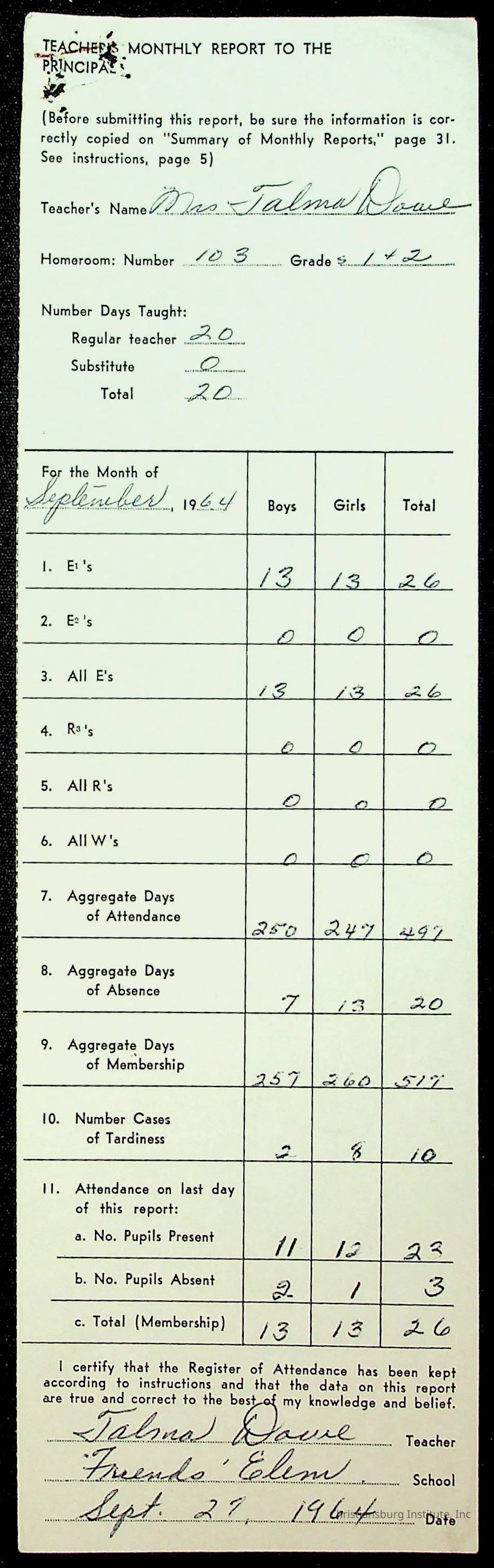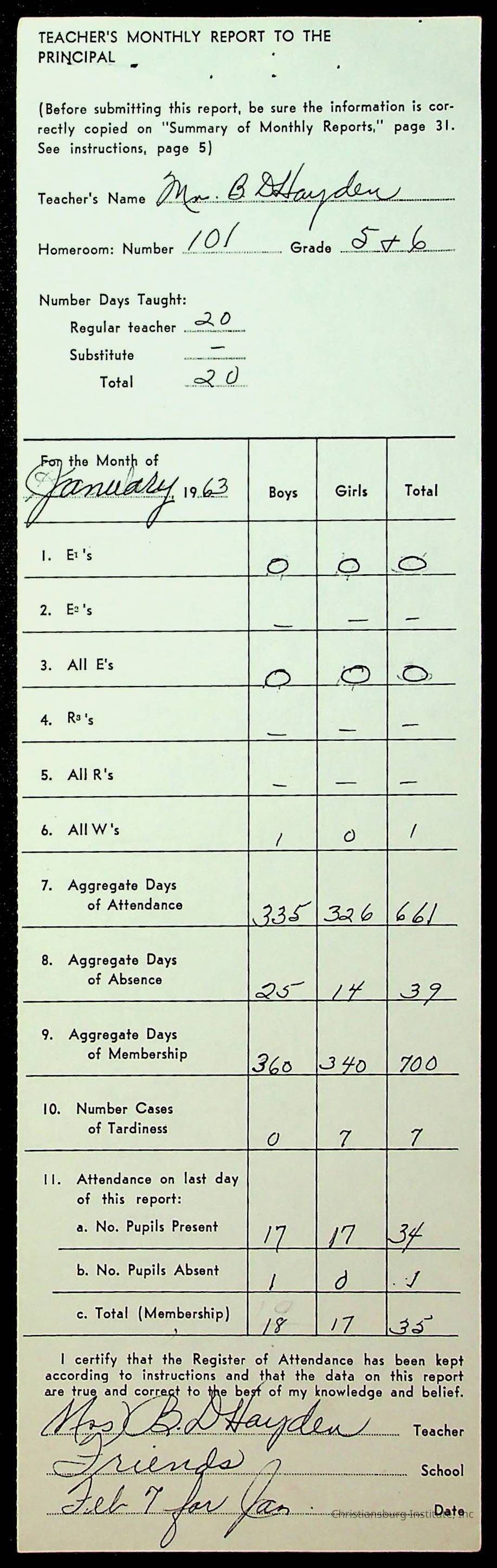 Monthly Principal Reports, 1963-1964