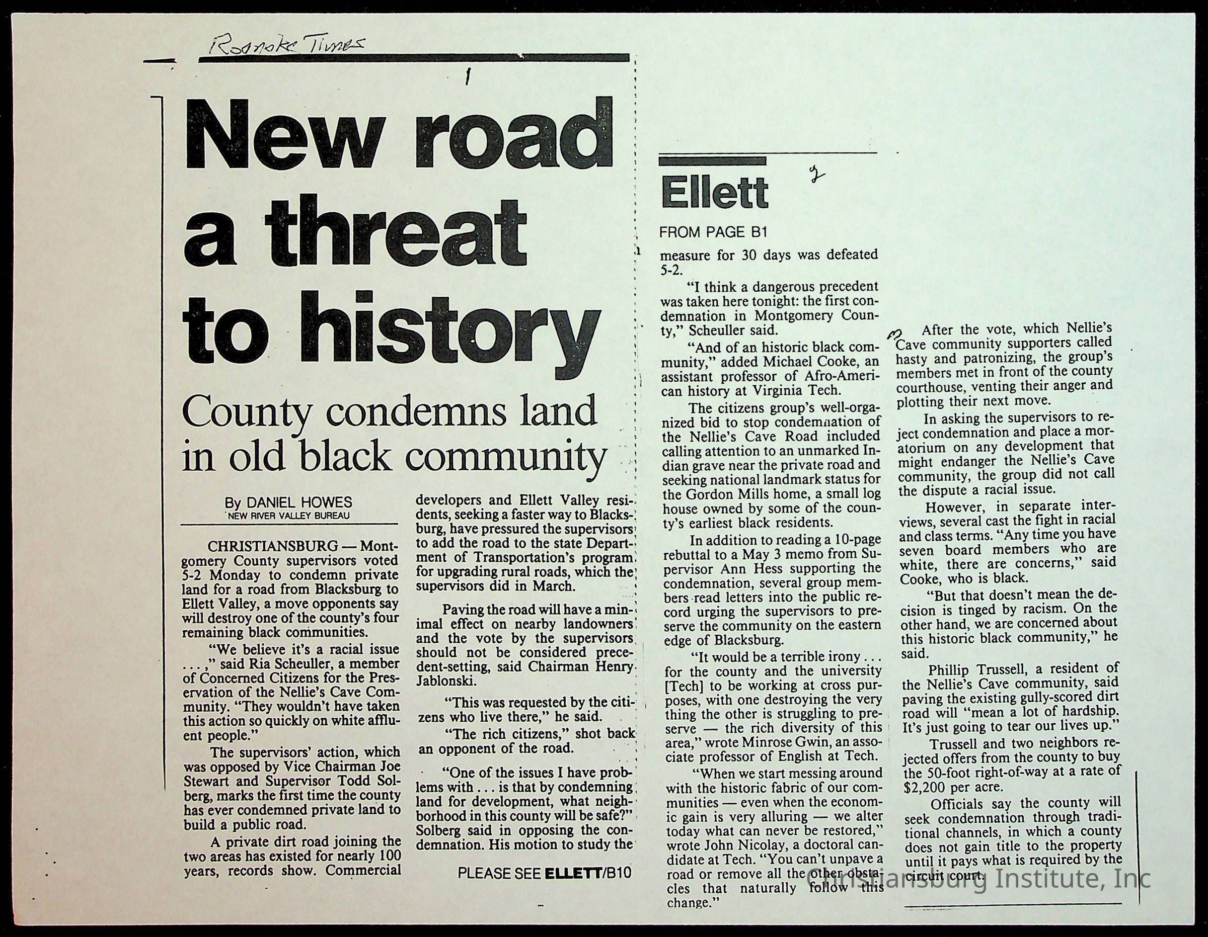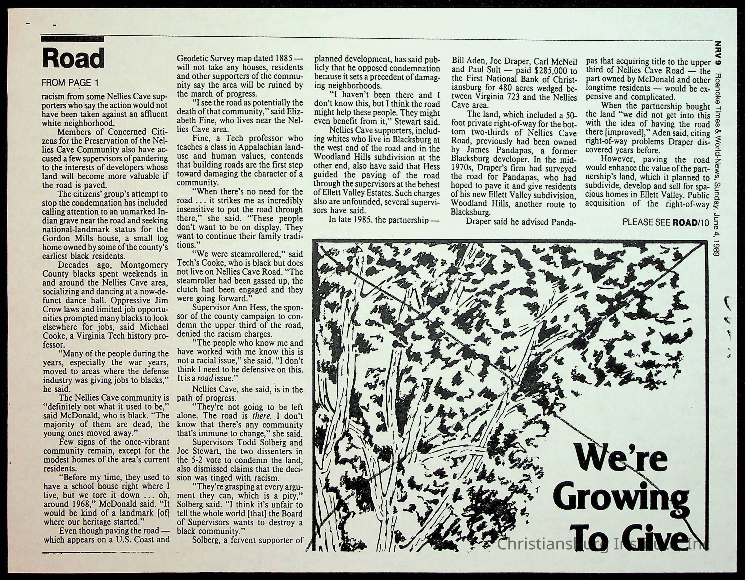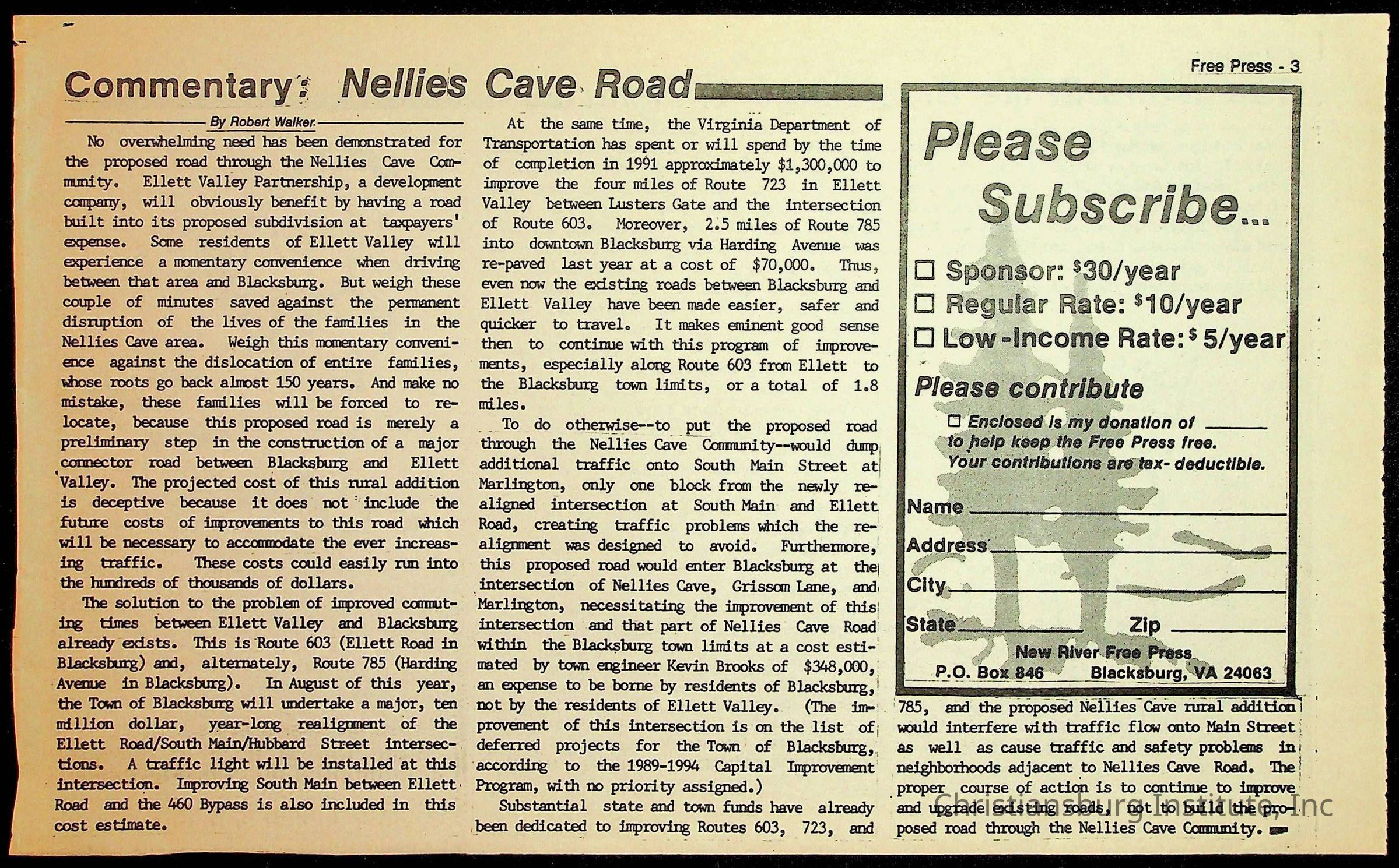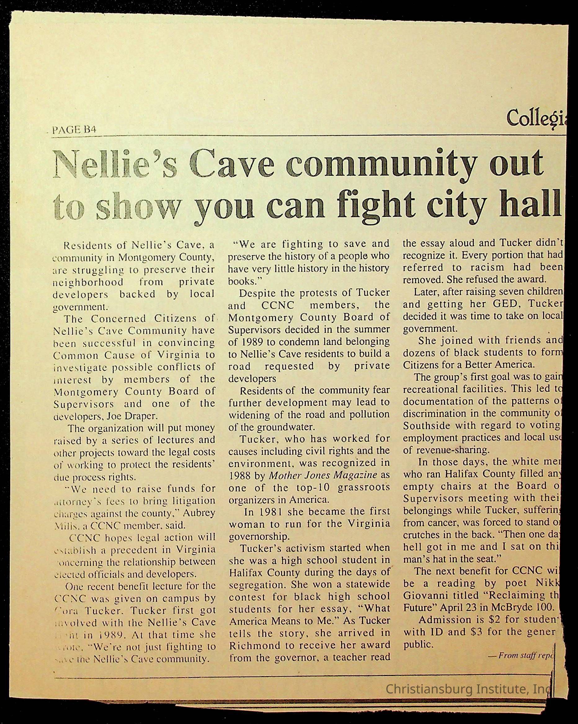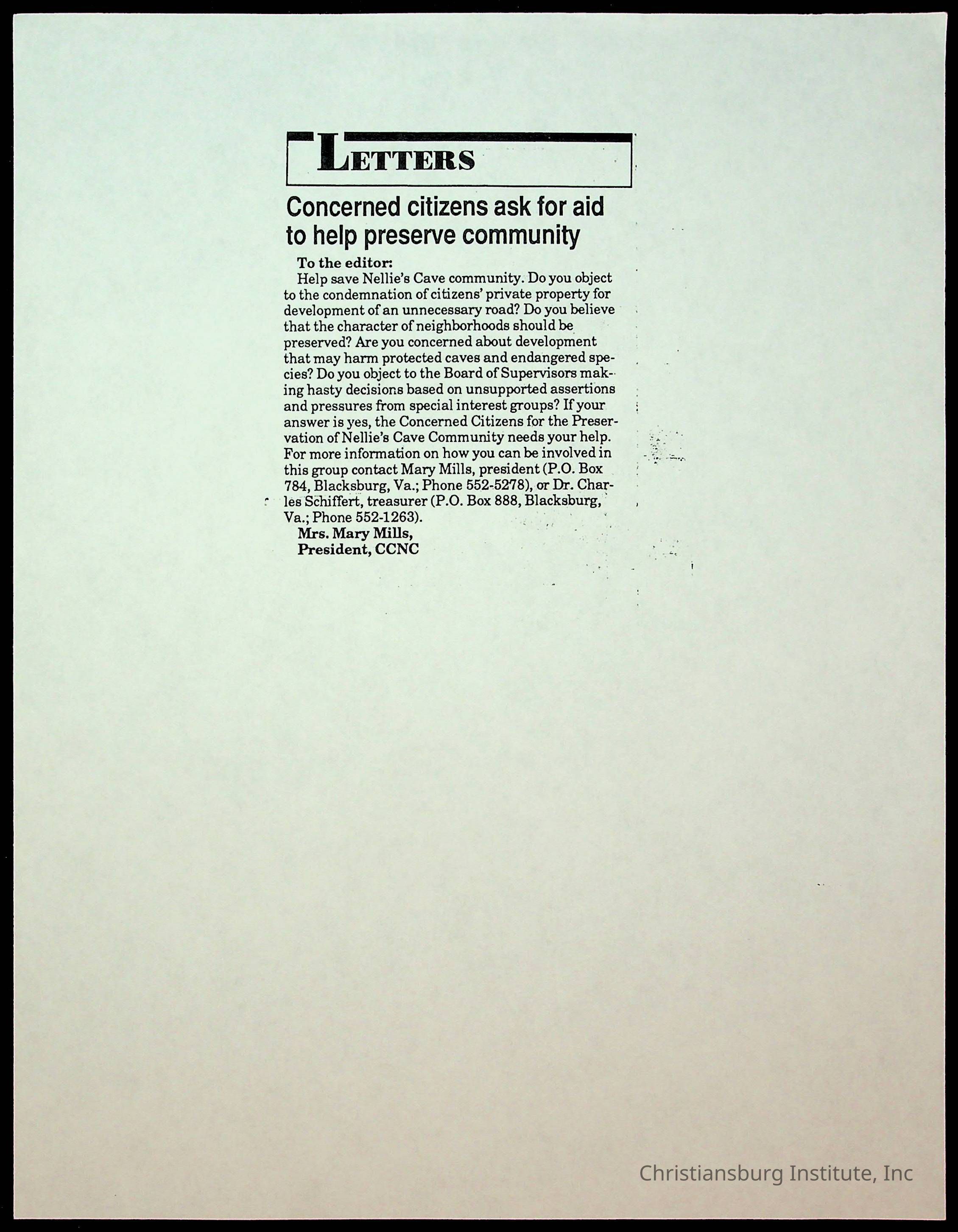 Fine, Elizabeth C., Concerned Citizens For Nellies Cave Community, Montgomery County, The Roanoke Times, The News Messenger, NRV Current