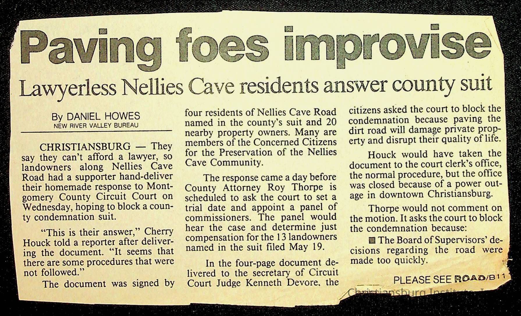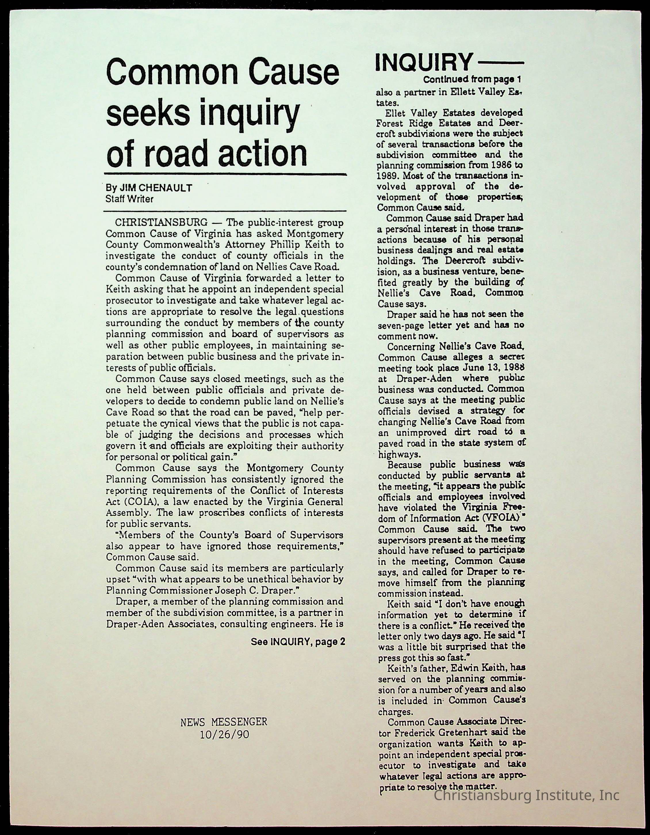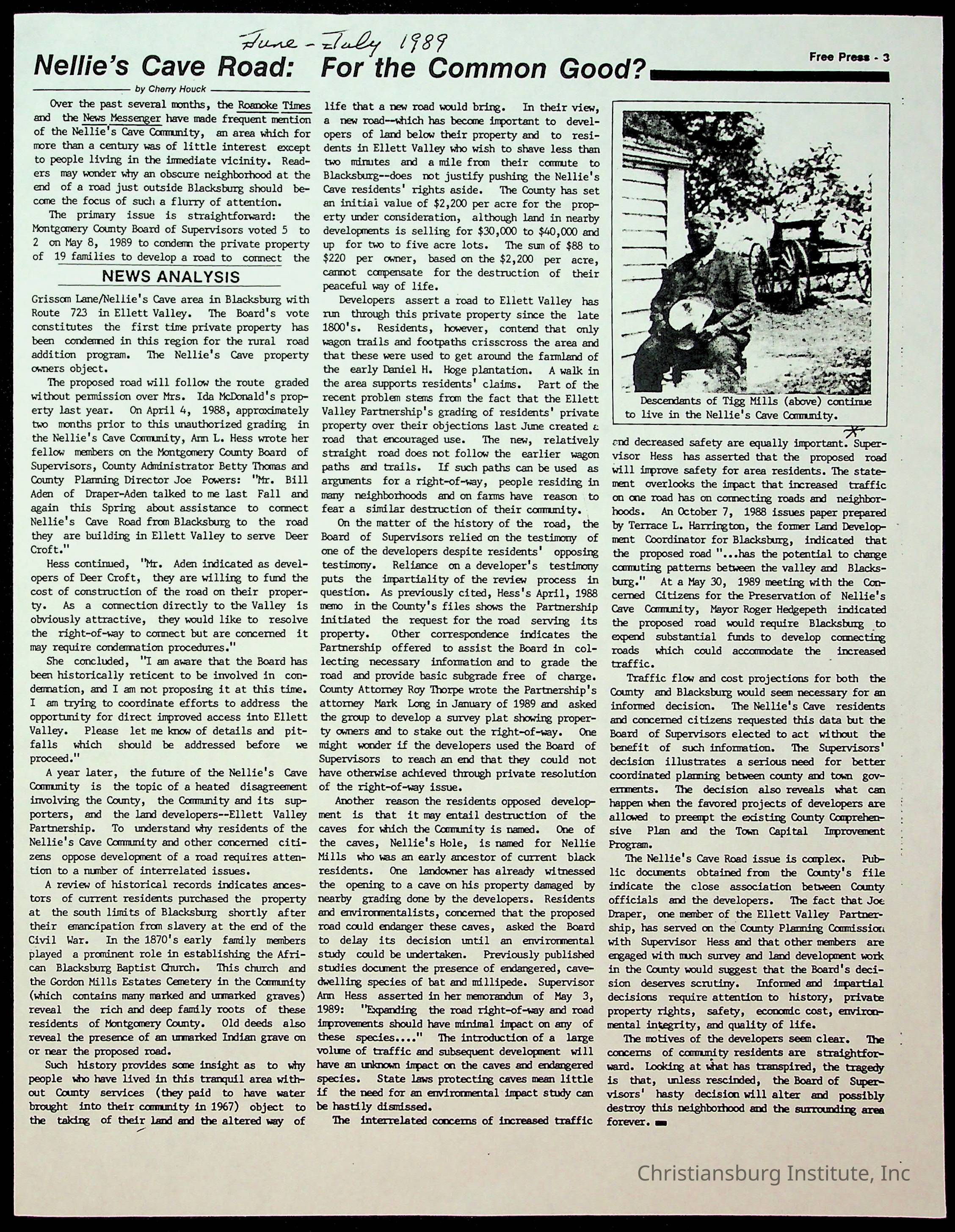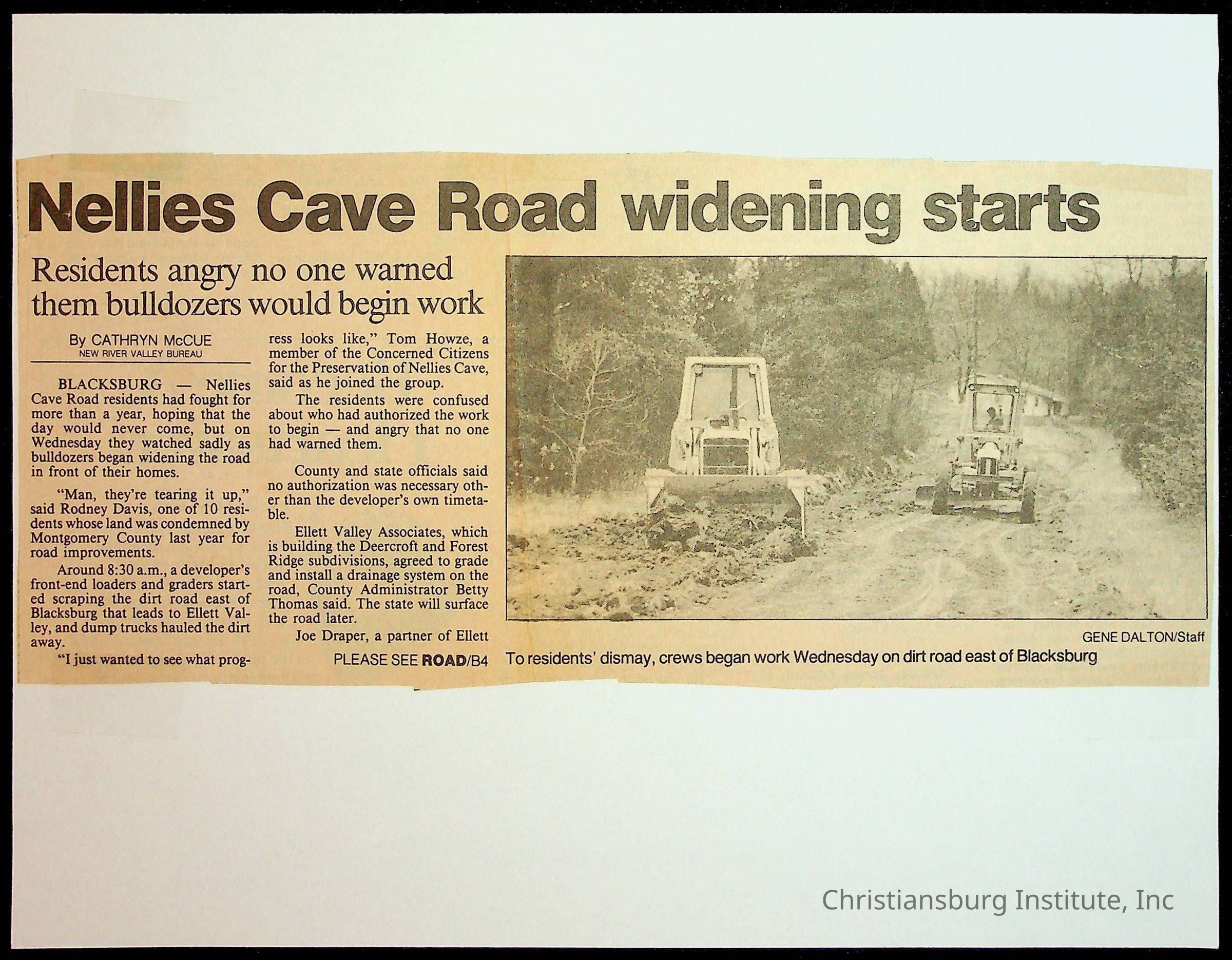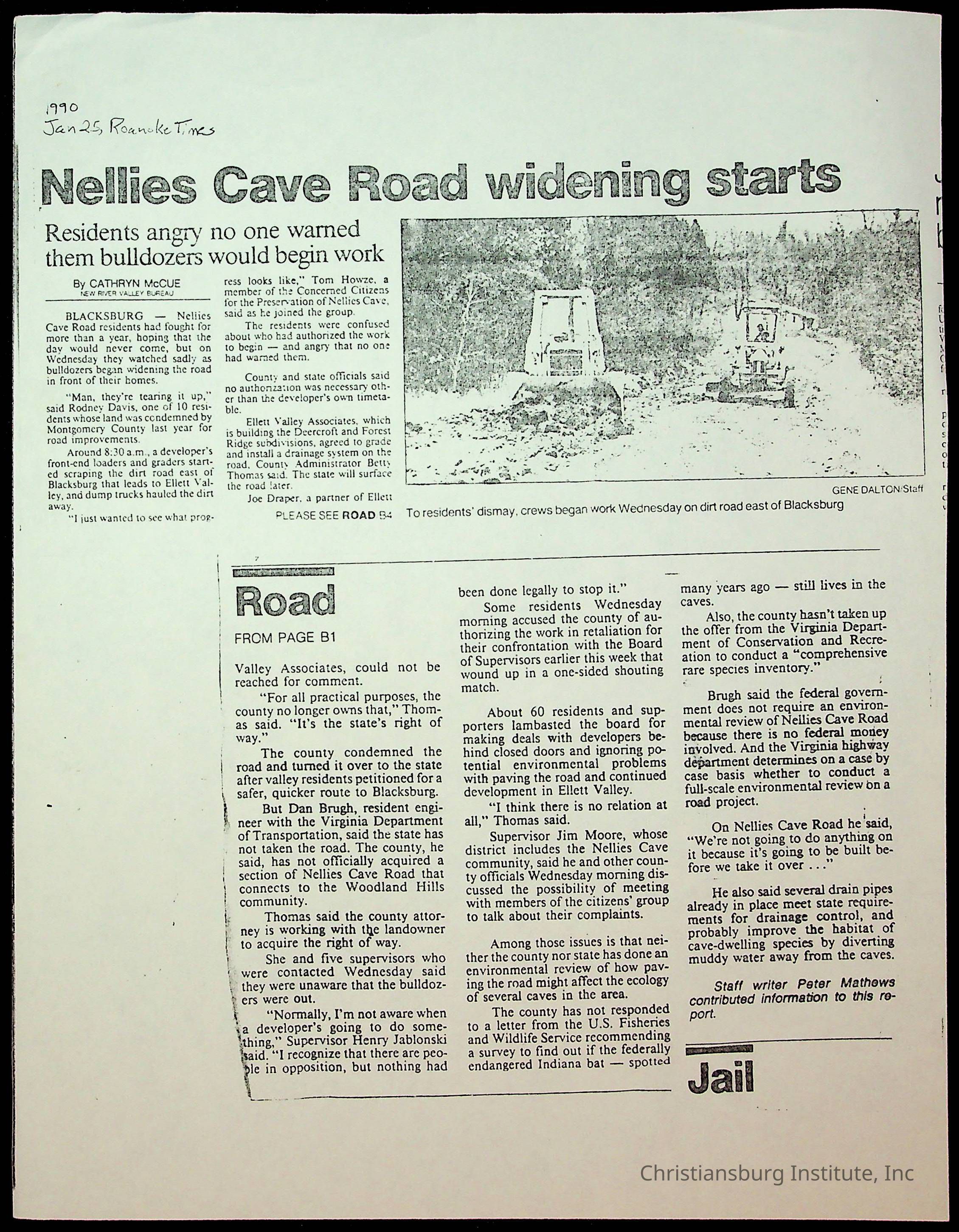 Fine, Elizabeth C., Concerned Citizens For Nellies Cave Community, Montgomery County, The Roanoke Times, The News Messenger, NRV Current