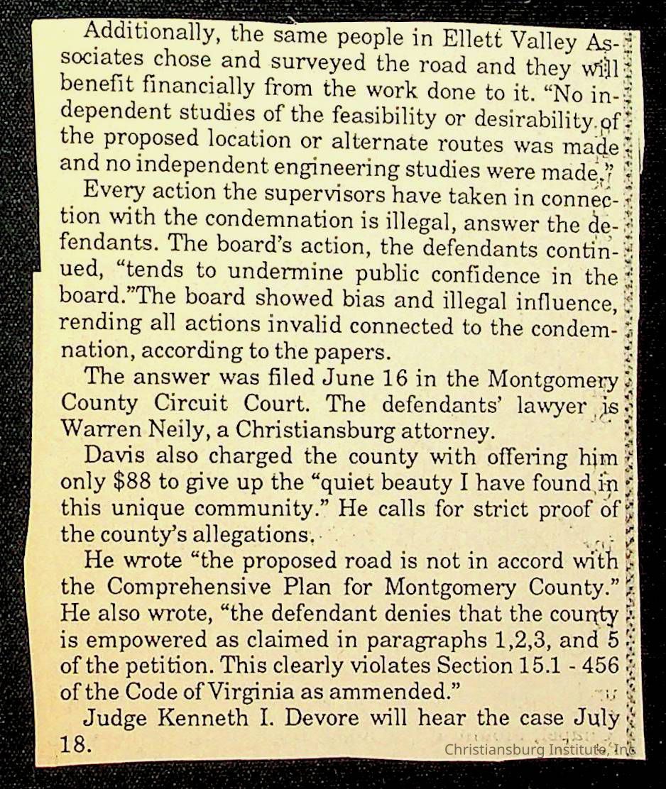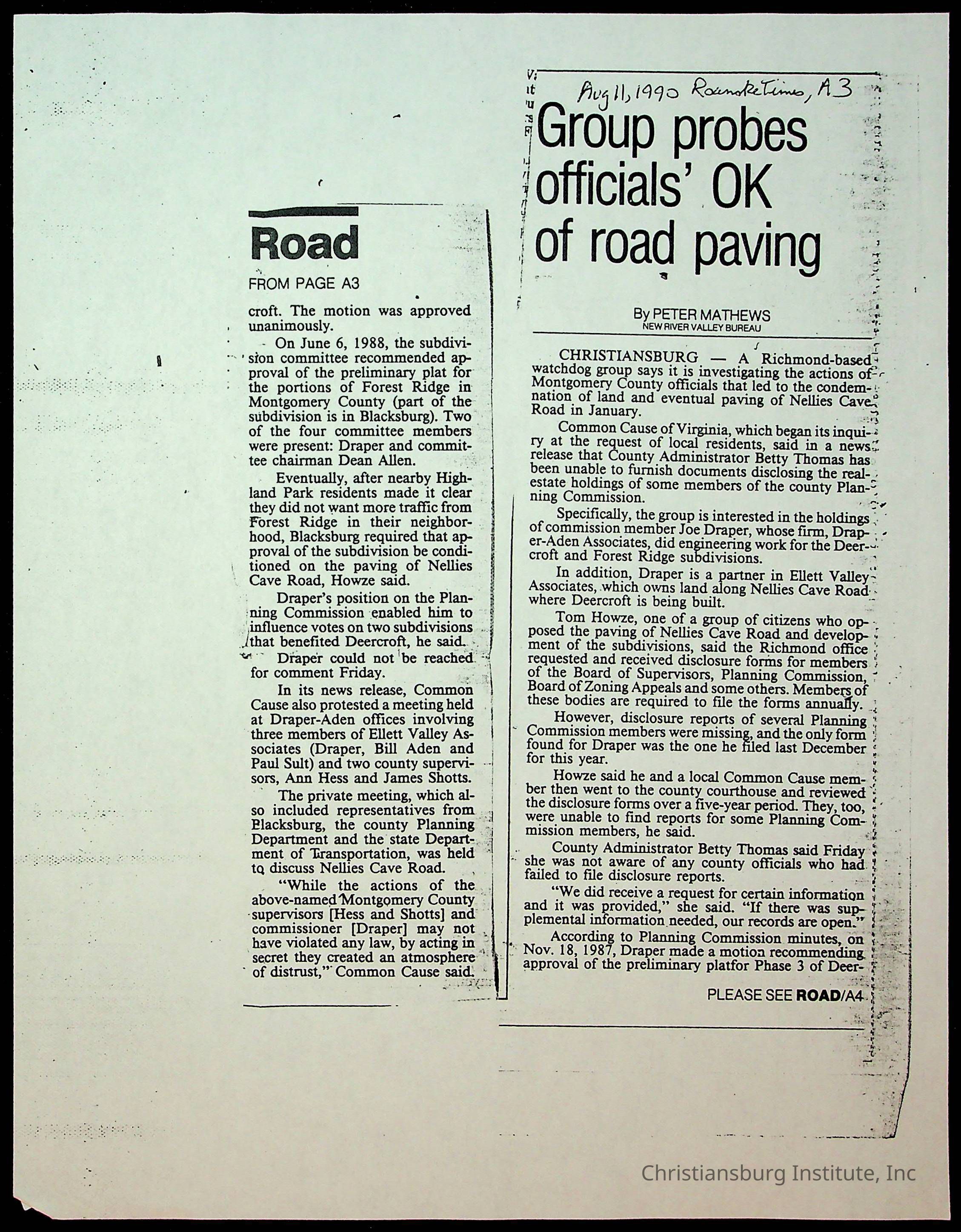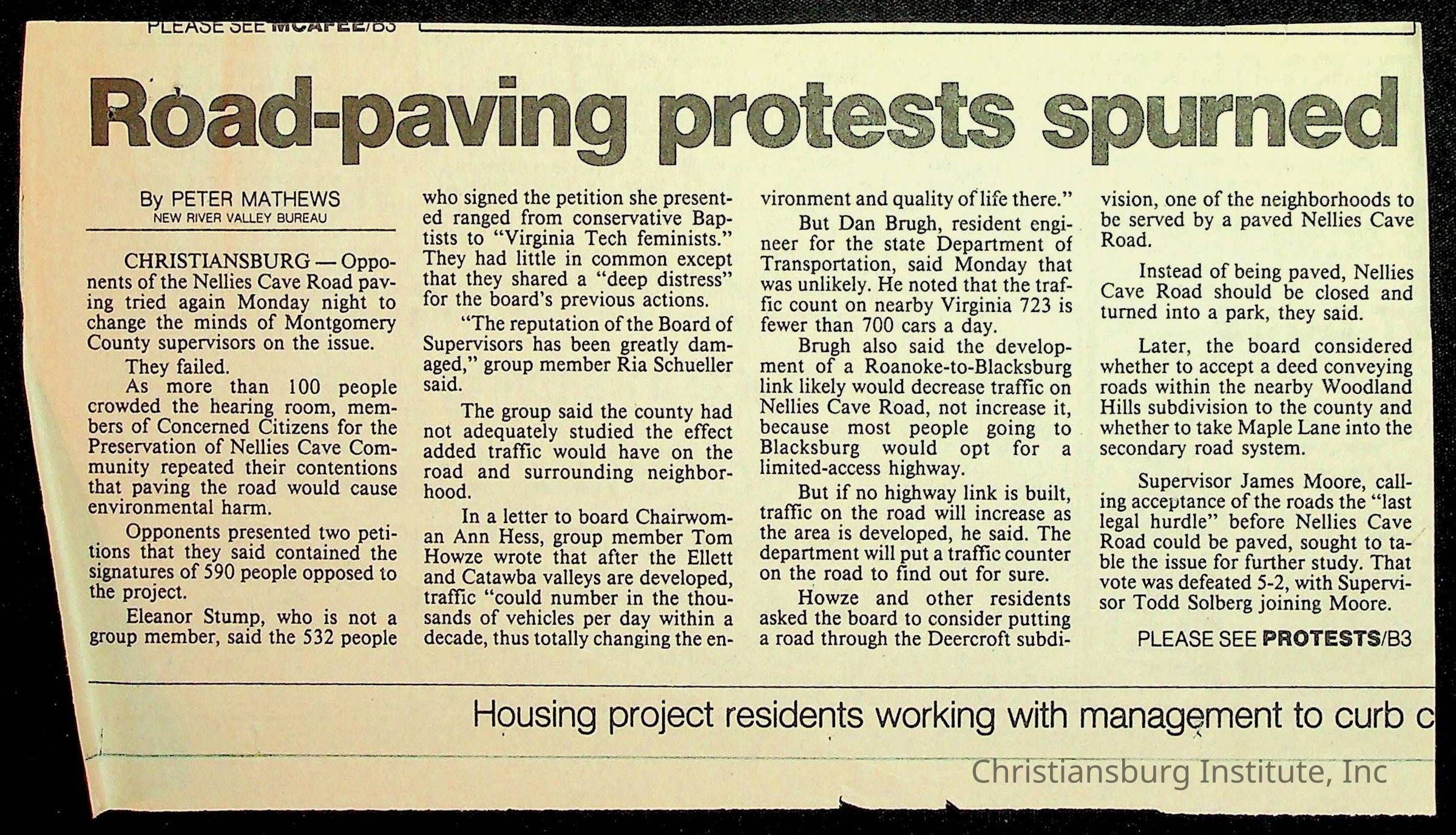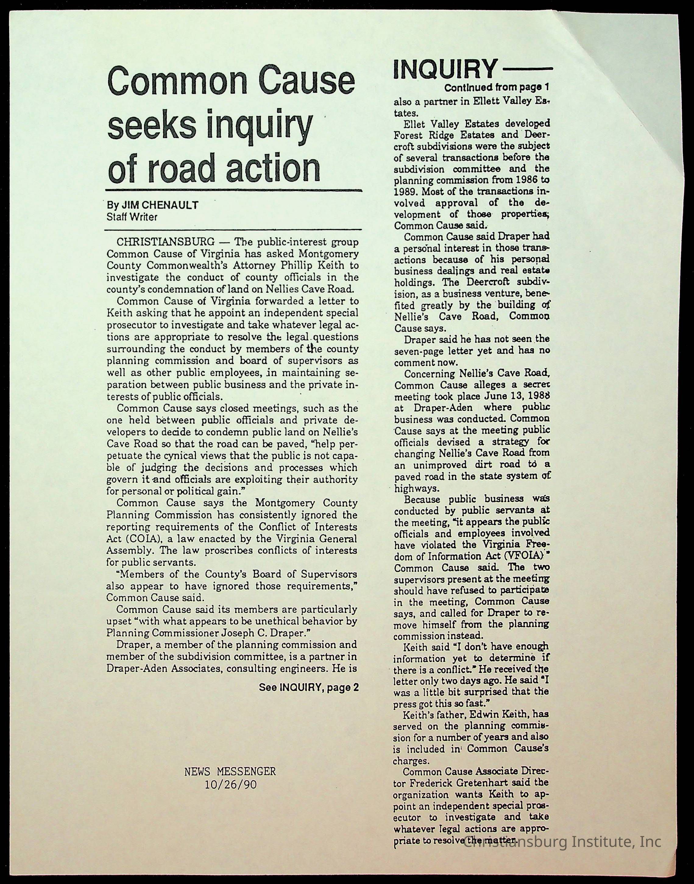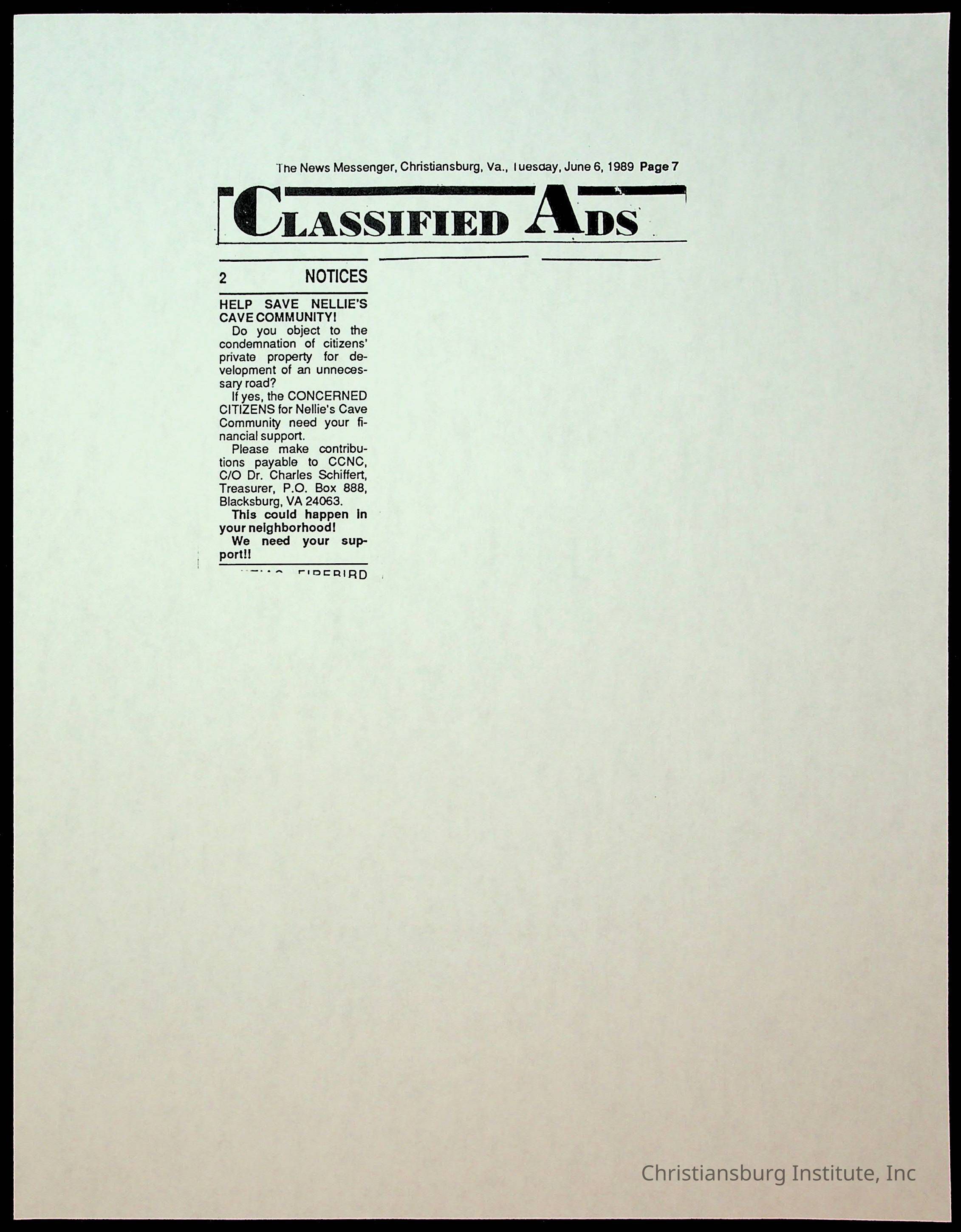 Fine, Elizabeth C., Concerned Citizens For Nellies Cave Community, Montgomery County, The Roanoke Times, The News Messenger, NRV Current