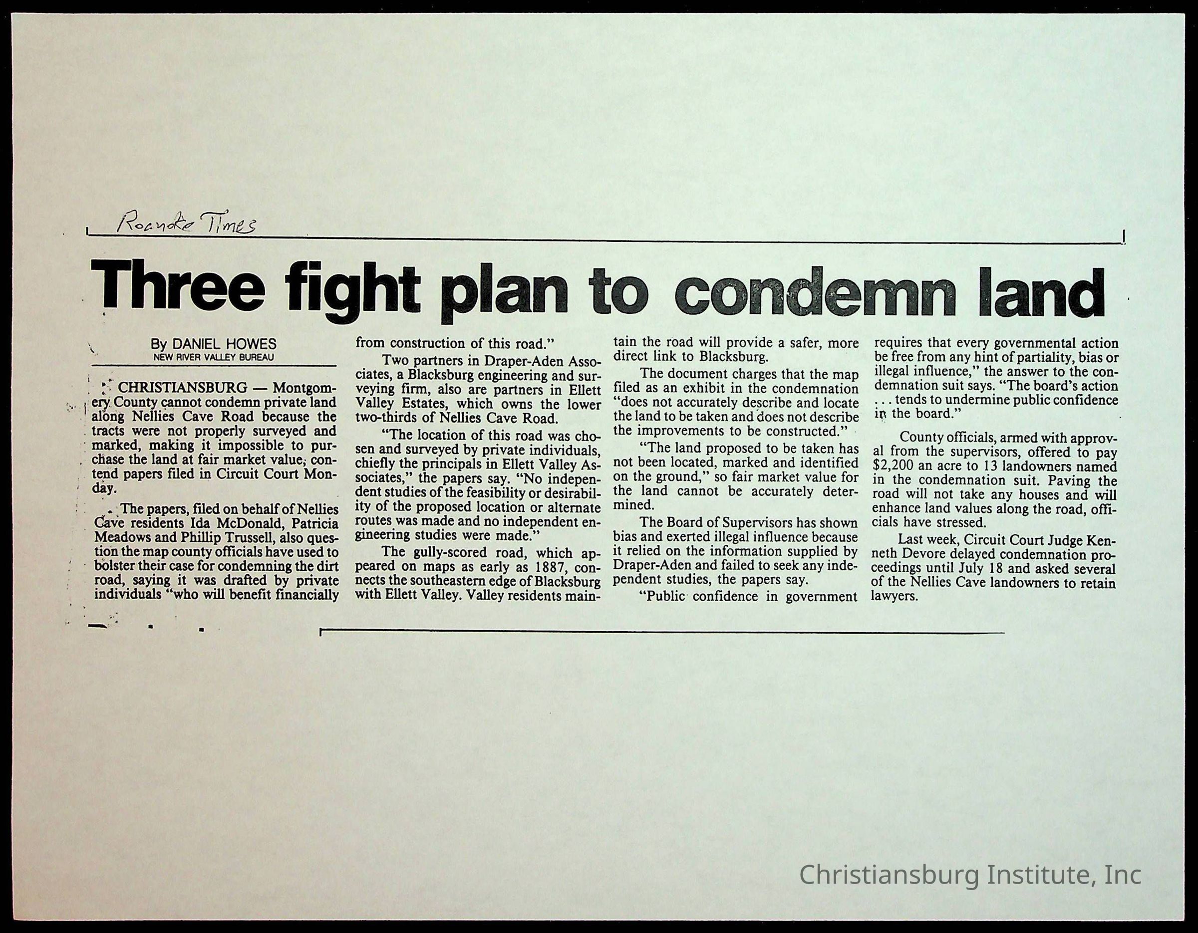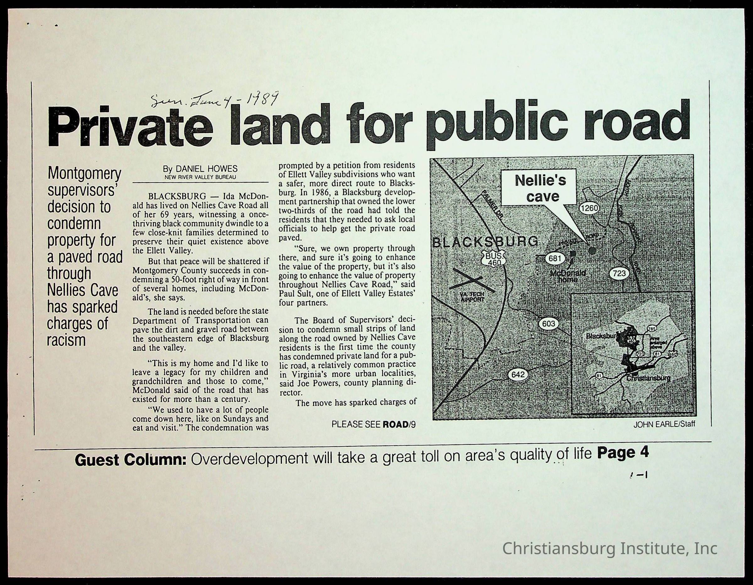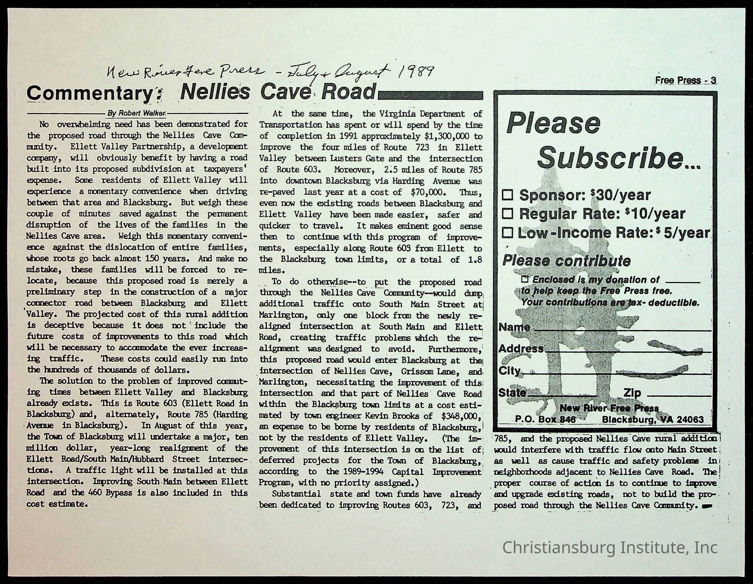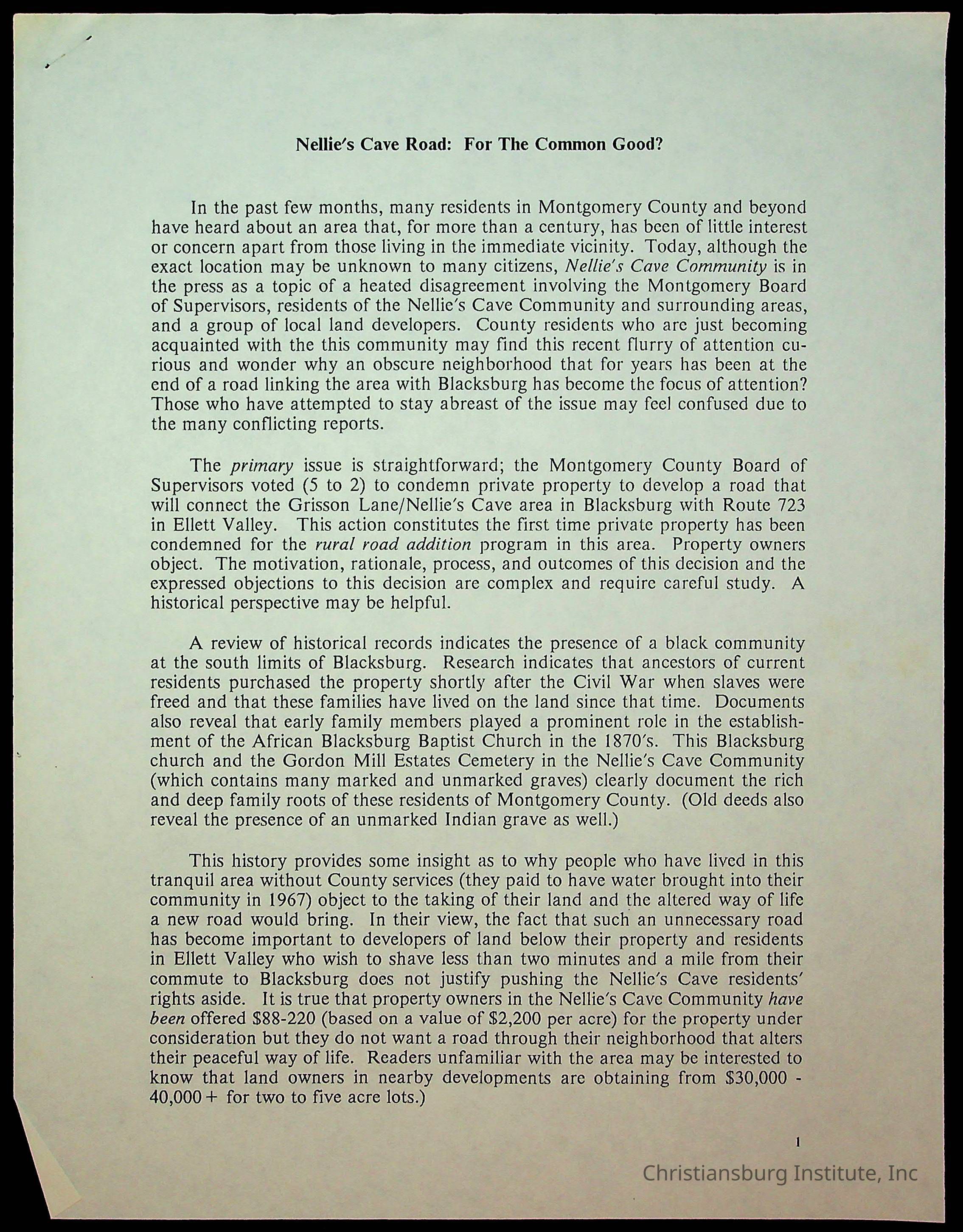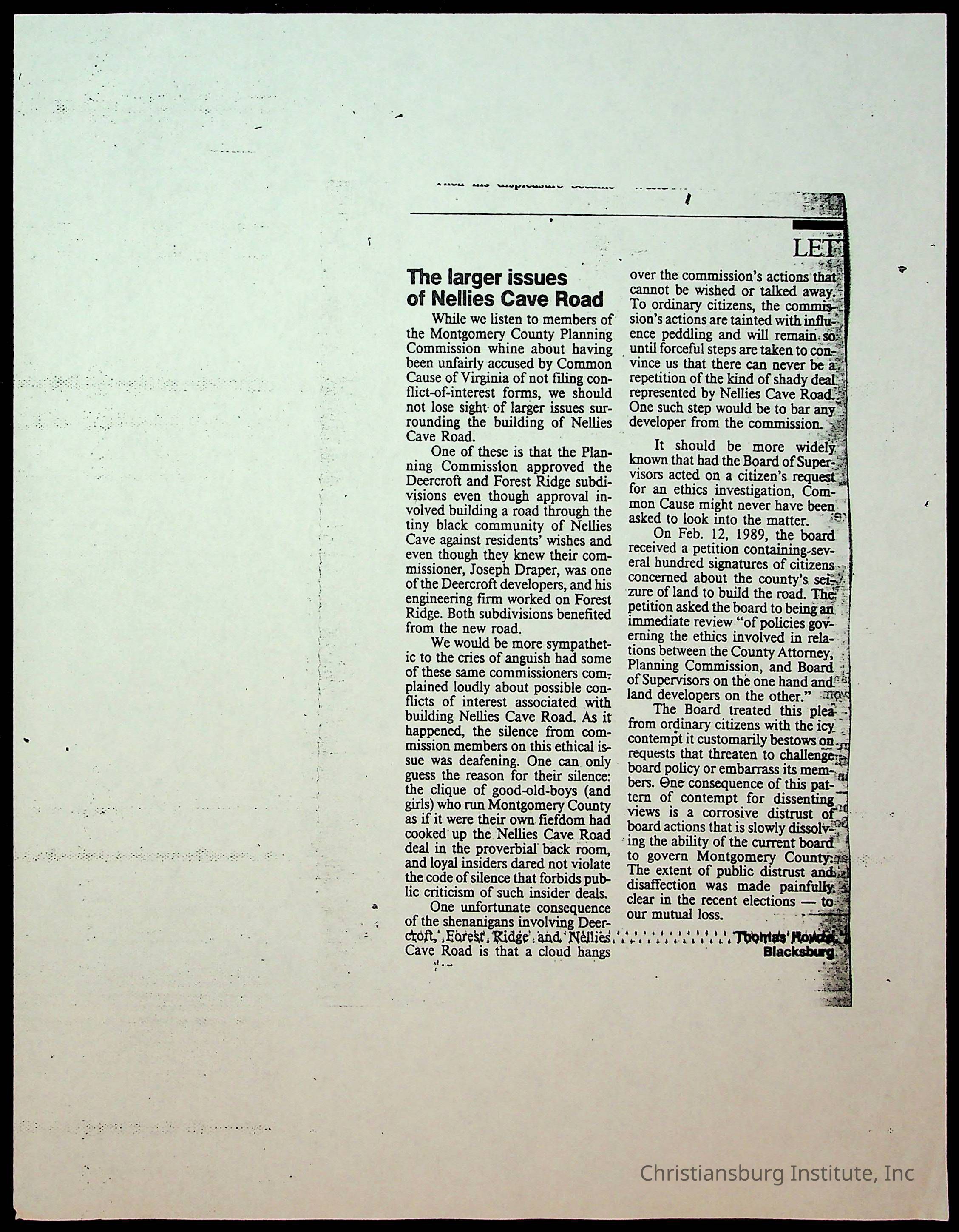 Fine, Elizabeth C., Concerned Citizens For Nellies Cave Community, Montgomery County, The Roanoke Times, The News Messenger, NRV Current