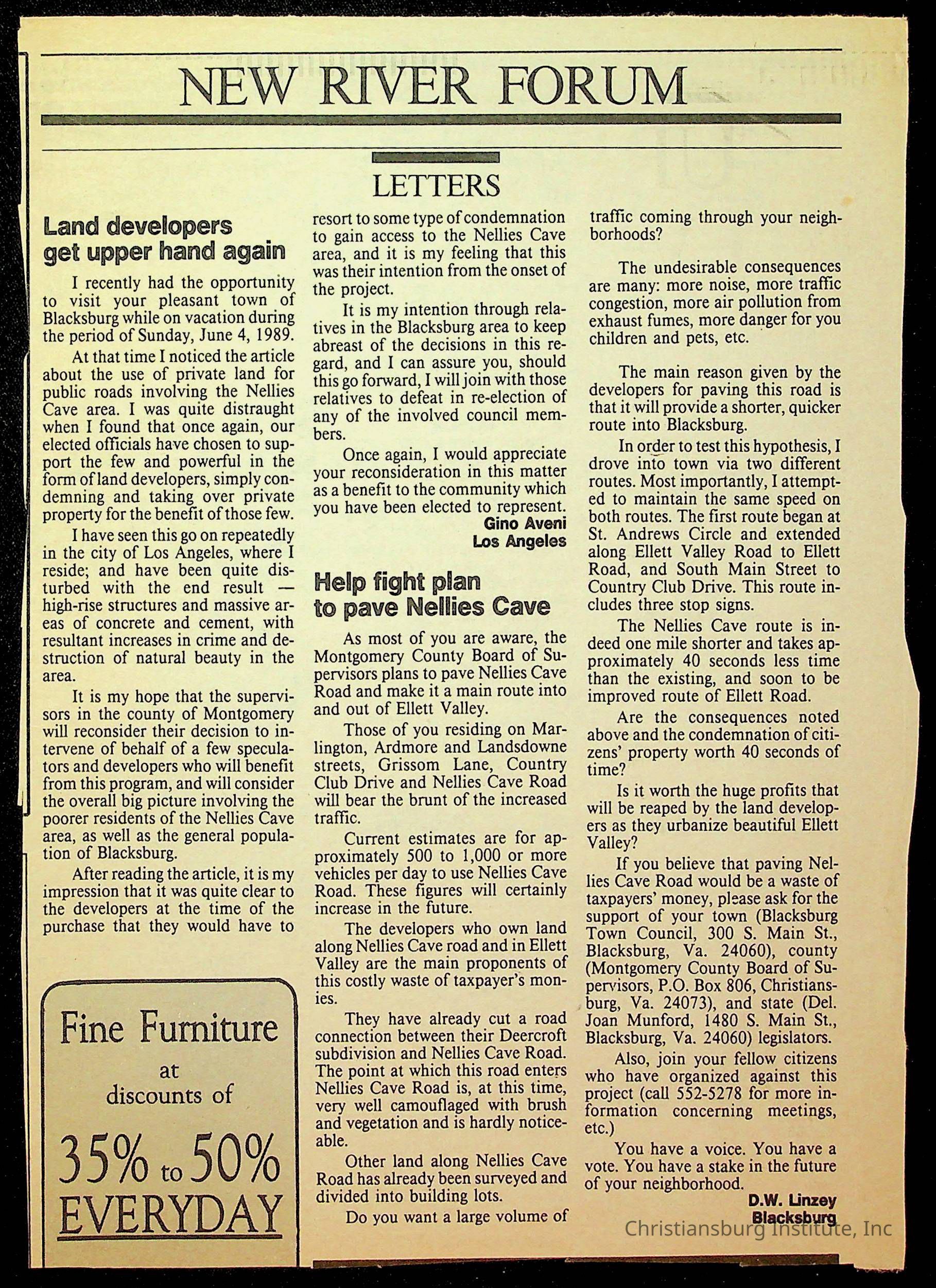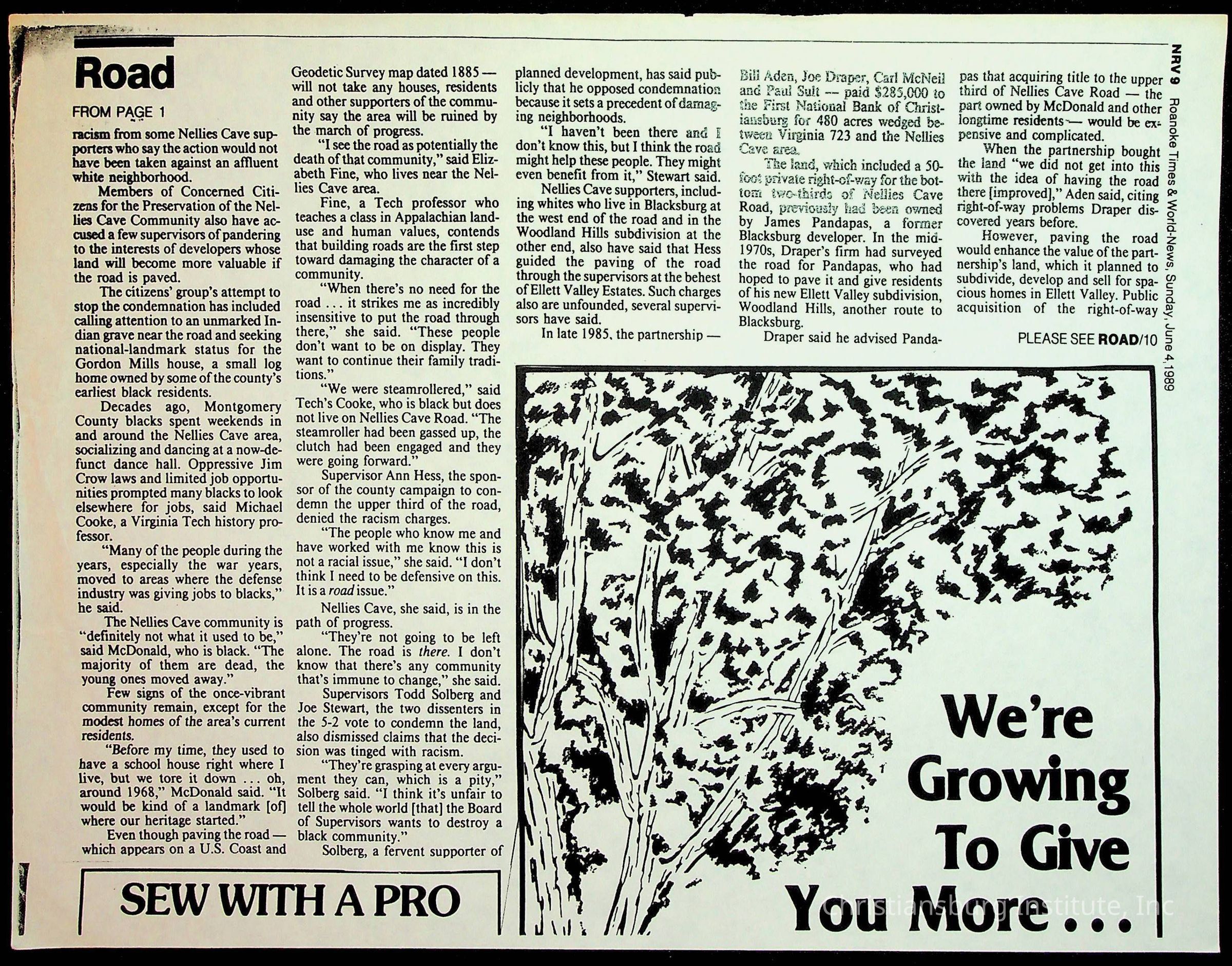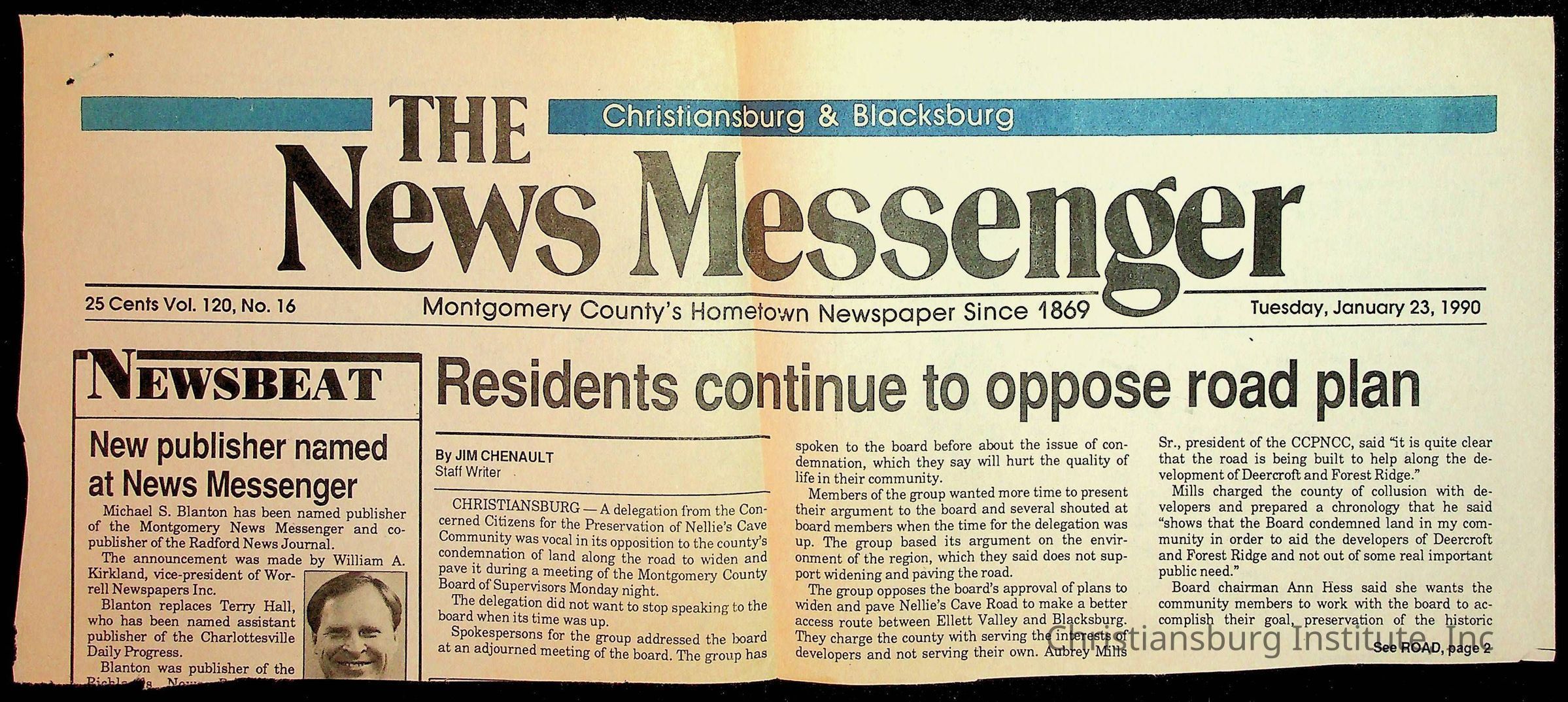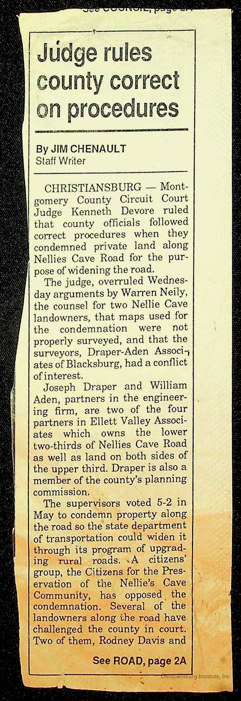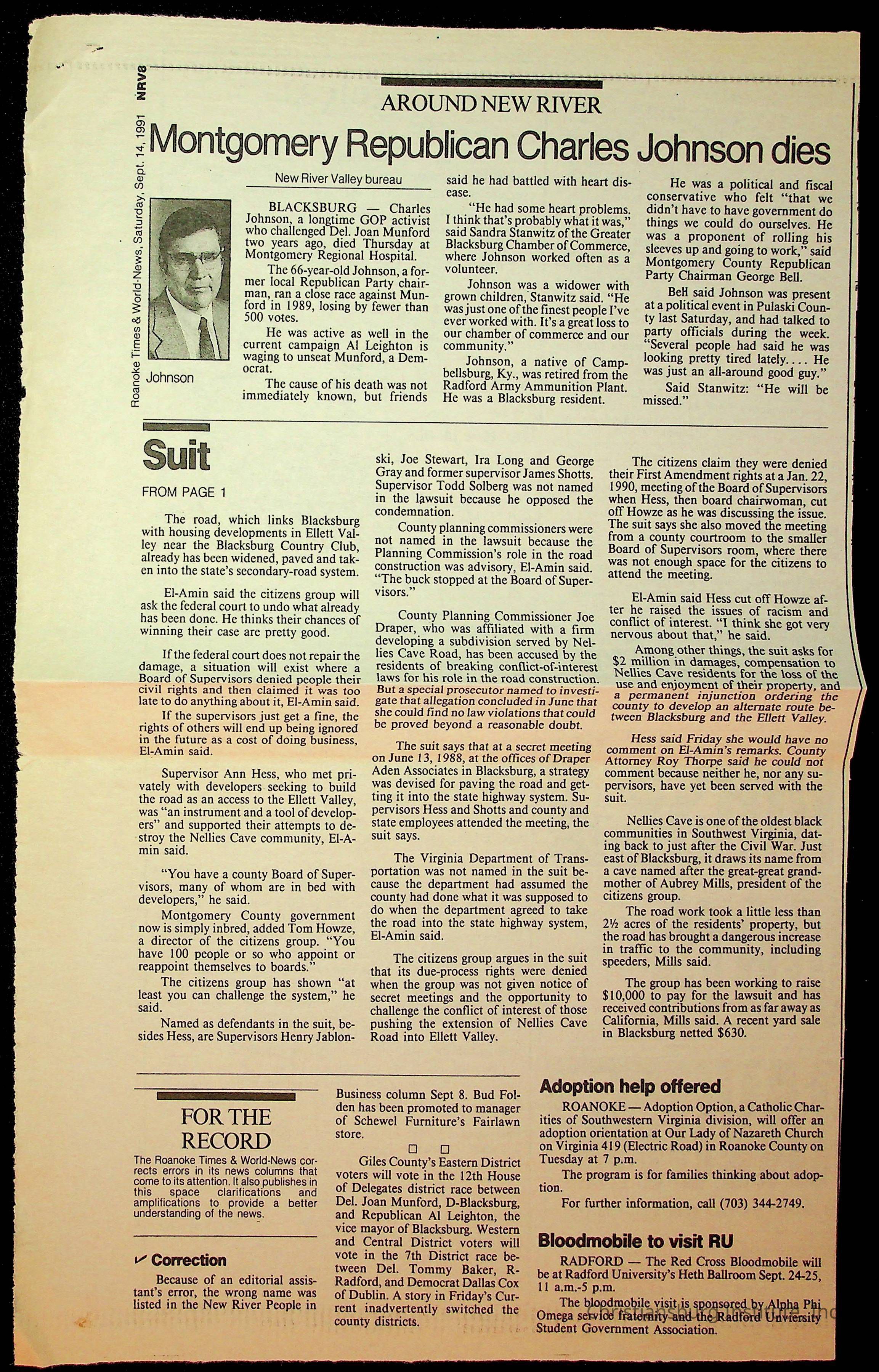Fine, Elizabeth C., Concerned Citizens For Nellies Cave Community, Montgomery County, The Roanoke Times, The News Messenger, NRV Current