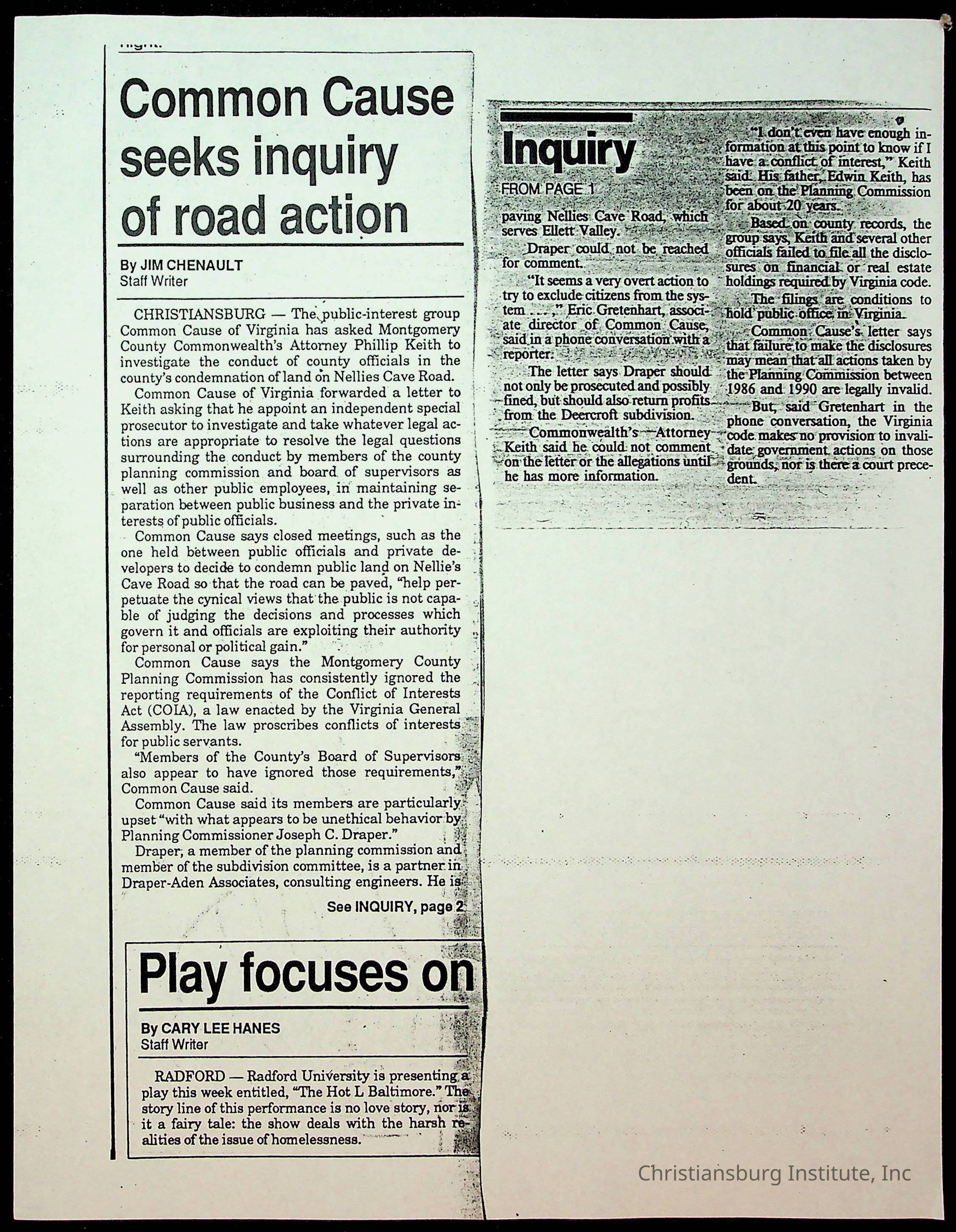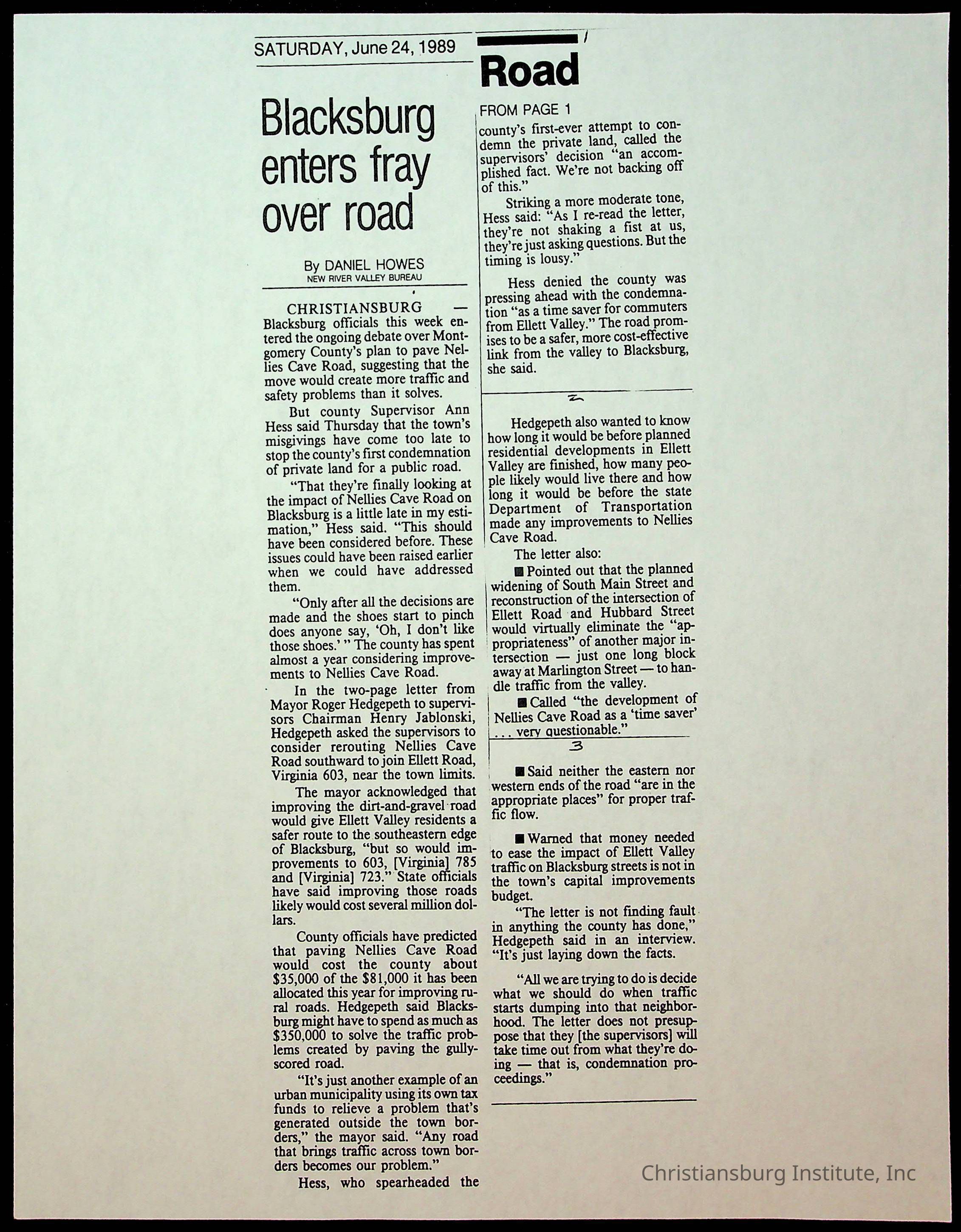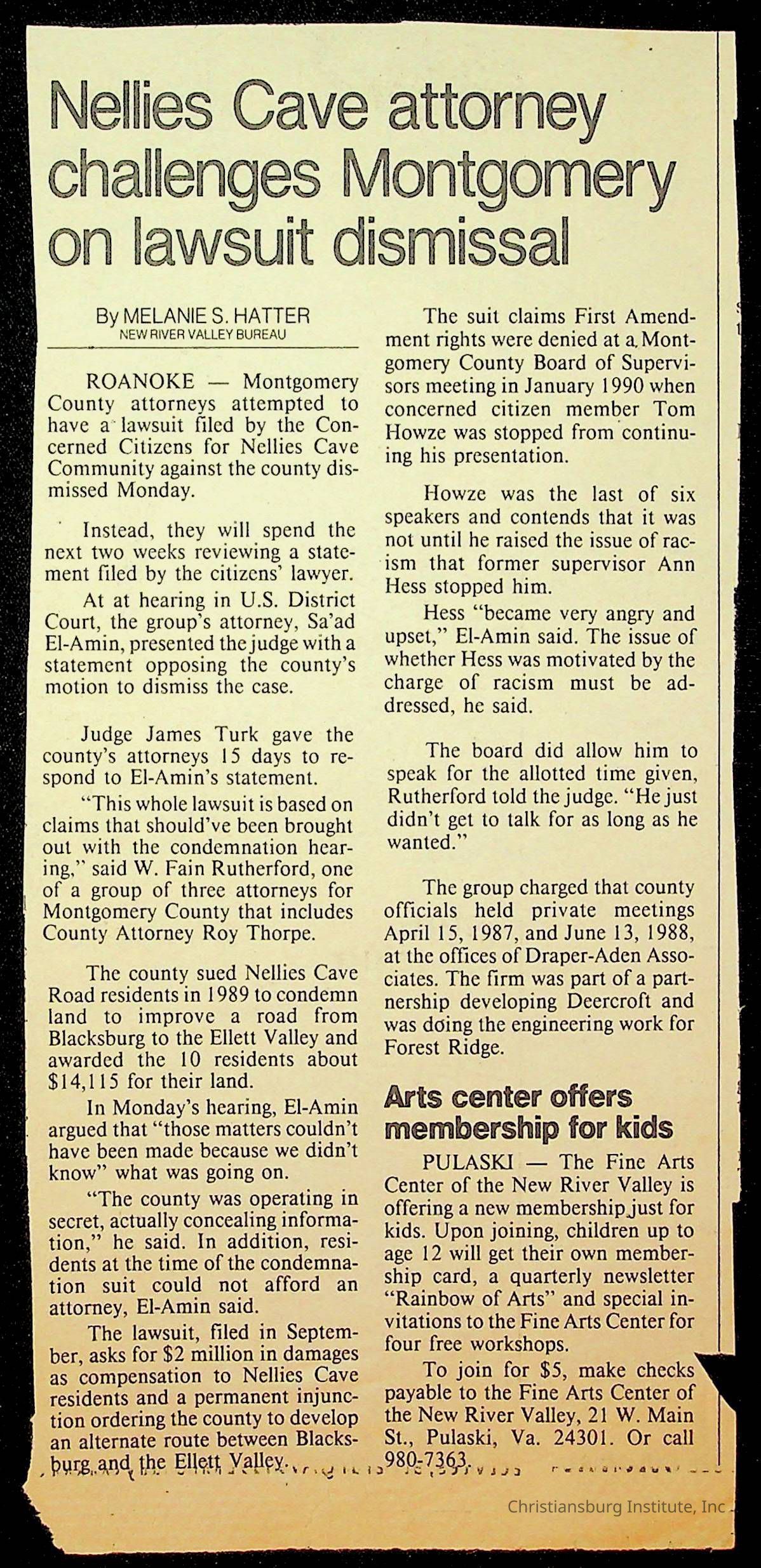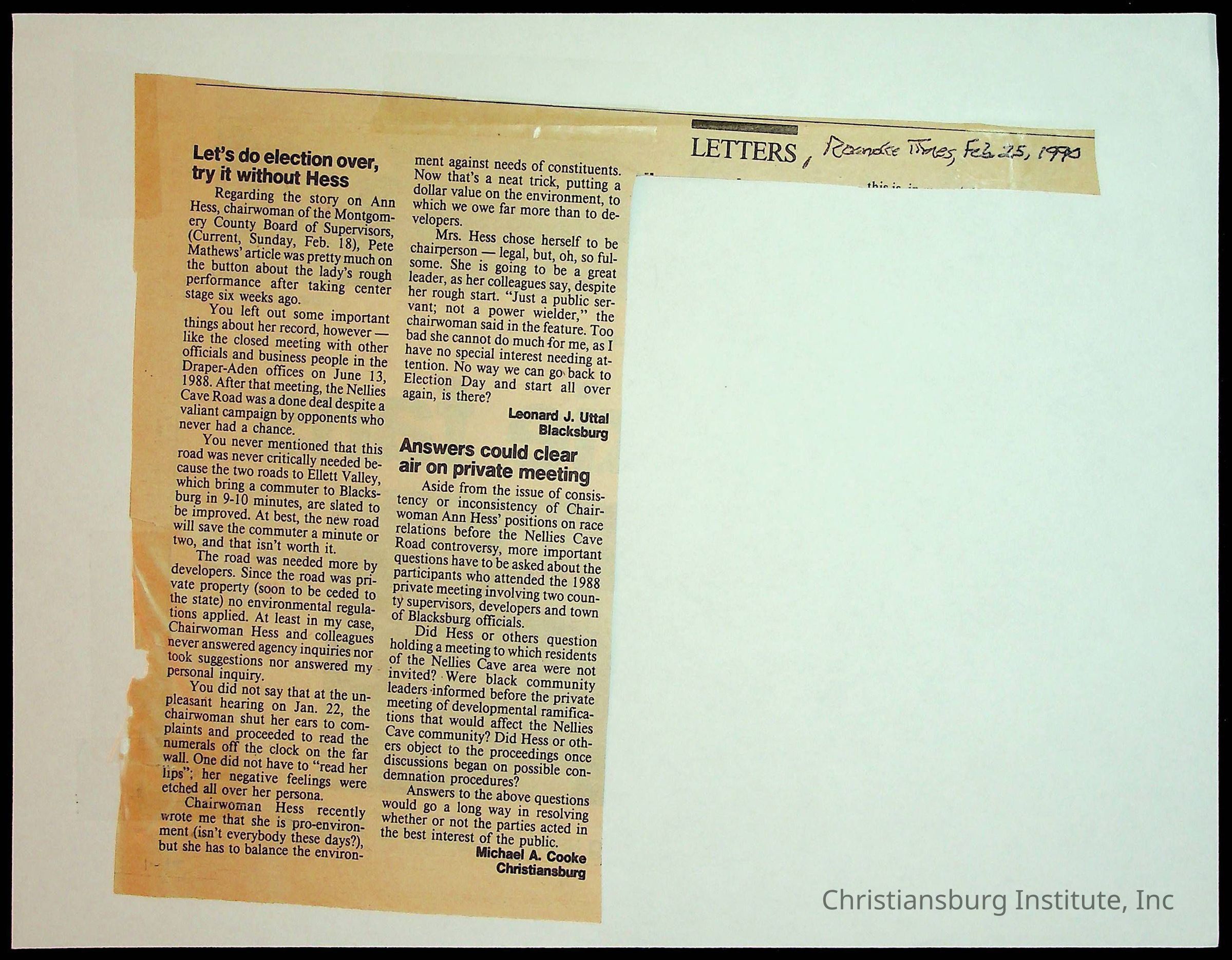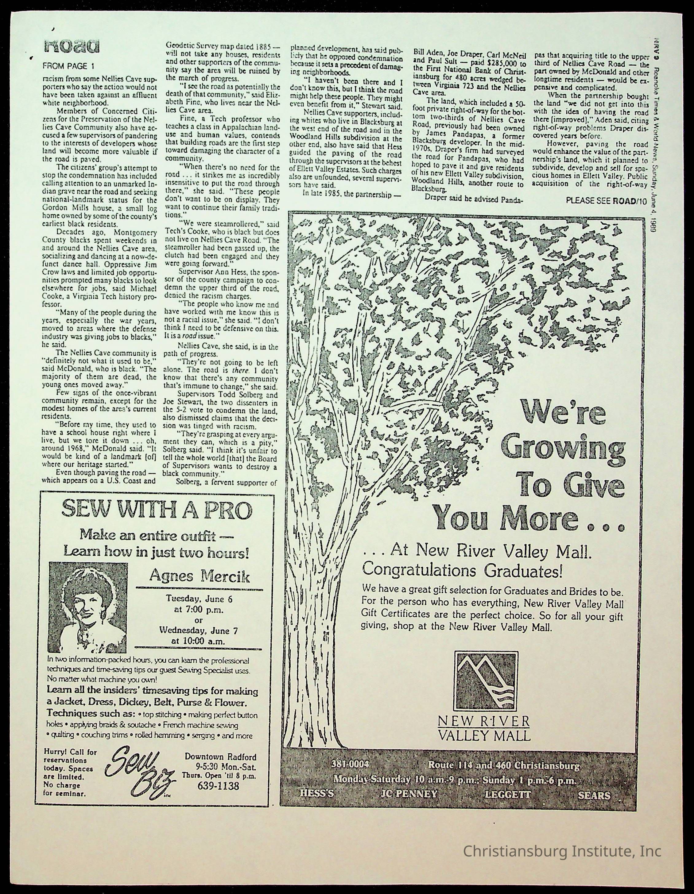 Fine, Elizabeth C., Concerned Citizens For Nellies Cave Community, Montgomery County, The Roanoke Times, The News Messenger, NRV Current