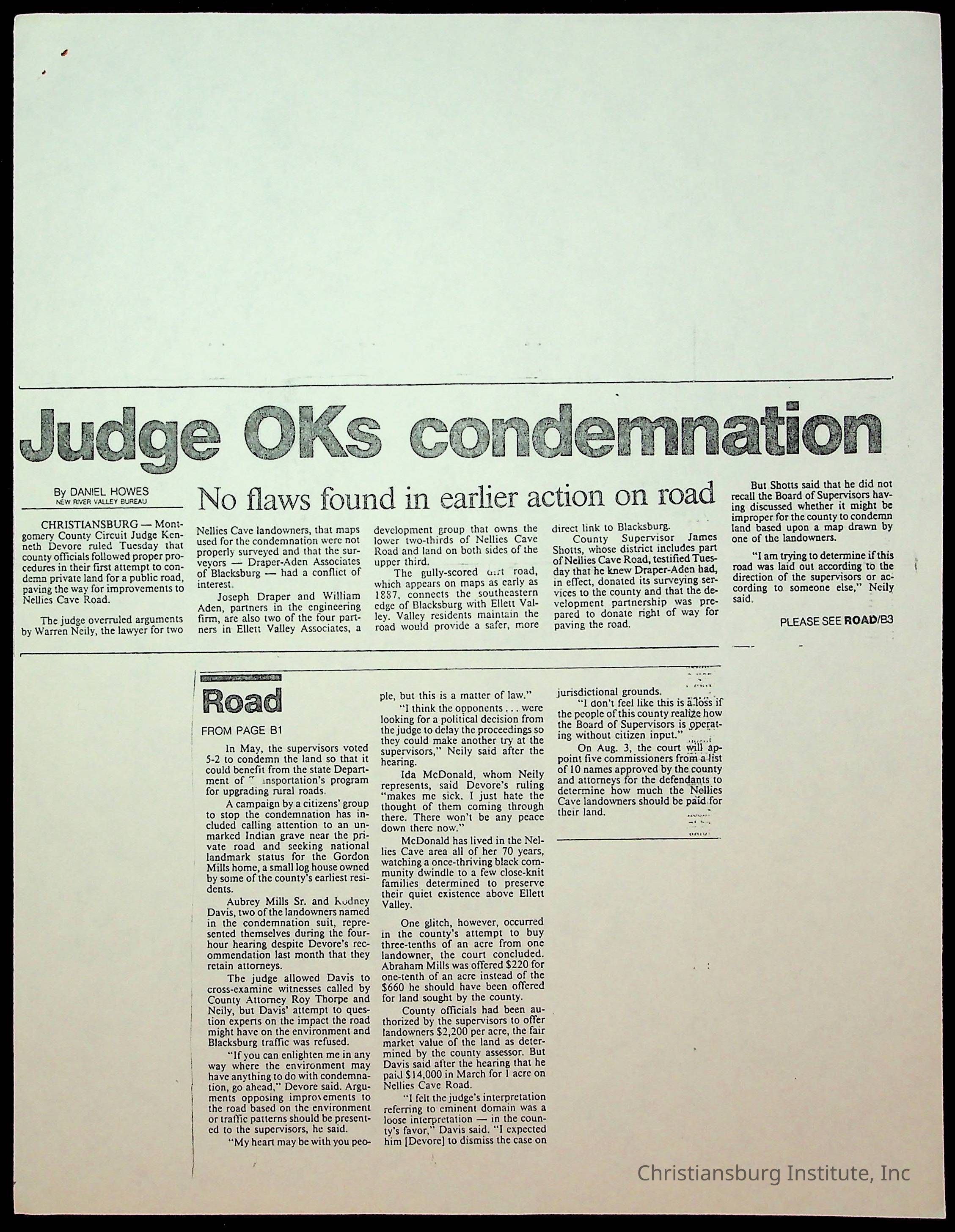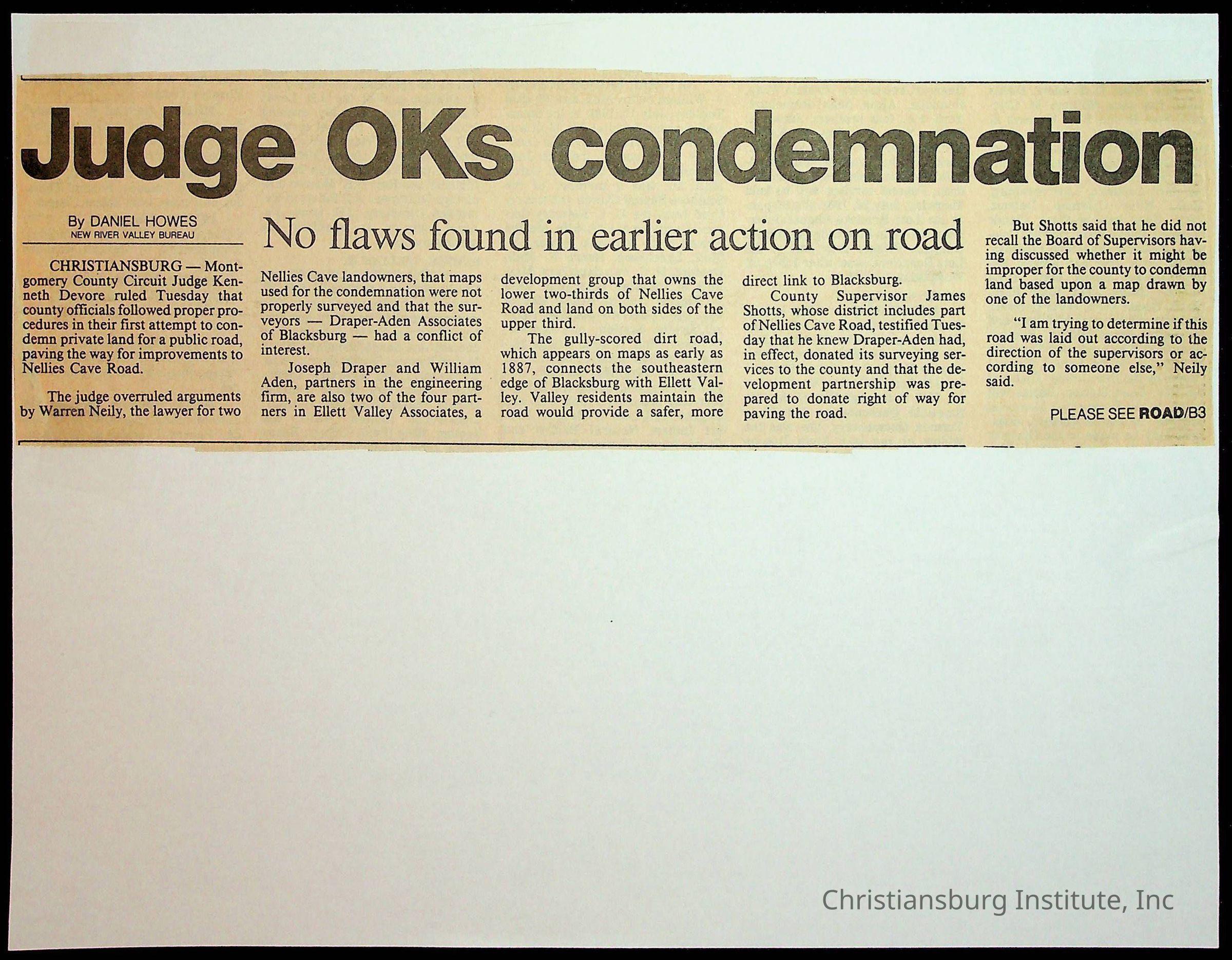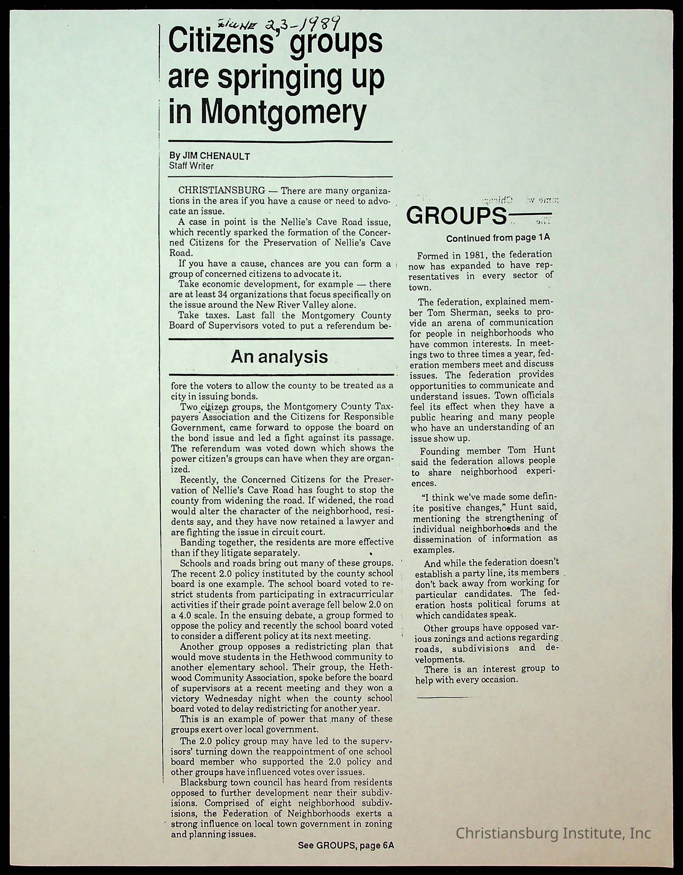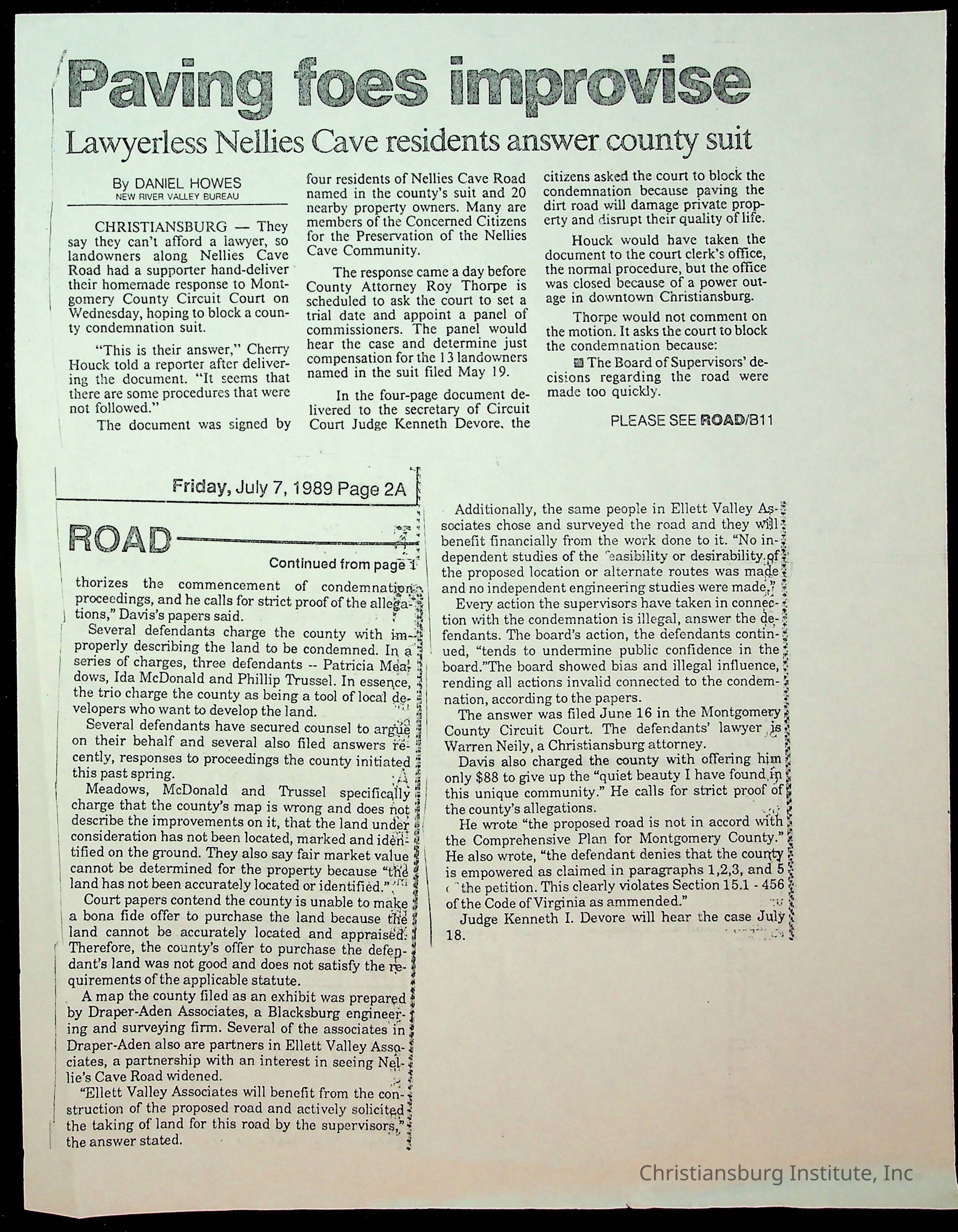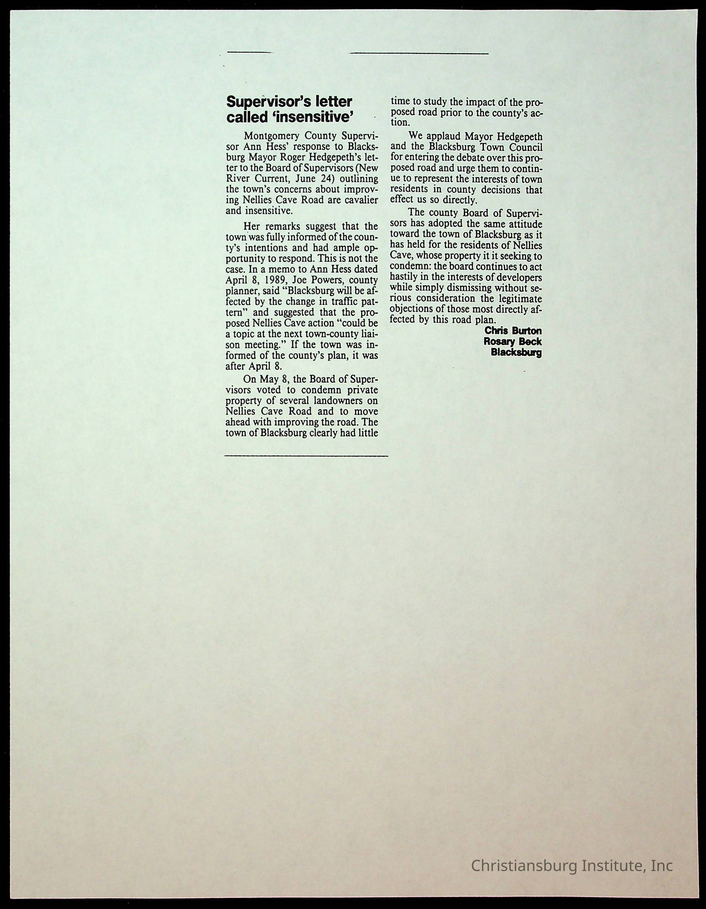 Fine, Elizabeth C., Concerned Citizens For Nellies Cave Community, Montgomery County, The Roanoke Times, The News Messenger, NRV Current