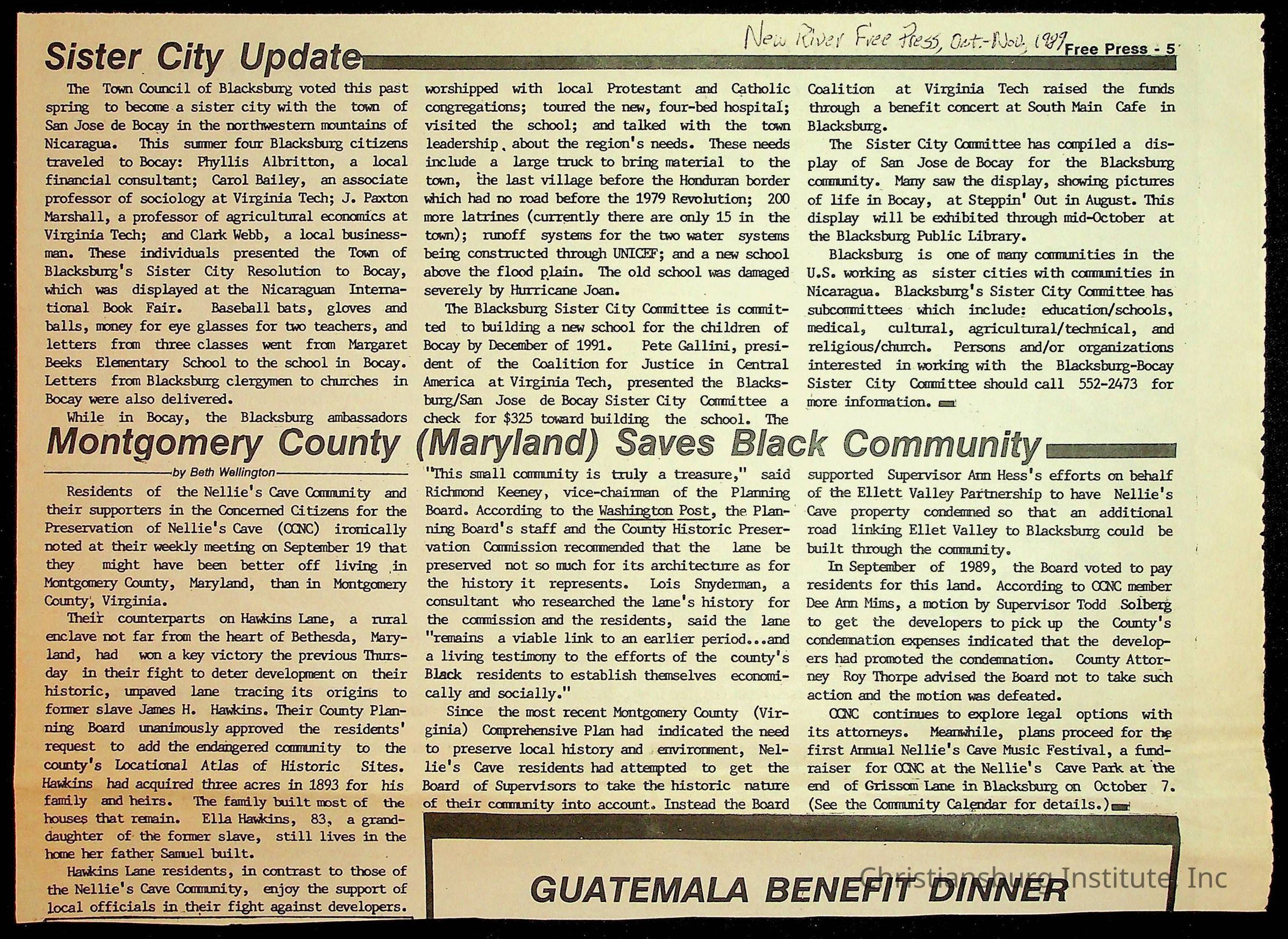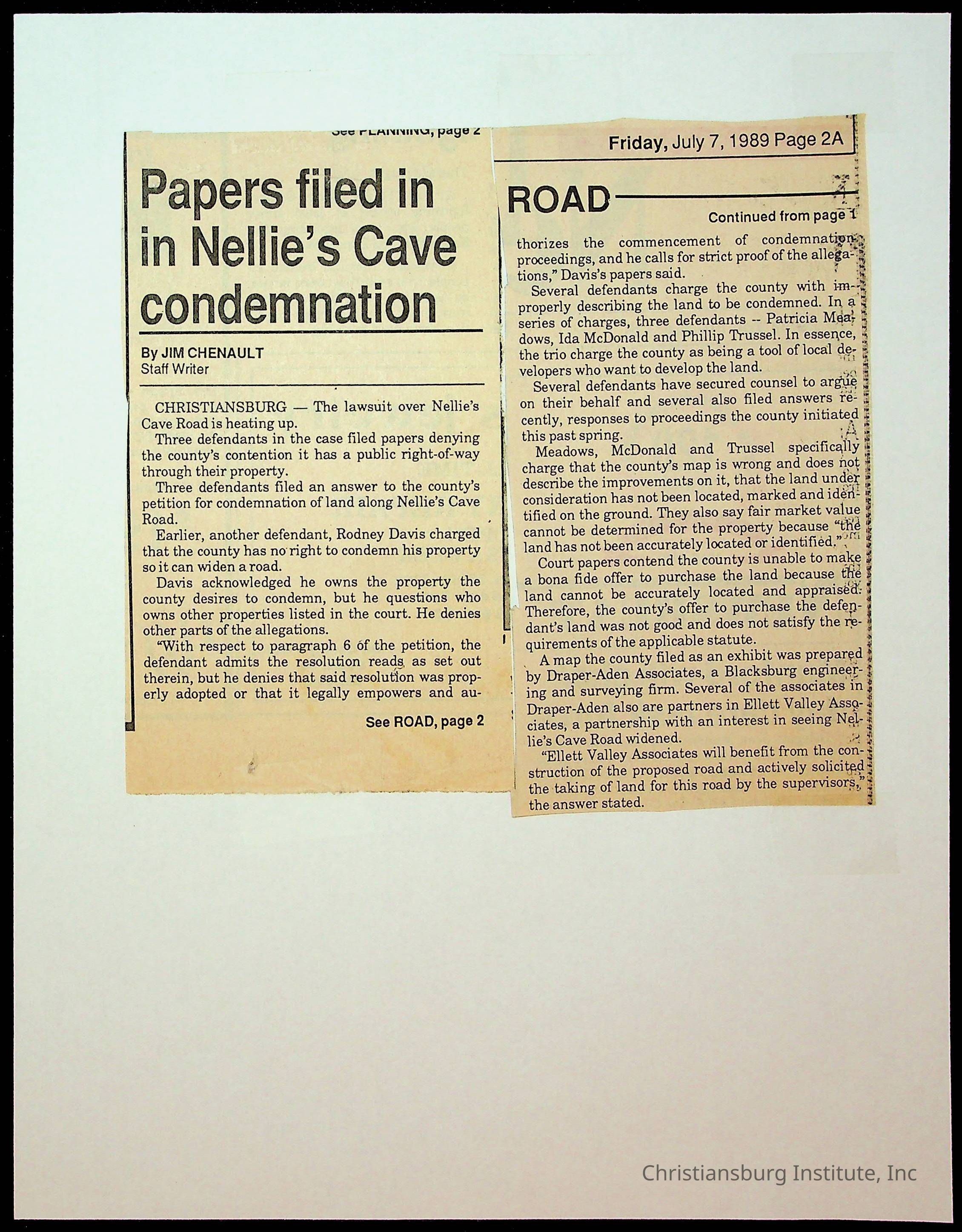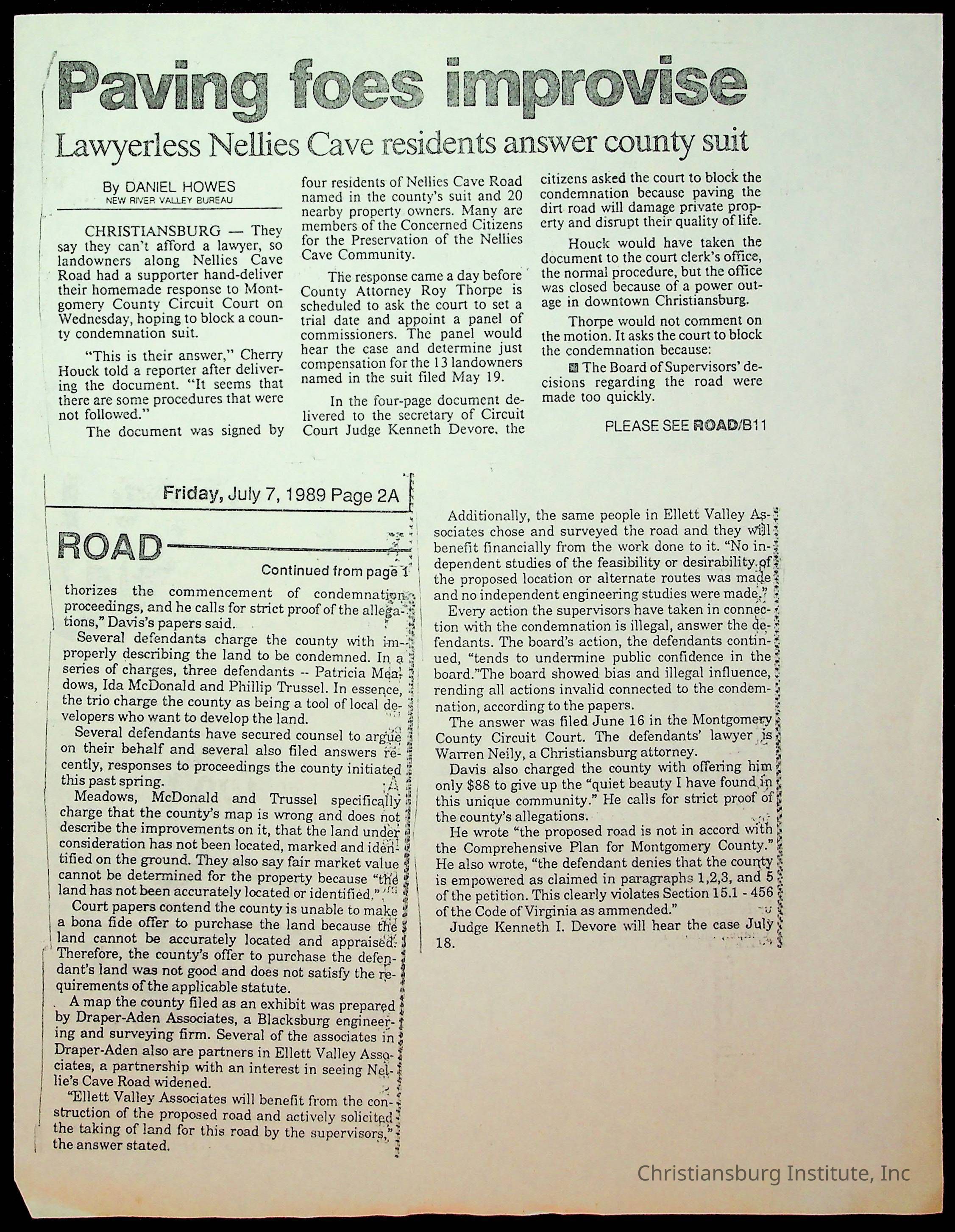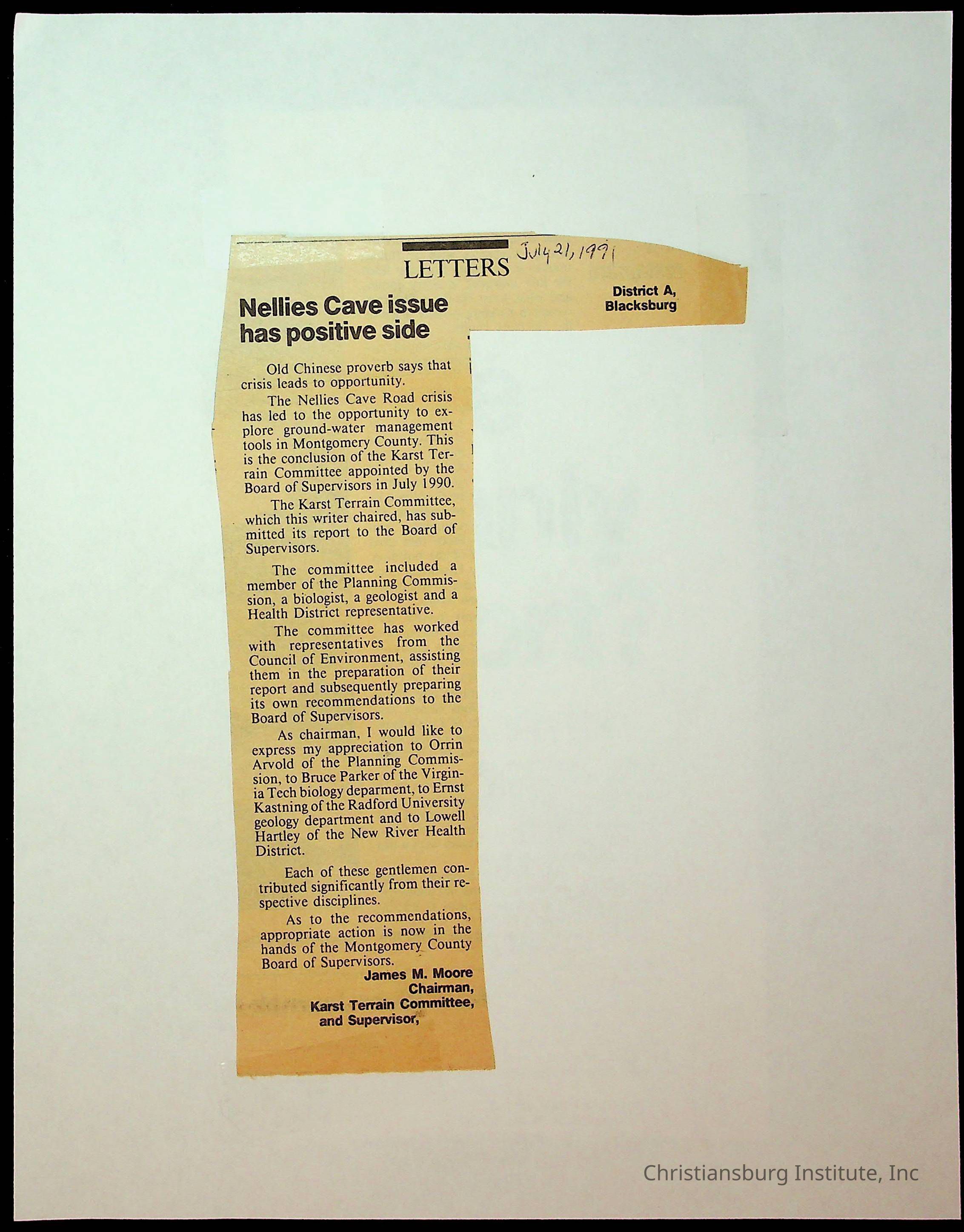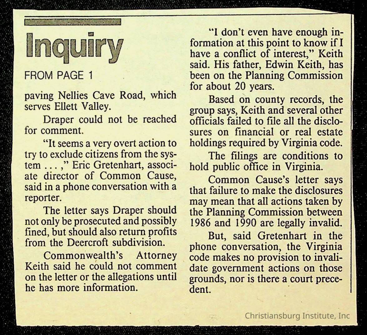 Fine, Elizabeth C., Concerned Citizens For Nellies Cave Community, Montgomery County, The Roanoke Times, The News Messenger, NRV Current