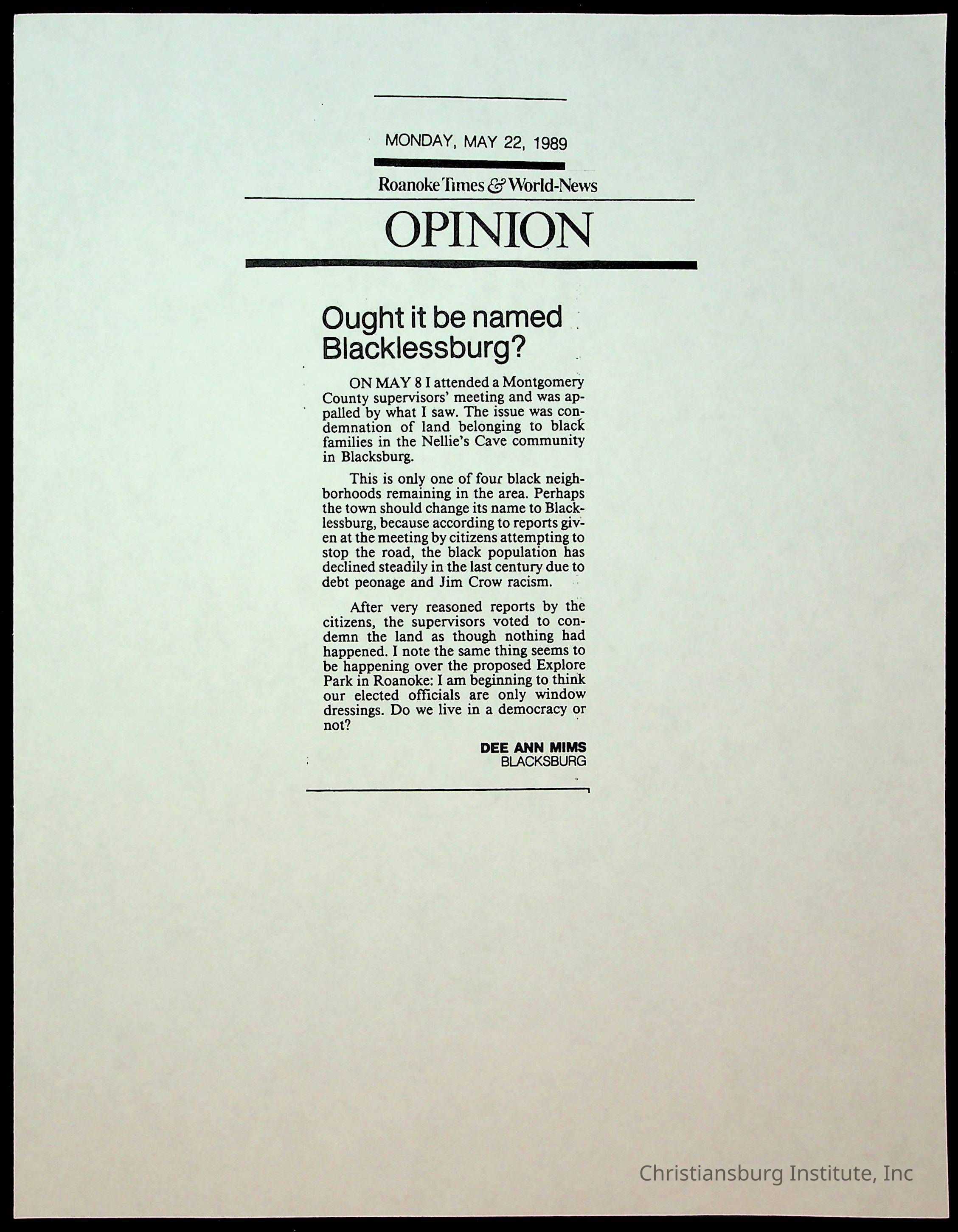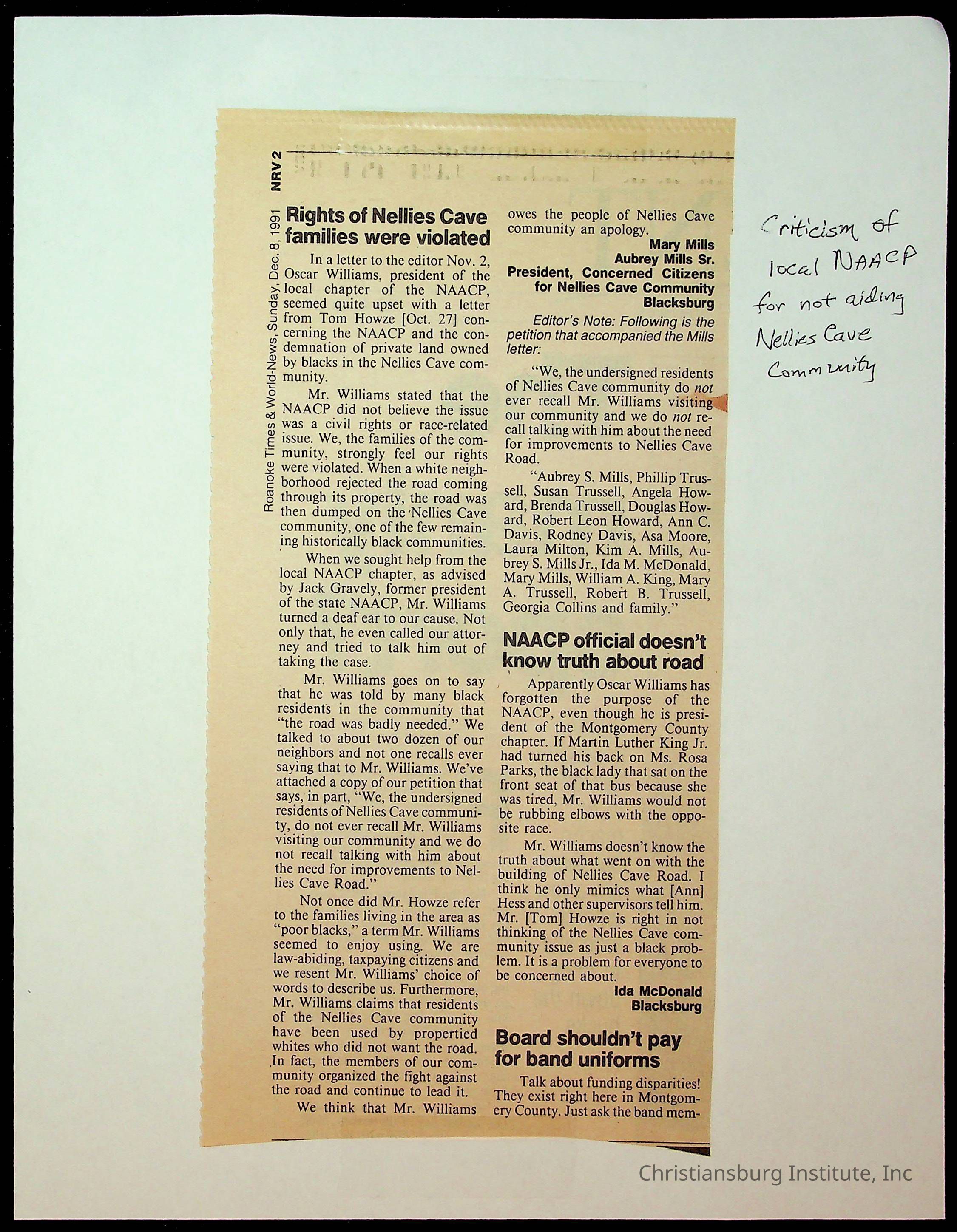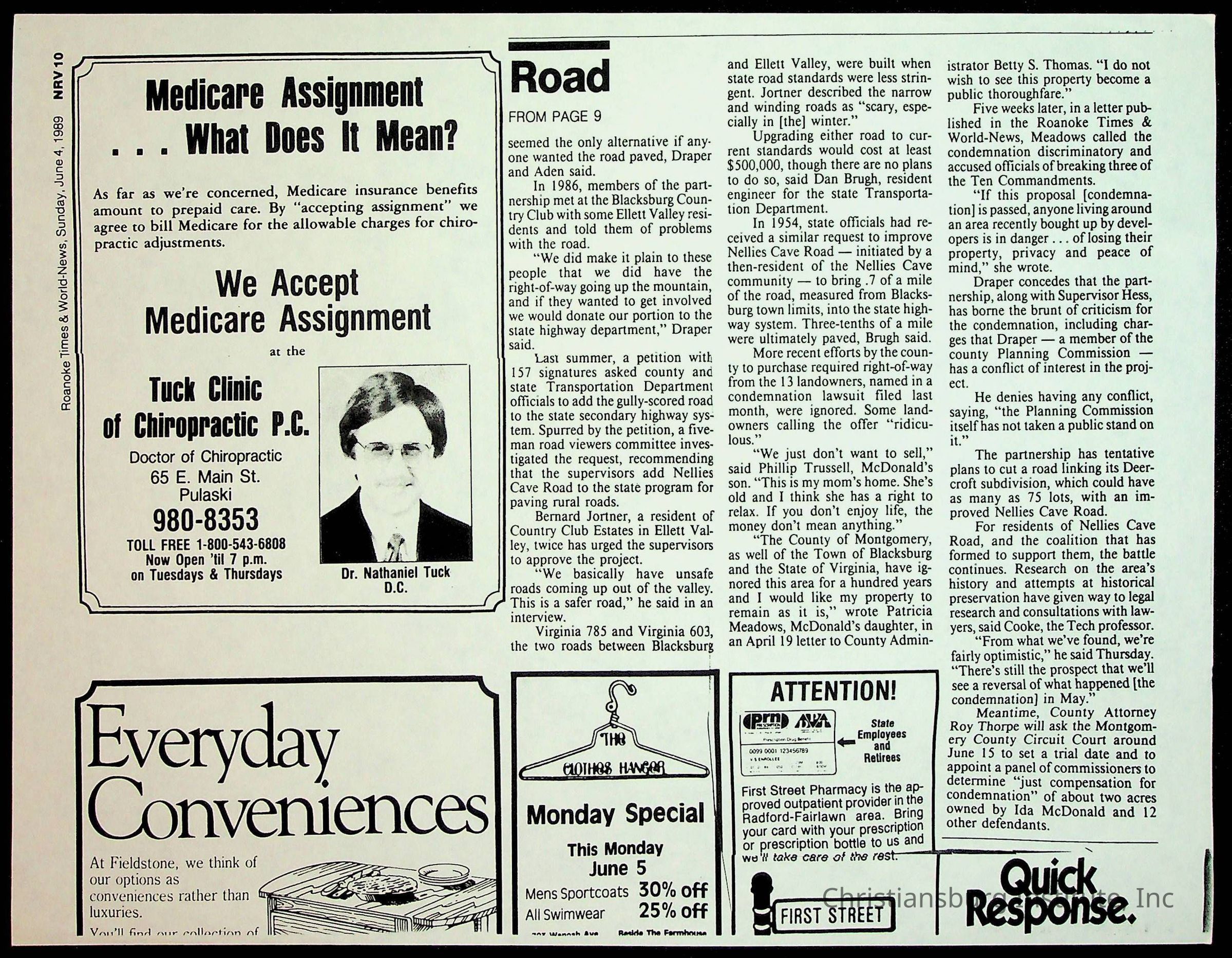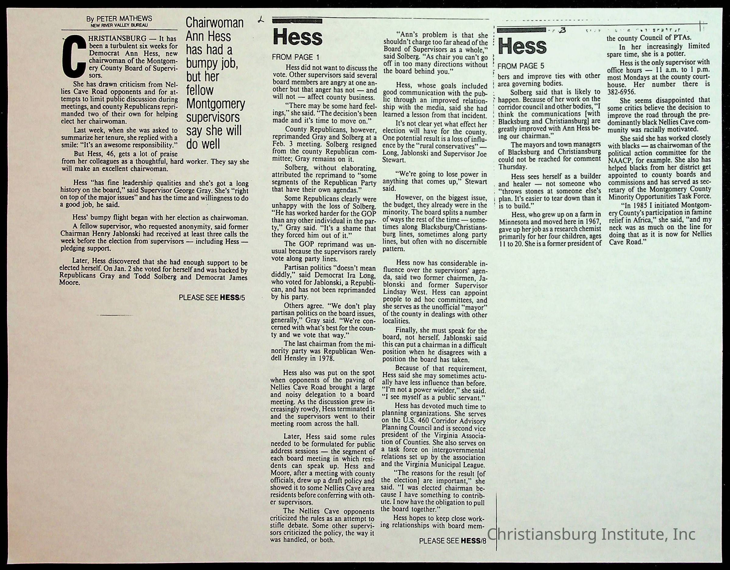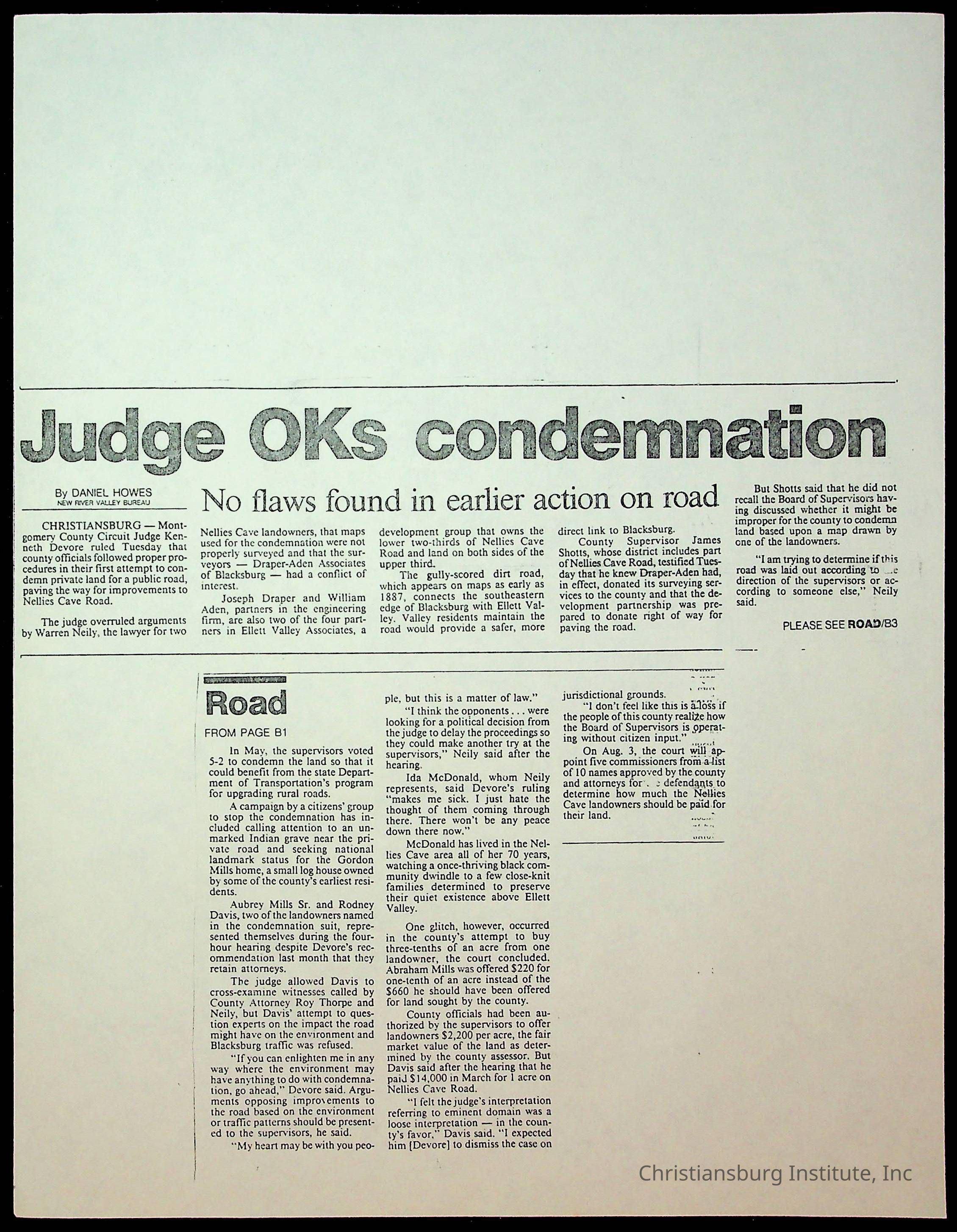 Fine, Elizabeth C., Concerned Citizens For Nellies Cave Community, Montgomery County, The Roanoke Times, The News Messenger, NRV Current