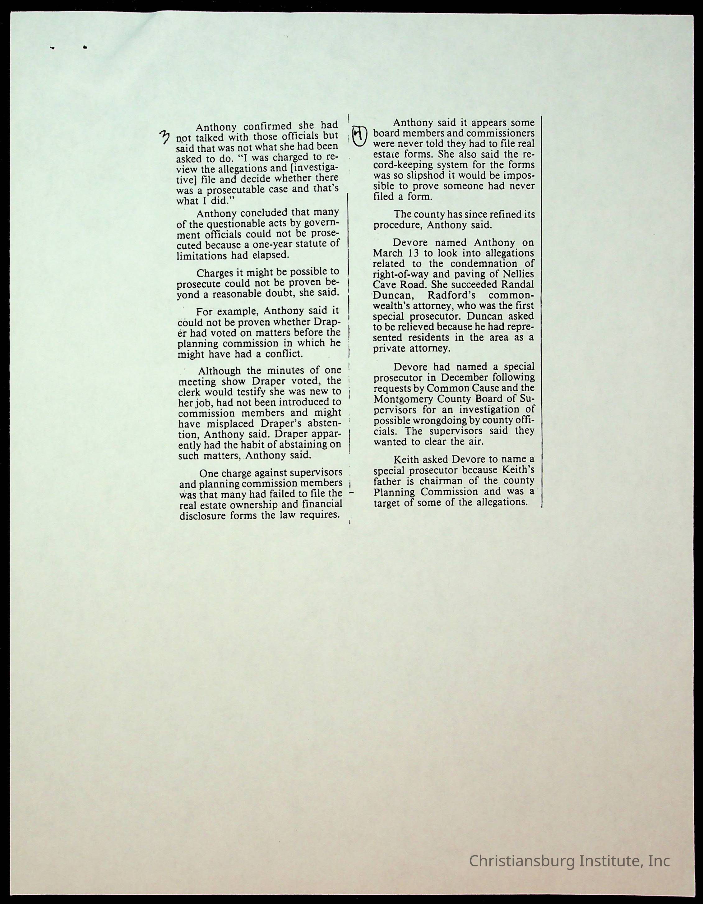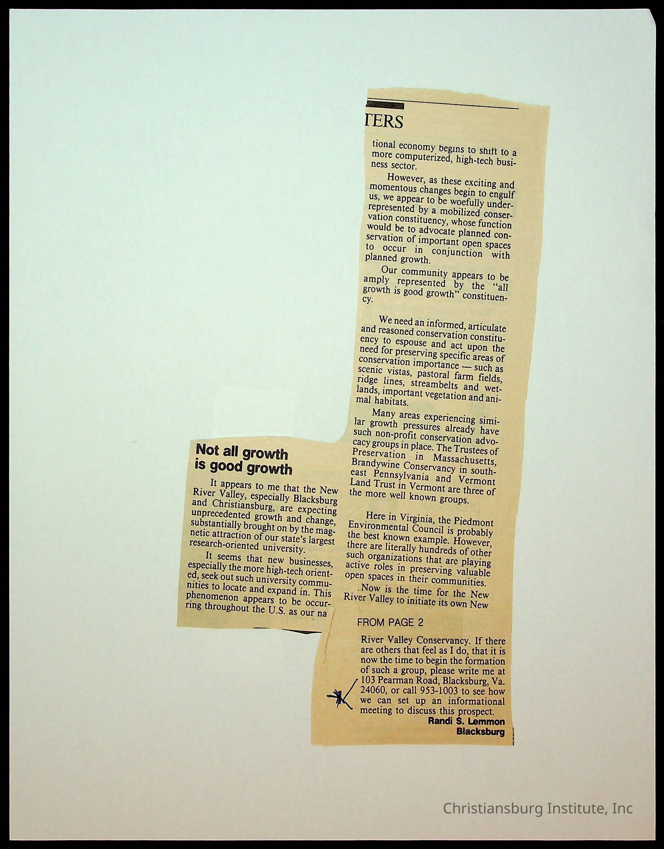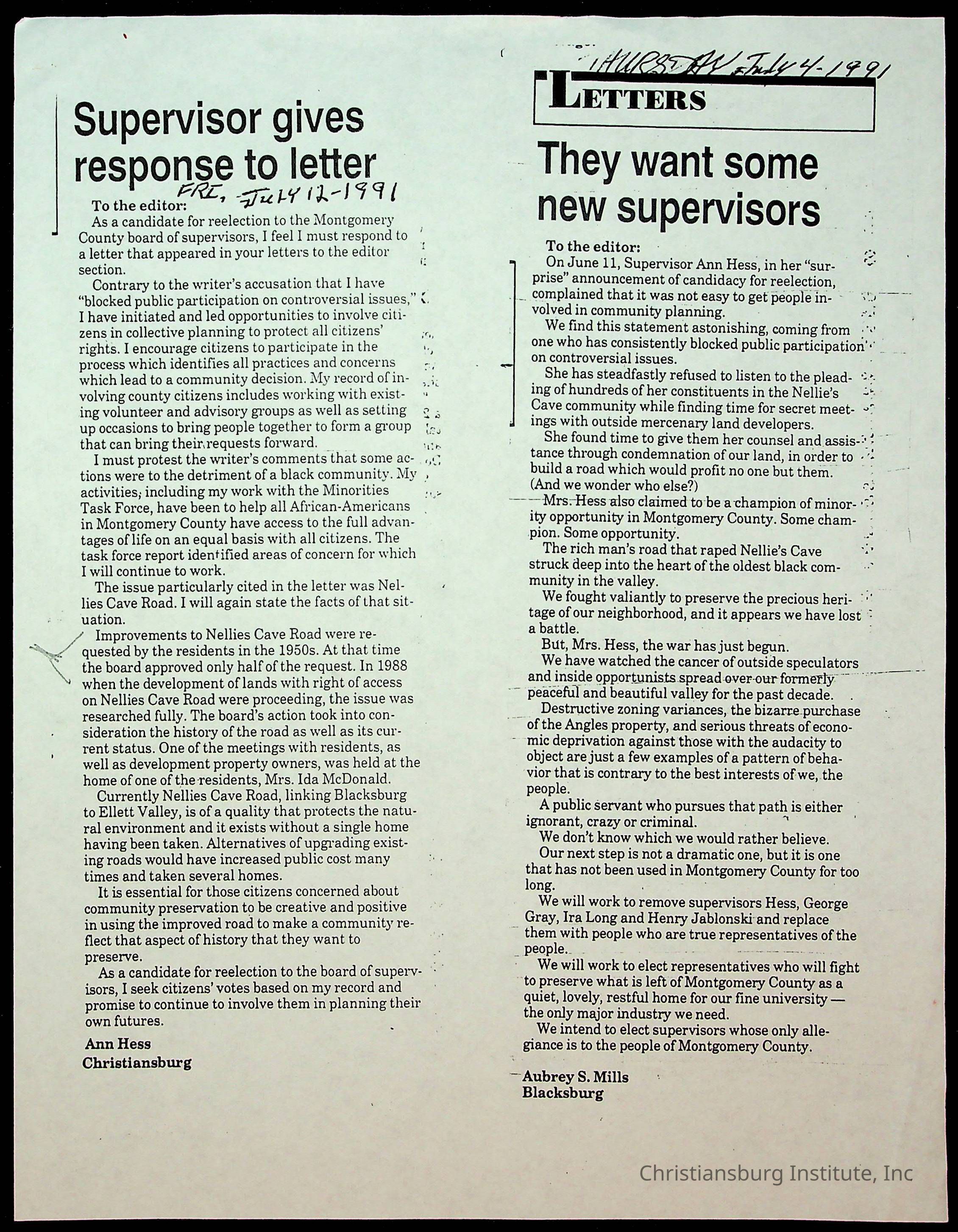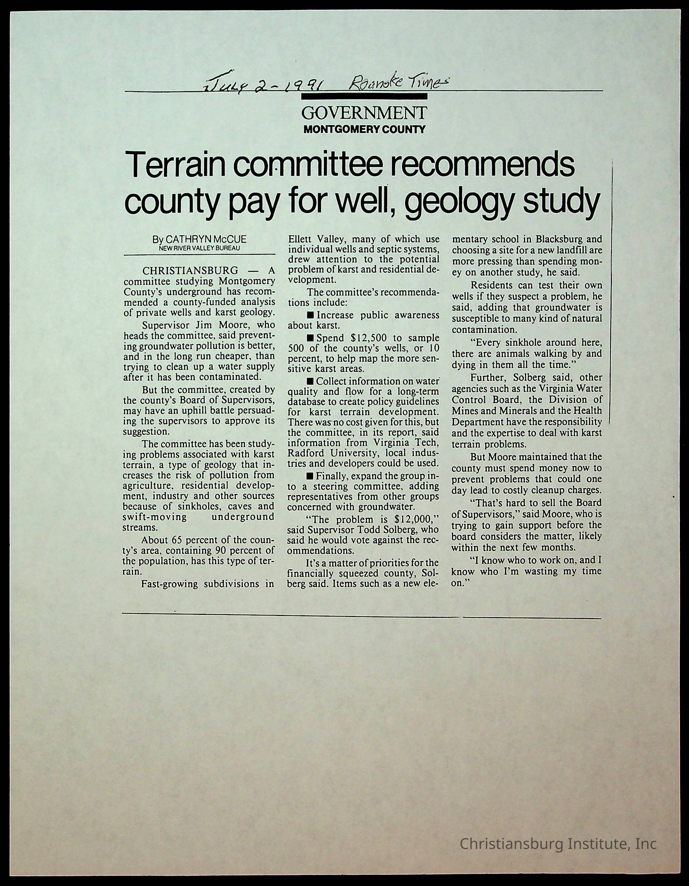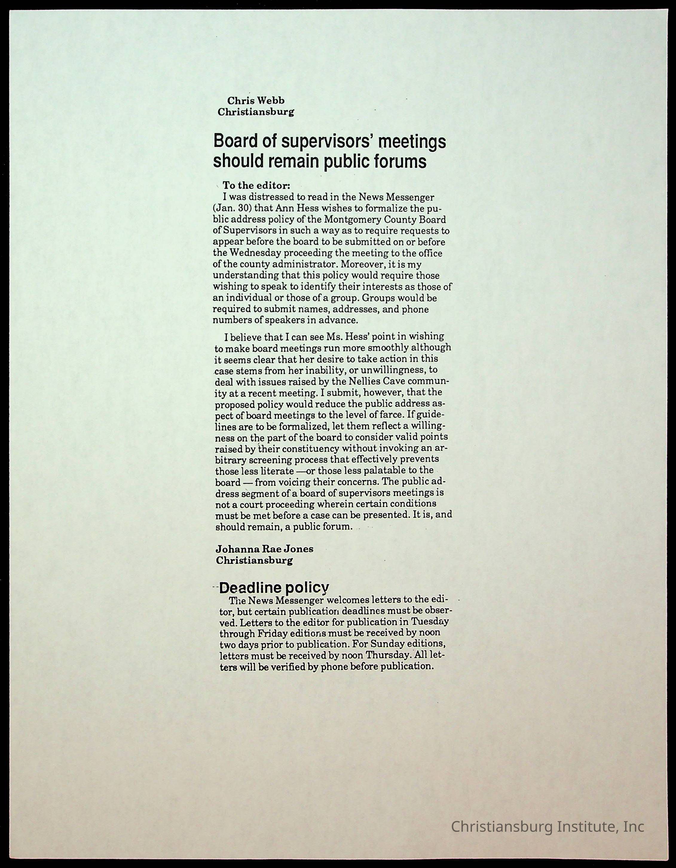 Fine, Elizabeth C., Concerned Citizens For Nellies Cave Community, Montgomery County, The Roanoke Times, The News Messenger, NRV Current