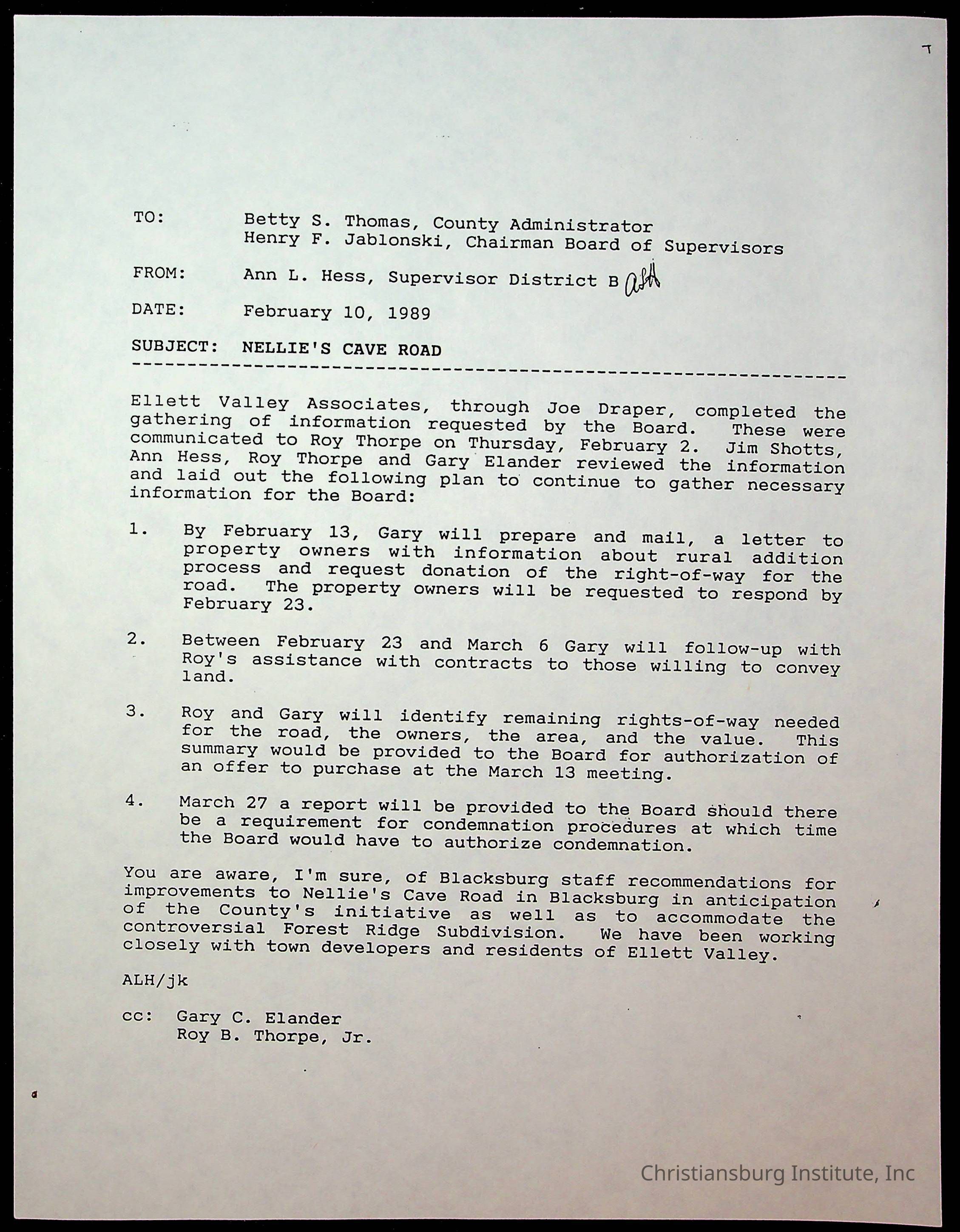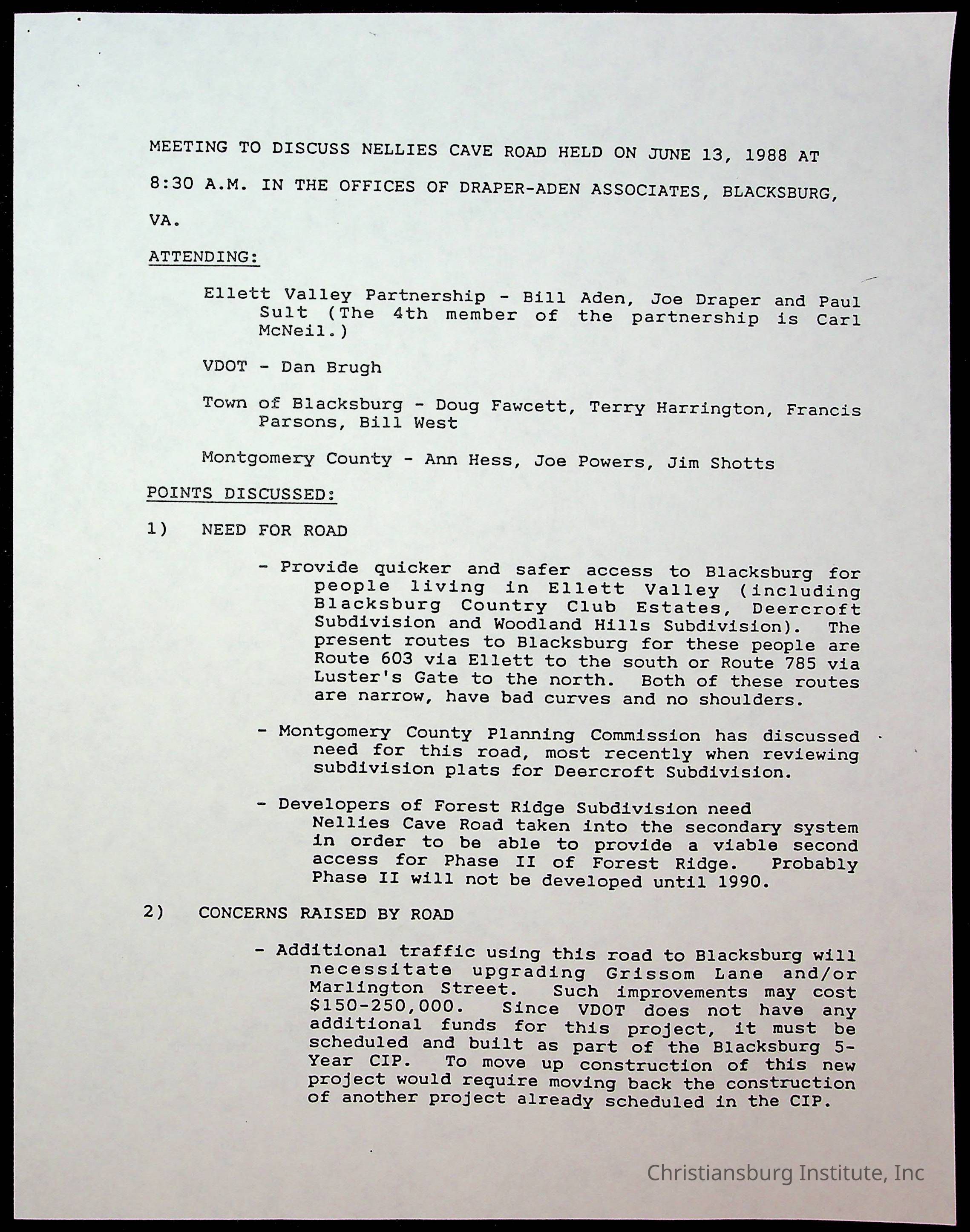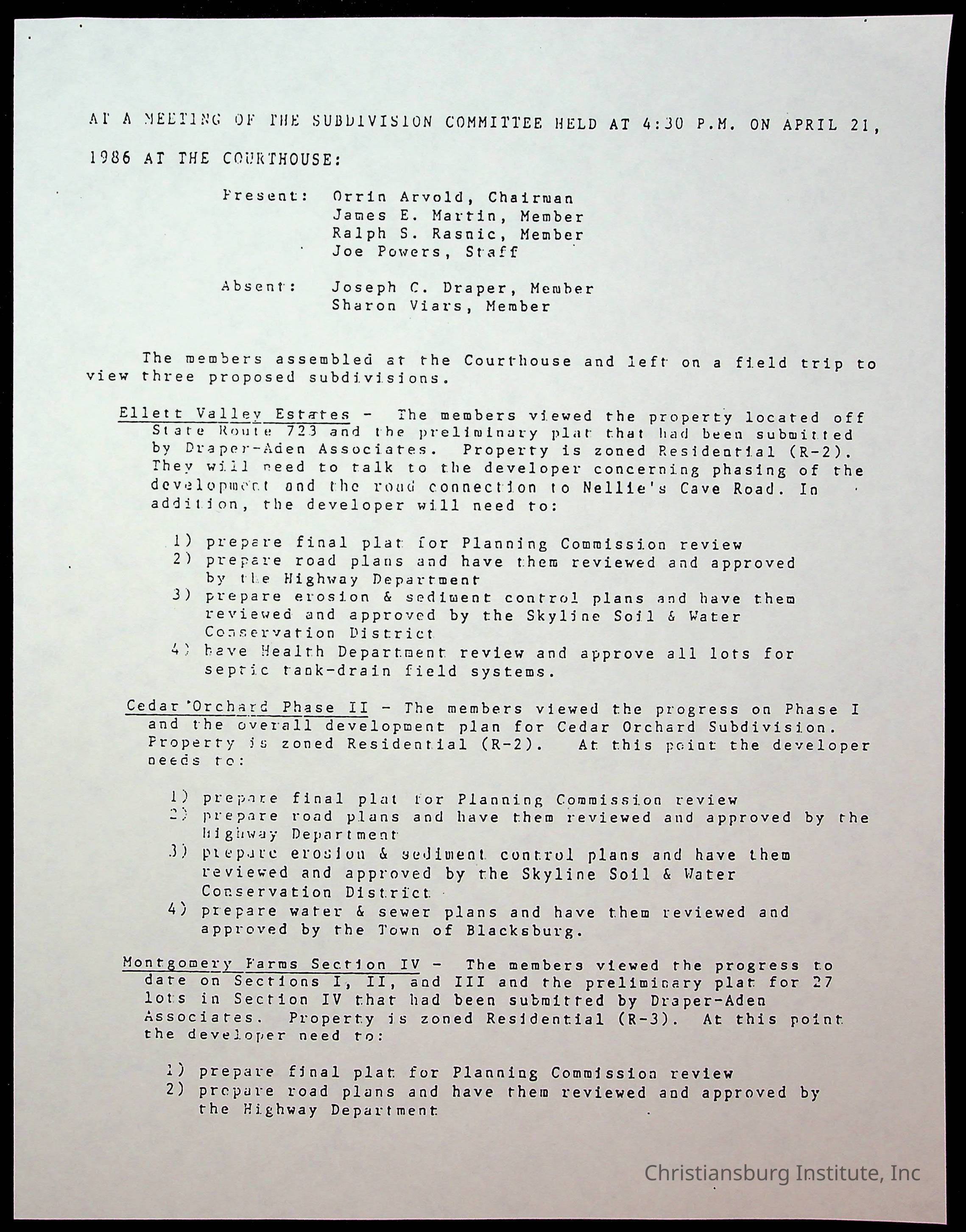 Ellett Valley Associates, Hess, Ann L., Thomas, Betty S., Jablonski, Henry F., Elandeer, Gary C., Thorpe, Roy B JR, Fine, Elizabeth C., Montgomery County