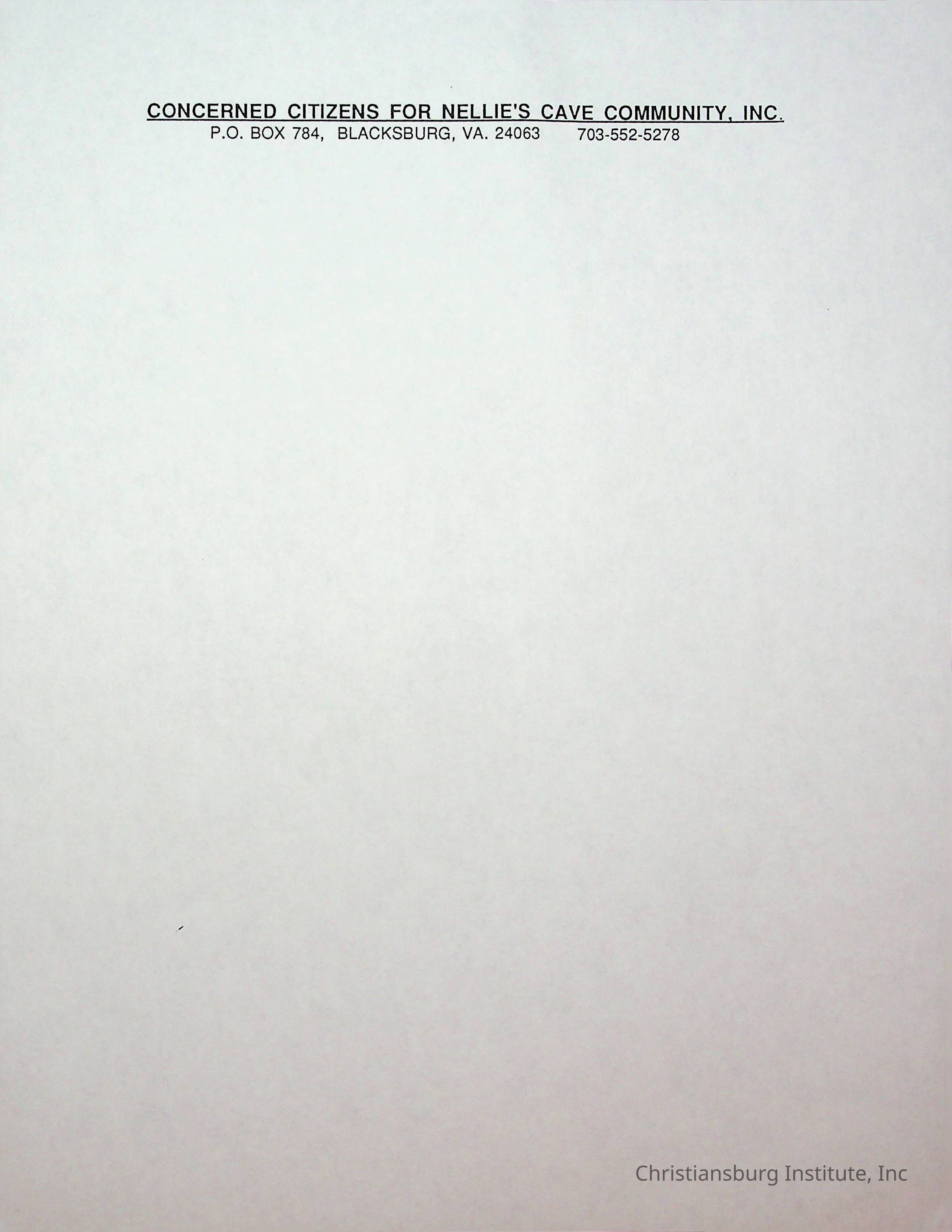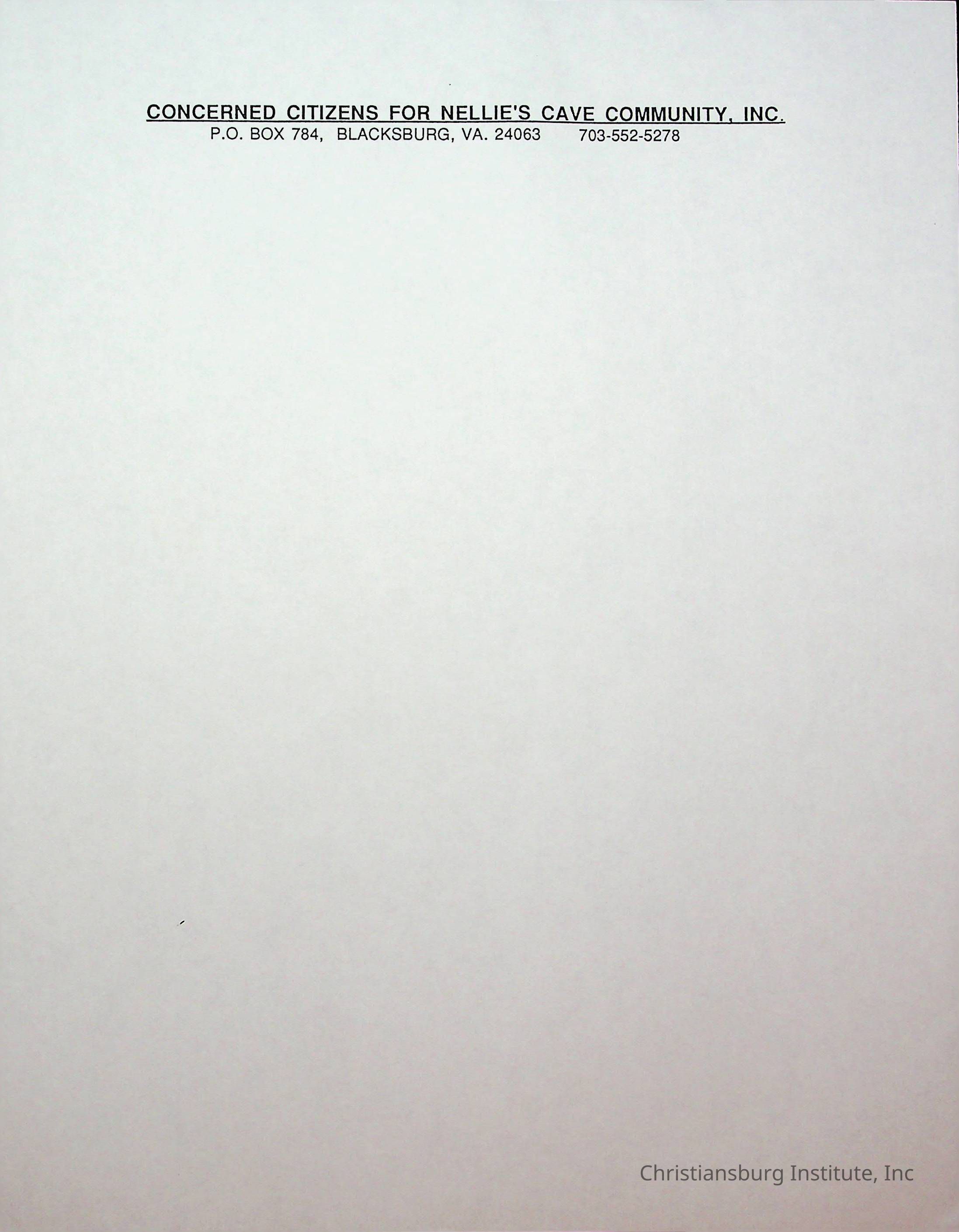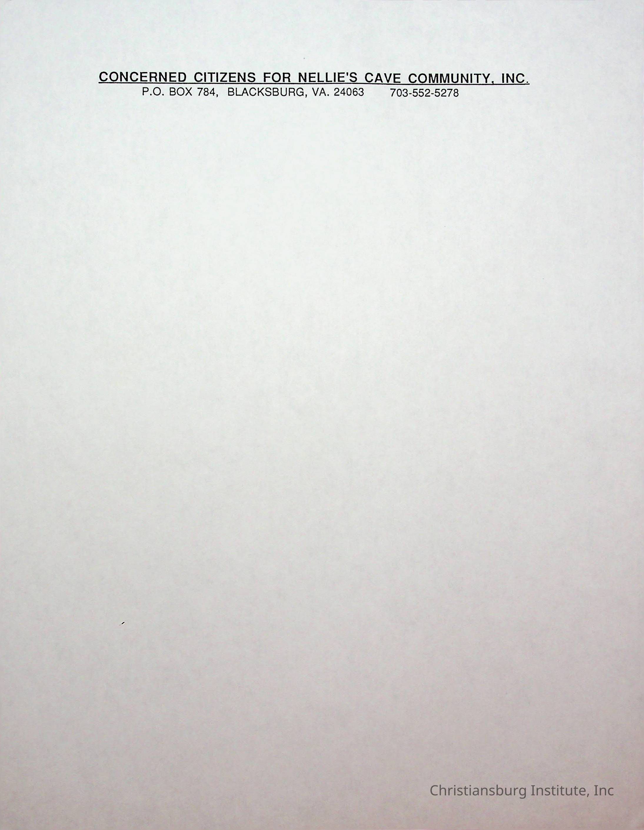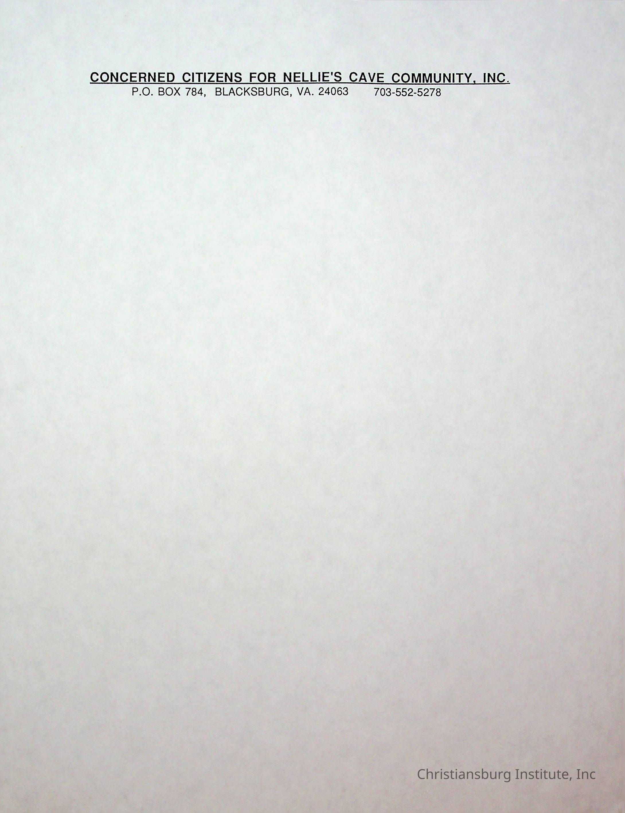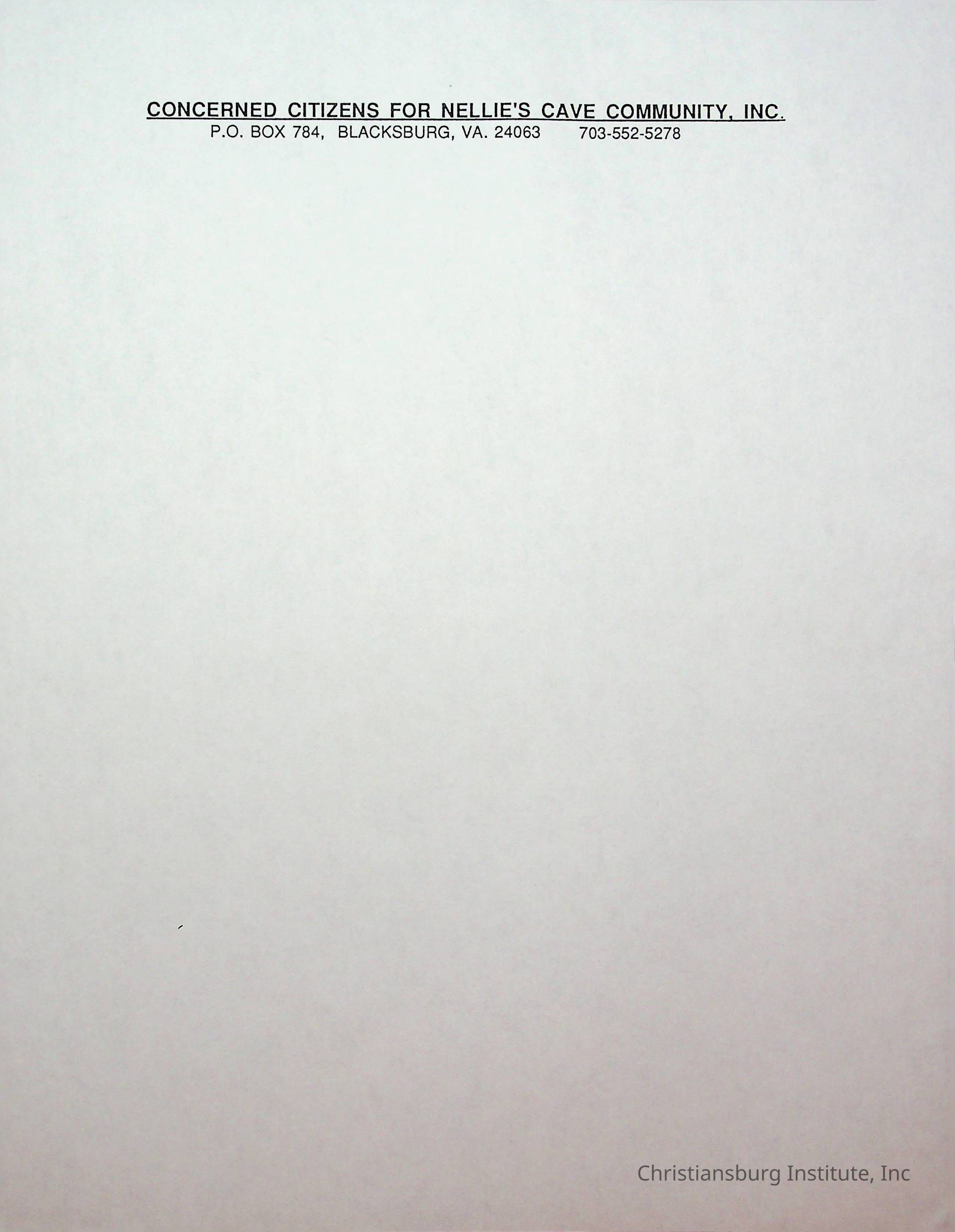 An archive of stationary materials for the Concerned Citizens for Nellies Cave Community, Inc compiled by Elizabeth Fine, circa 1990s.