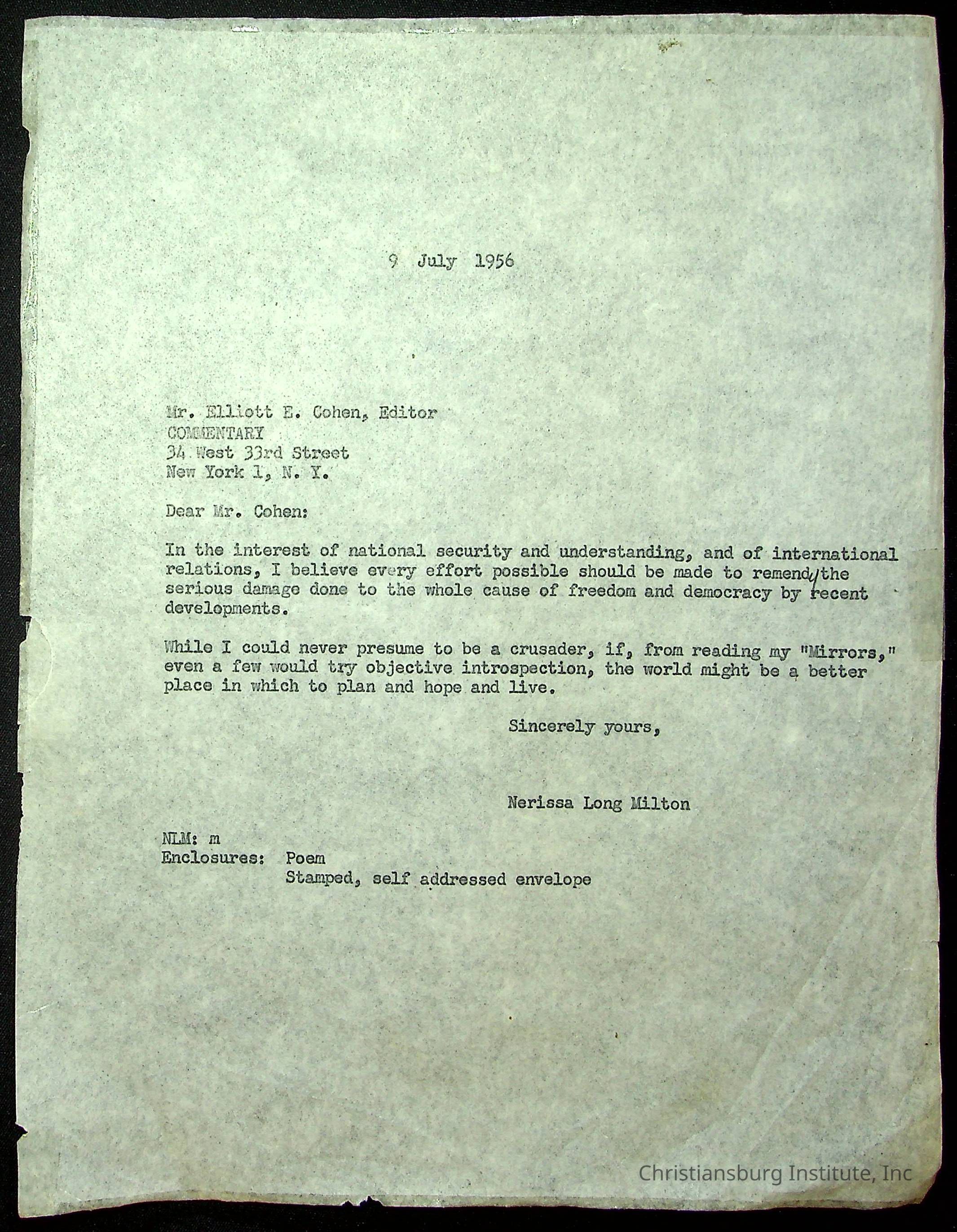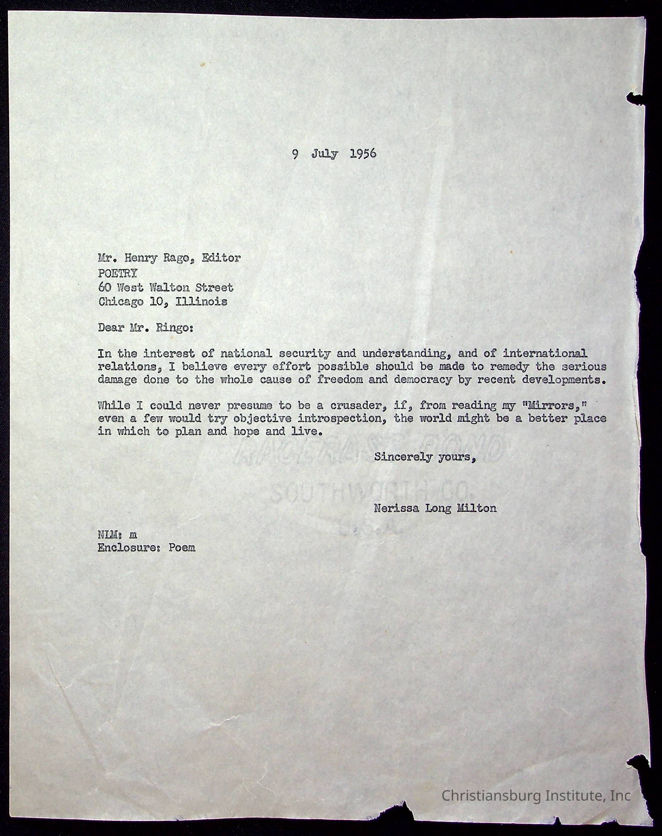 A series of letters that were sent from Nerissa Long Milton sent to various editors including her poems dated c. 1950s.