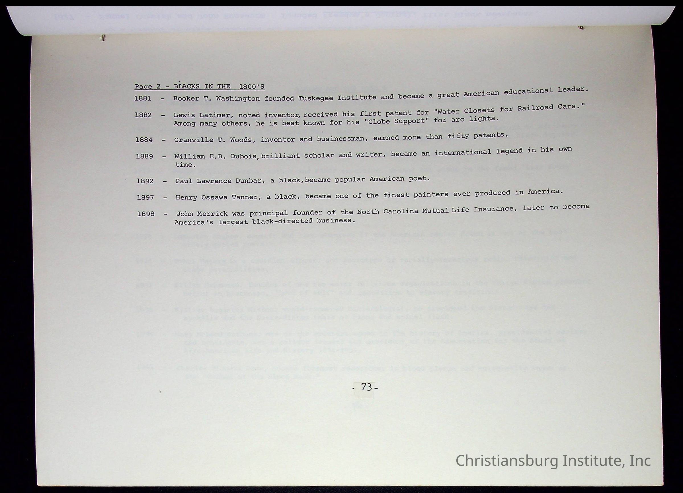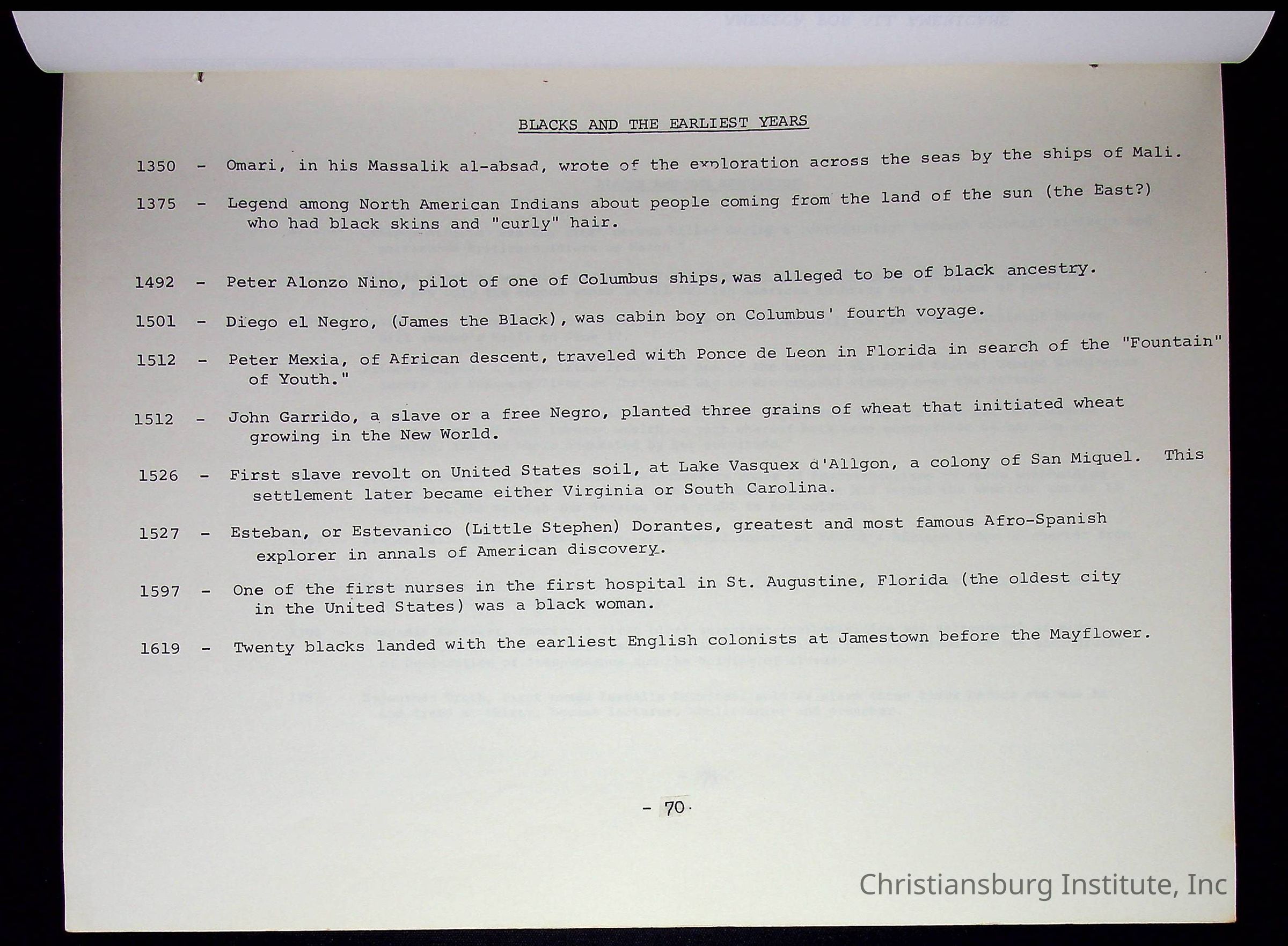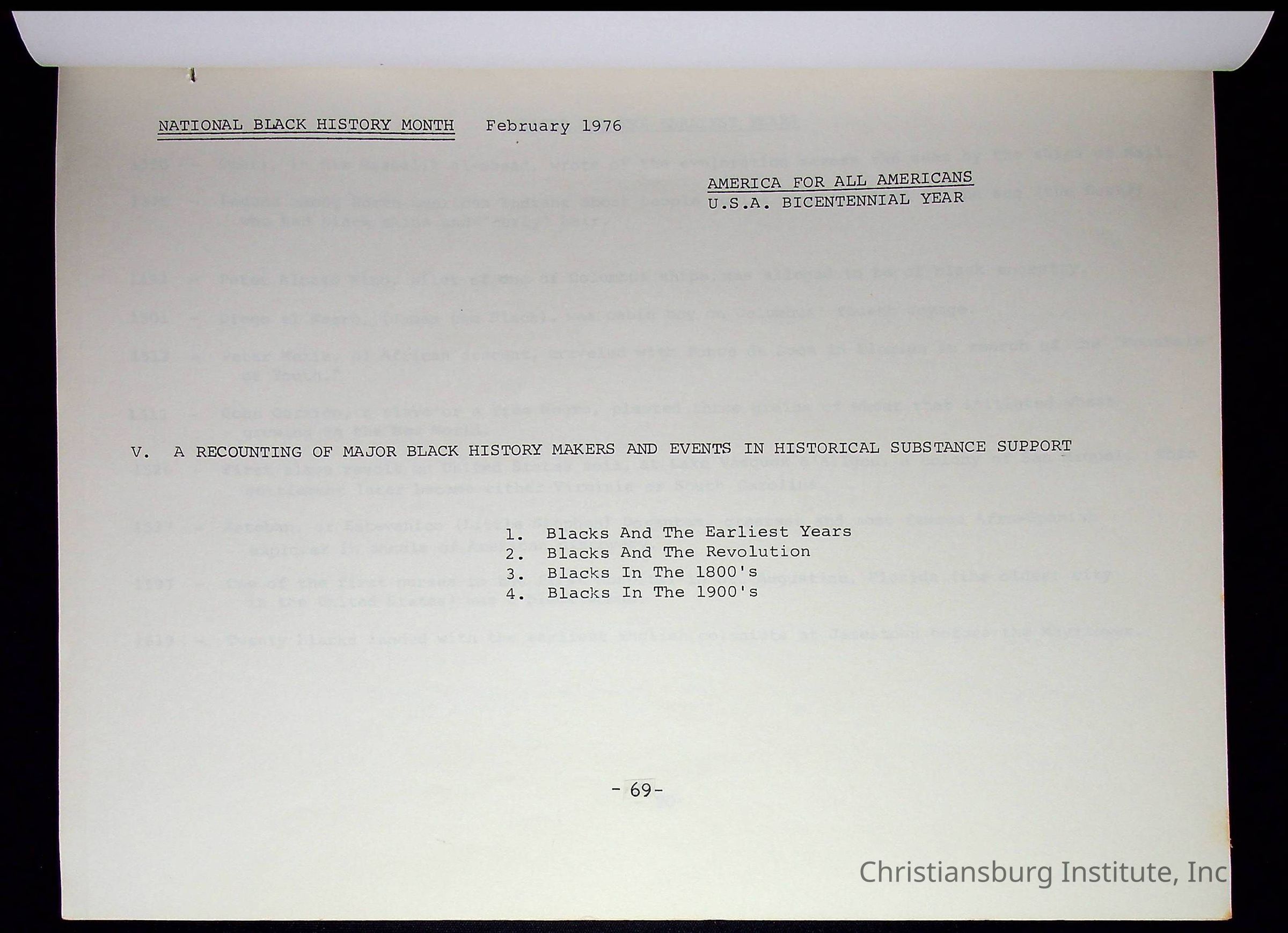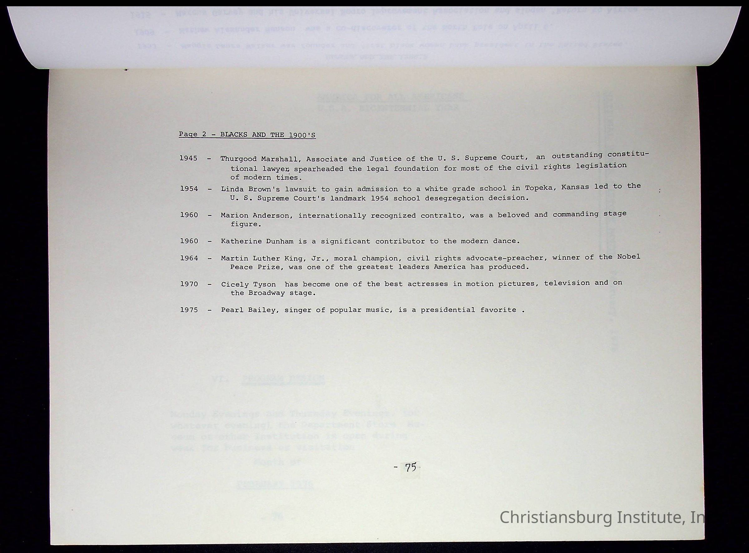 A compilation of materials that are relevant to Black history during the 20th century complied by Nerissa Long Milton, undated.