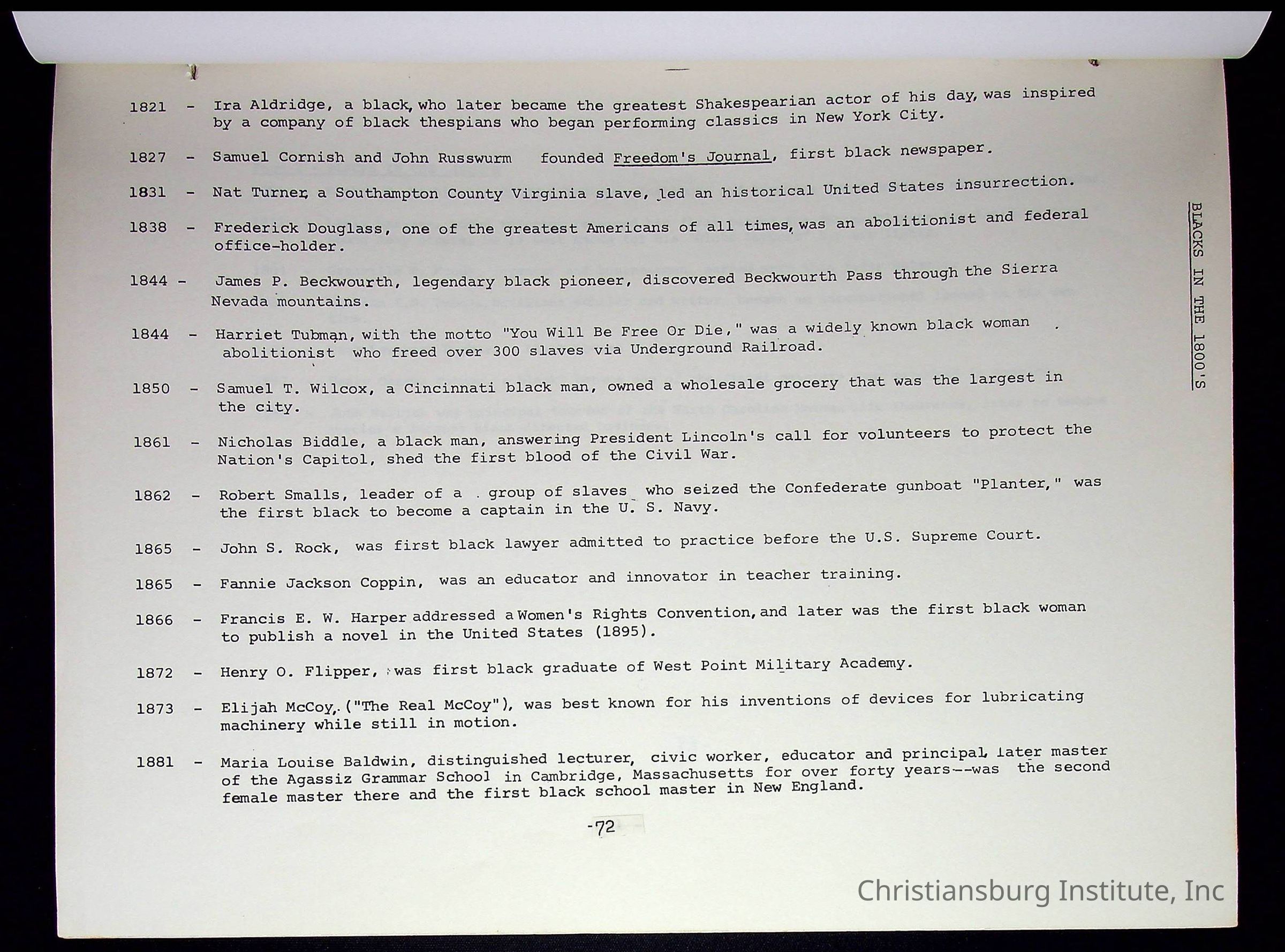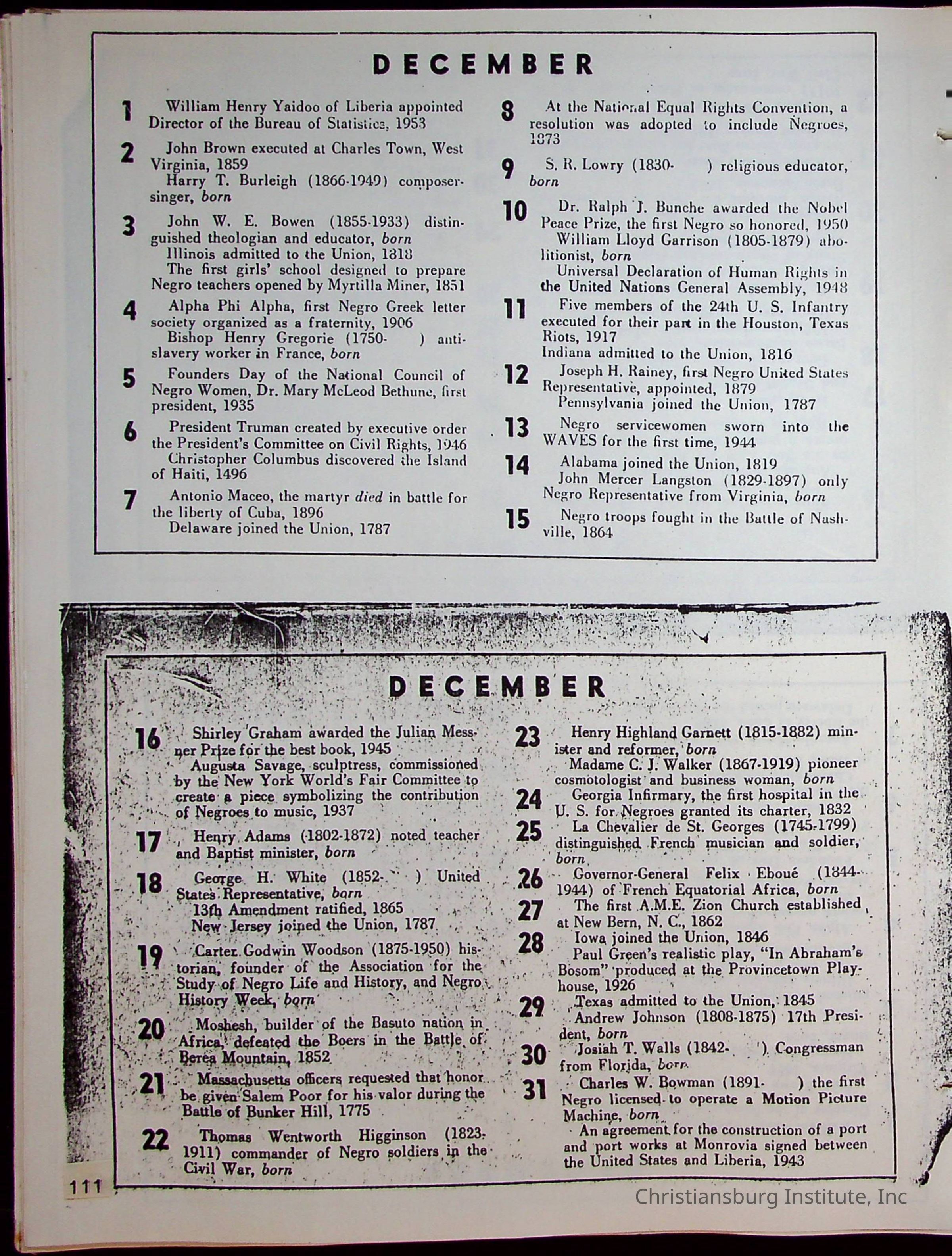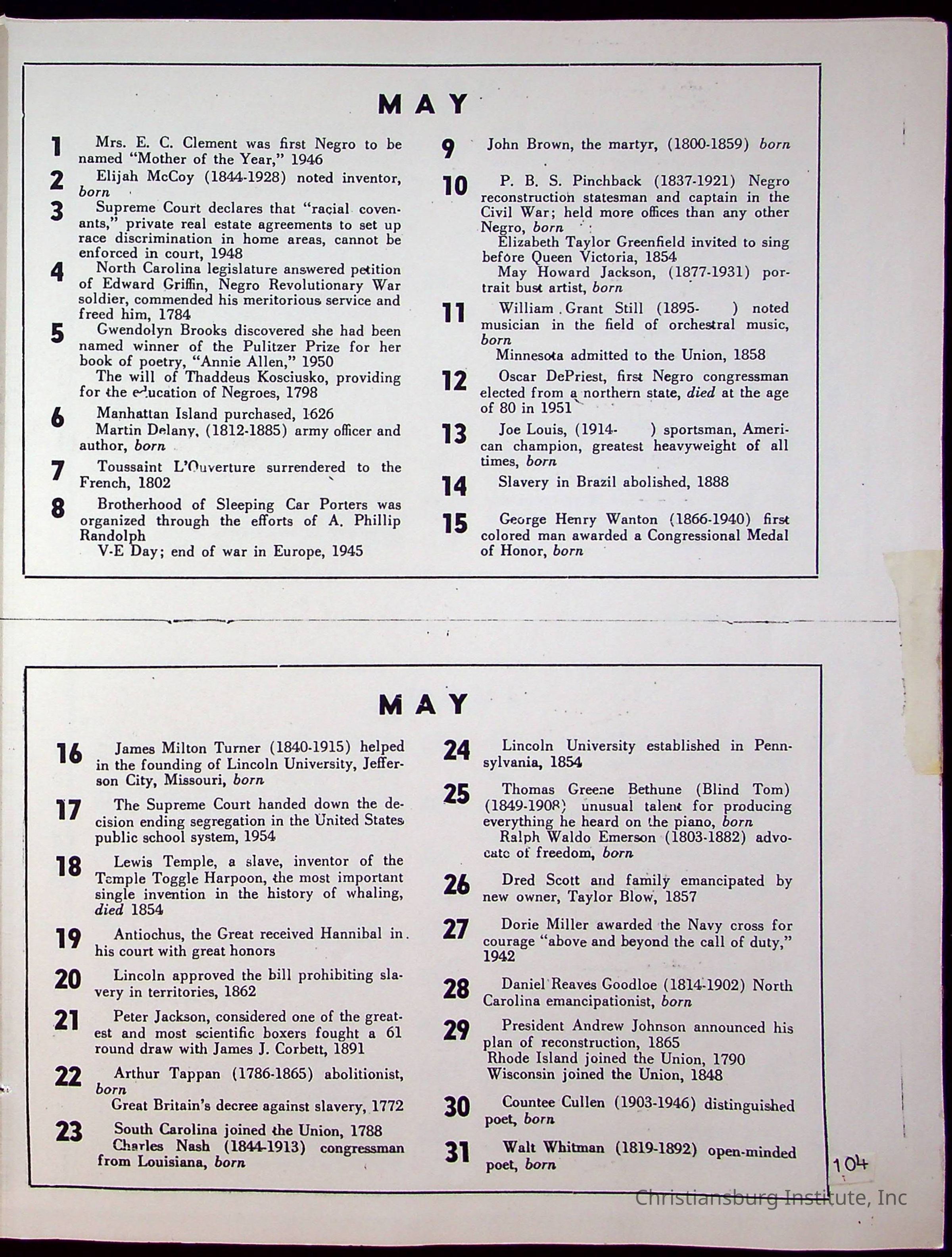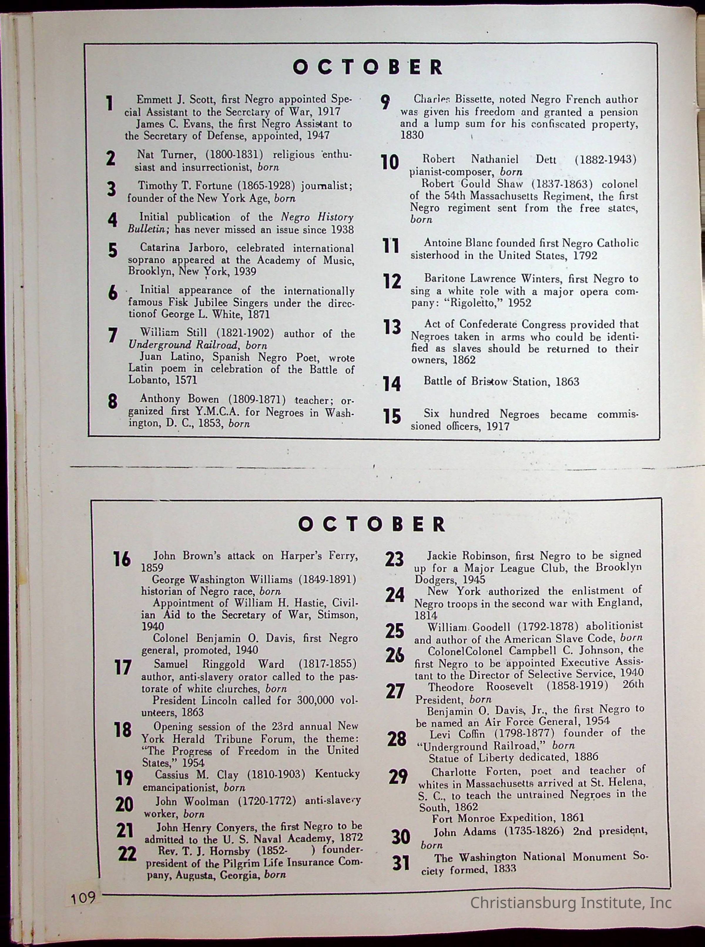 A compilation of materials that are relevant to Black history during the 20th century complied by Nerissa Long Milton, undated.