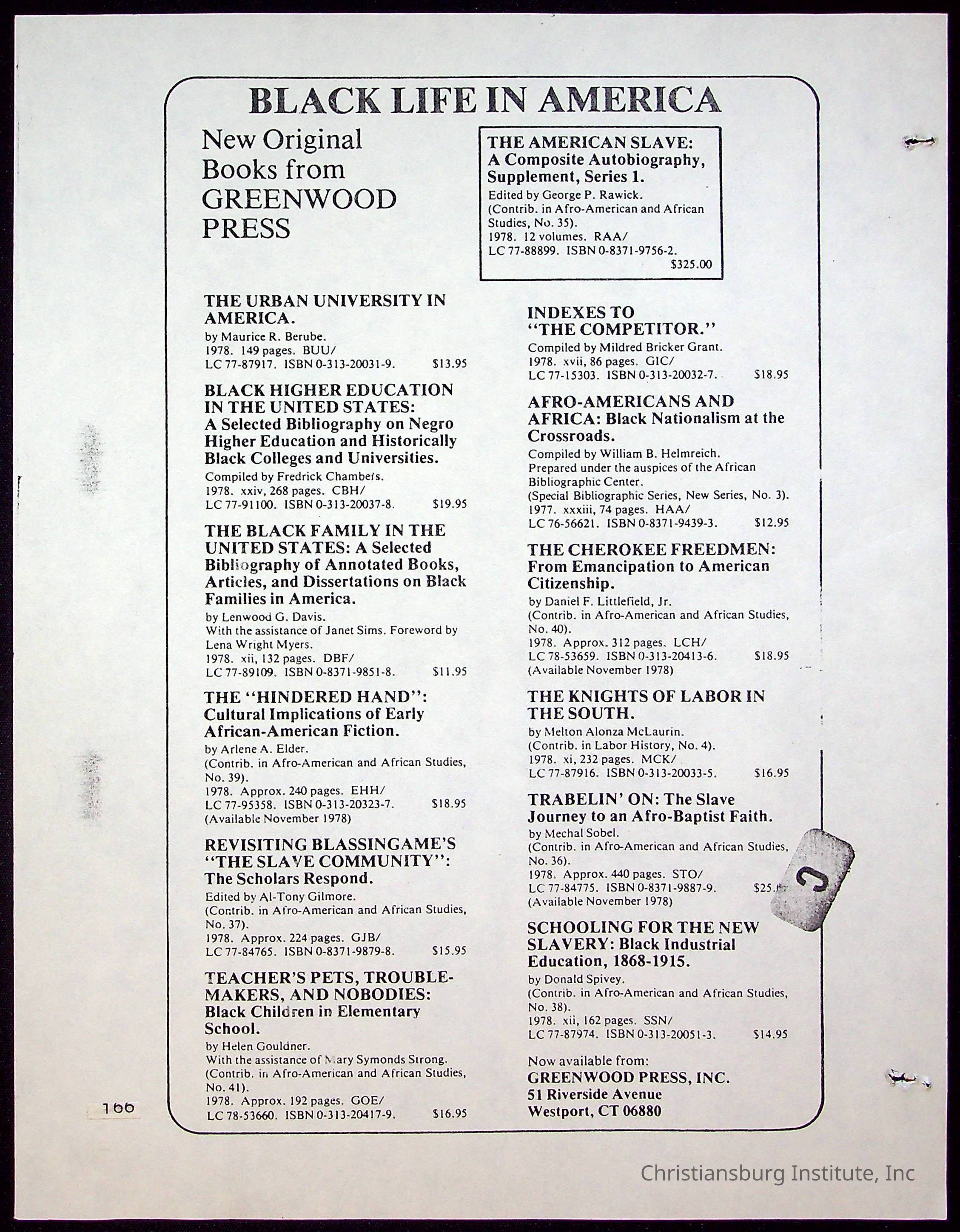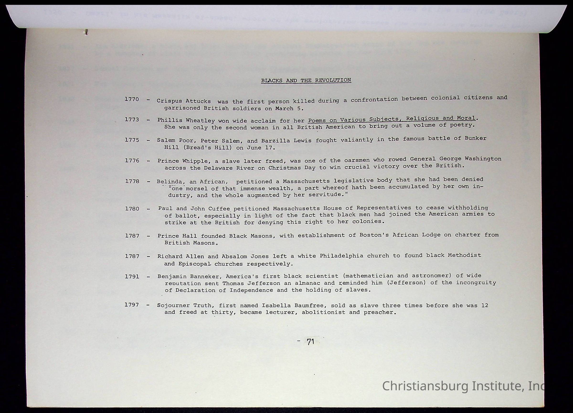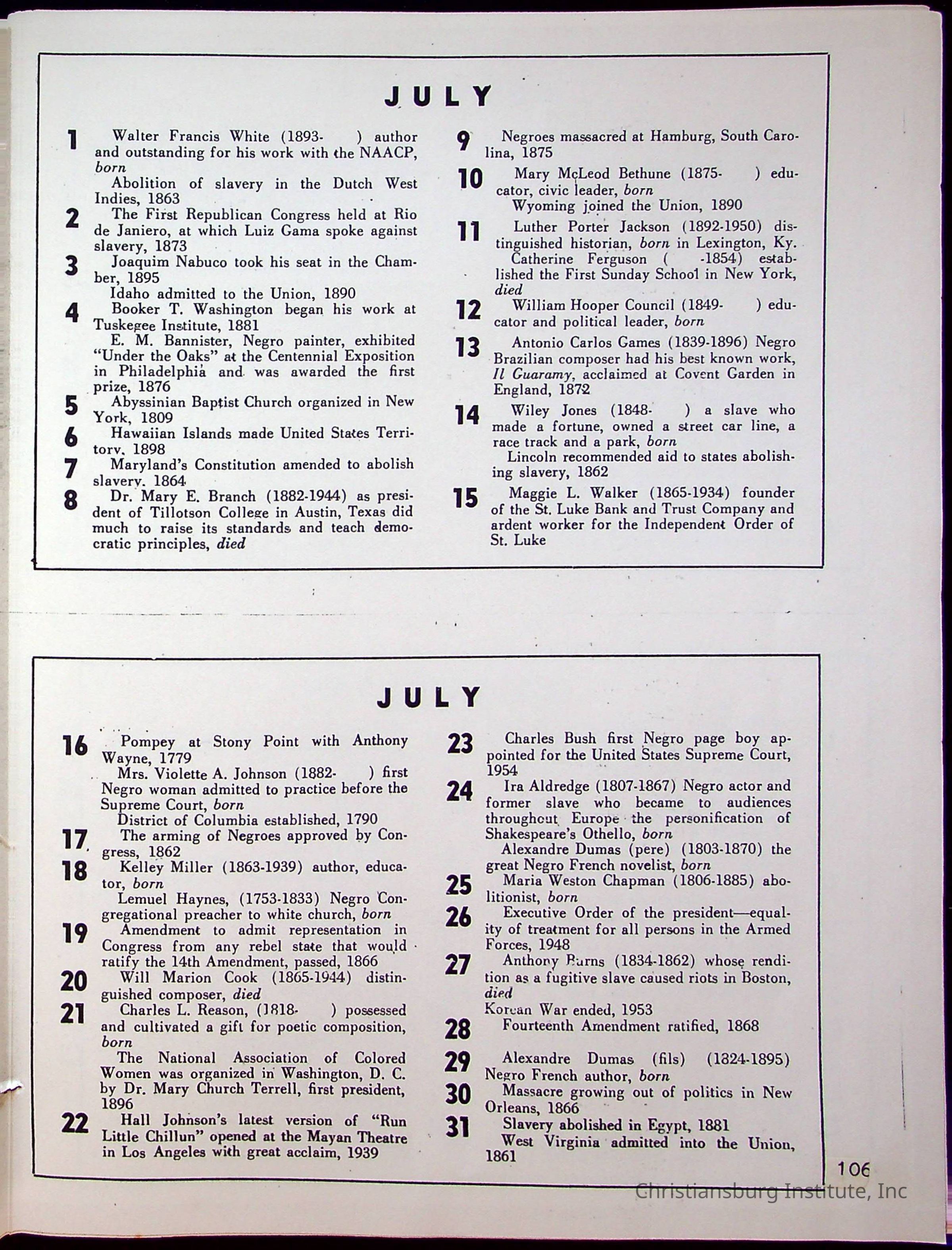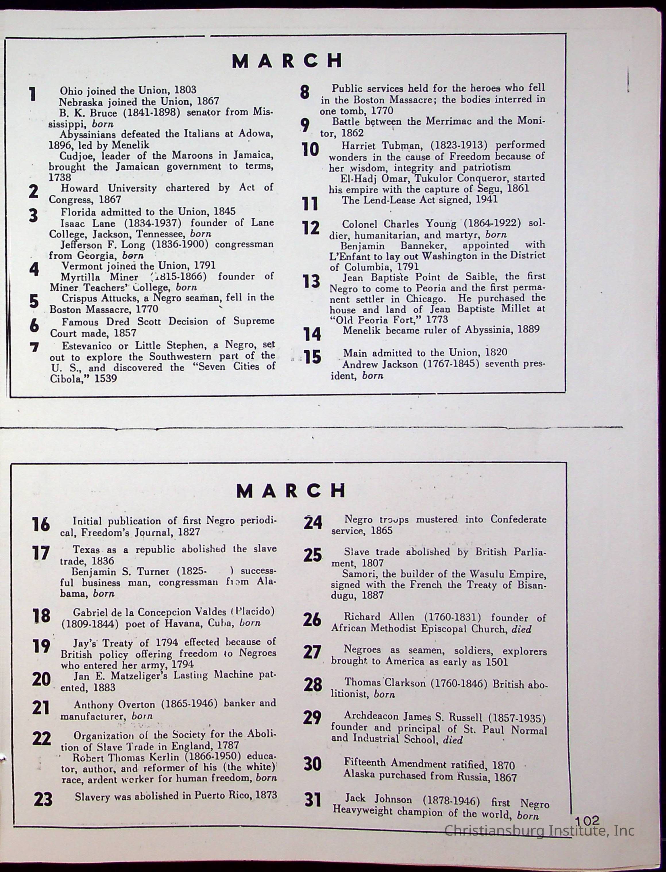 A compilation of materials that are relevant to Black history during the 20th century complied by Nerissa Long Milton, undated.