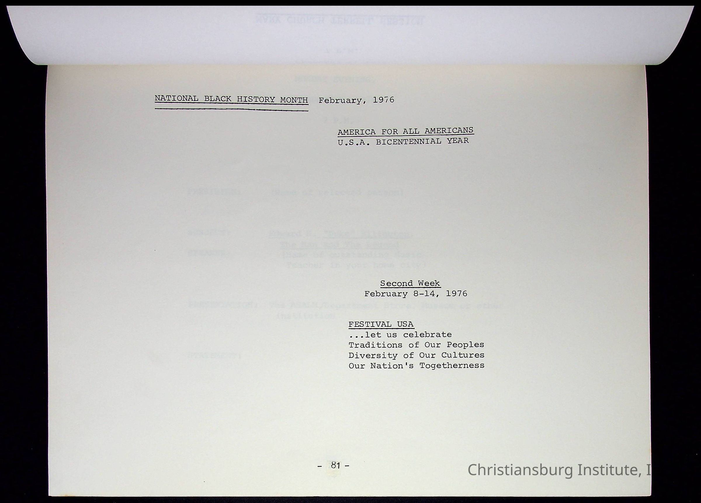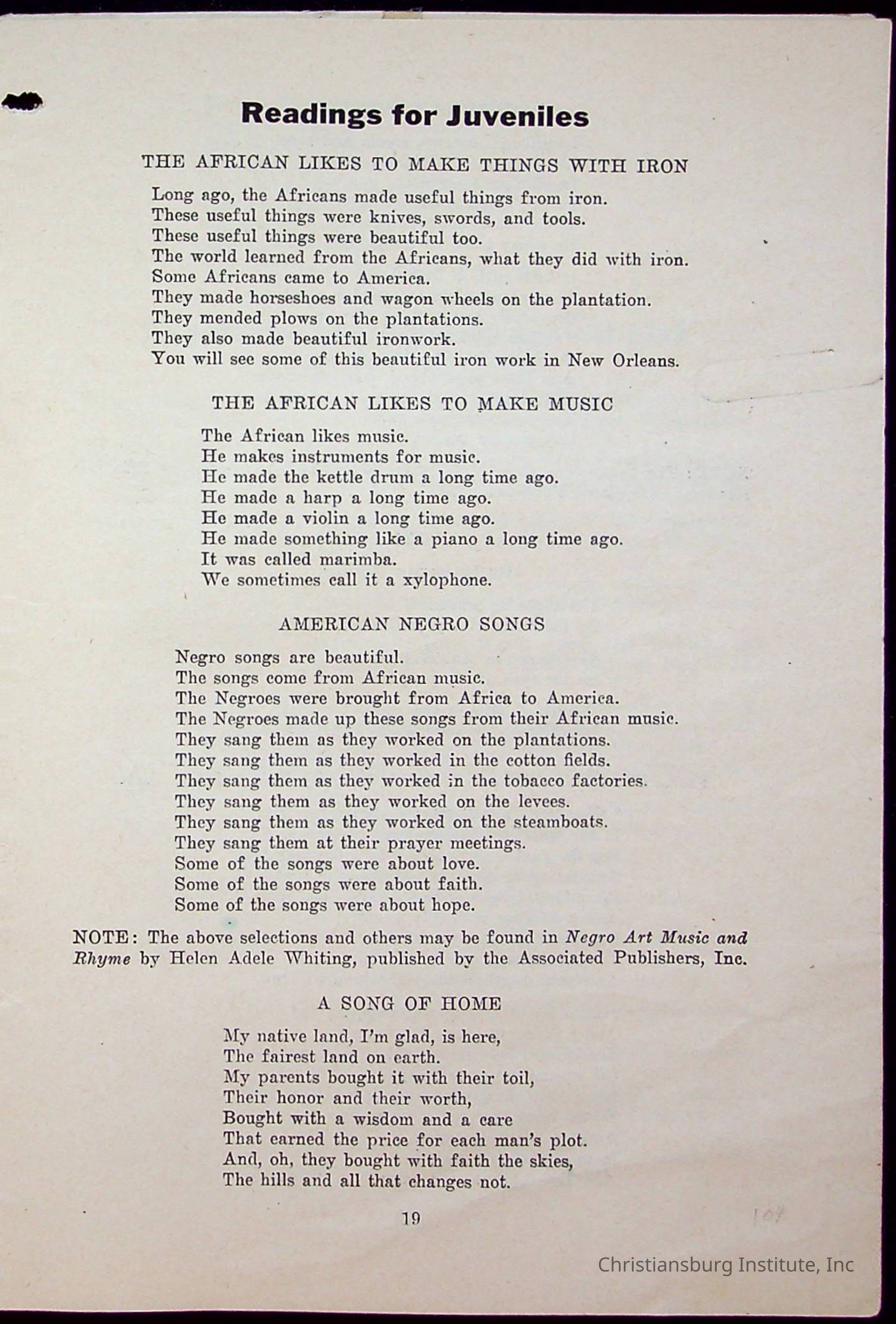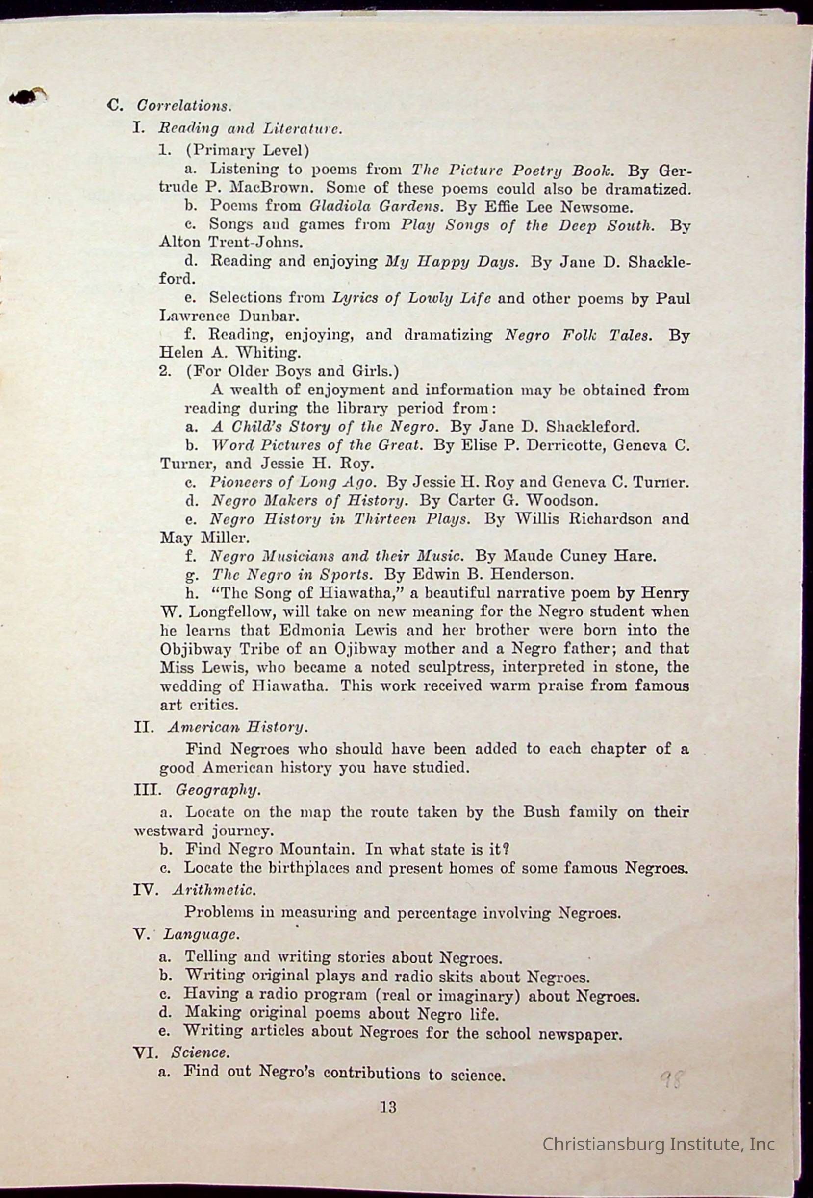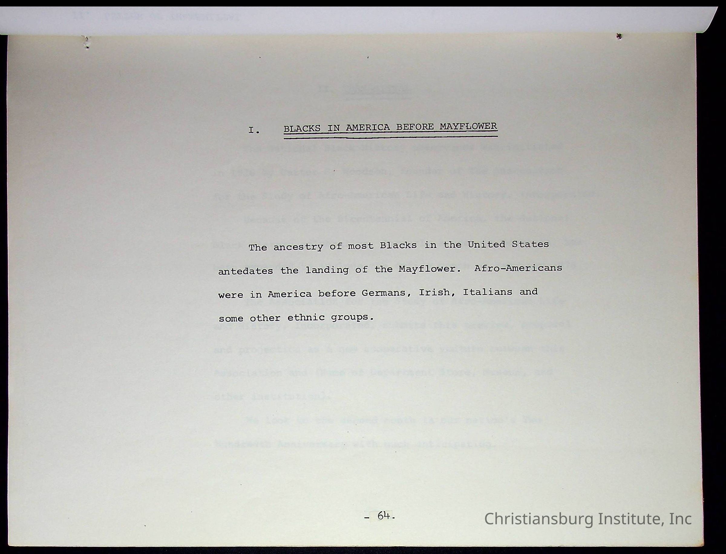 Copyright has been assigned to Christiansburg Institute Museum & Archives. For permission to publish materials created by the donor, contact CIMA@christiansburginstitute.com. Materials not created by Christiansburg Institute Museum and Archives may still be under copyright.