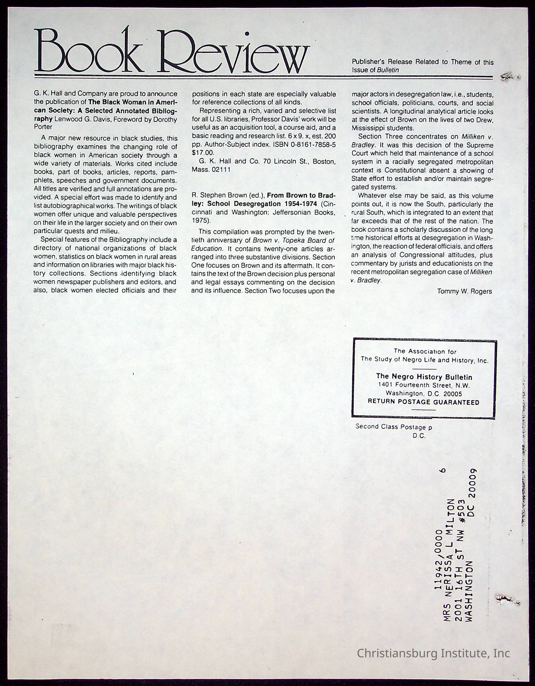 Christiansburg Institute Alumni Association Collection