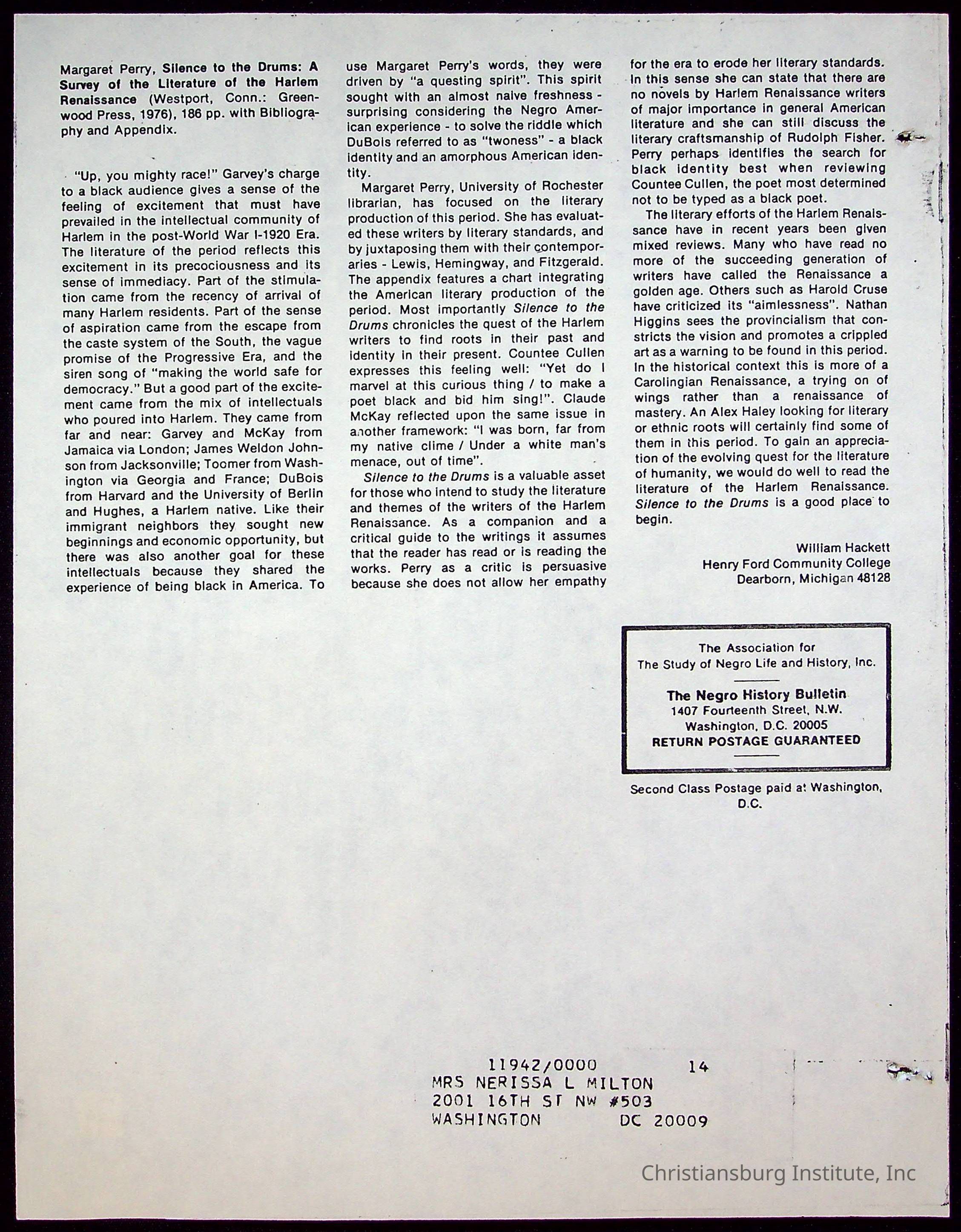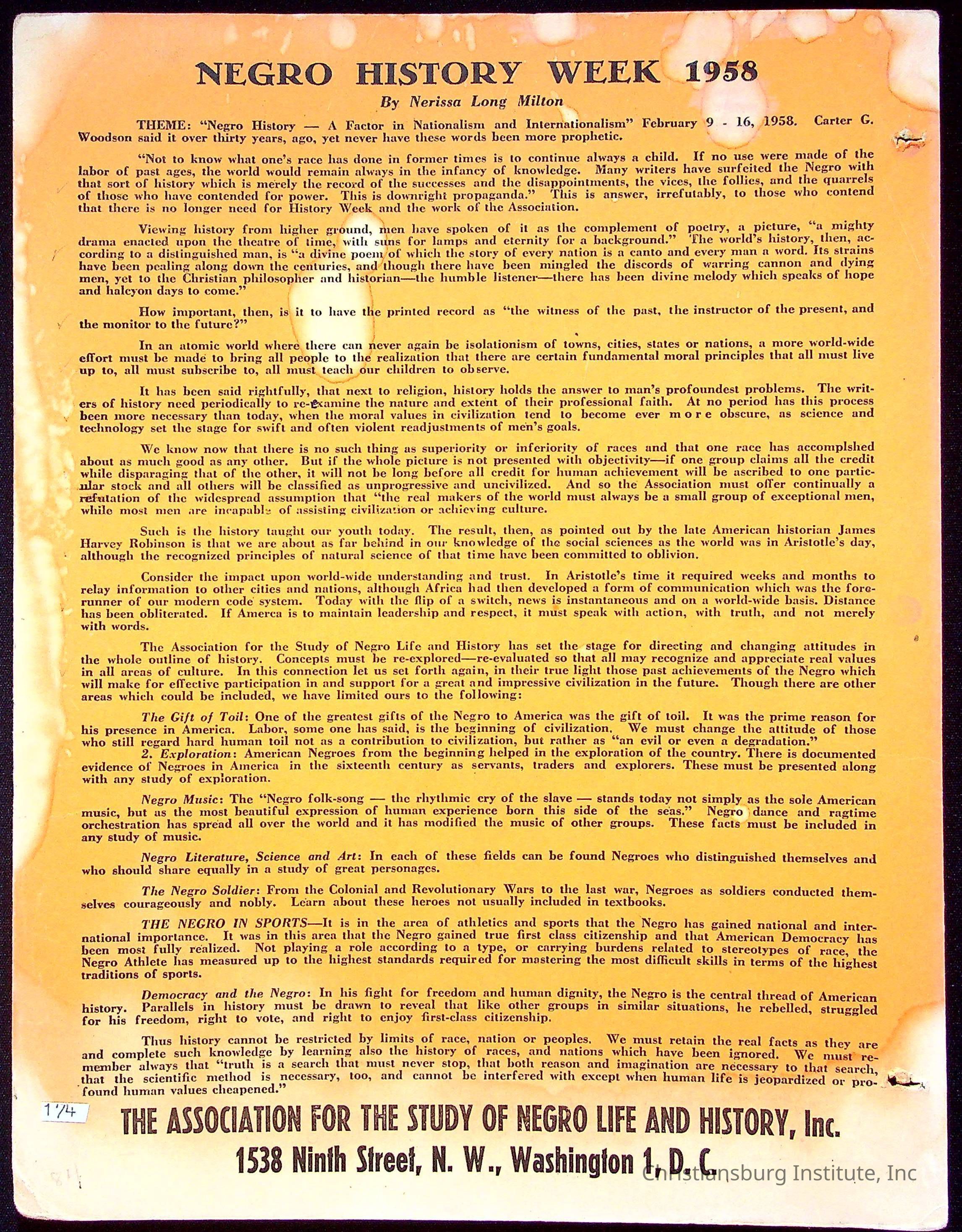 Nerissa Long Milton Negro History Compilation, 20th Century