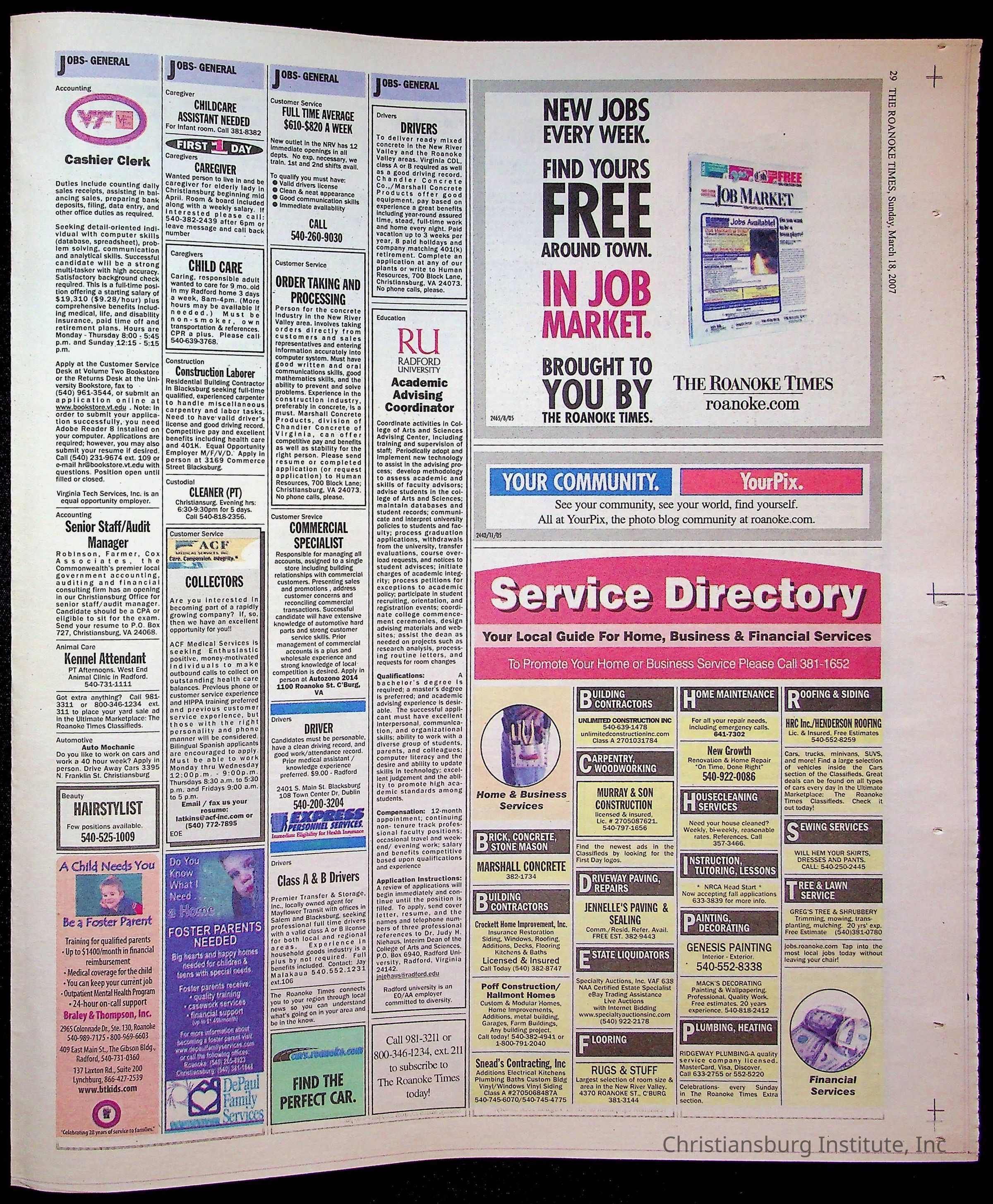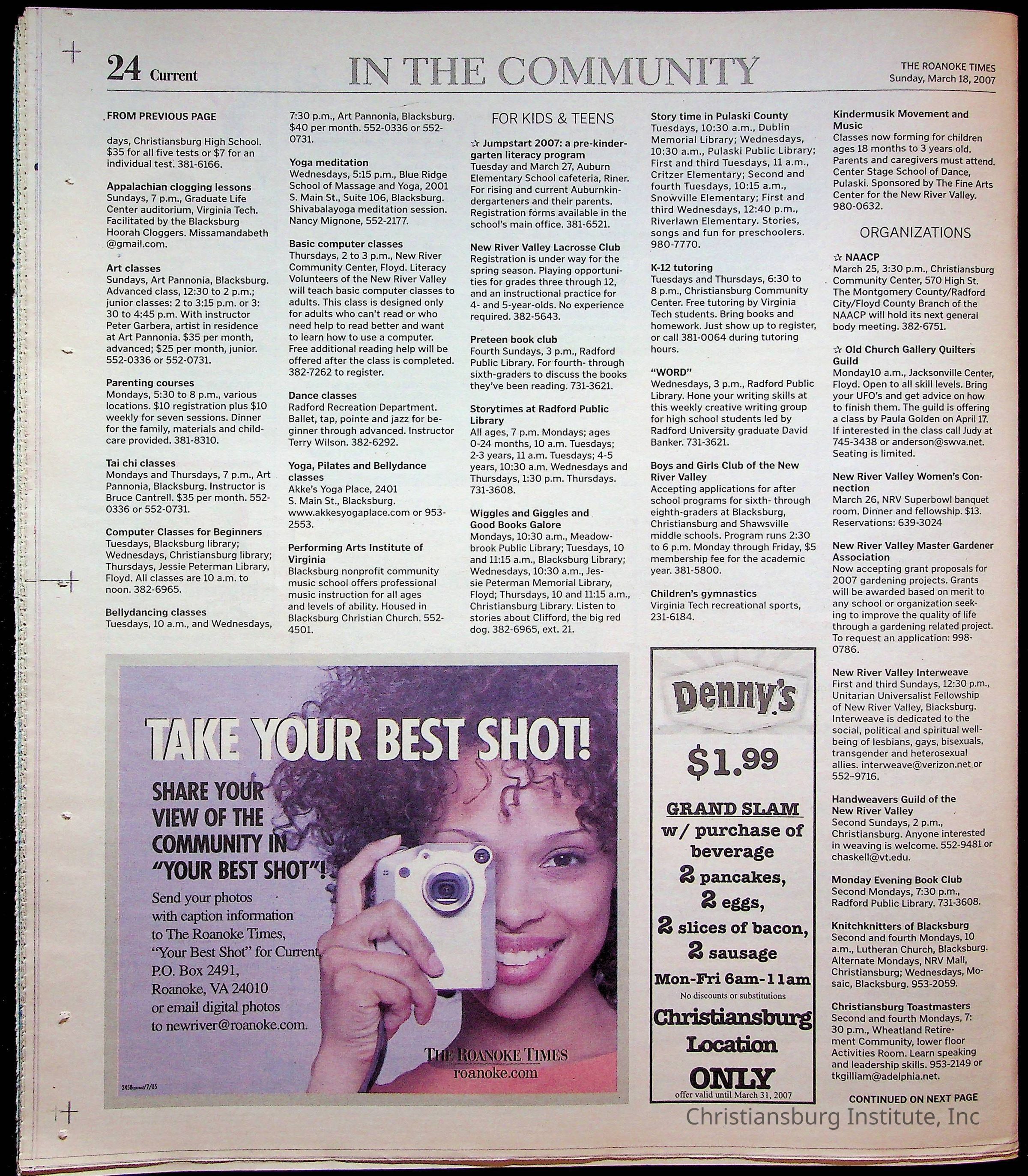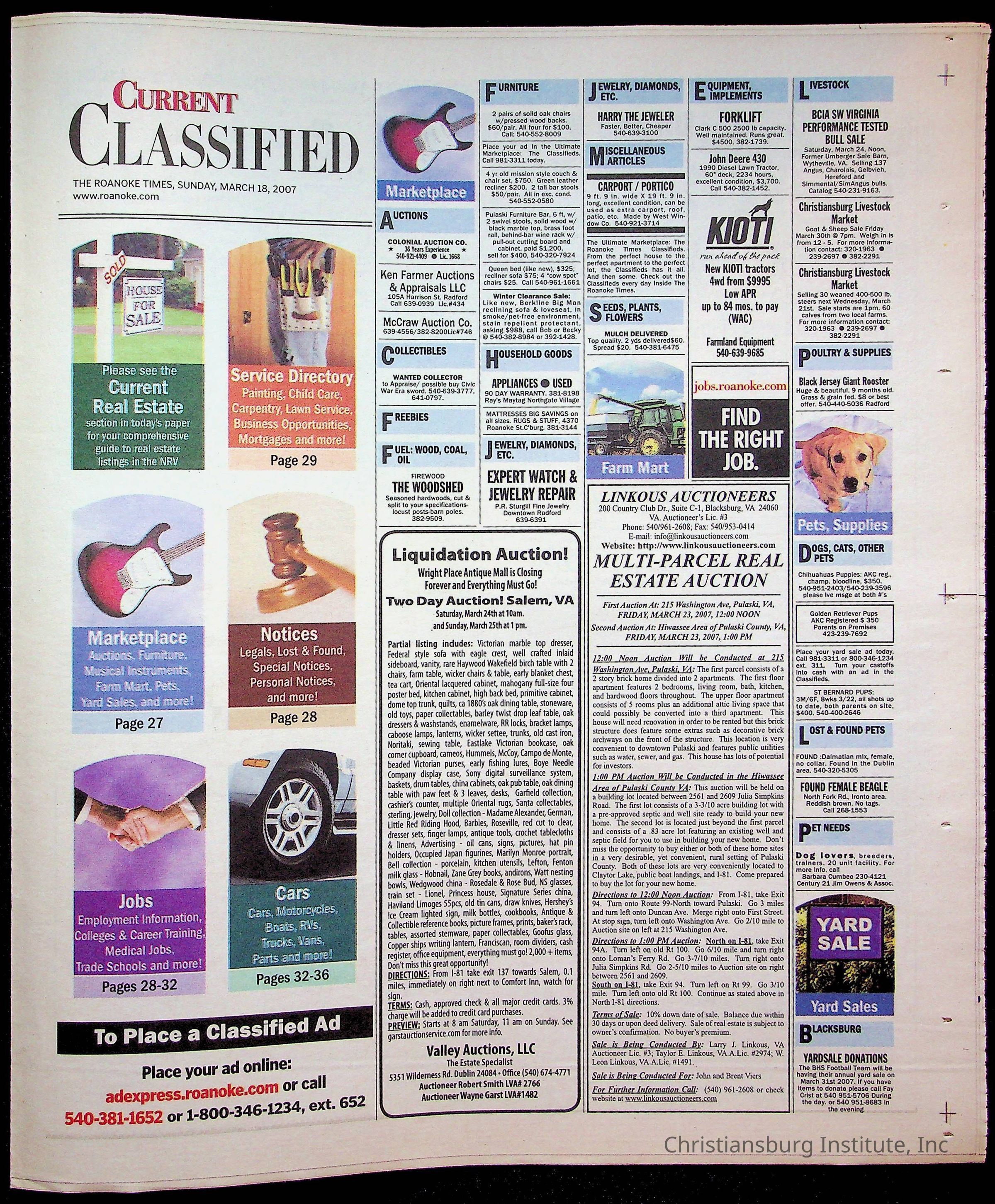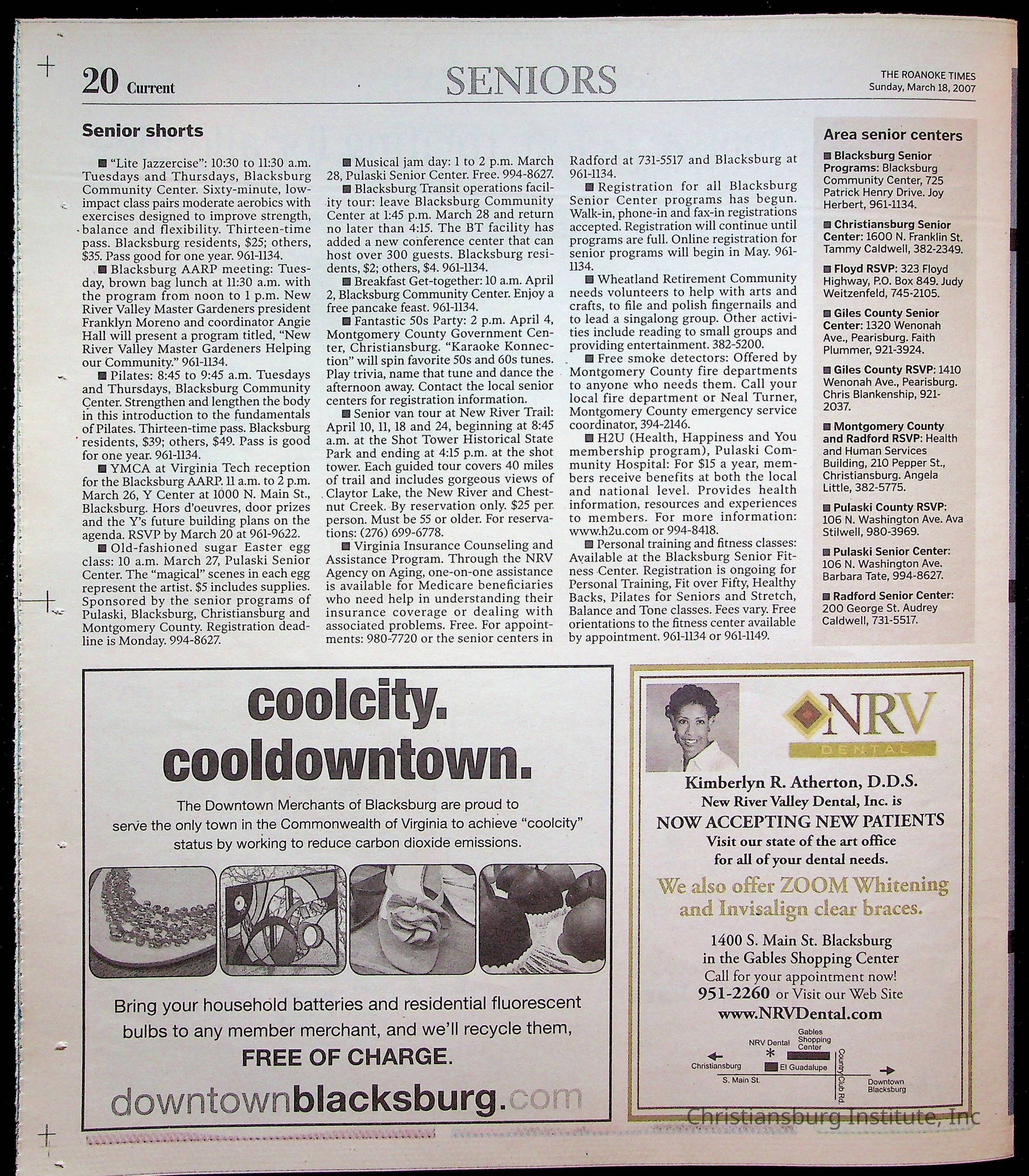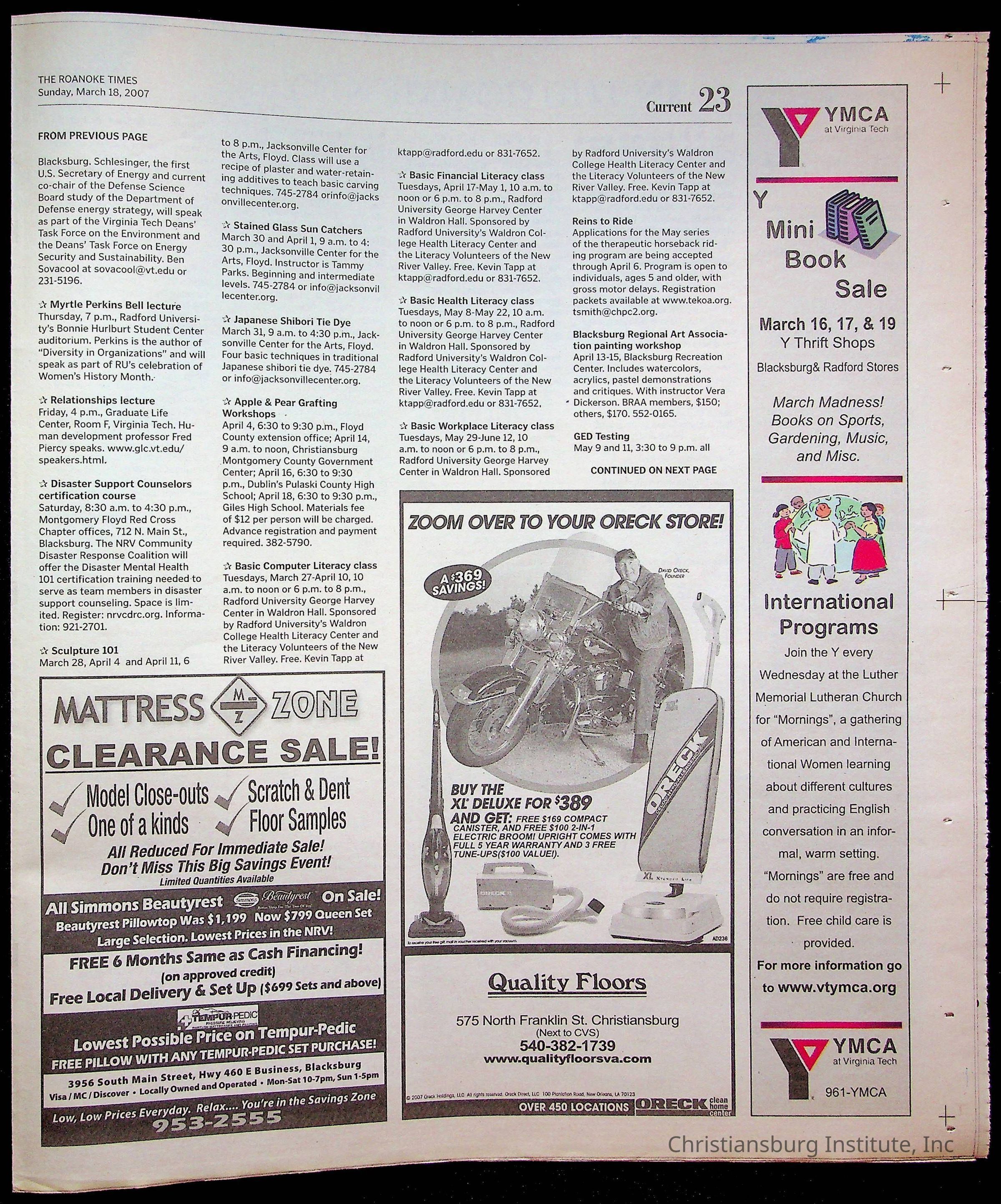 A copy of the New River Valley Current Sunday published by The Roanoke Times that covers Christiansburg Institute, dated March 18th, 2007.Collection