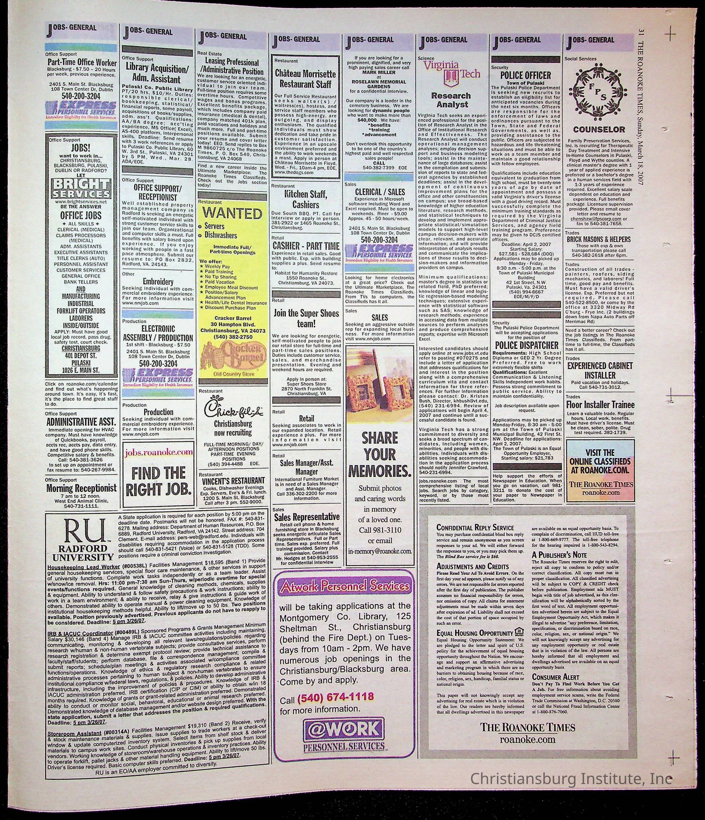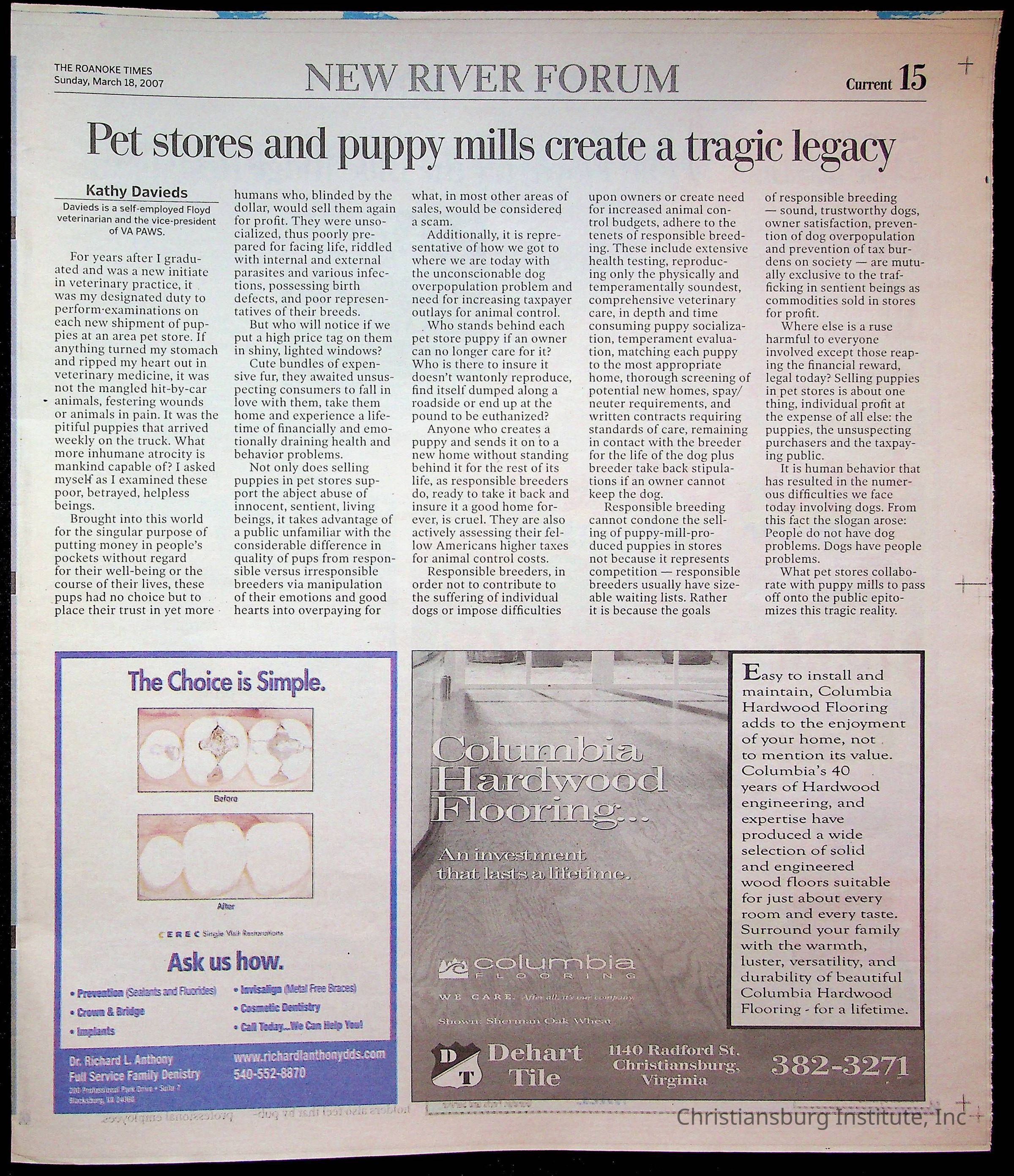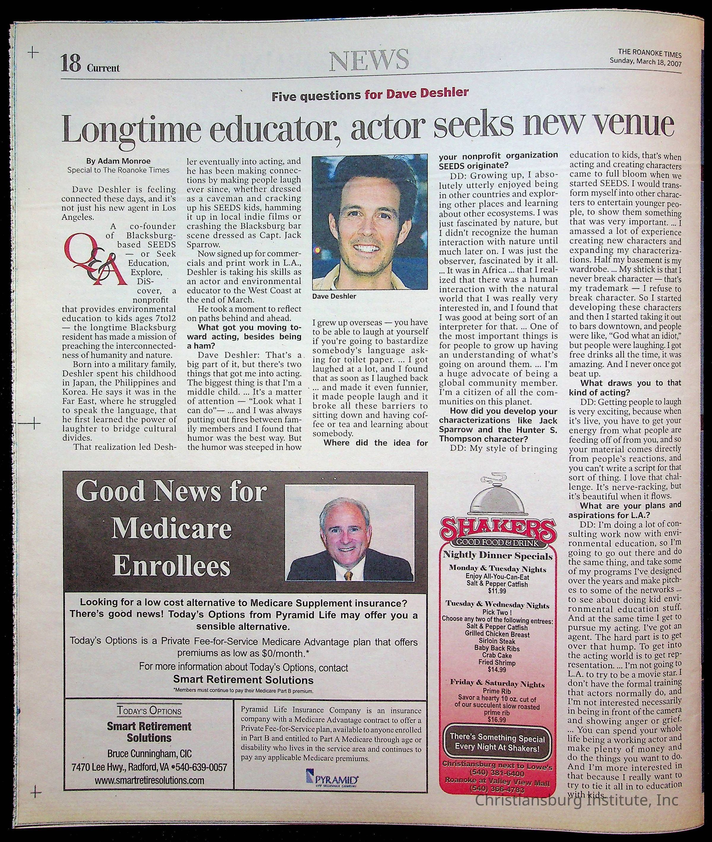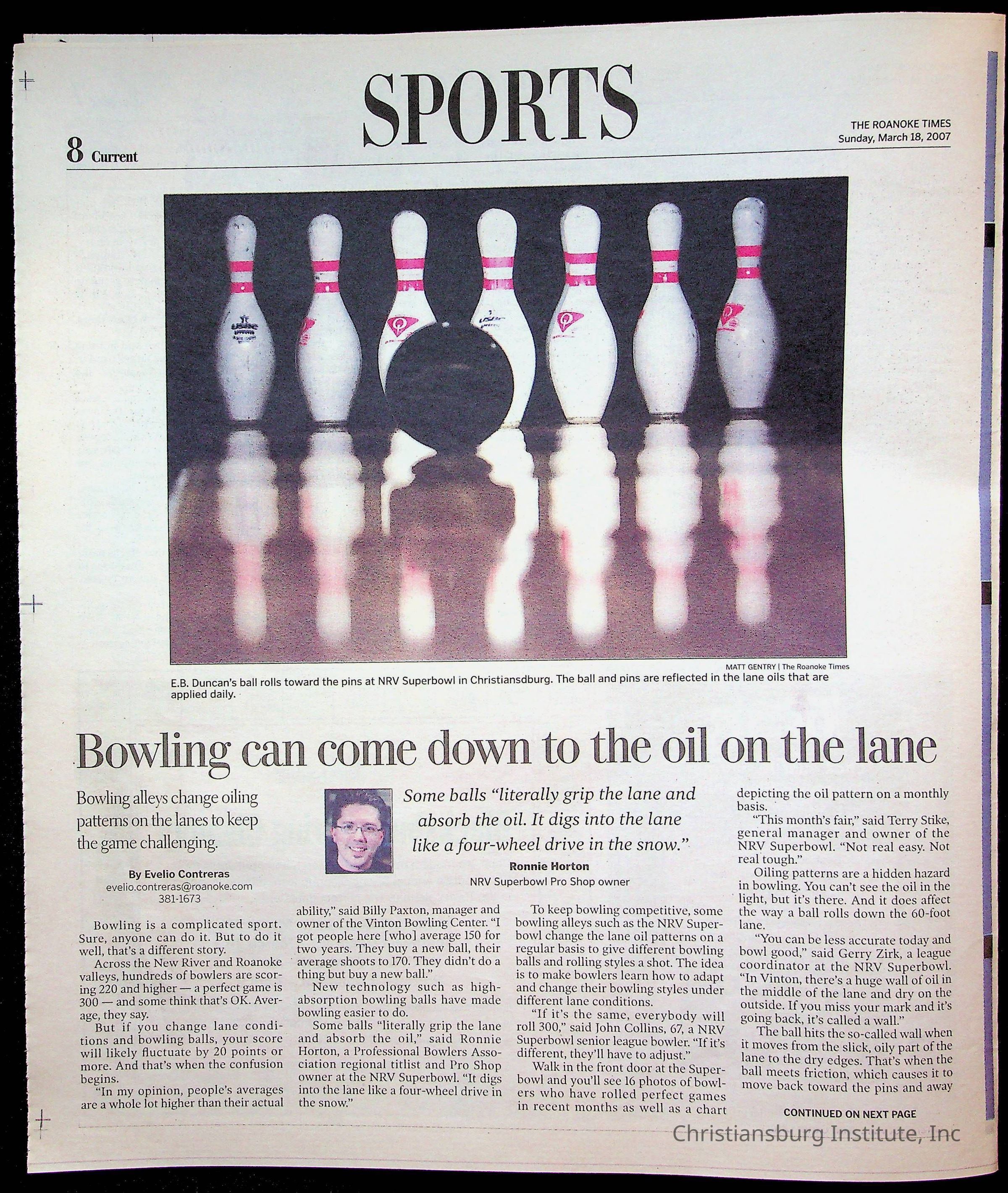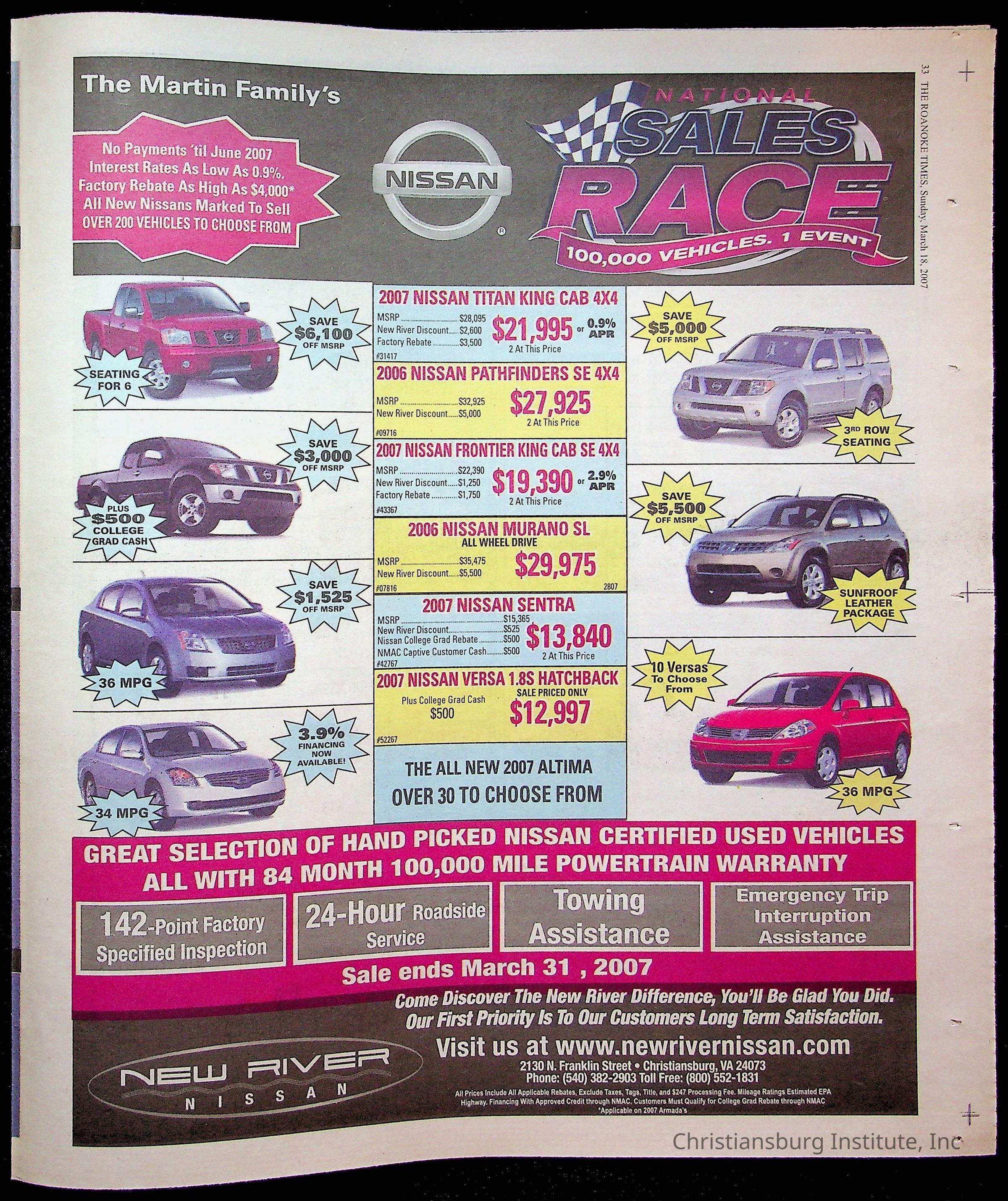 A copy of the New River Valley Current Sunday published by The Roanoke Times that covers Christiansburg Institute, dated March 18th, 2007.Collection