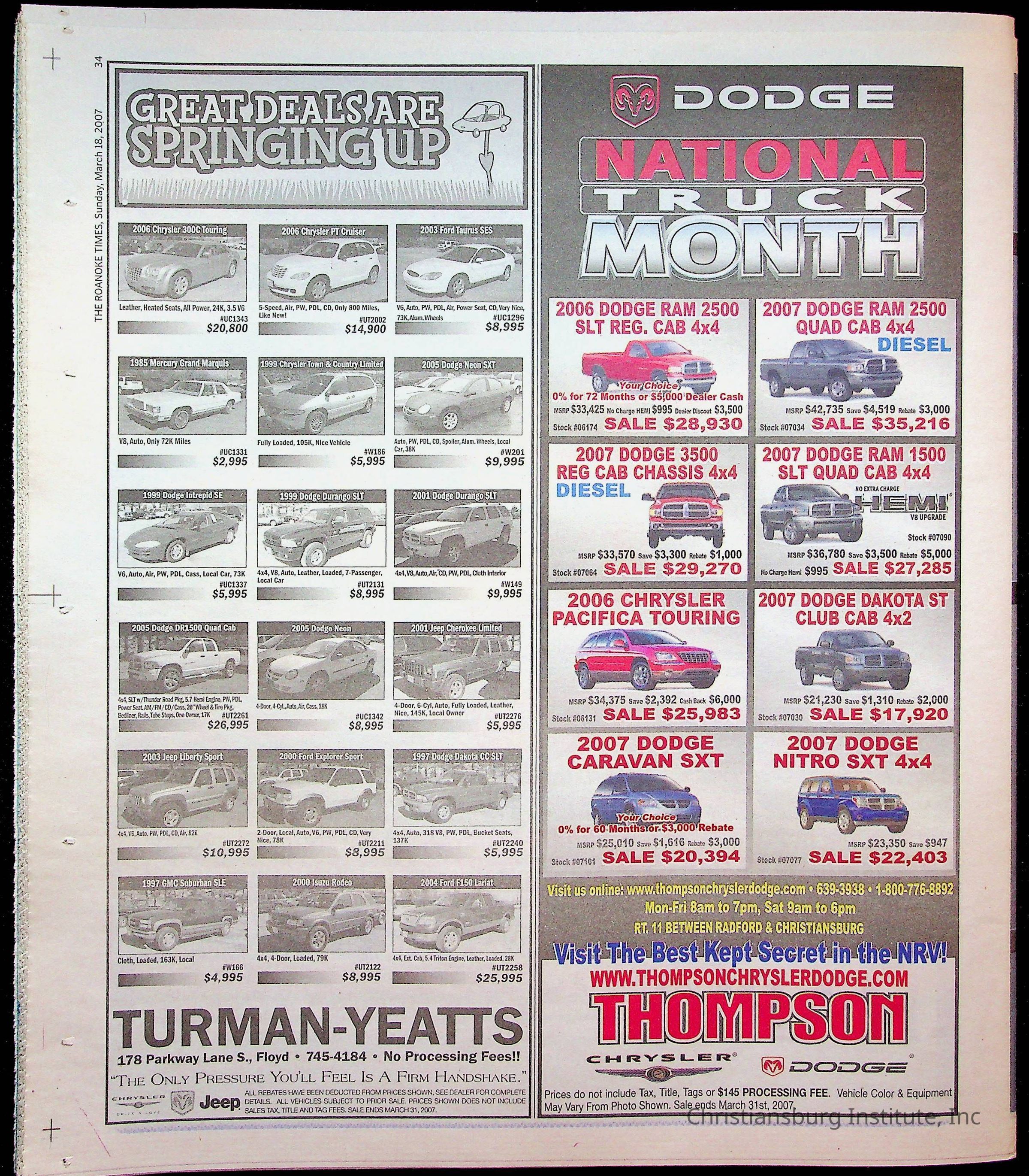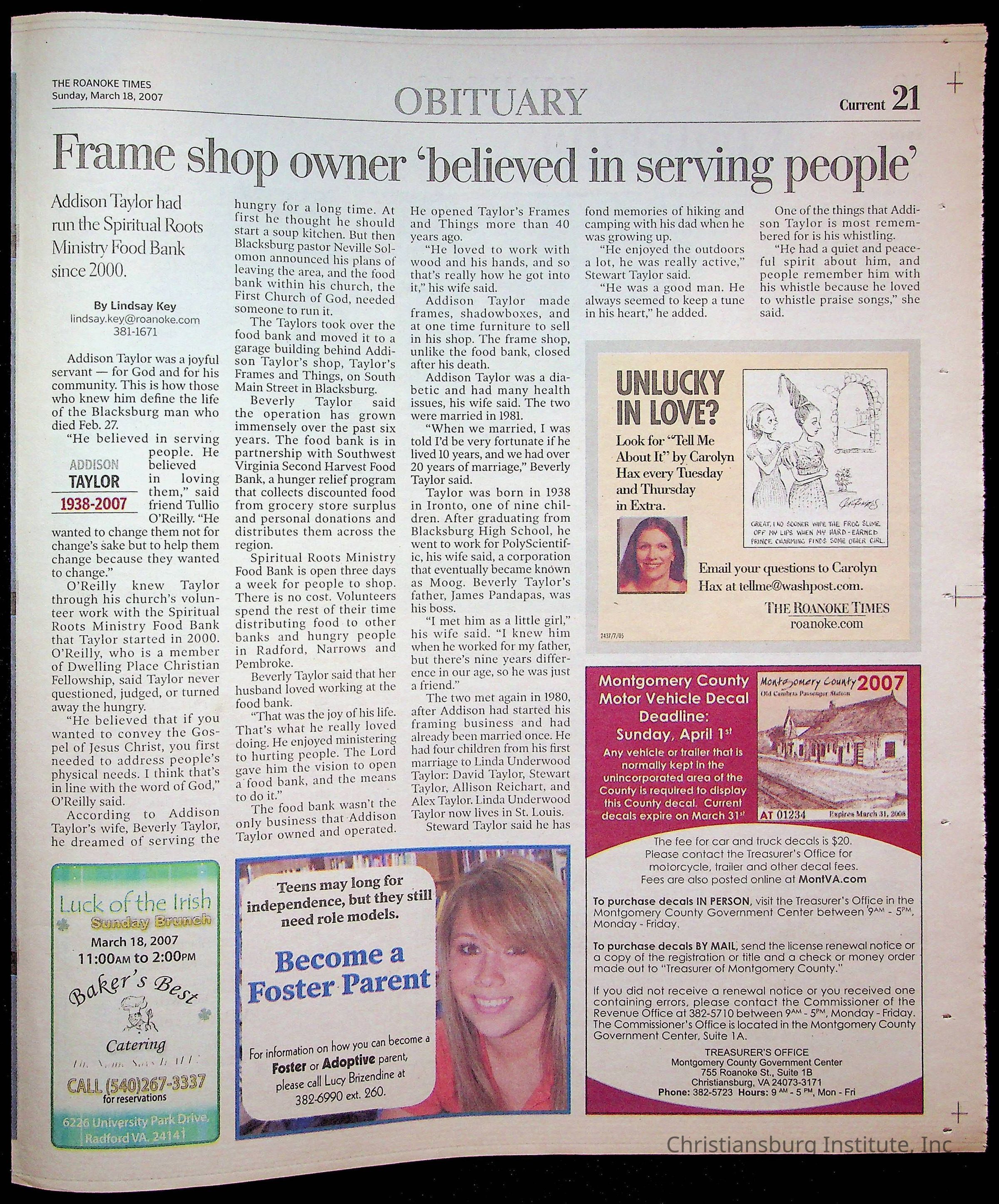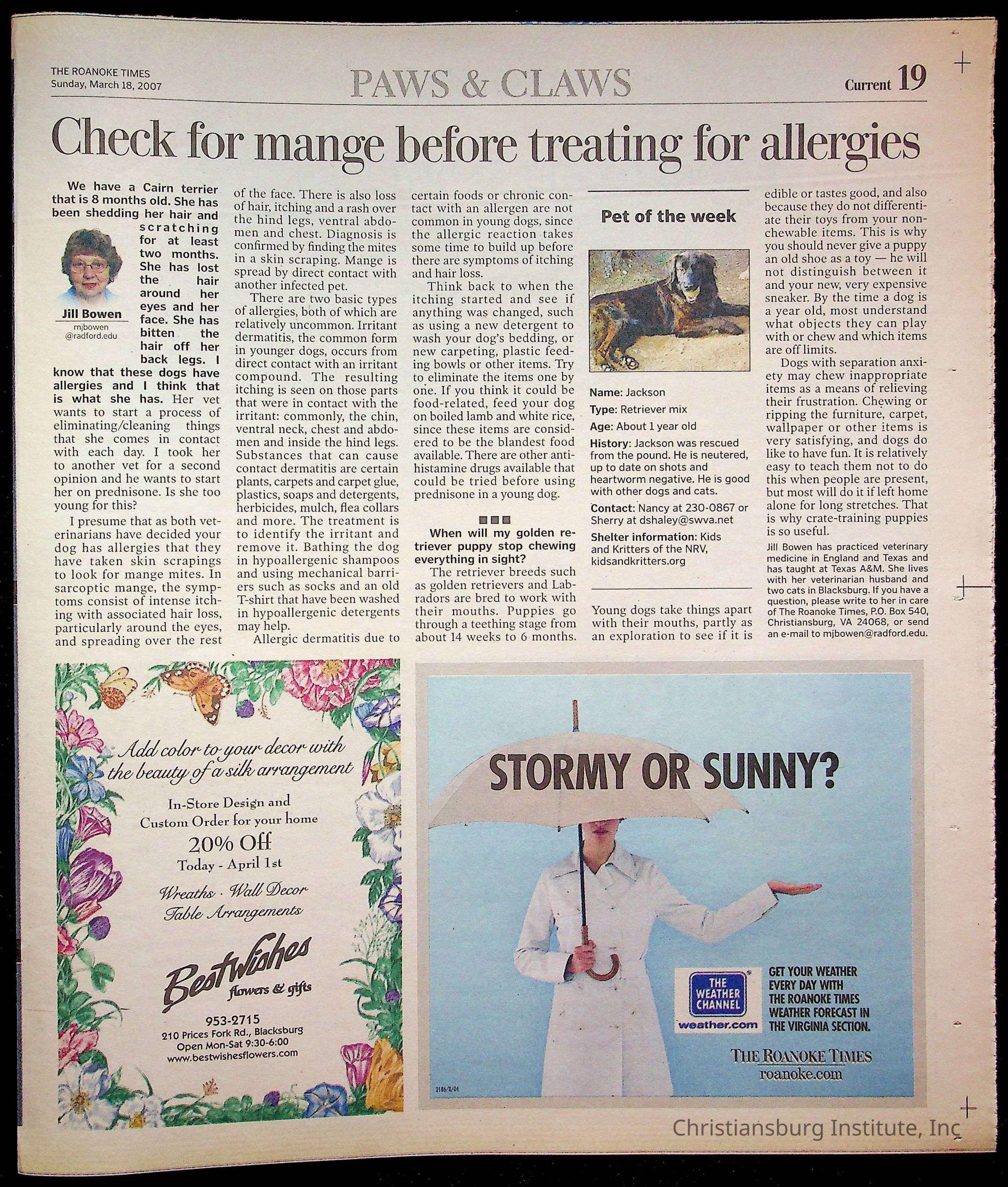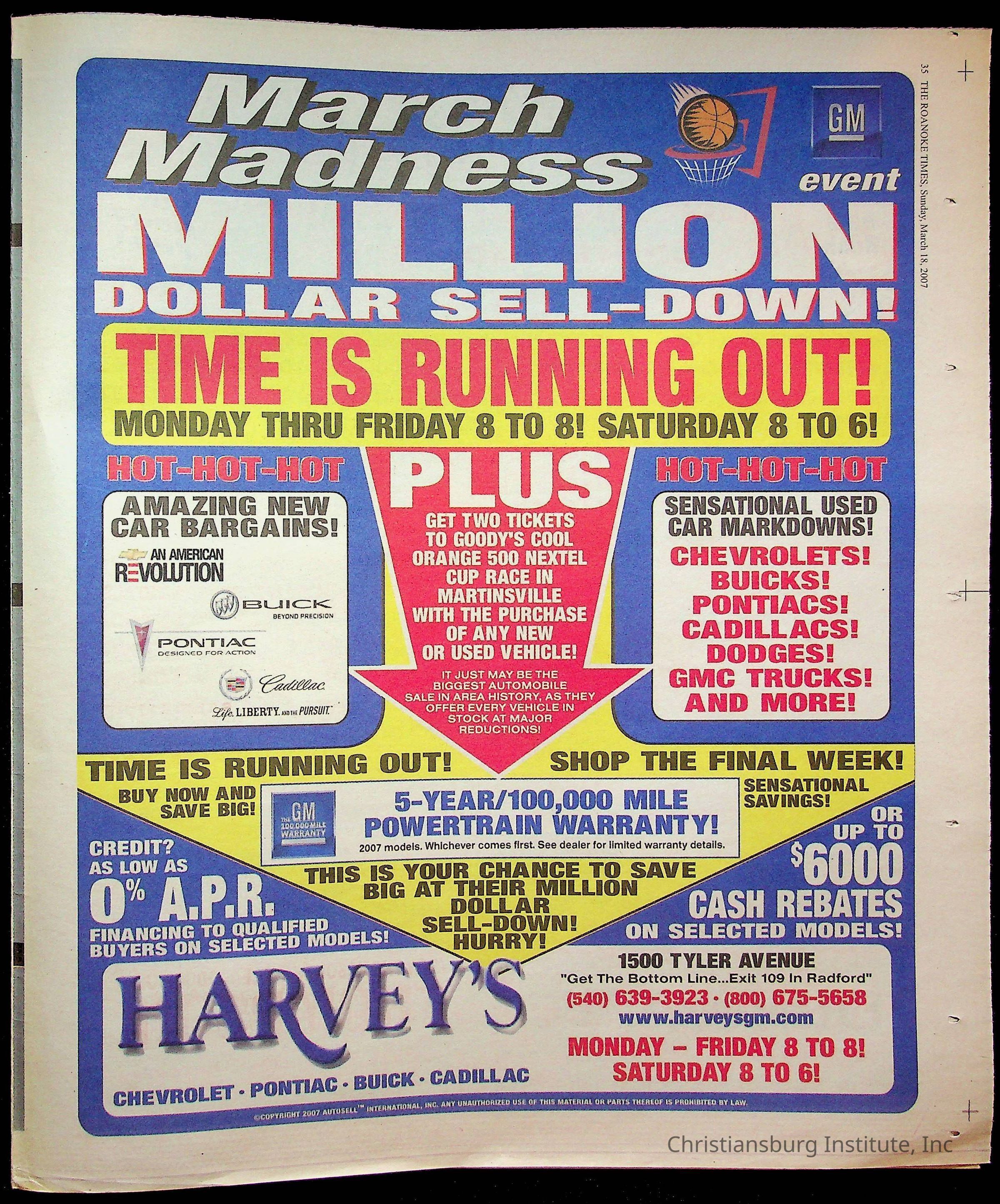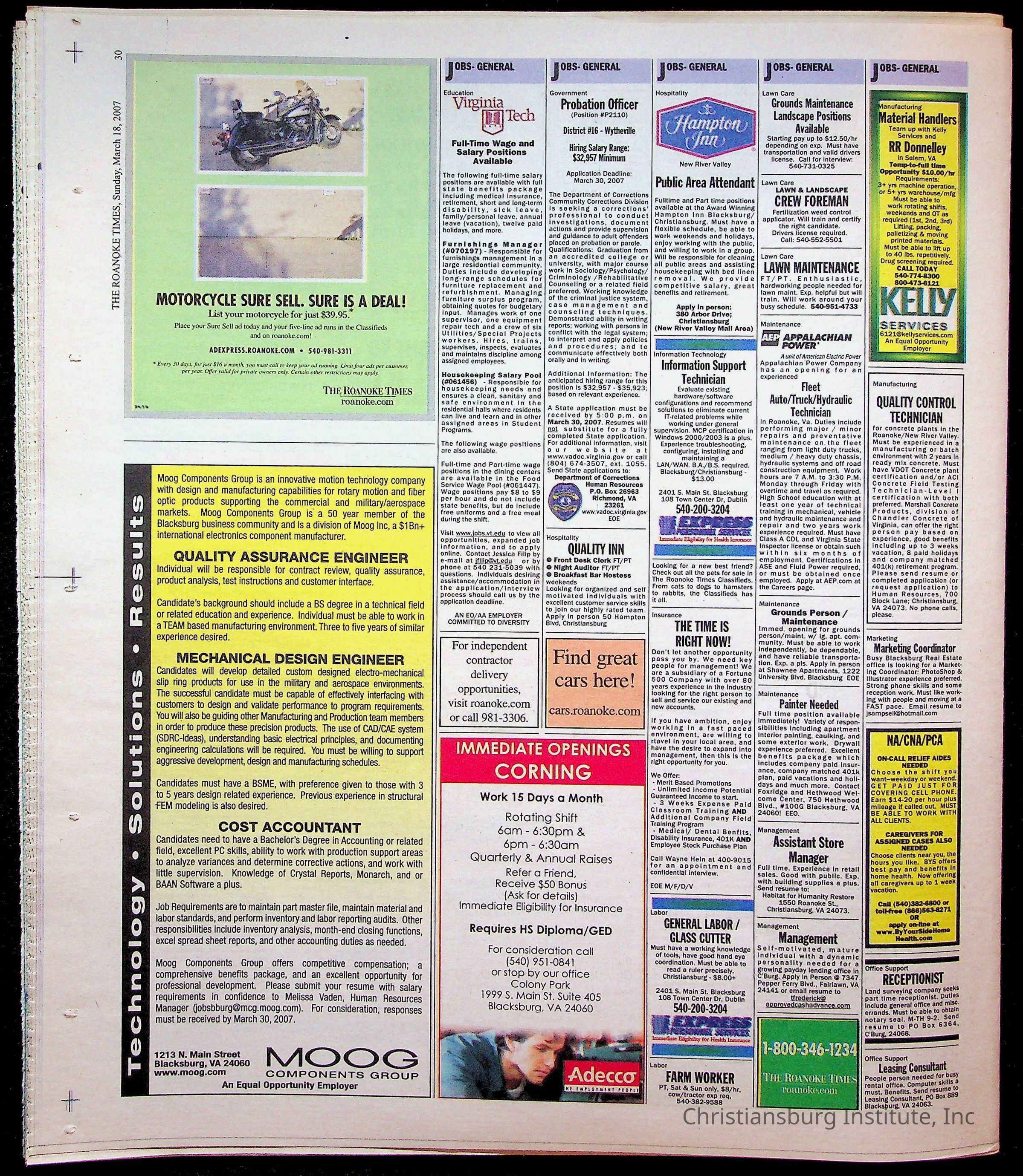 A copy of the New River Valley Current Sunday published by The Roanoke Times that covers Christiansburg Institute, dated March 18th, 2007.Collection