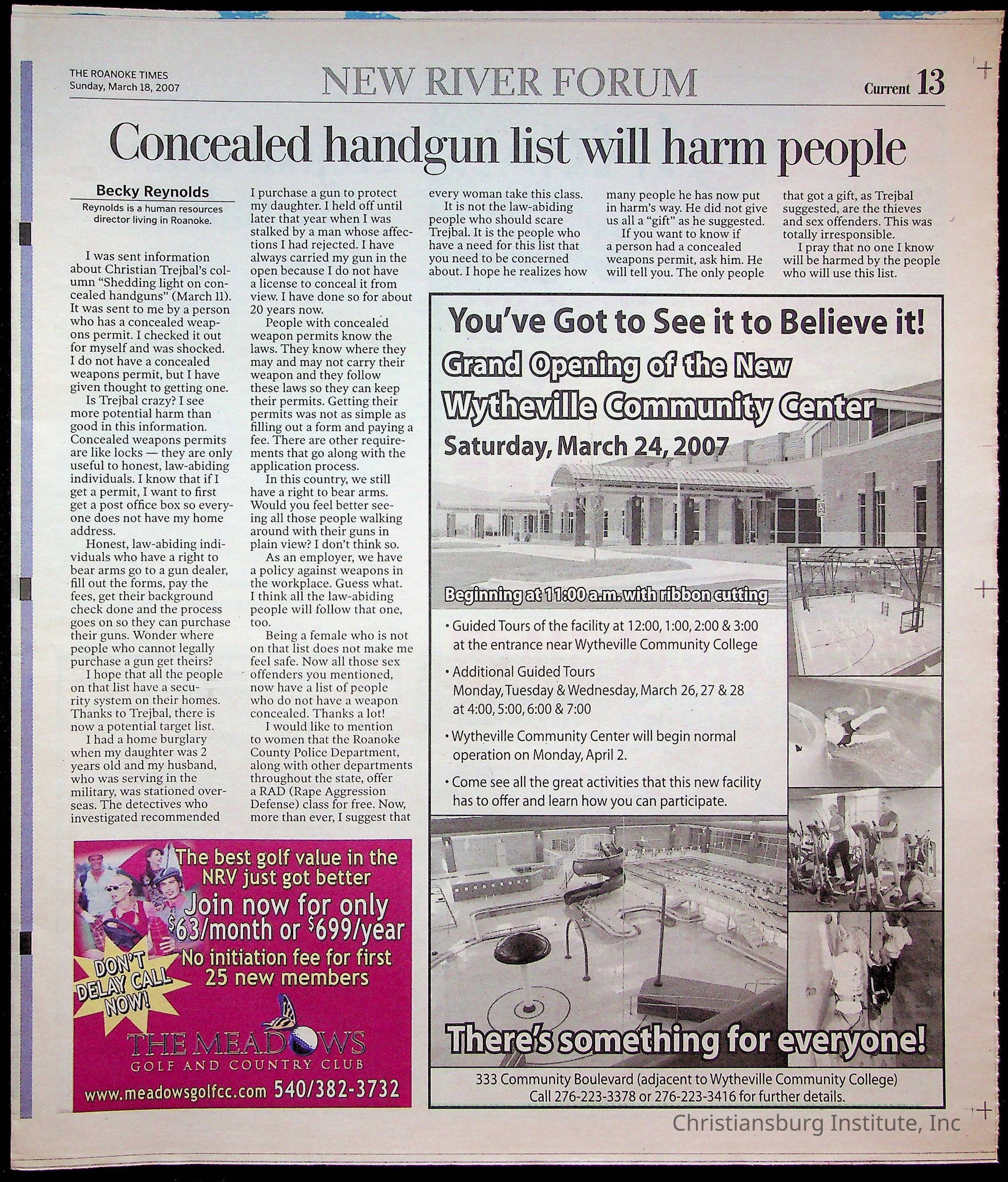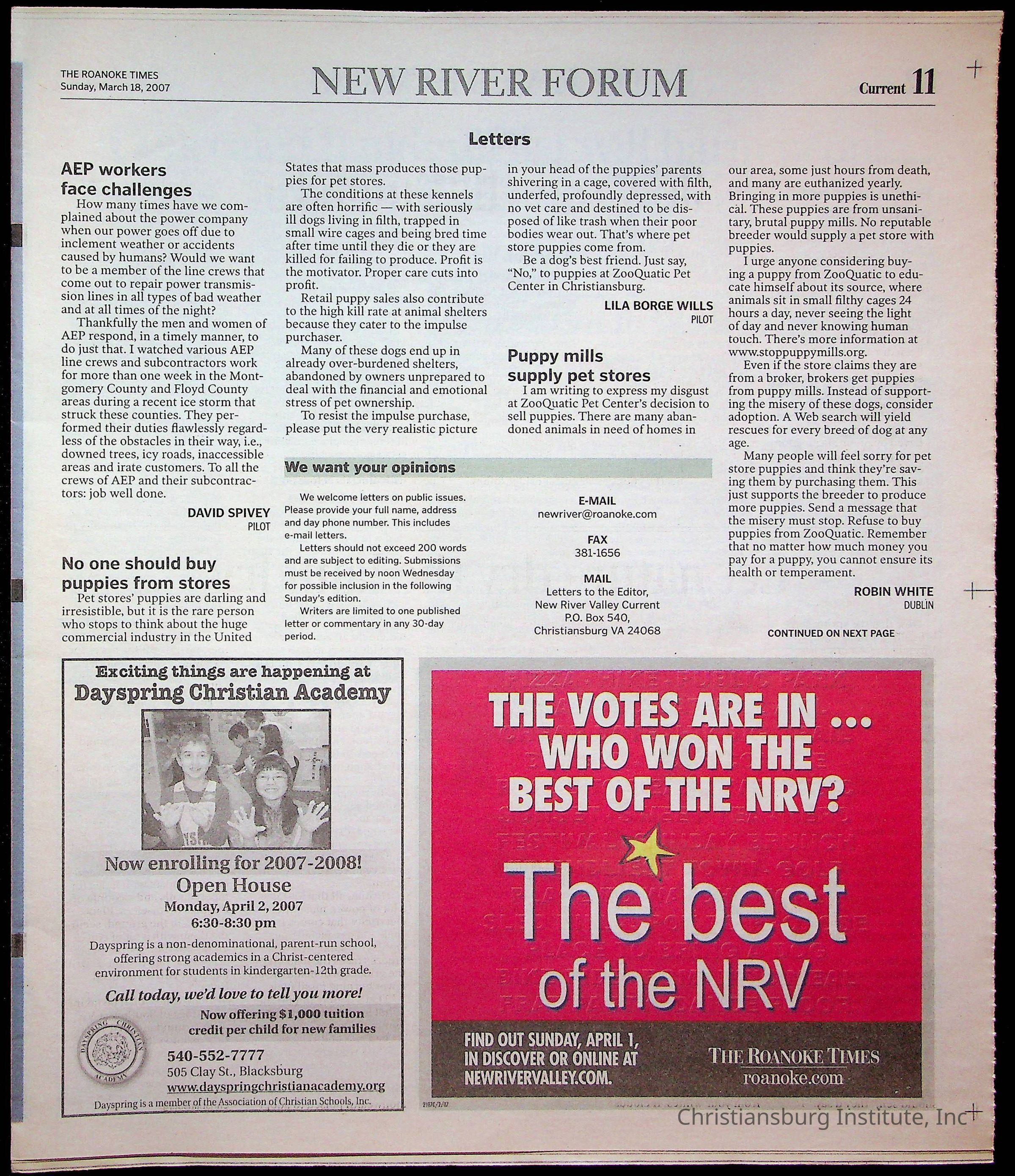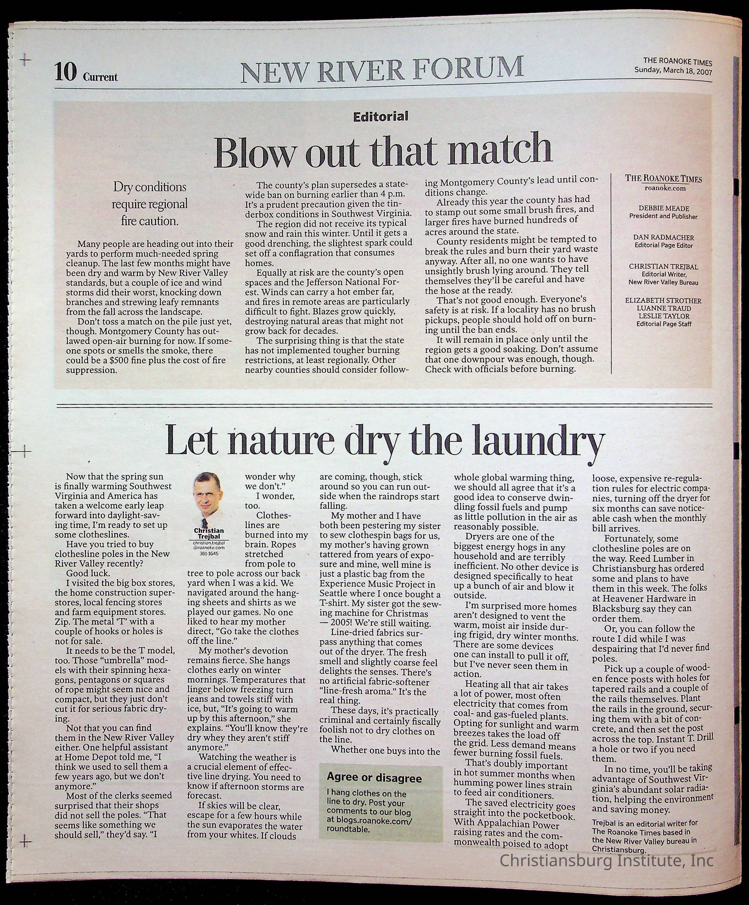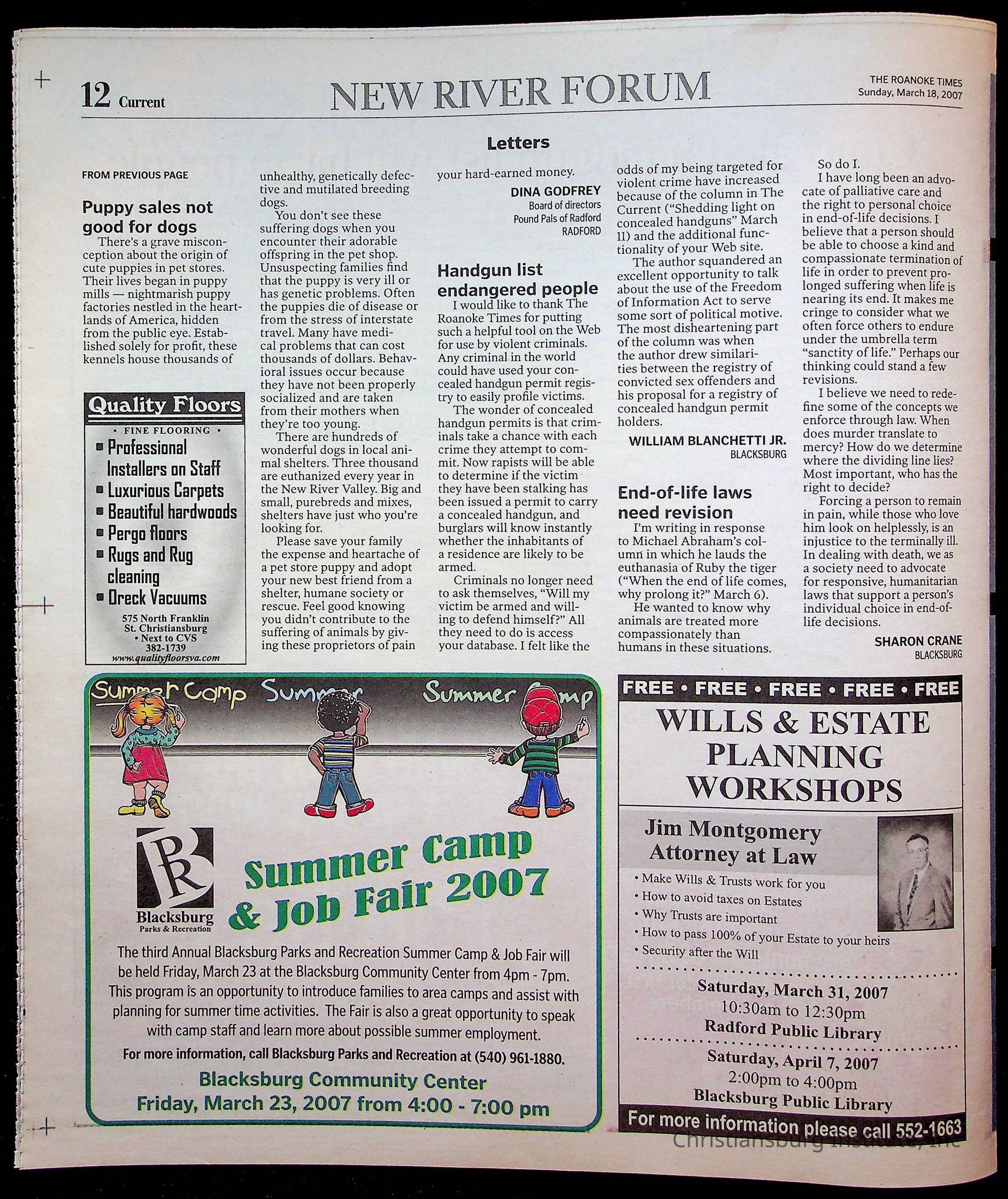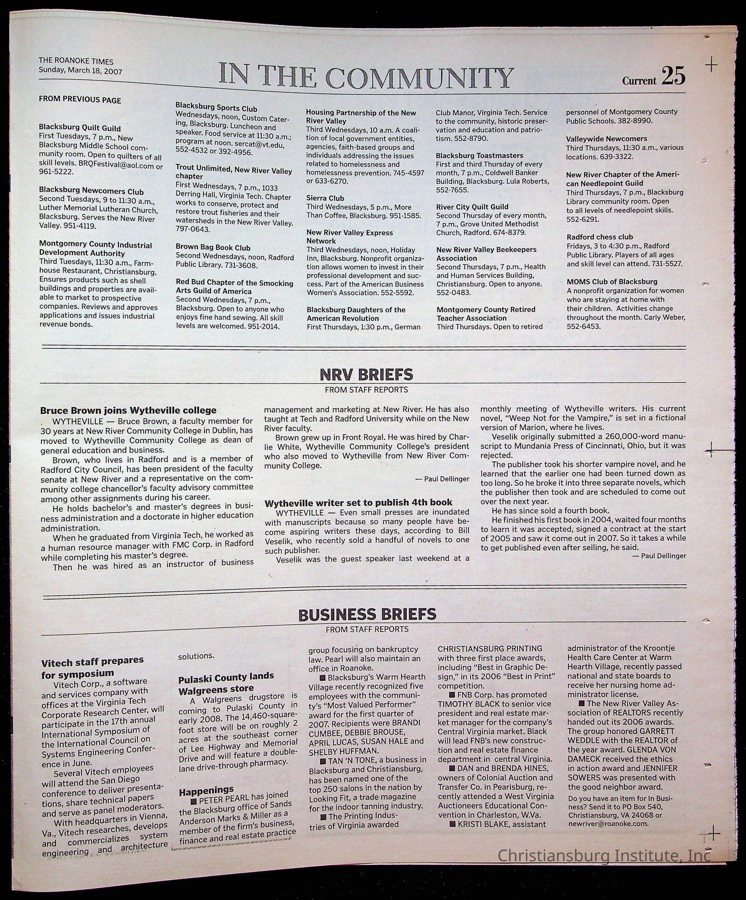 New River Valley Current Sunday, March 18, 2007Tags