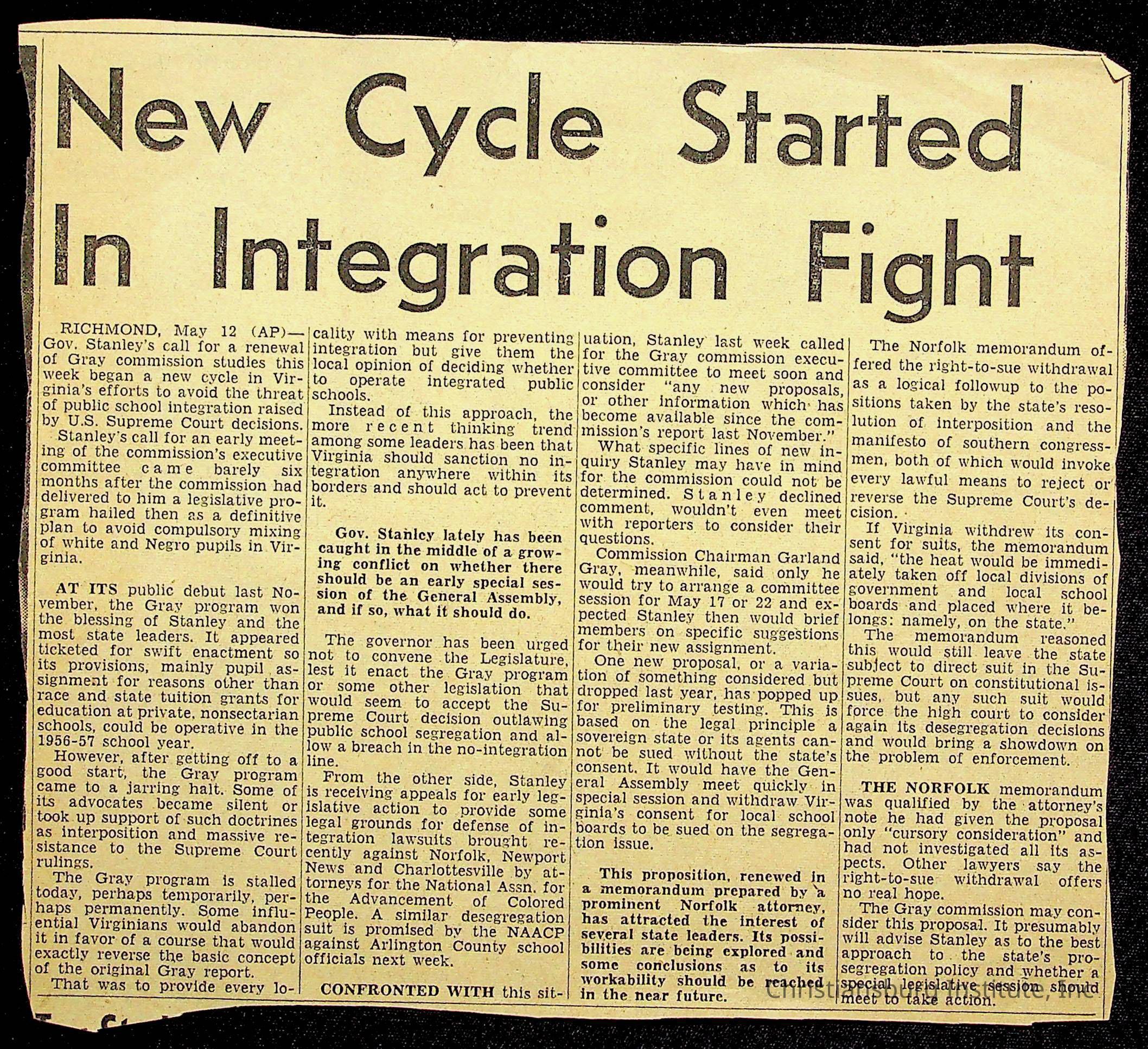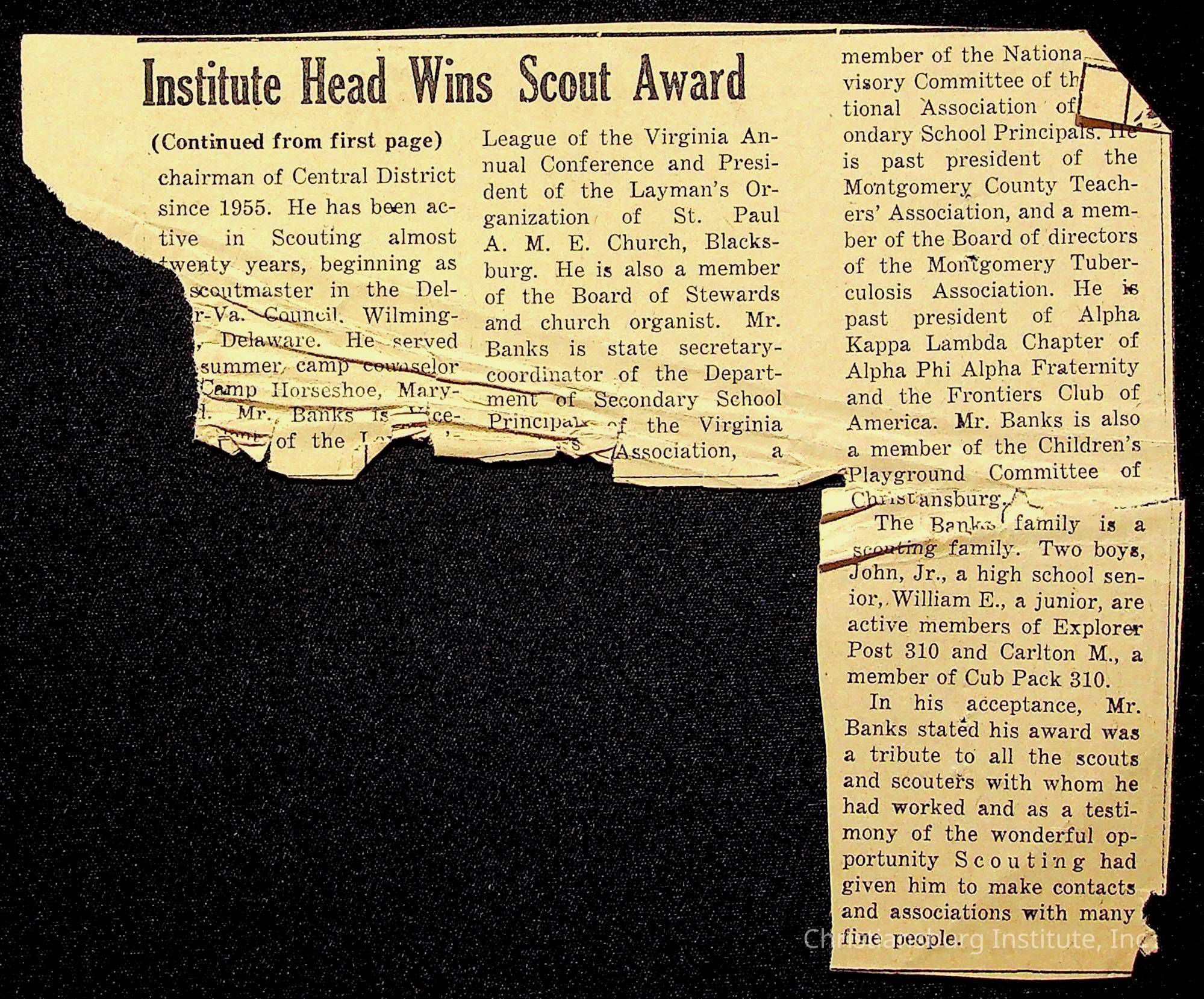 An archive of newspaper clippings that relate to Christiansburg Institute, circa 1950s-1960s.