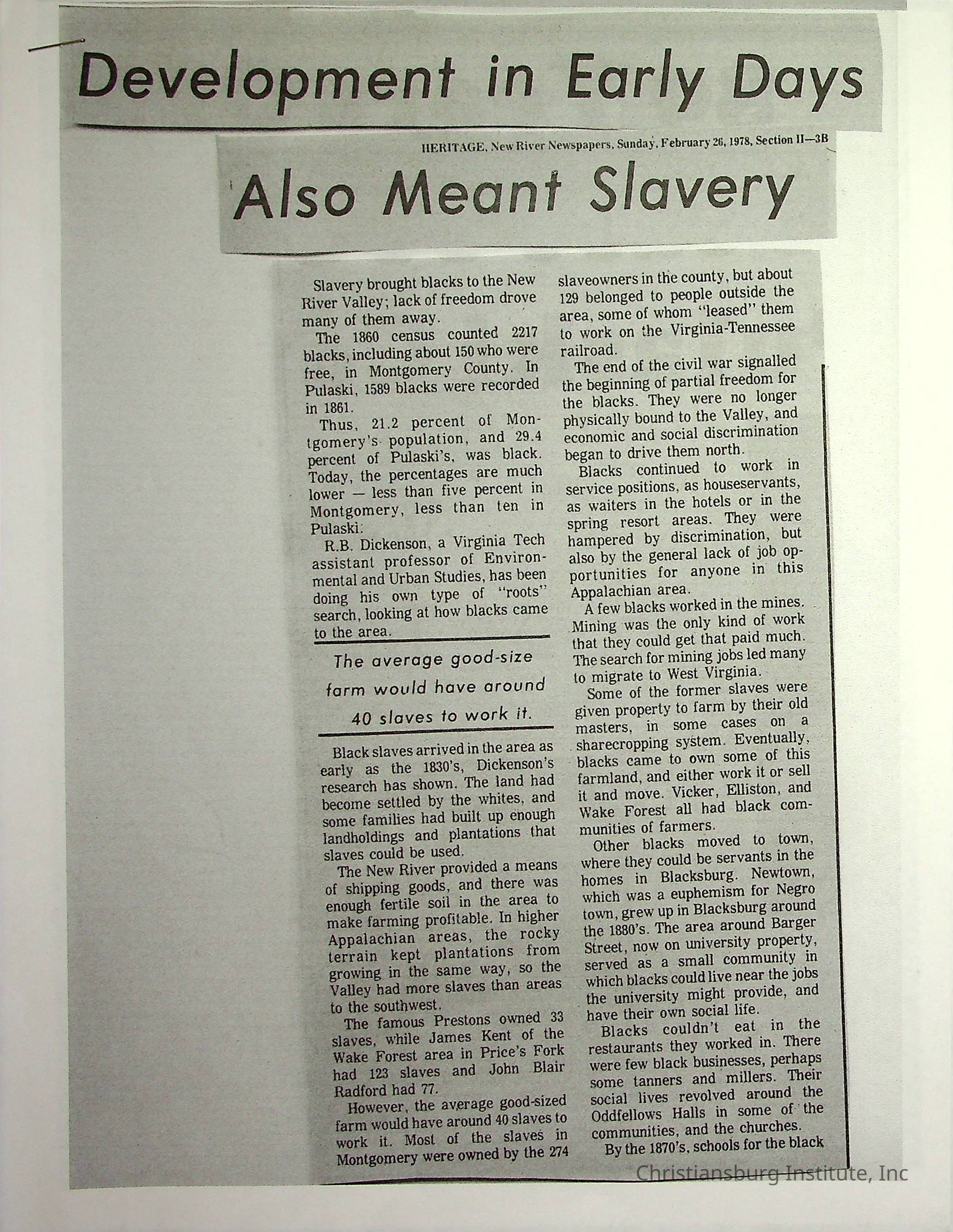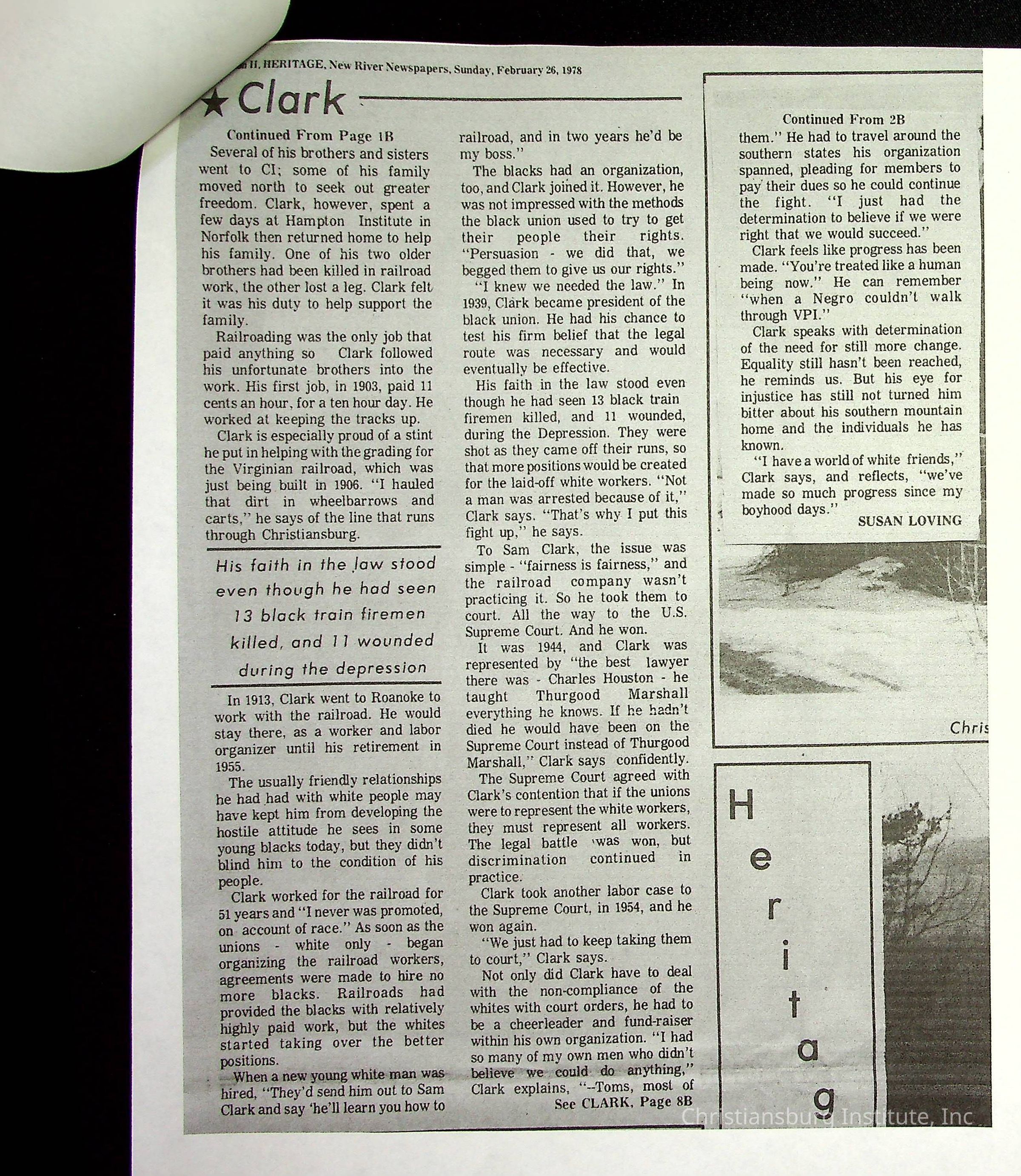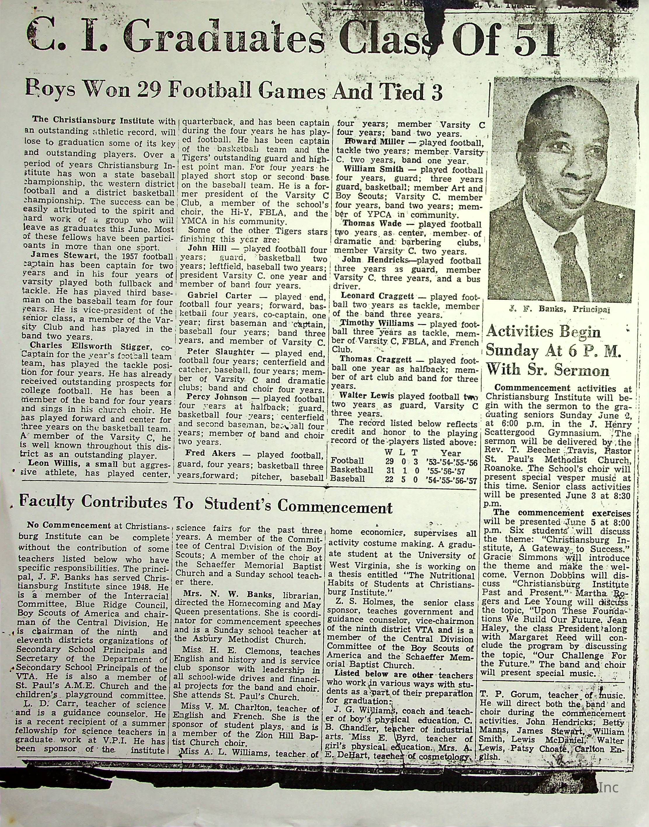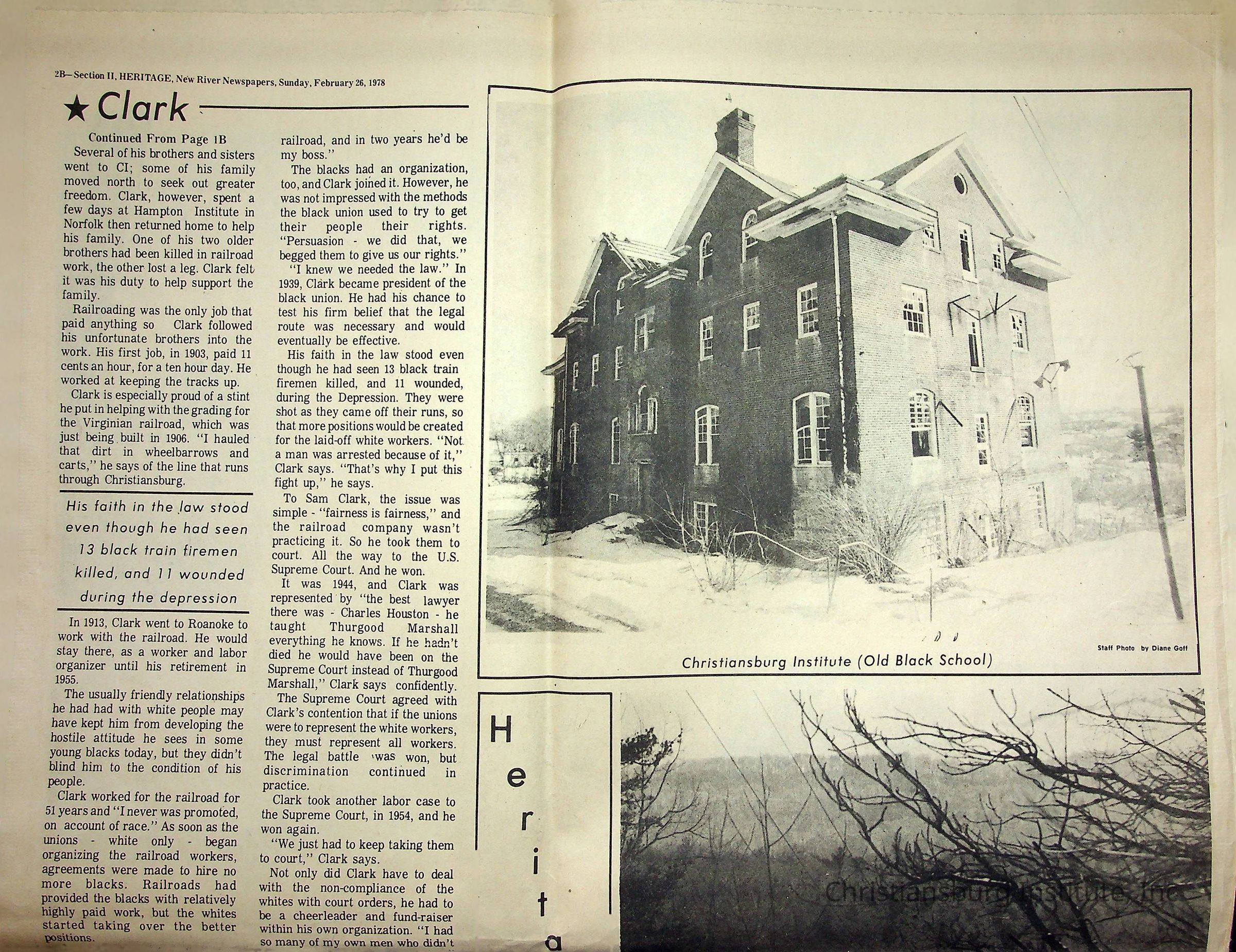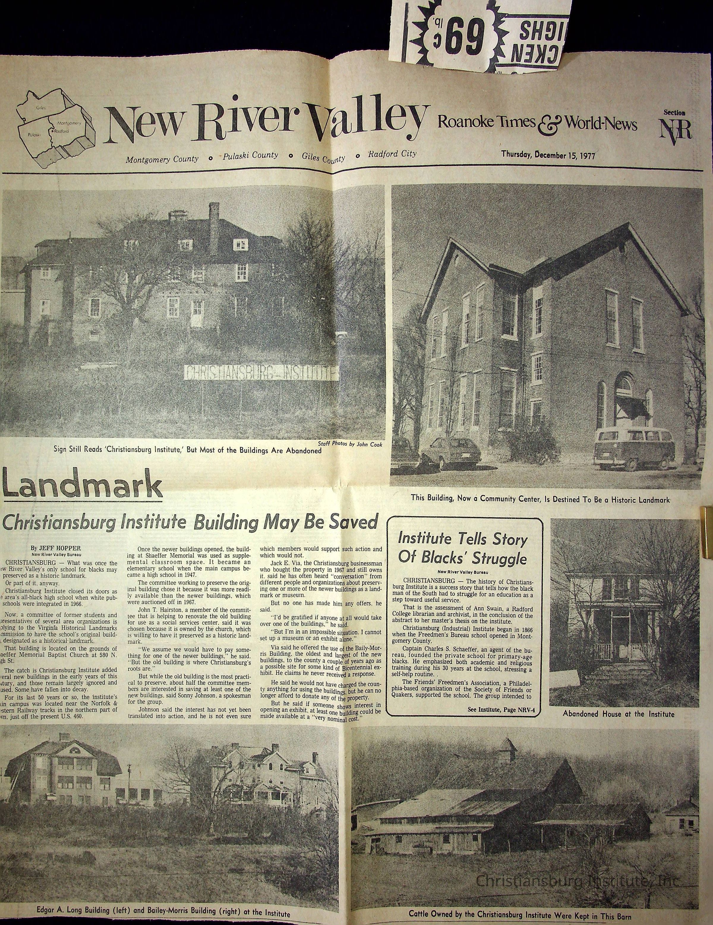 A collection of newspaper articles that feature stories about Christiansburg Institute dates range from 1913 through 1978. These articles come from various newspapers.Date(s) of Creation
