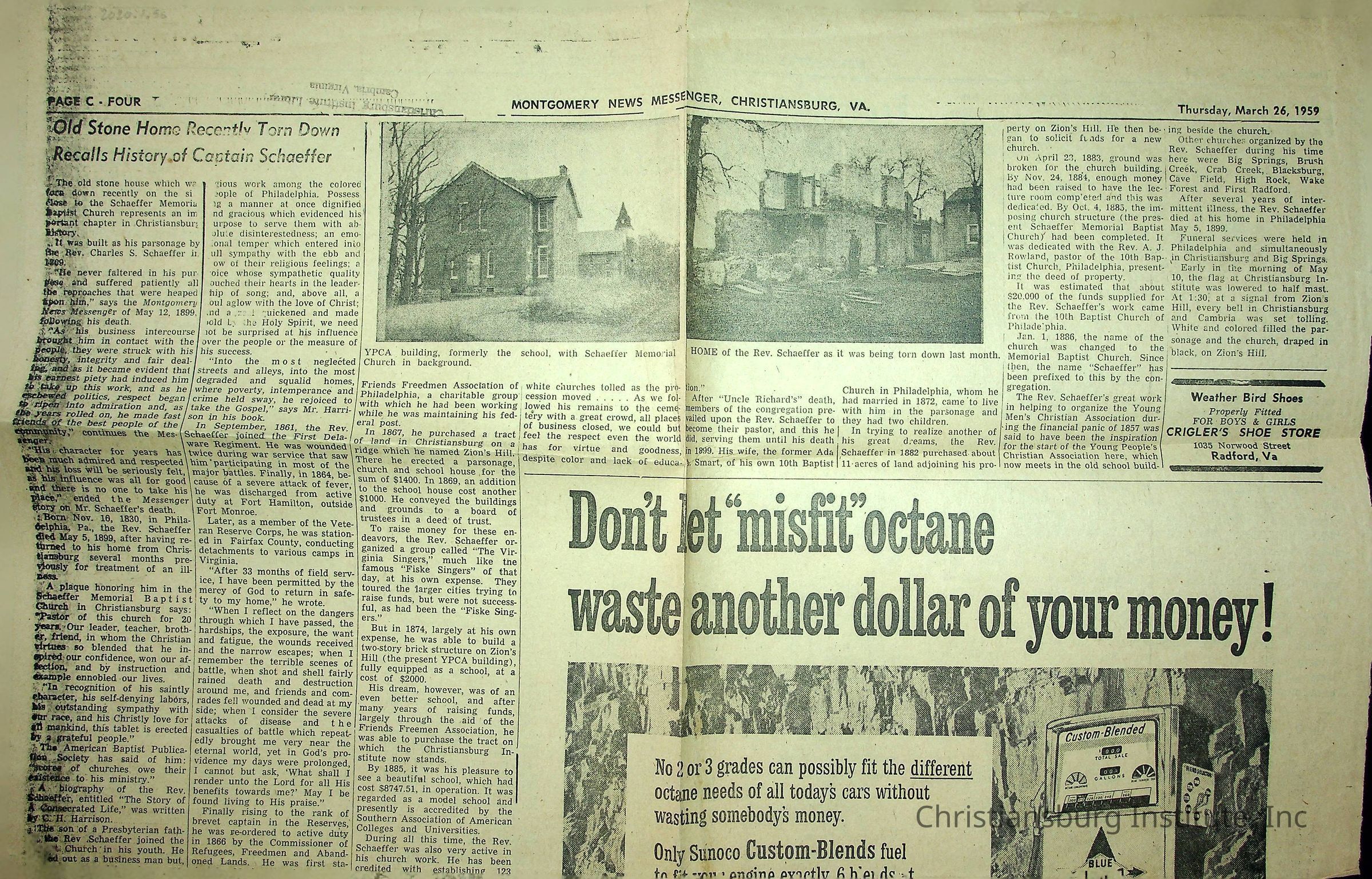 A newspaper clipping featuring a story about the history of CI's founder in the Montgomery News Messenger dated March 26th, 1959.Creator