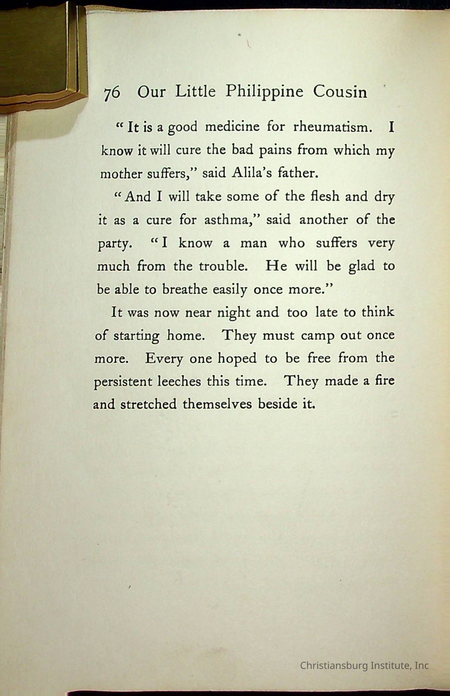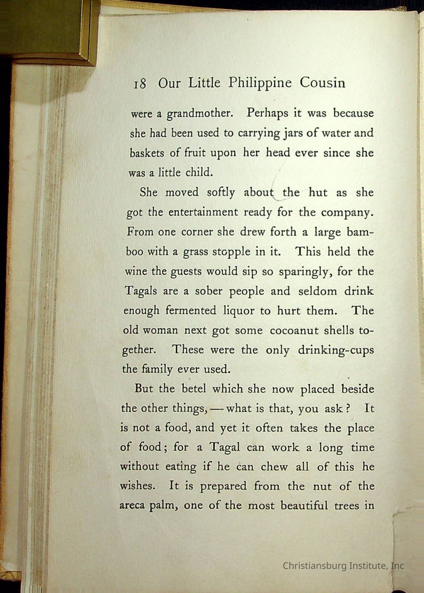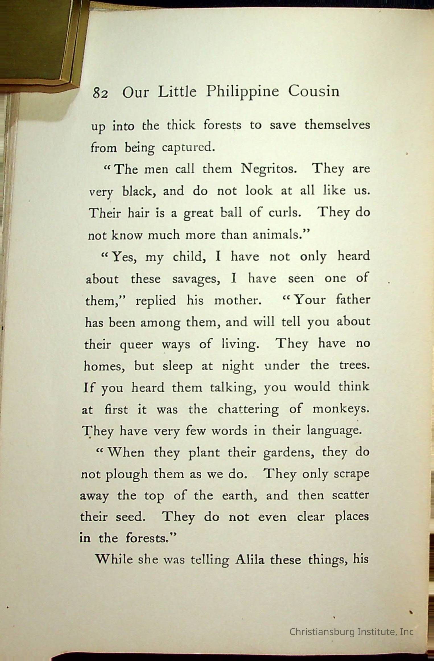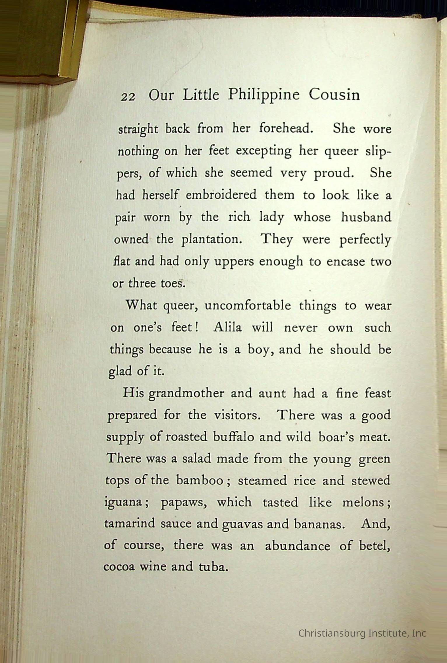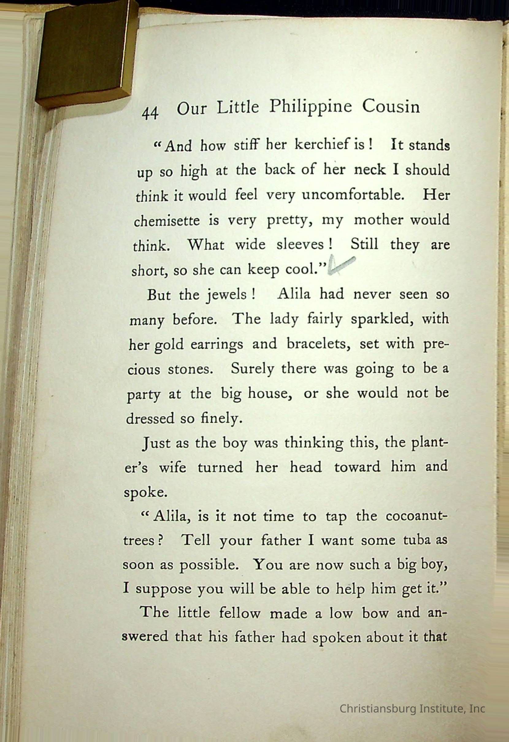 "Our Little Philippine Cousin" written by Mary Hazelton Wade and the 13th edition was published by the L. C. Page & Company in the year 1913. This book was part of Friends Elementary School's library.