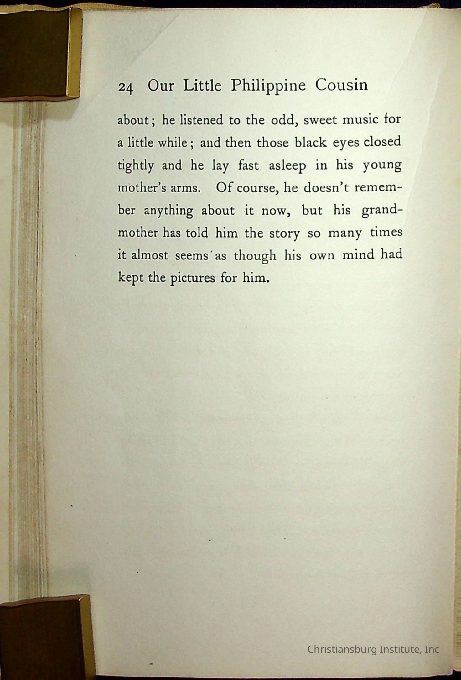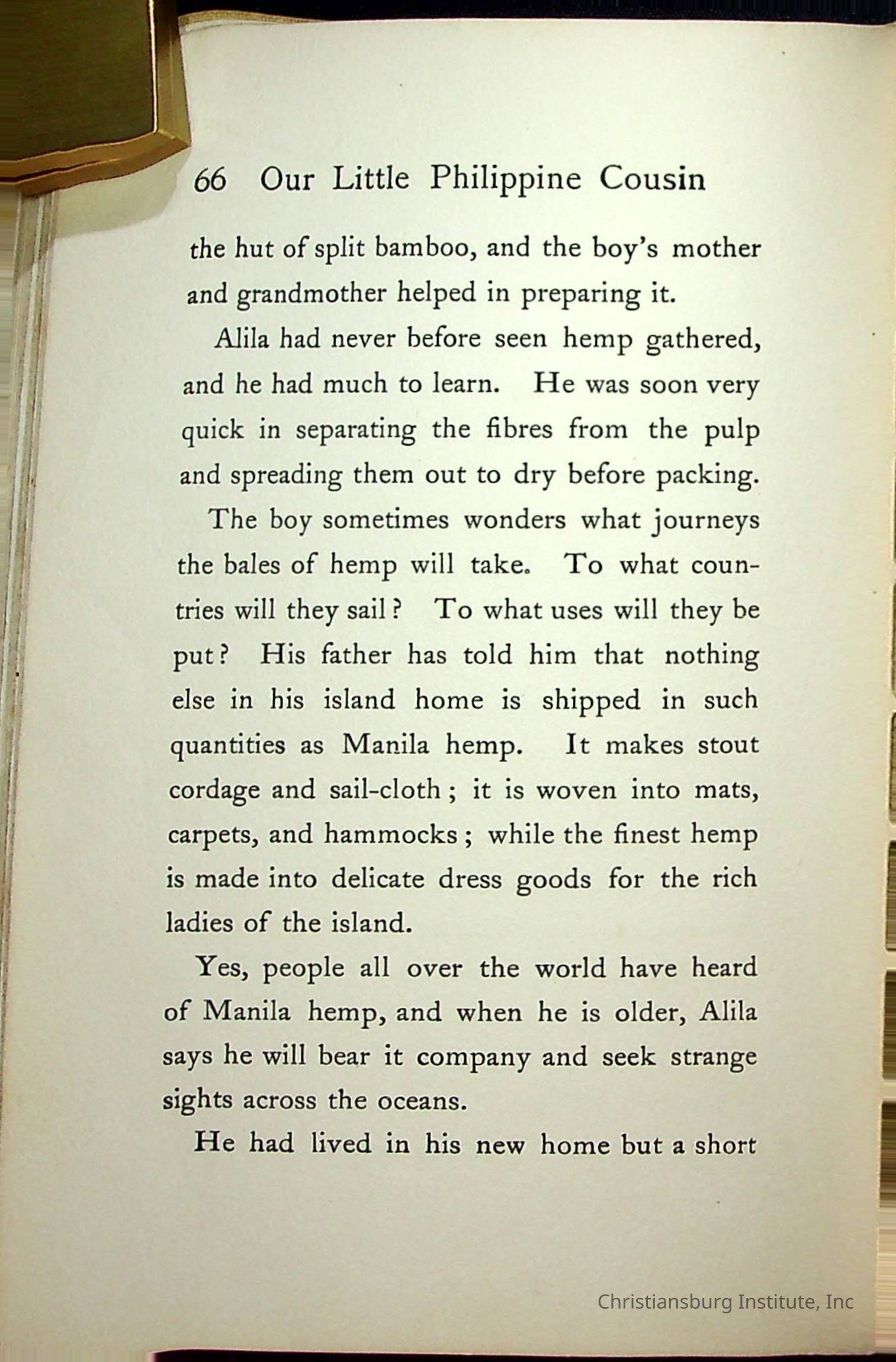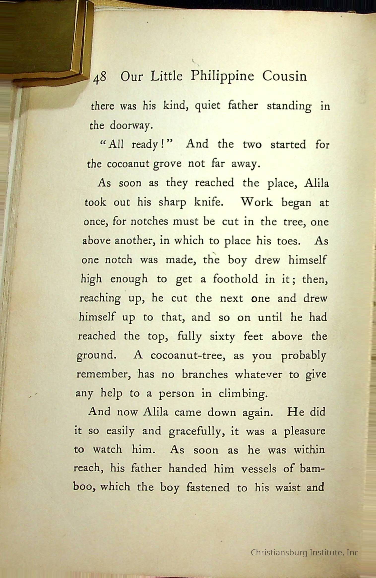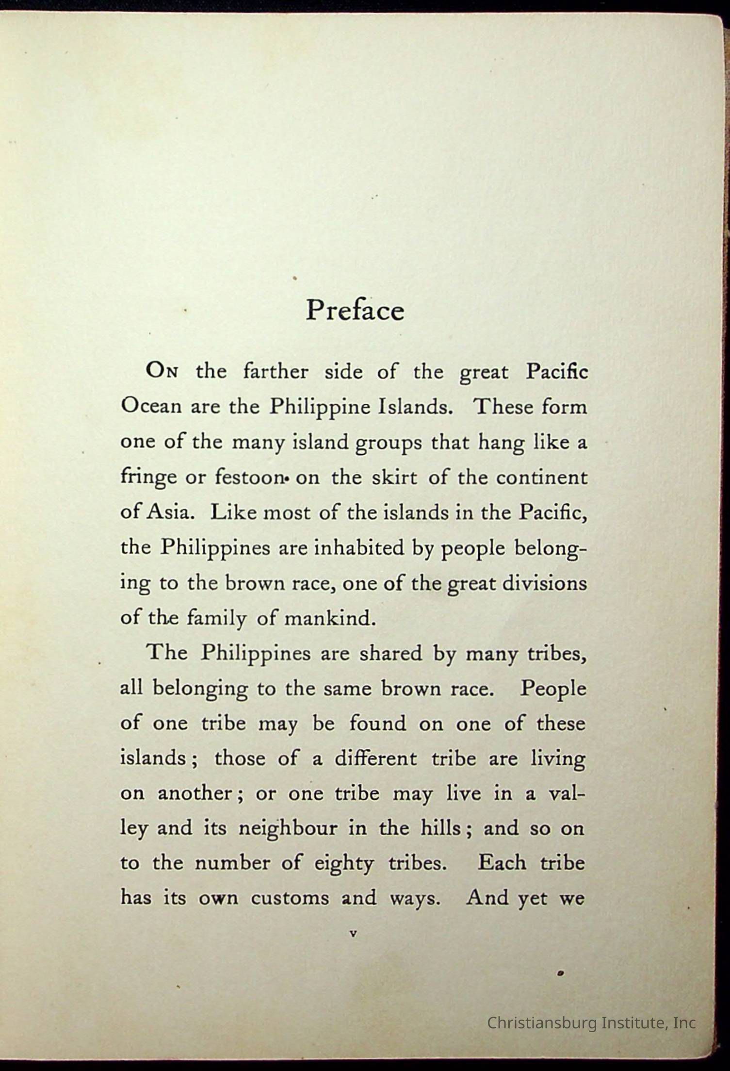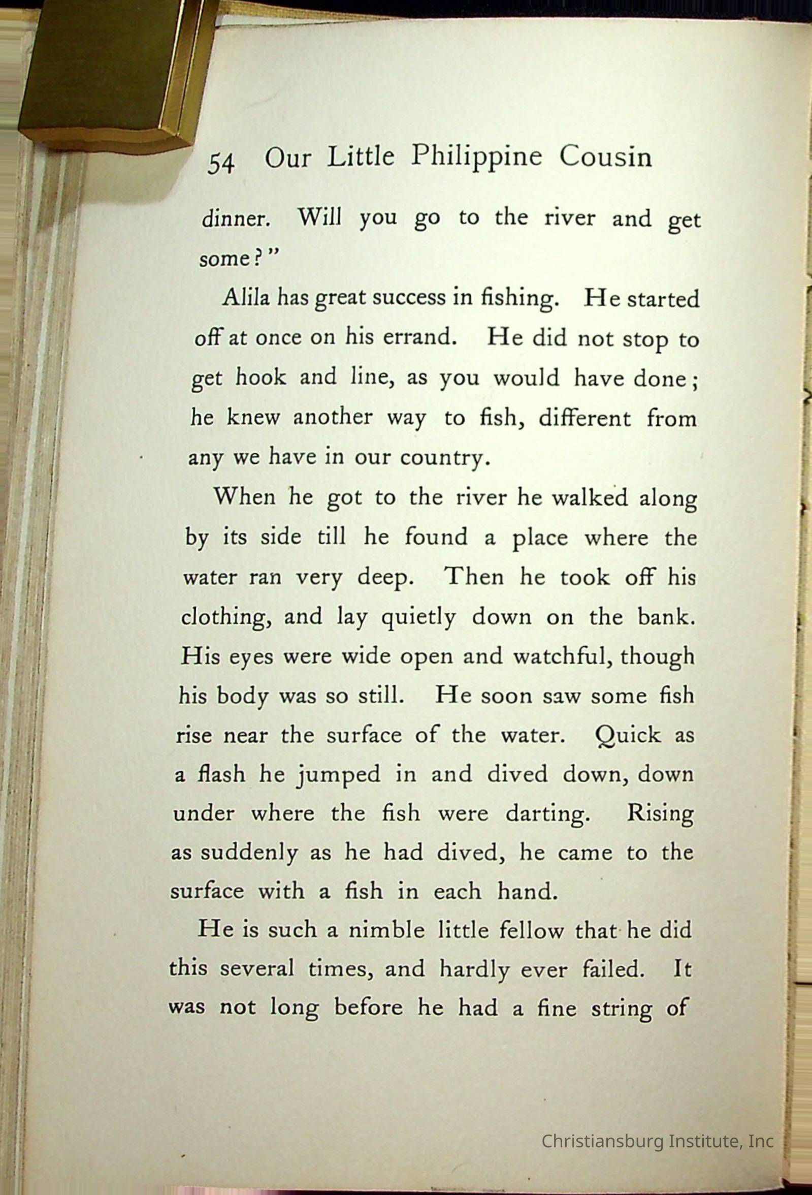 "Our Little Philippine Cousin" written by Mary Hazelton Wade and the 13th edition was published by the L. C. Page & Company in the year 1913. This book was part of Friends Elementary School's library.