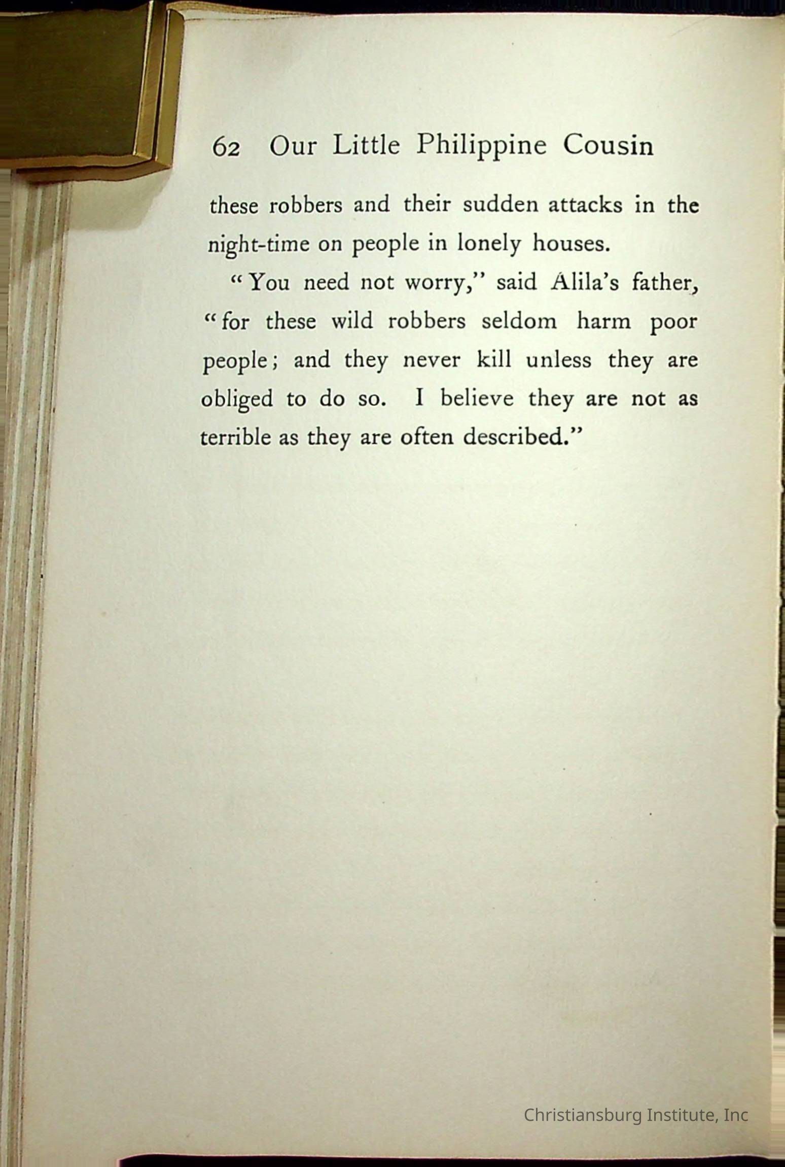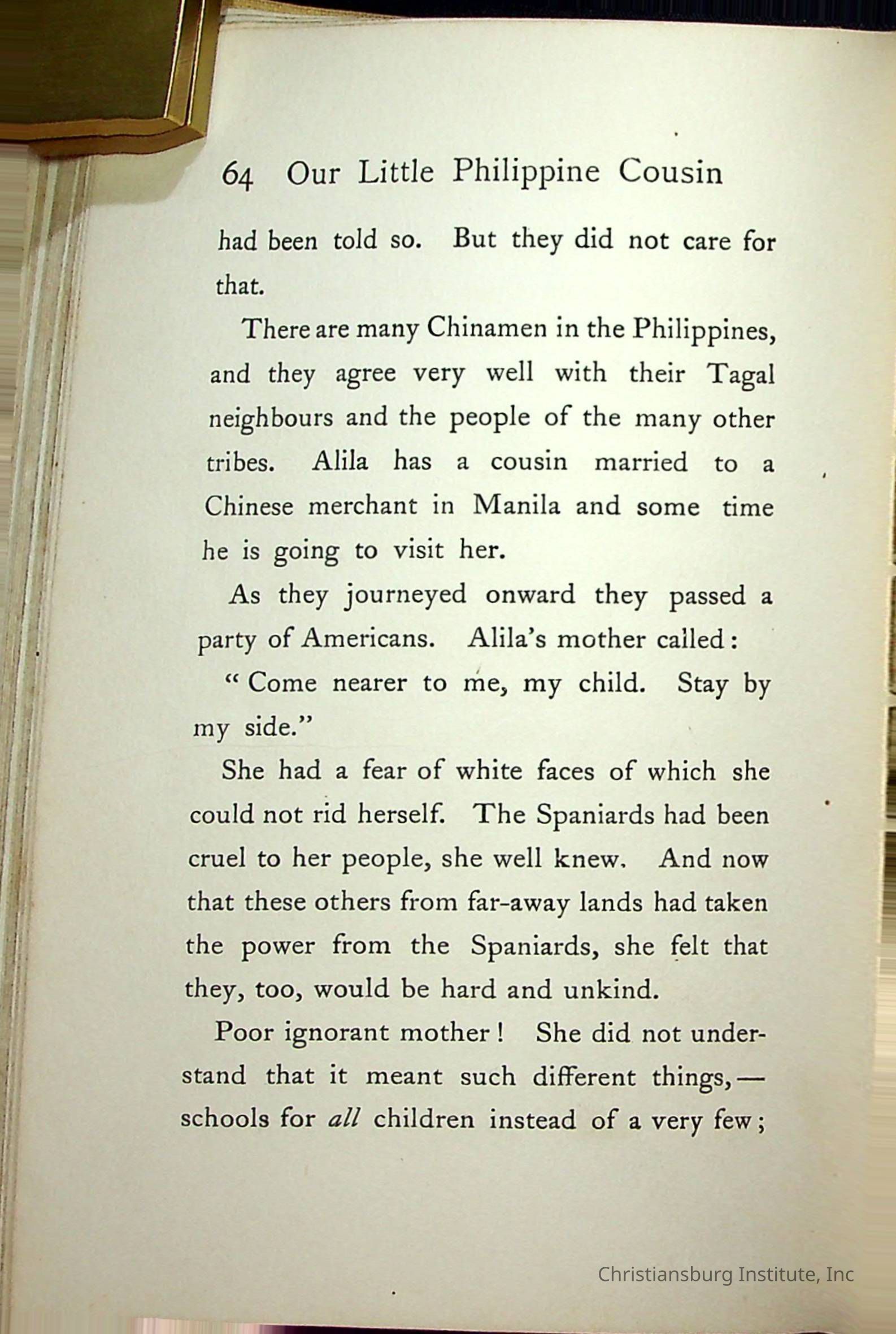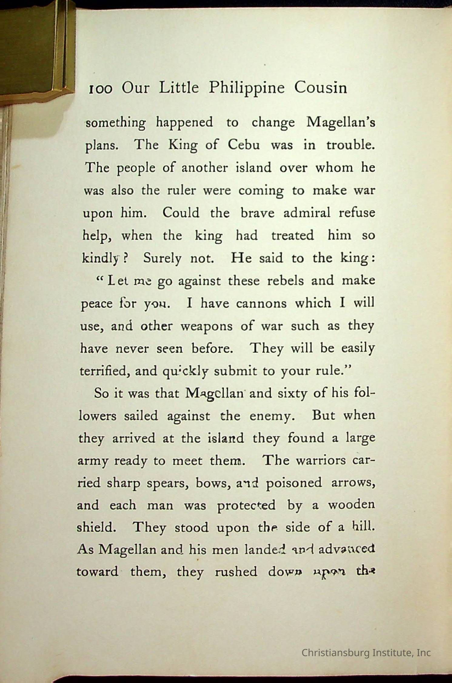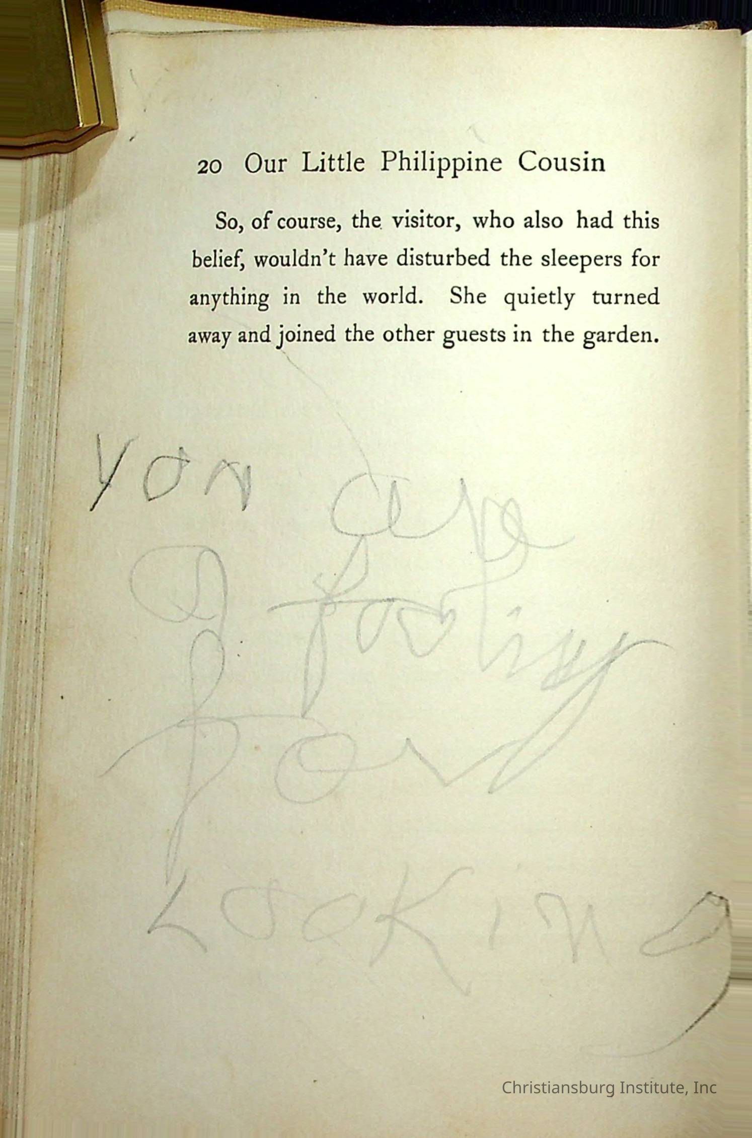 "Our Little Philippine Cousin" written by Mary Hazelton Wade and the 13th edition was published by the L. C. Page & Company in the year 1913. This book was part of Friends Elementary School's library.