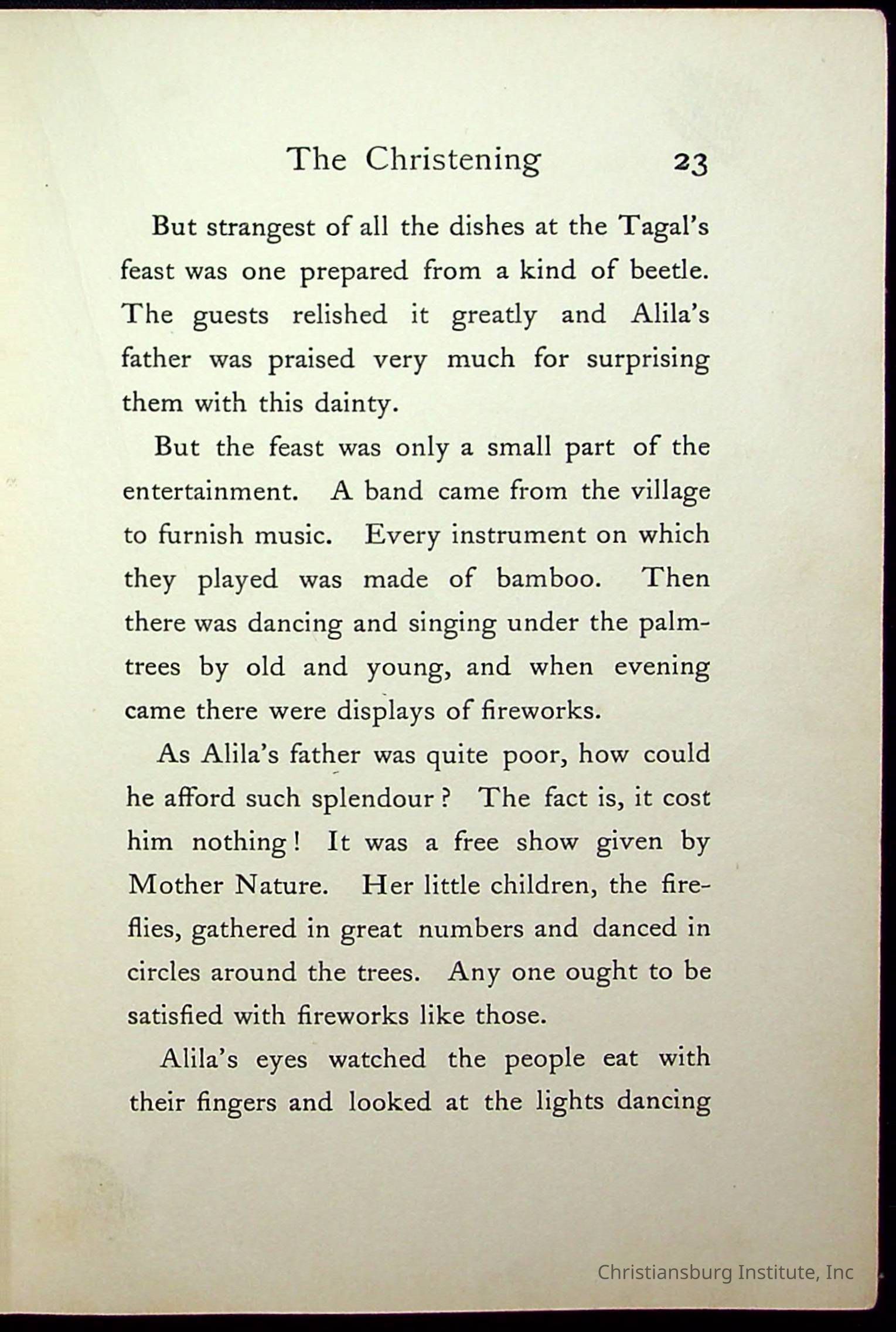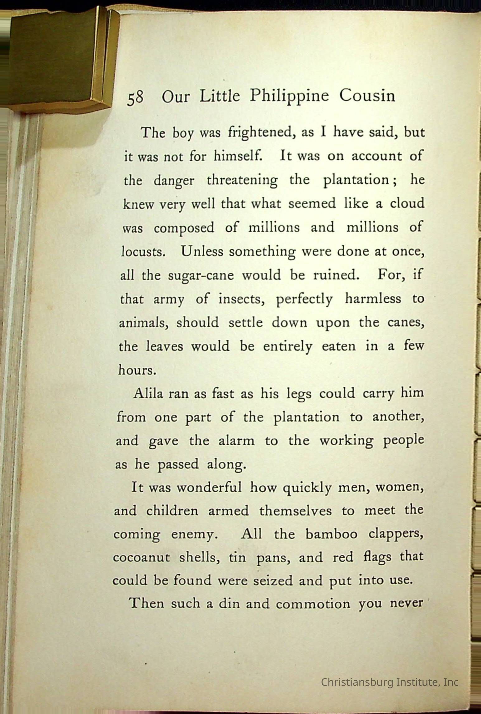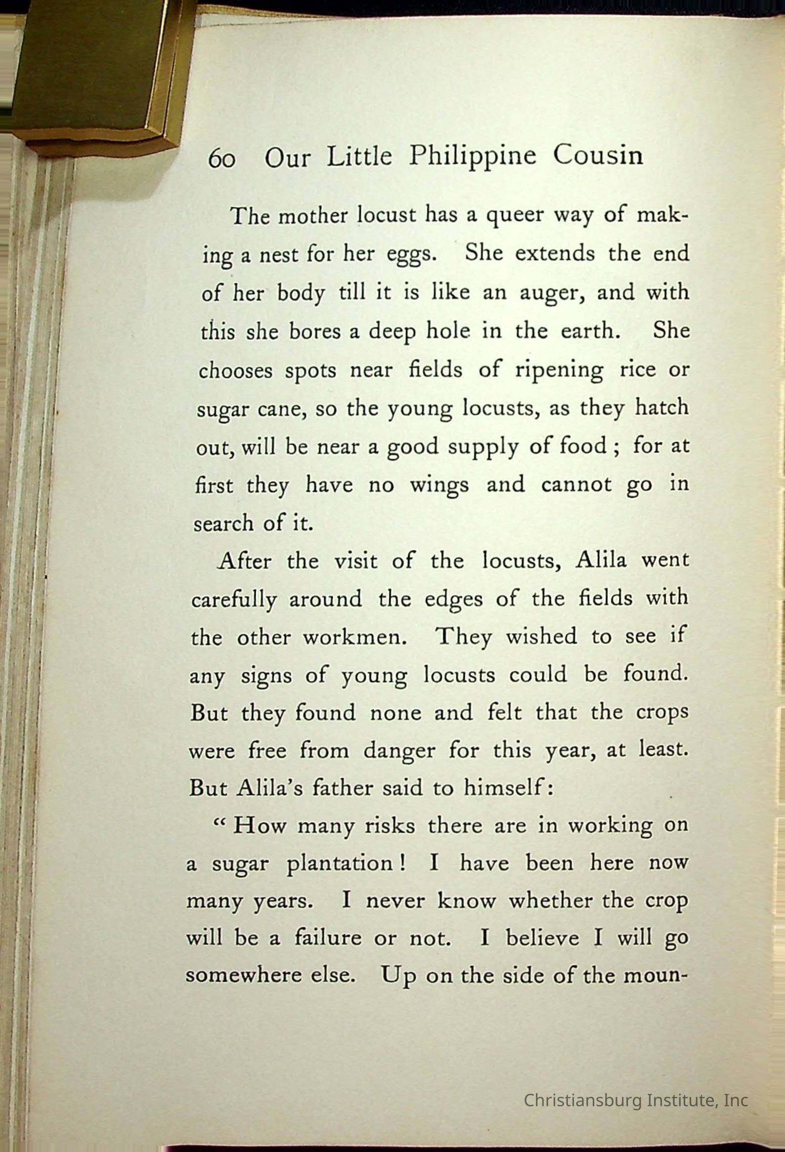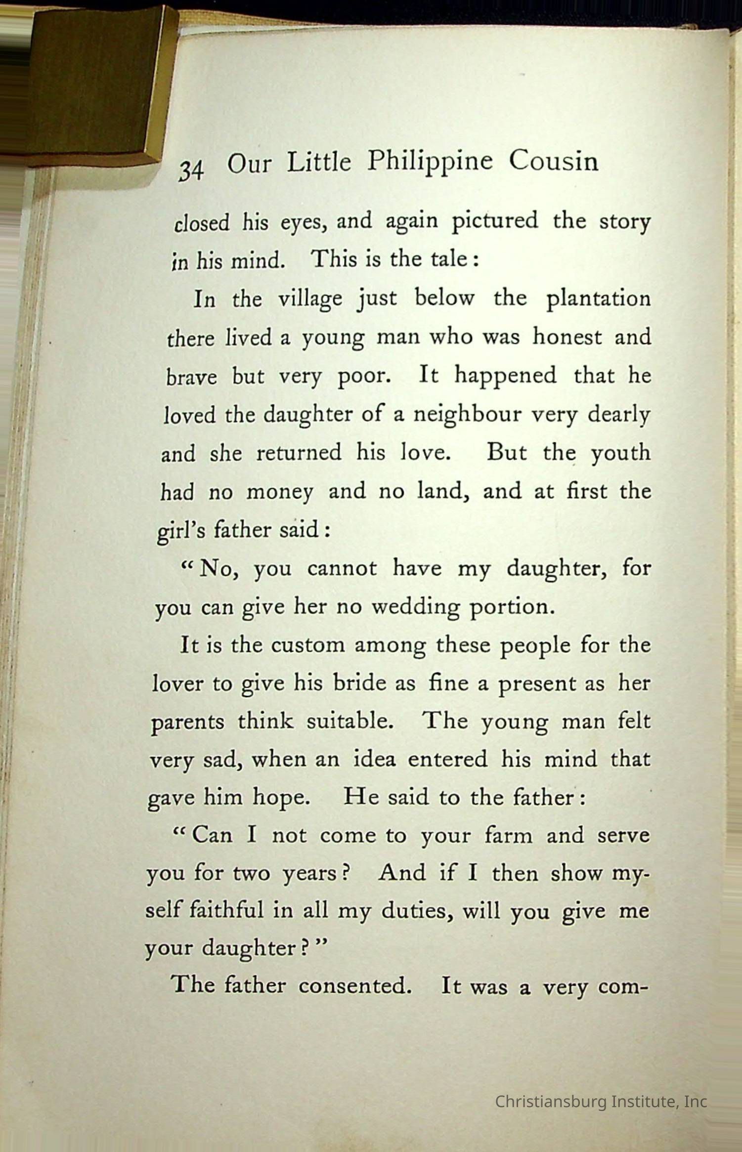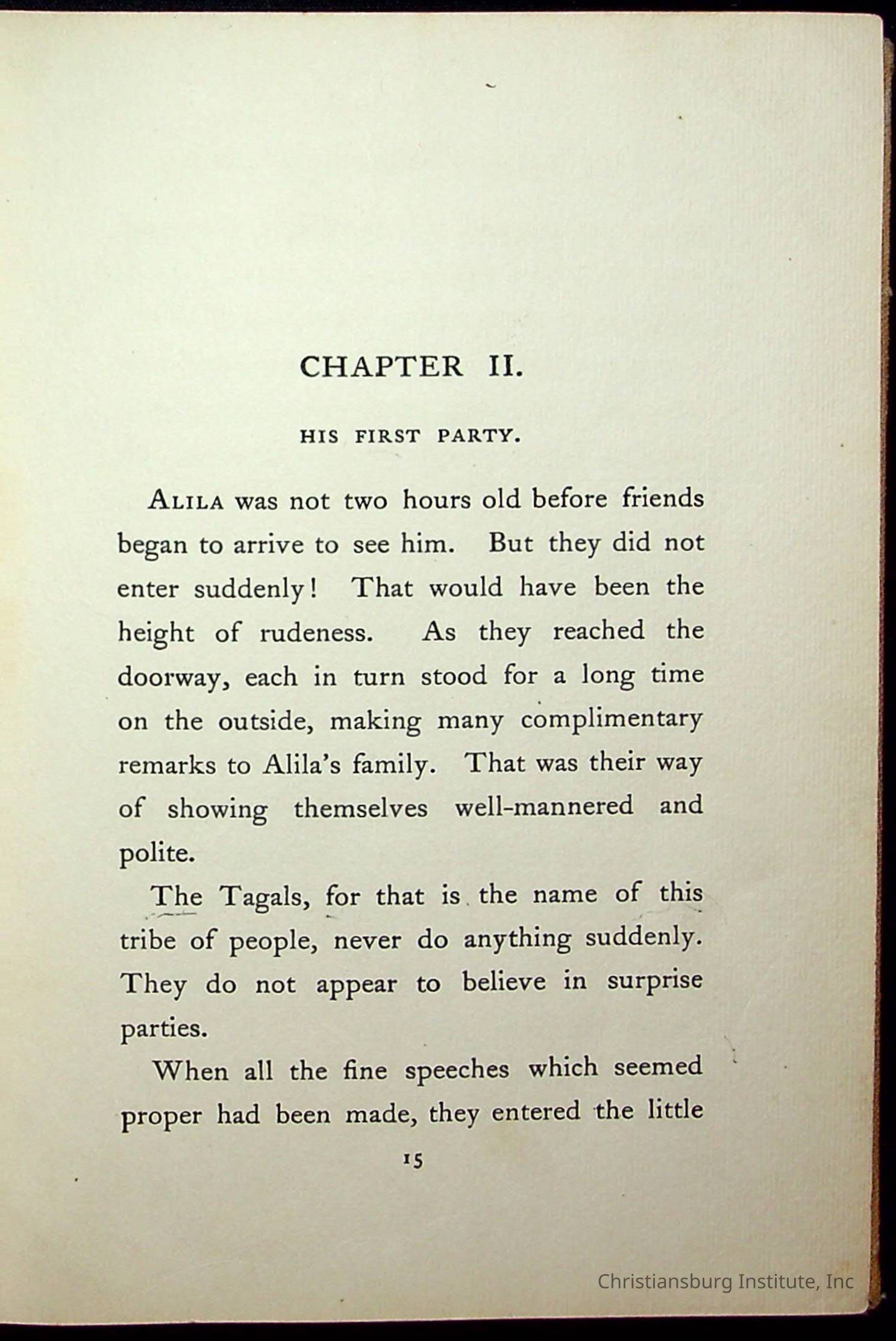 "Our Little Philippine Cousin" written by Mary Hazelton Wade and the 13th edition was published by the L. C. Page & Company in the year 1913. This book was part of Friends Elementary School's library.