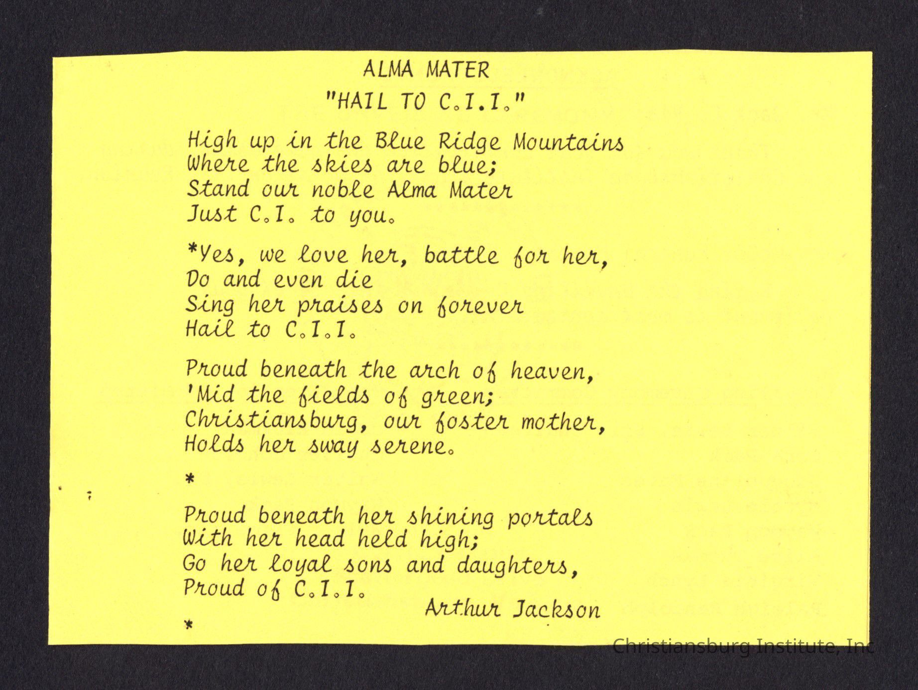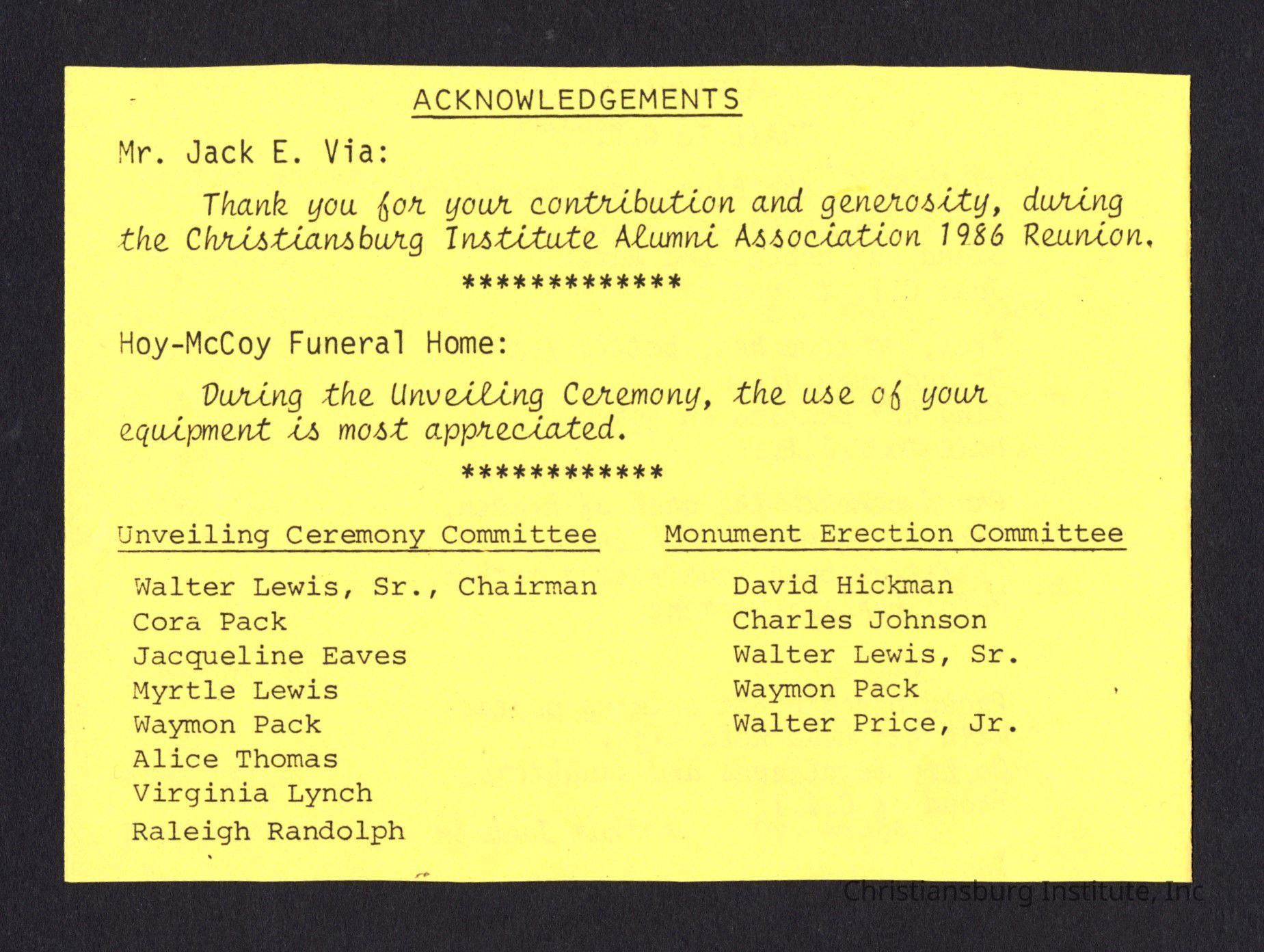 Copyright has been assigned to Christiansburg Institute Museum & Archives by Amanda DeHart. For permission to publish materials created by the donor, contact CIMA@christiansburginstitute.com. Materials not created by Amanda DeHart may still be under copyright.