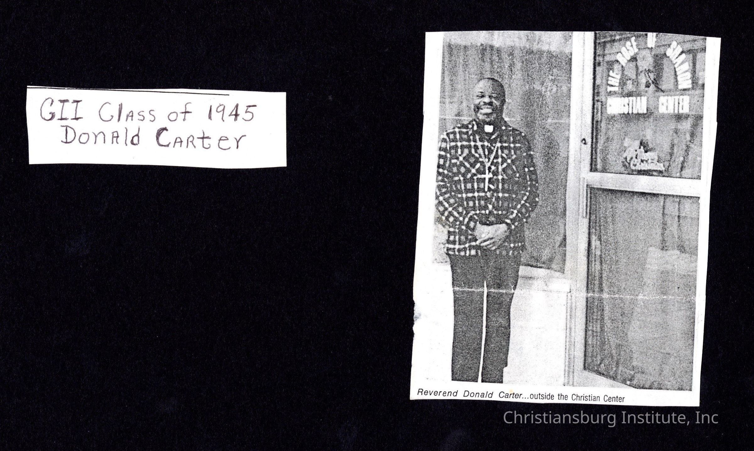 A photo album filled with photographs of Christiansburg Industrial Institute alumni. This photo album was compiled by Amanda DeHart and is undated.