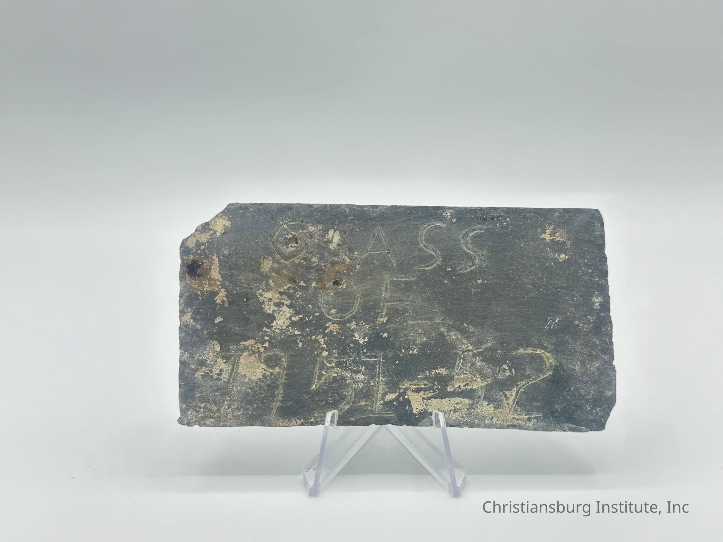 A slate plaque inscribed by the class of 1951-1952 at Christiansburg Institute that was placed in the Scattergood cornerstone time capsule, dated 1952.Context