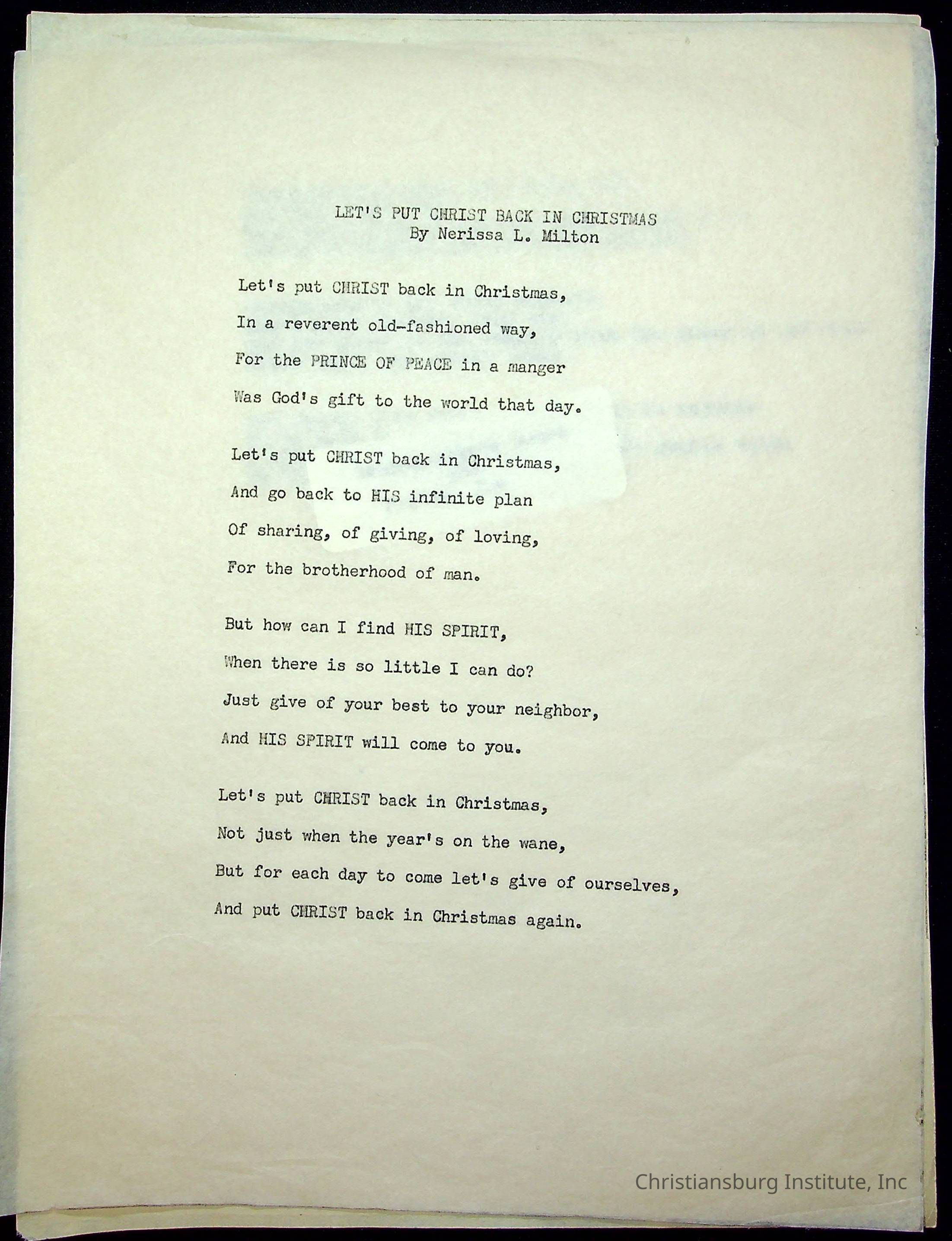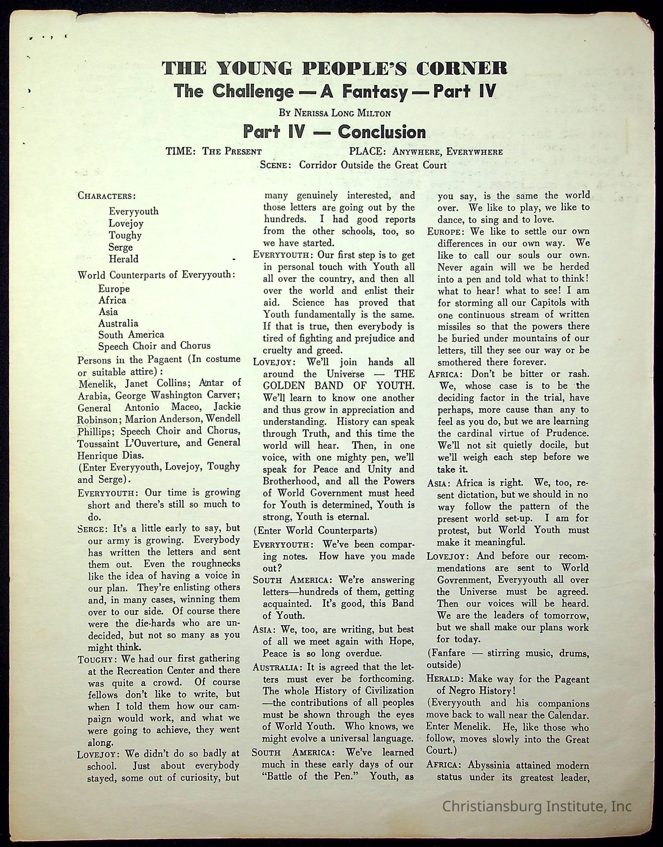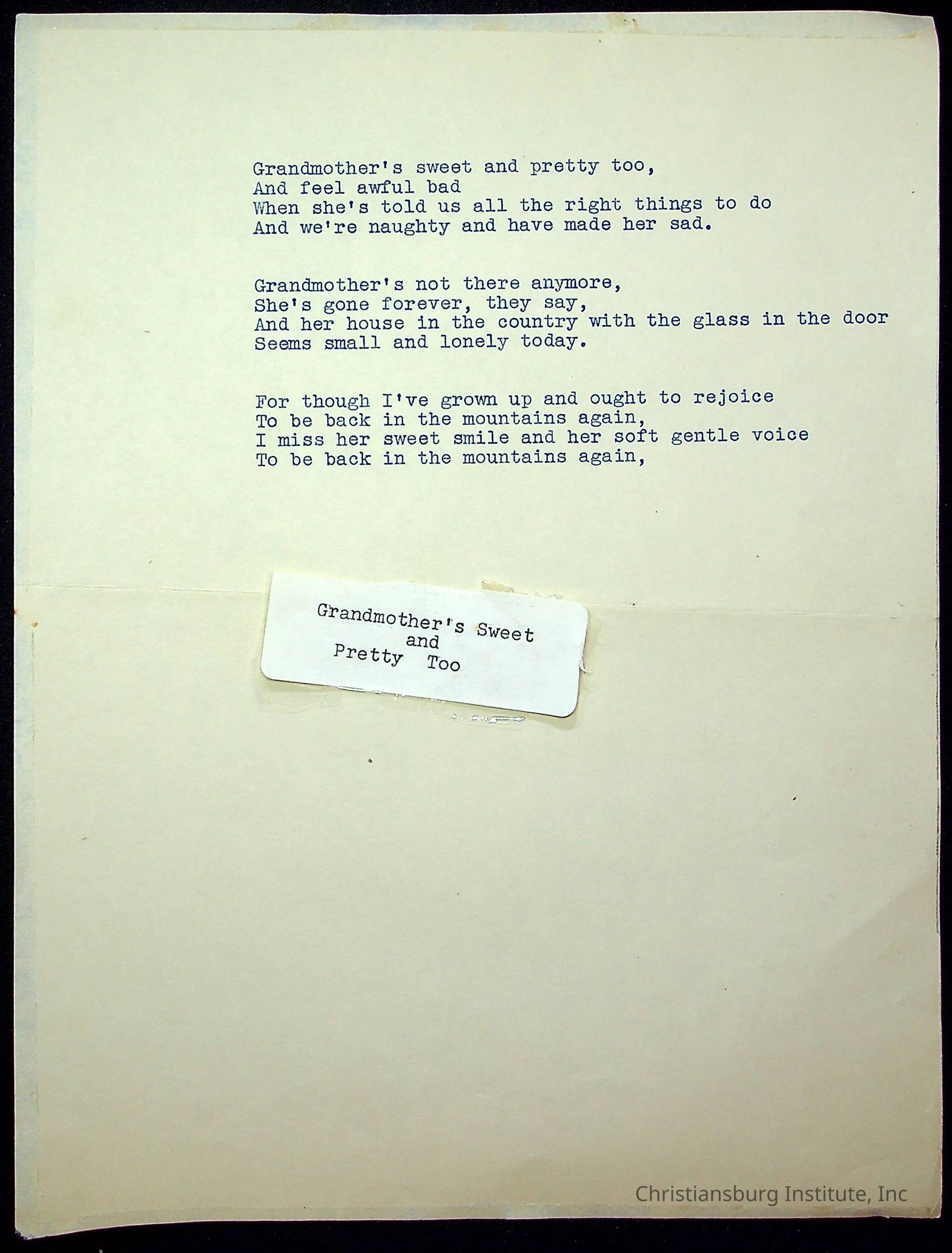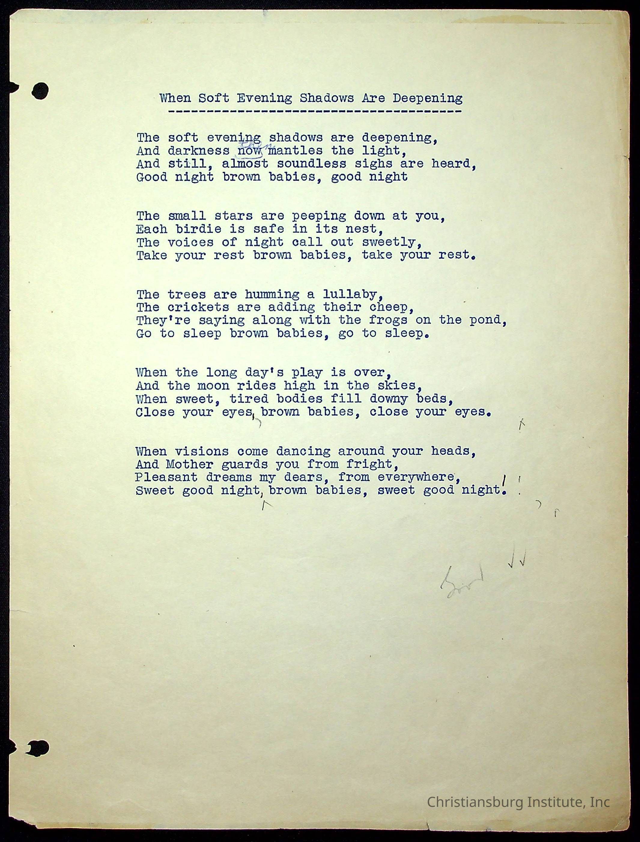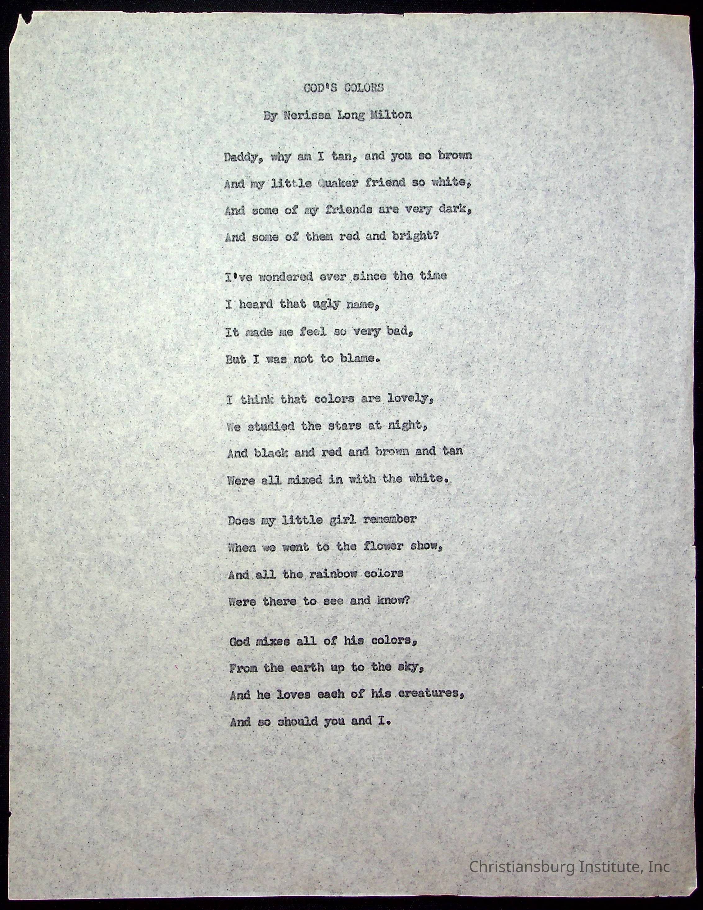 Copyright has been assigned to Christiansburg Institute Museum & Archives. For permission to publish materials created by the donor, contact CIMA@christiansburginstitute.com. Materials not created by Christiansburg Institute Museum and Archives may still be under copyright.