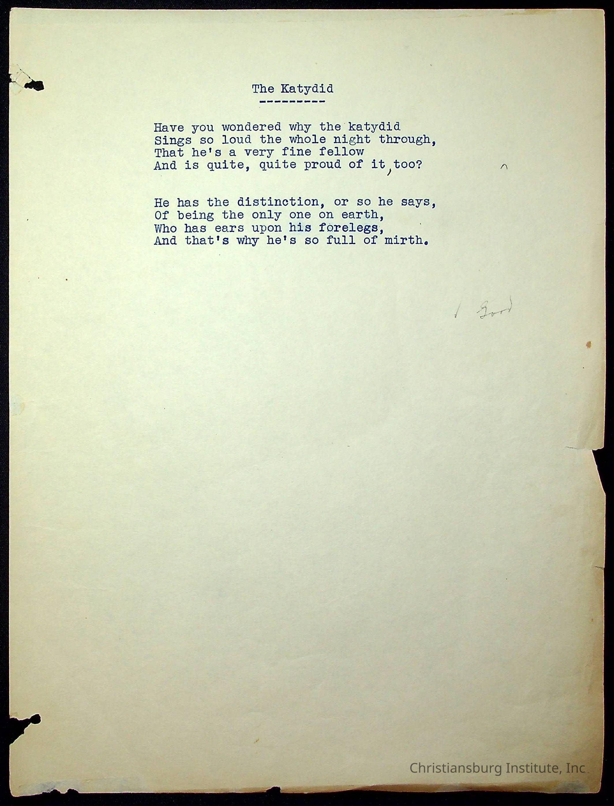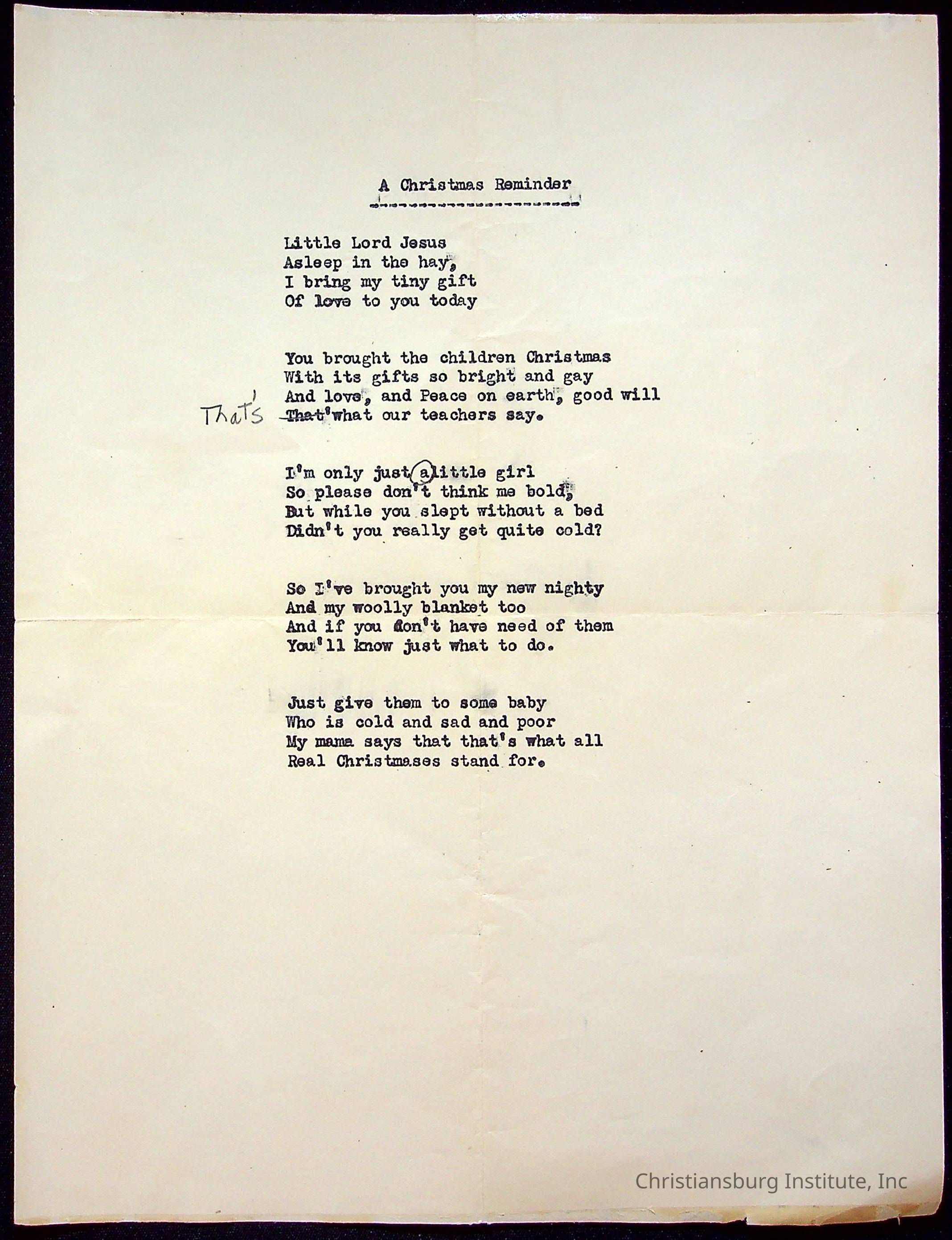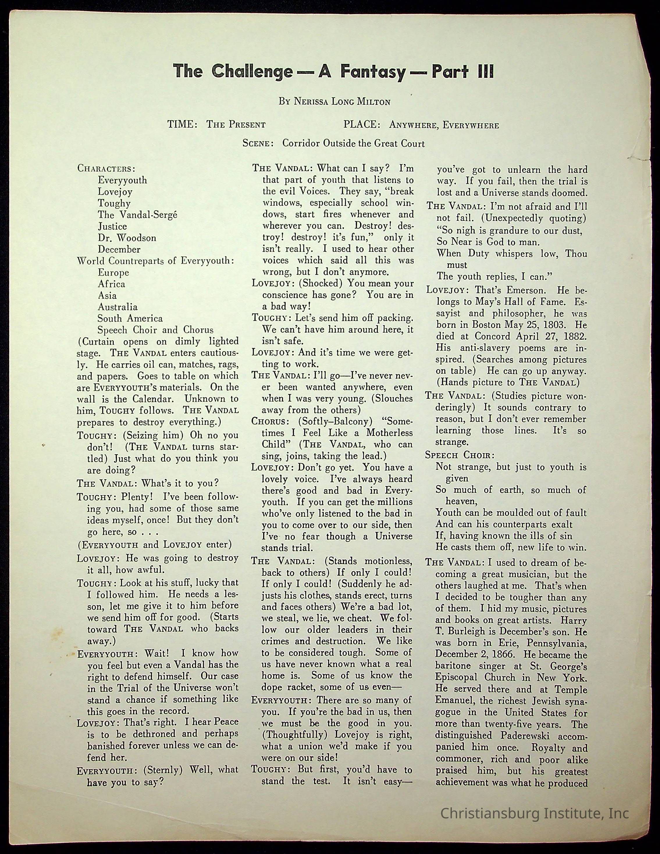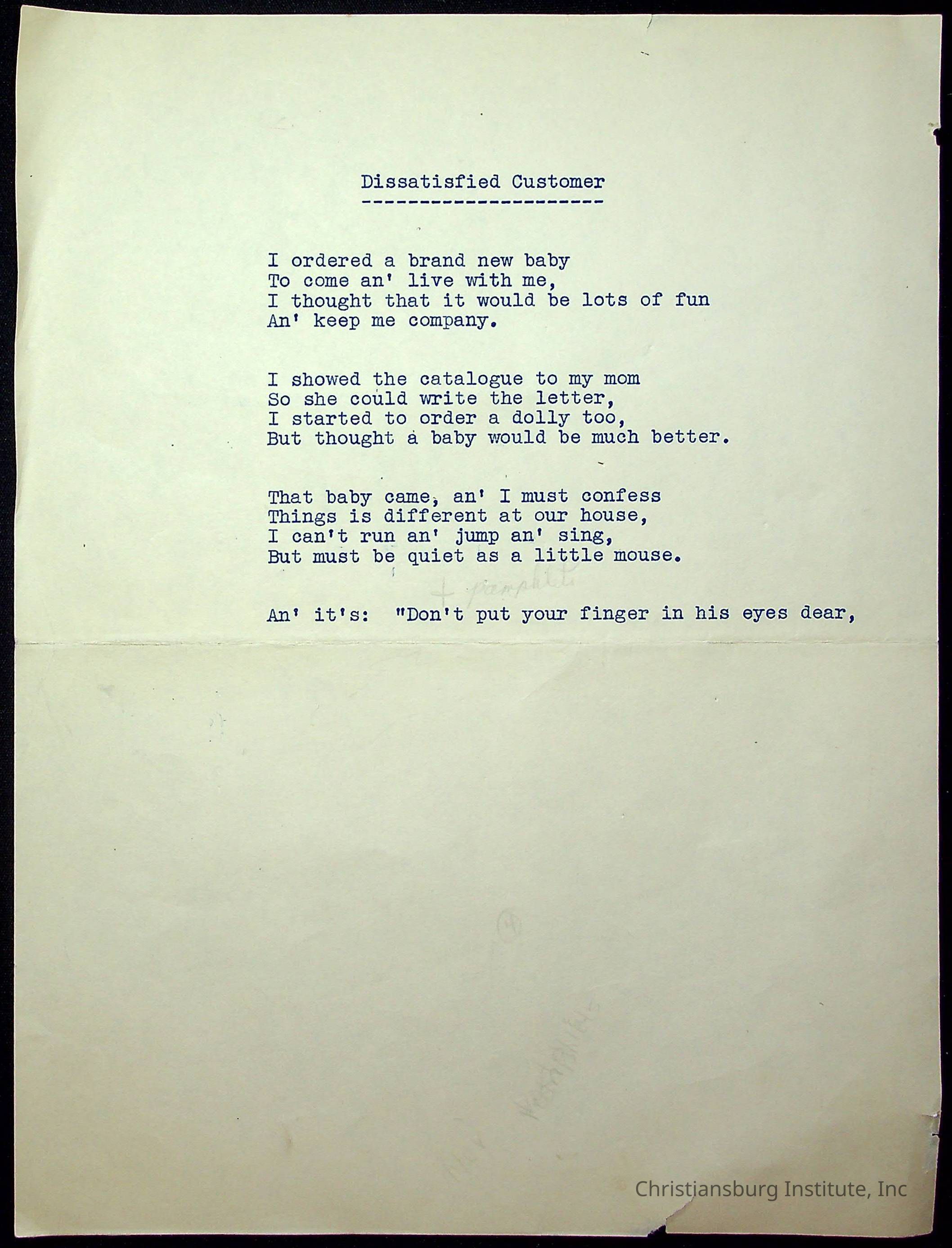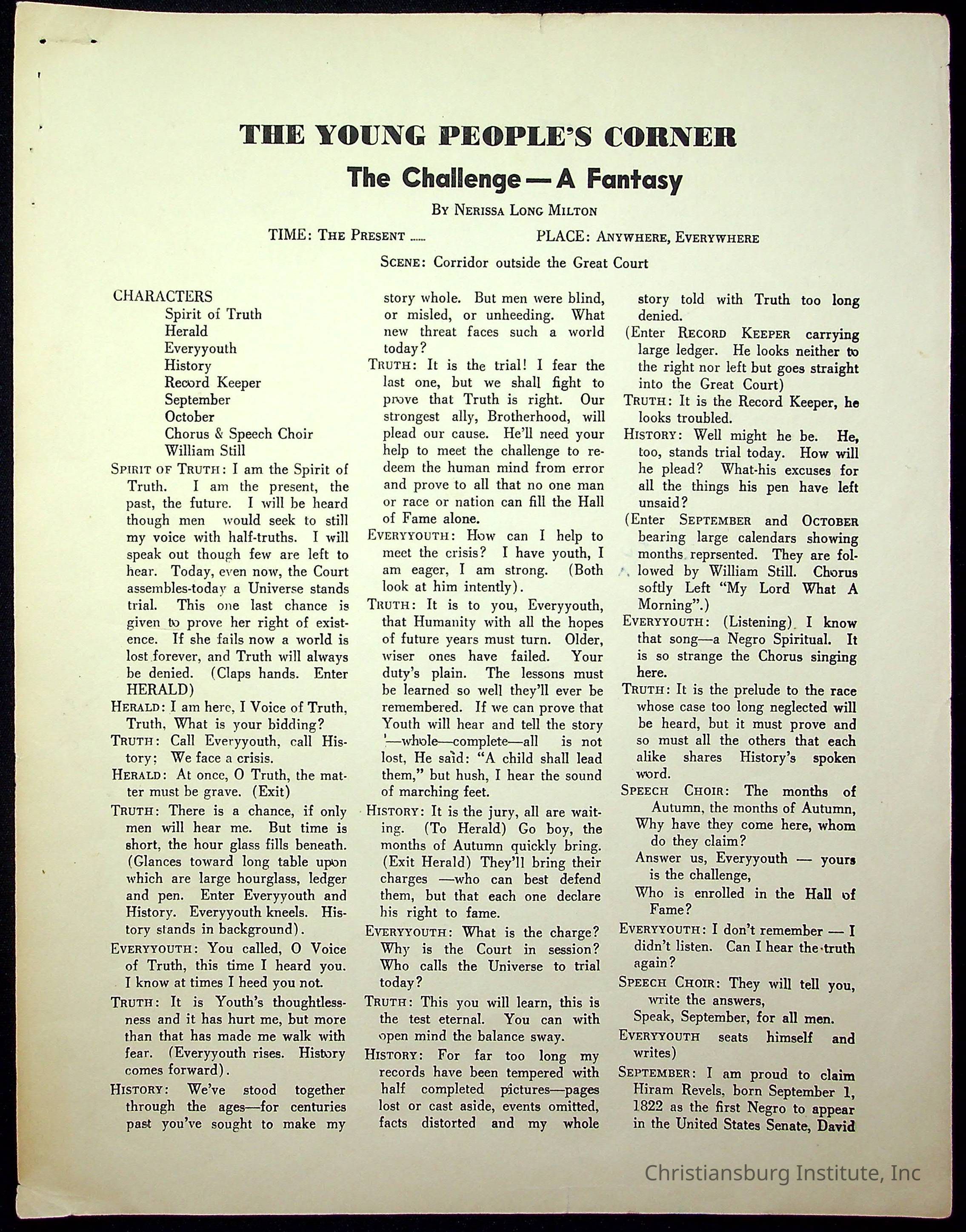 Copyright has been assigned to Christiansburg Institute Museum & Archives. For permission to publish materials created by the donor, contact CIMA@christiansburginstitute.com. Materials not created by Christiansburg Institute Museum and Archives may still be under copyright.