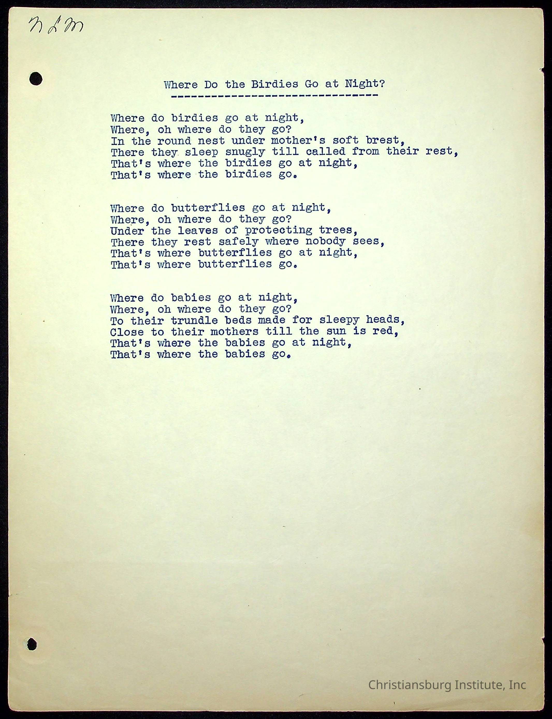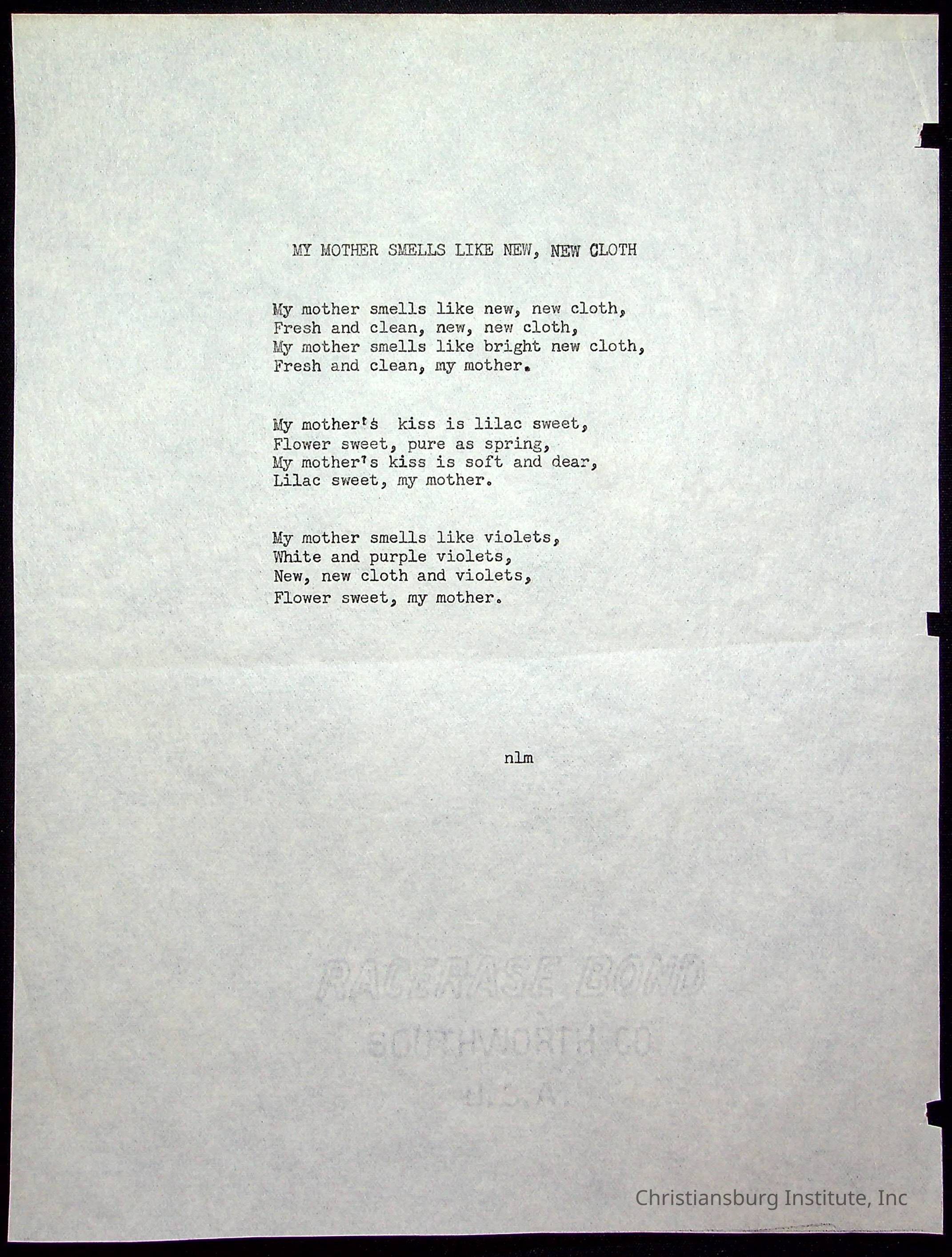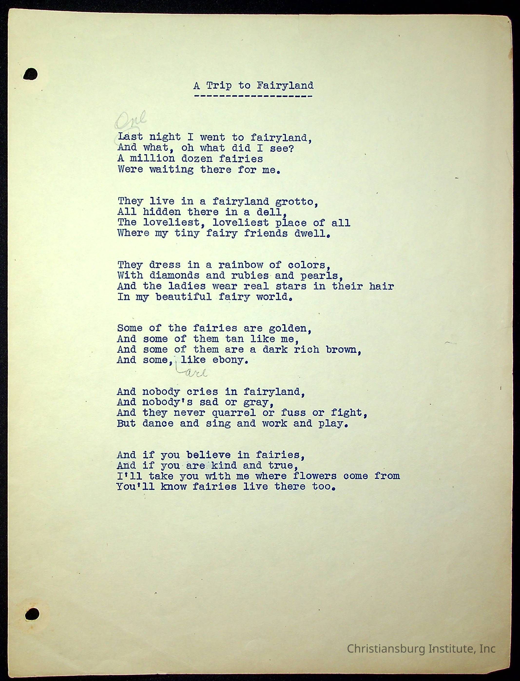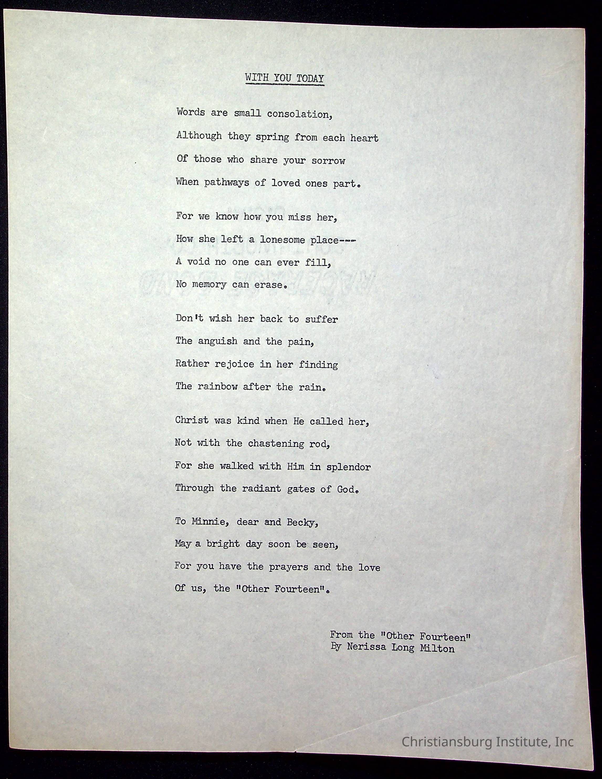 A copy of the "Poems for Children" written by Nerissa Long Milton dated July 31st, 1986.