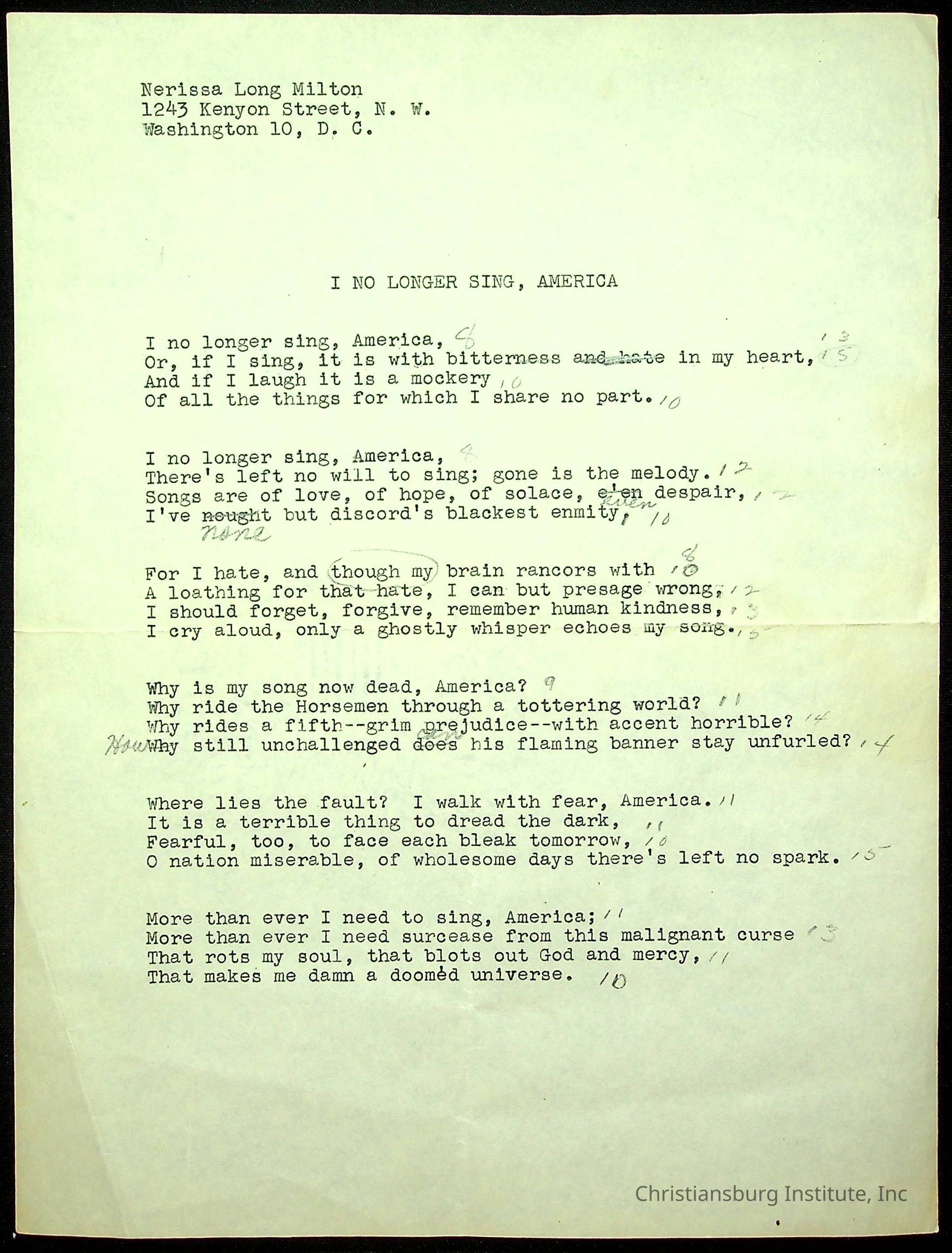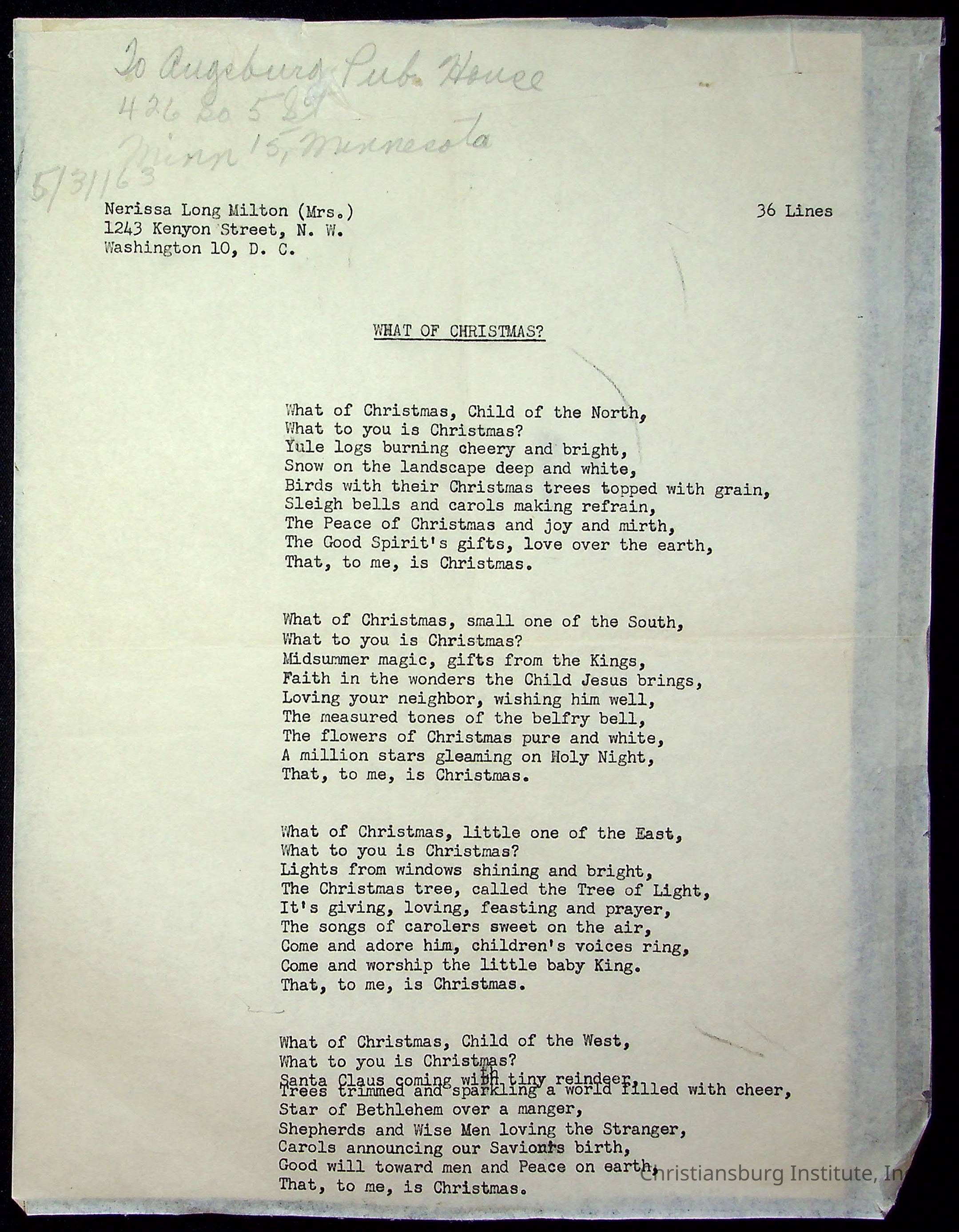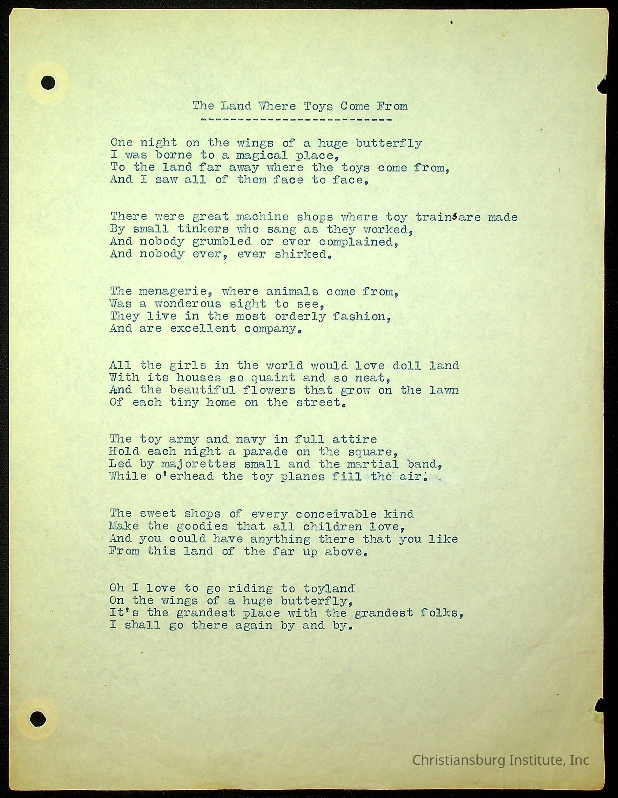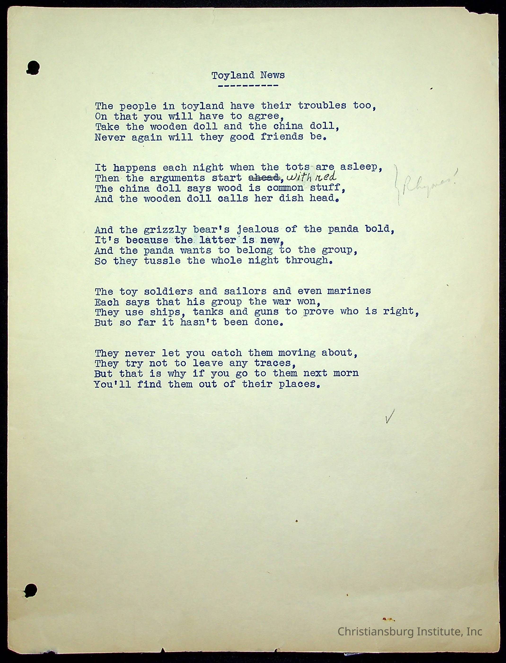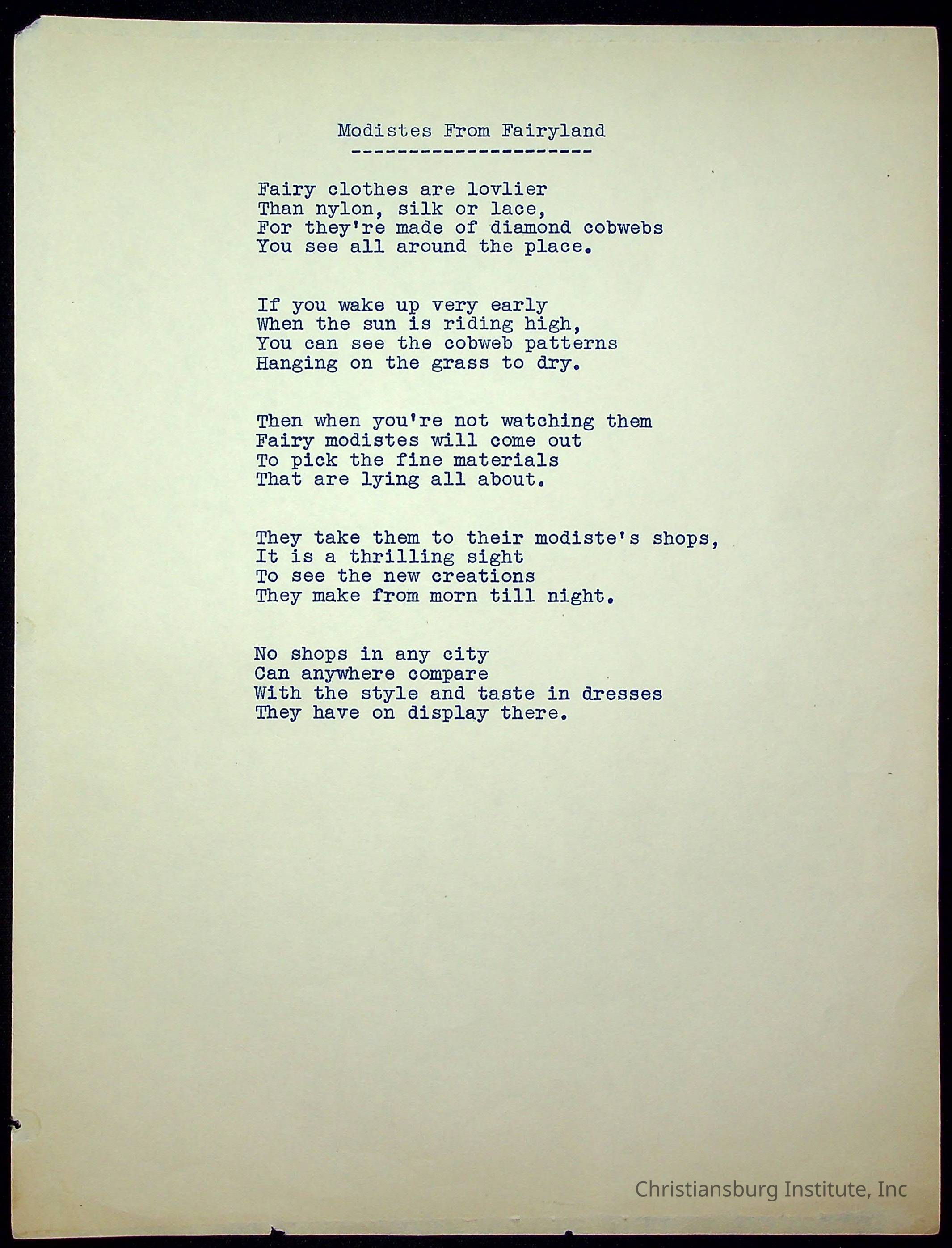 A copy of the "Poems for Children" written by Nerissa Long Milton dated July 31st, 1986.