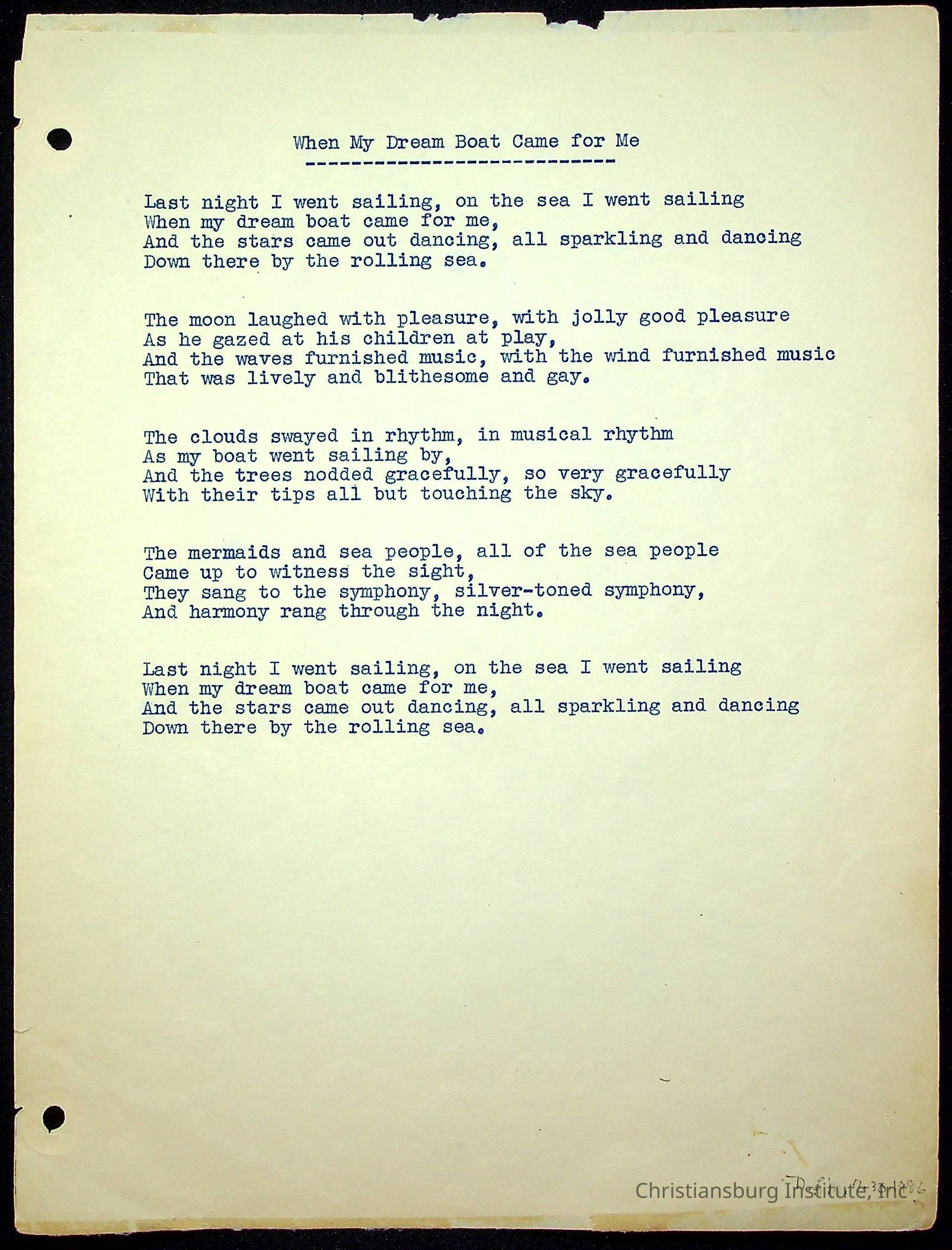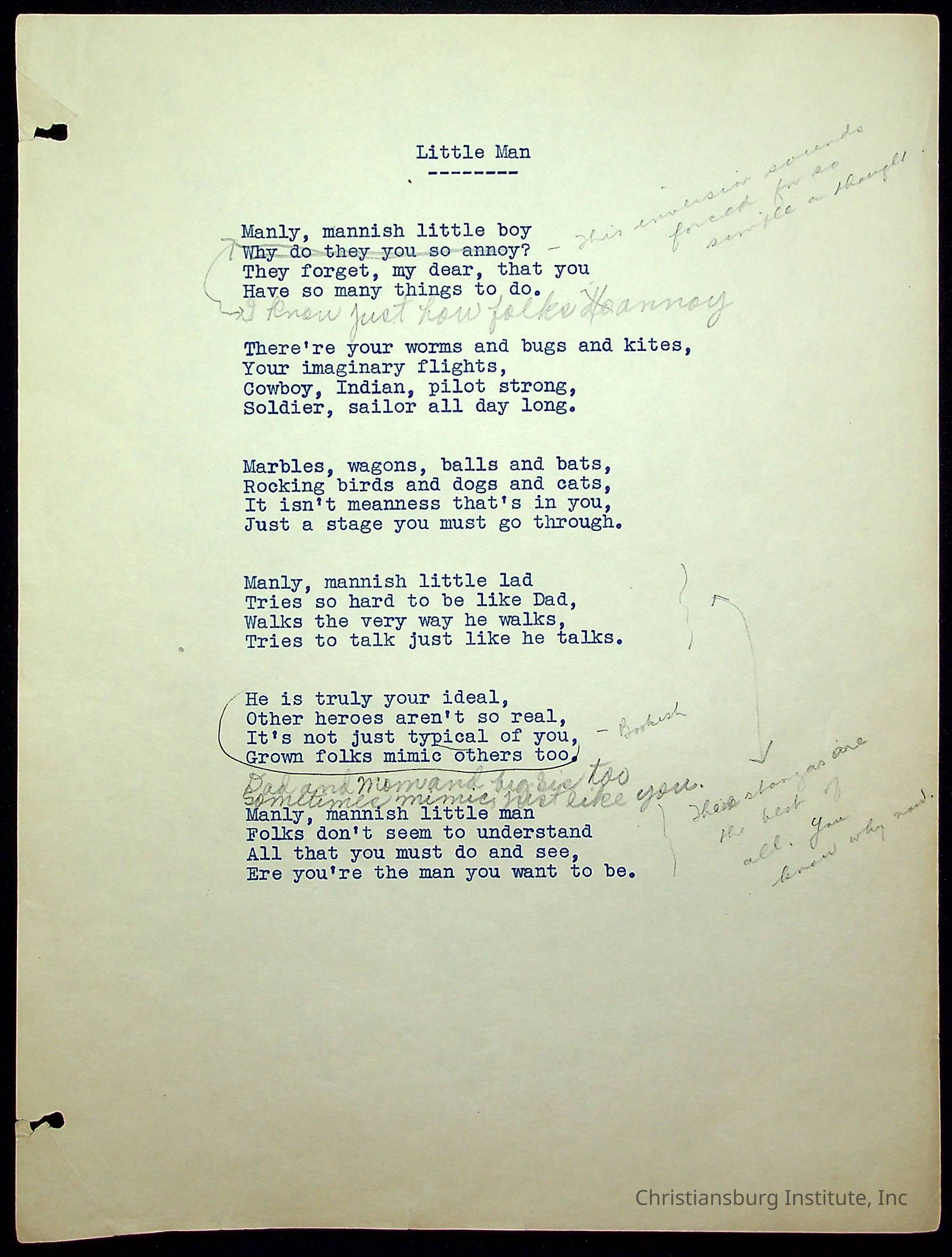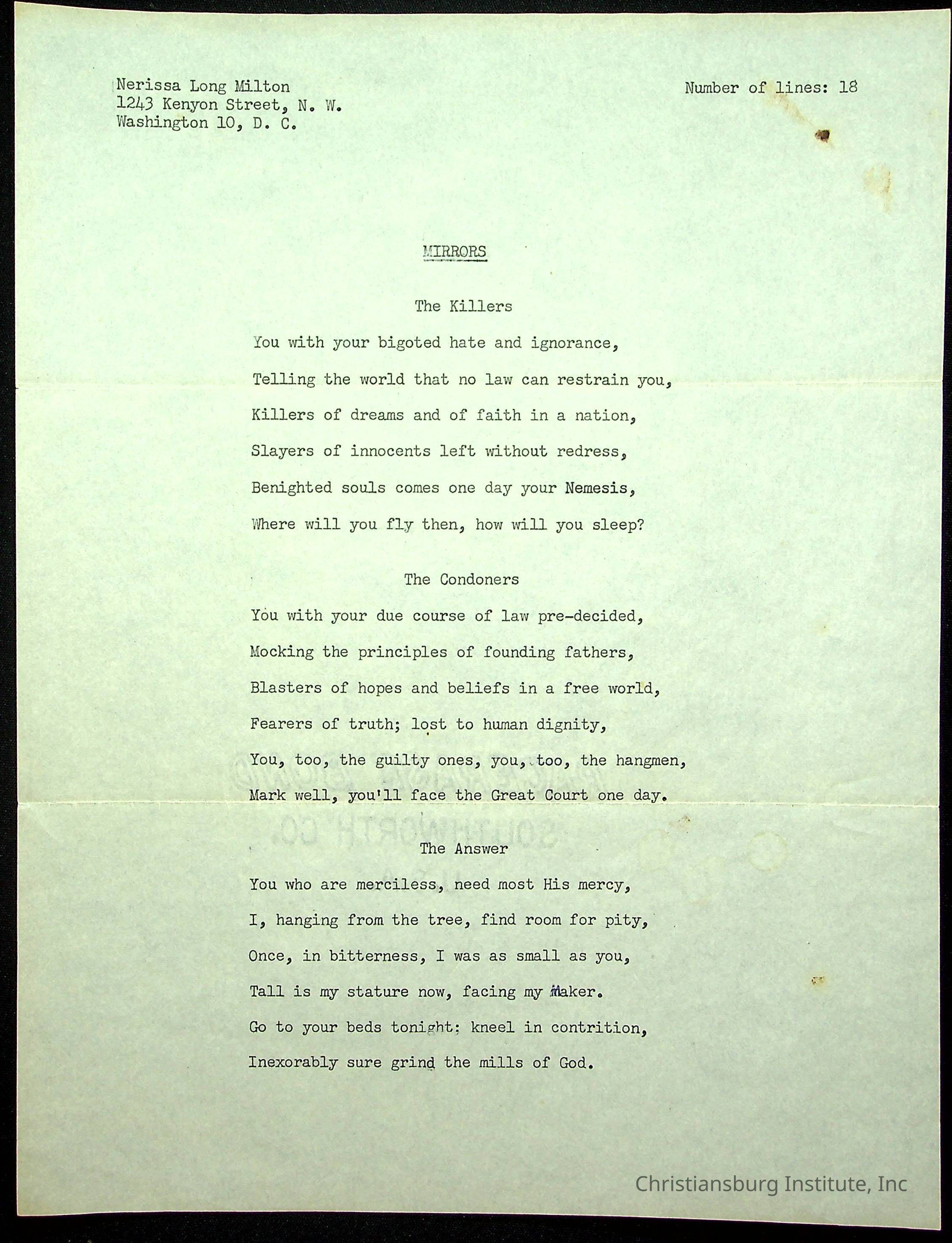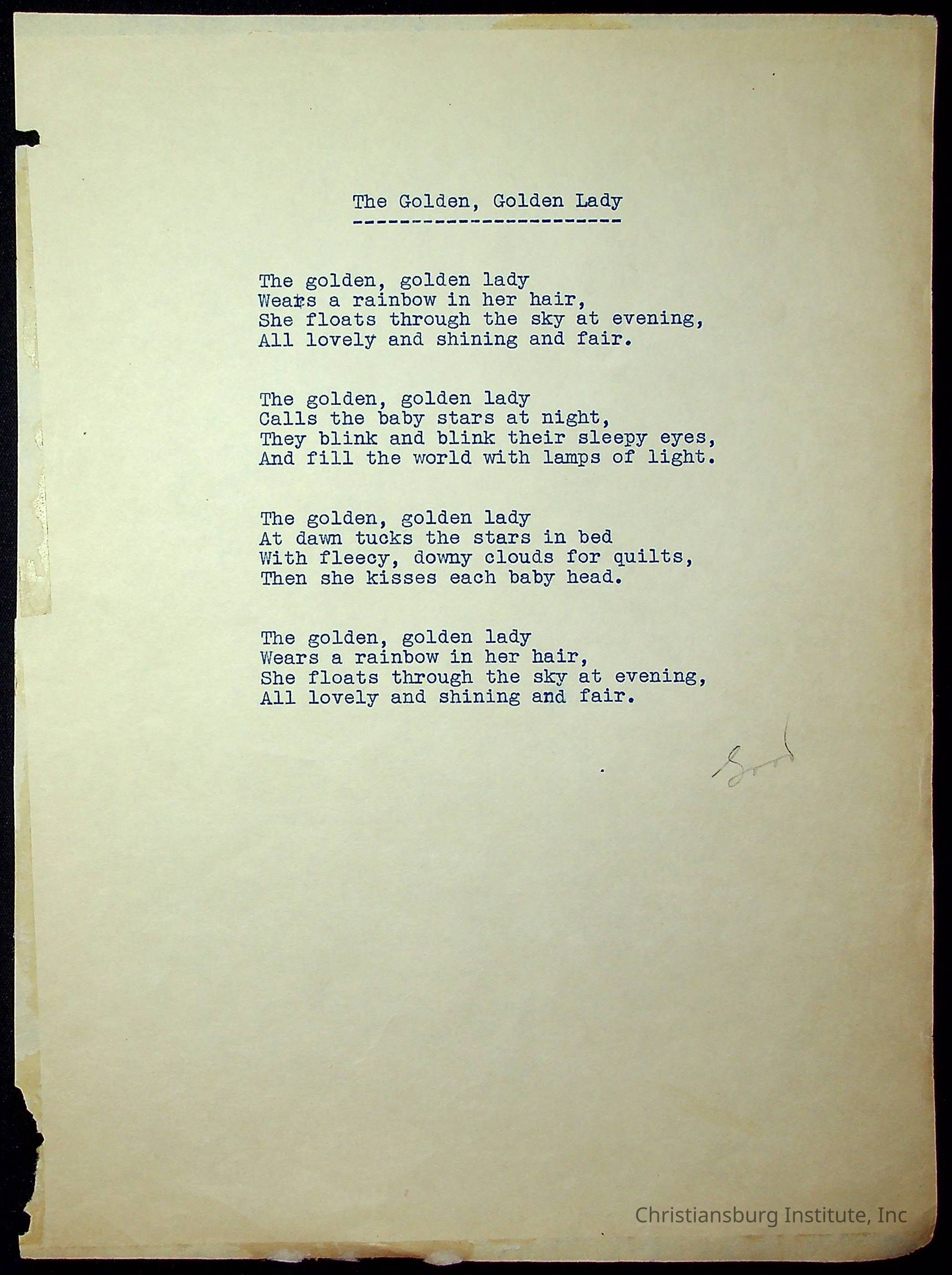 A copy of the "Poems for Children" written by Nerissa Long Milton dated July 31st, 1986.