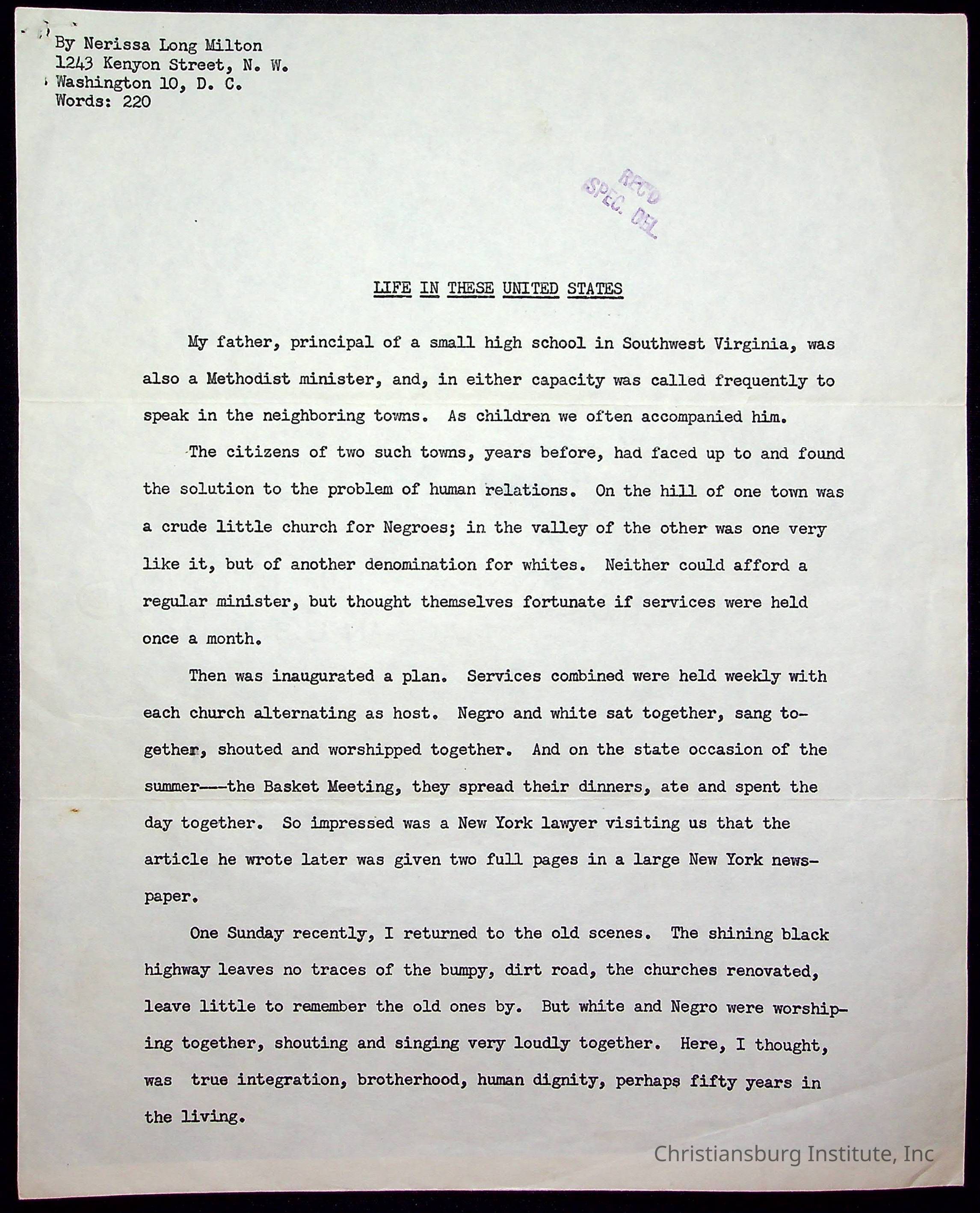 Christiansburg Institute Alumni Association, Milton, Nerissa Long