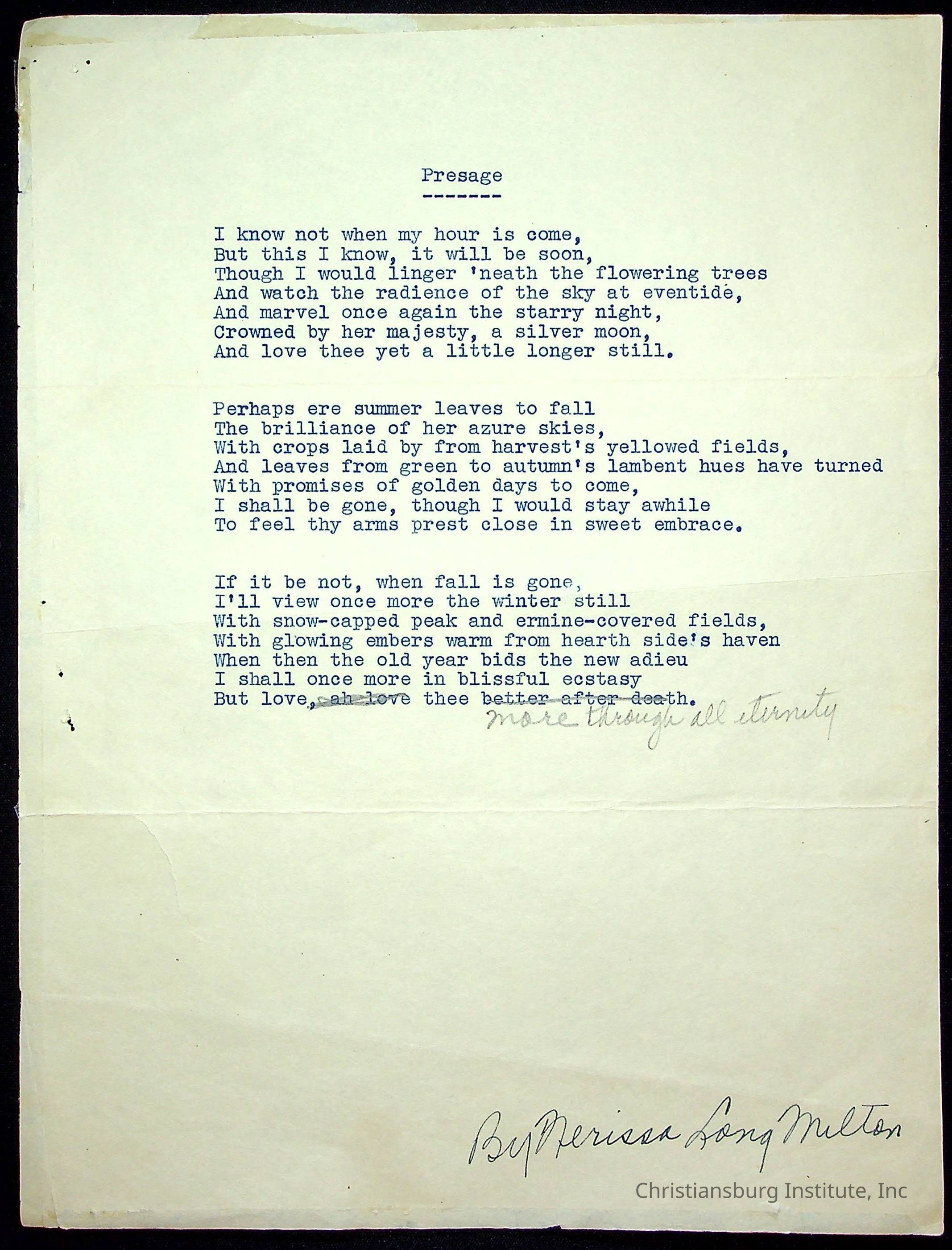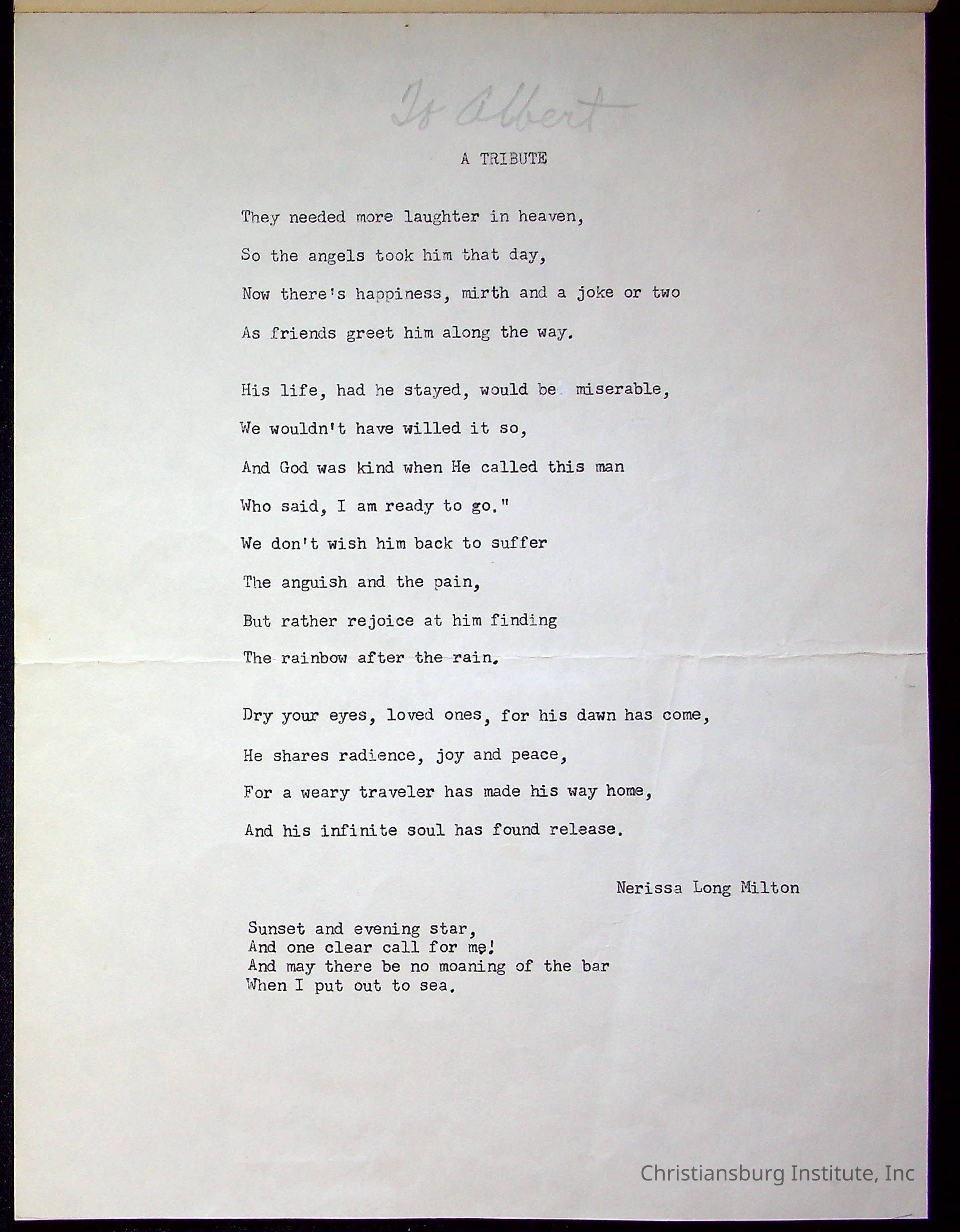 Milton, Nerissa Long