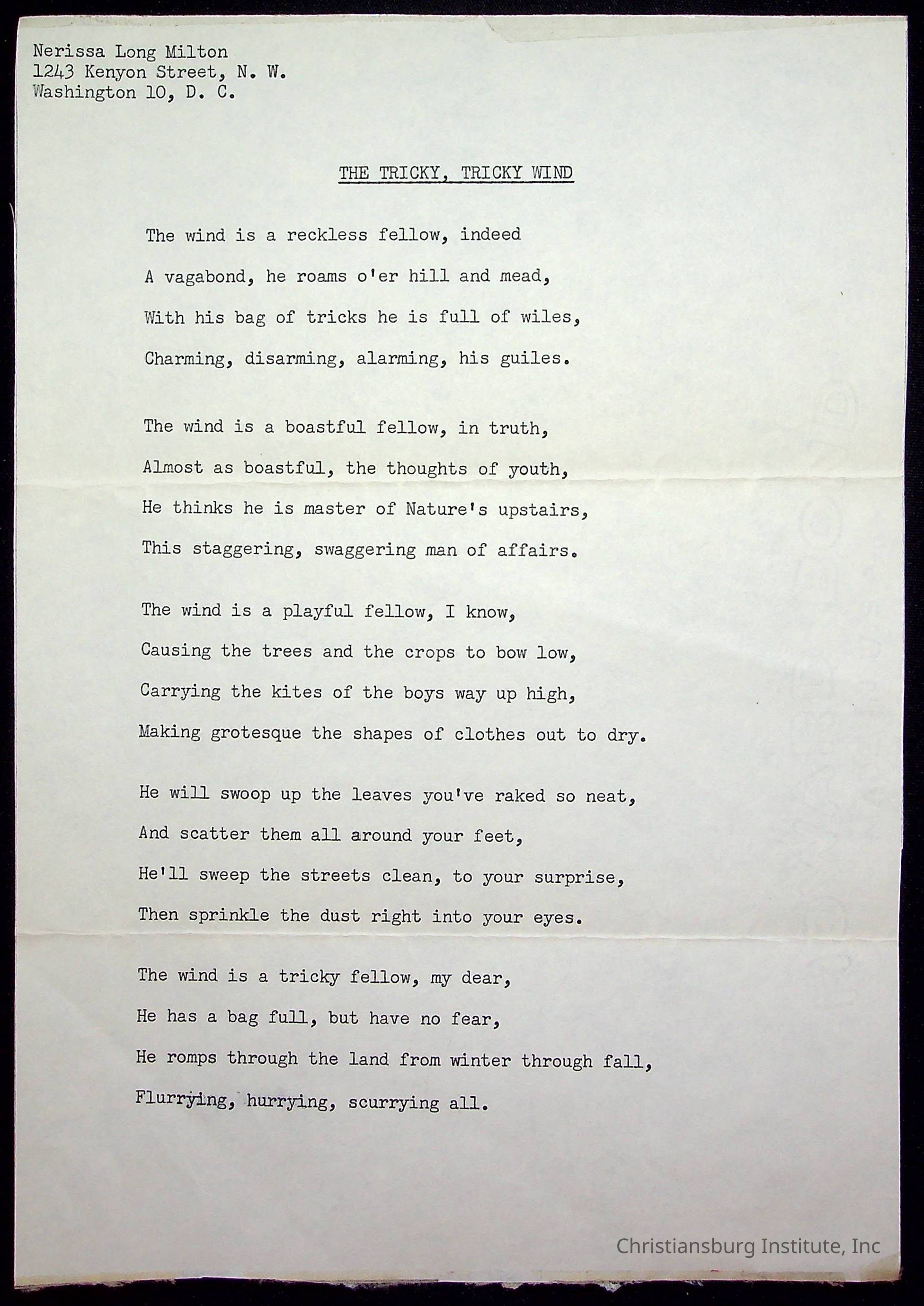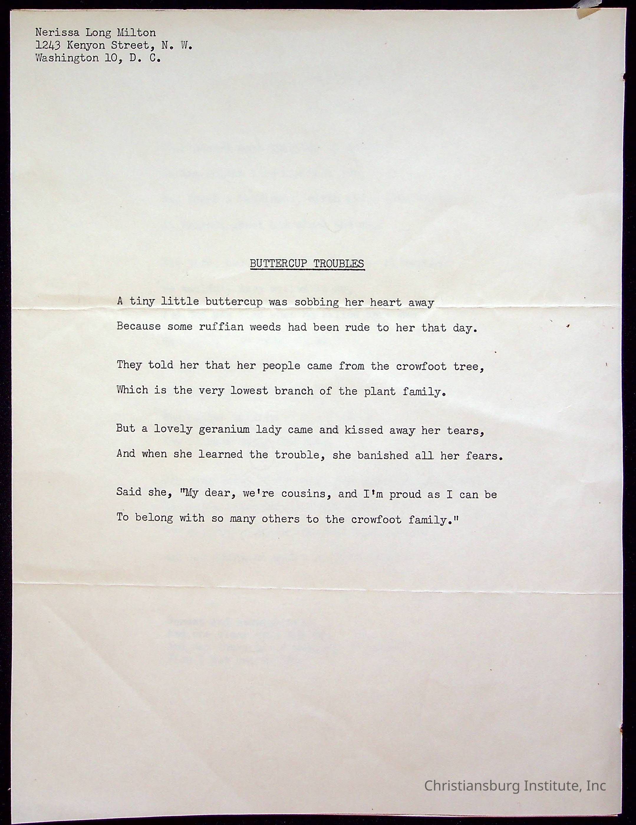 “Poems for Children,” by Nerissa Long Milton; 1986
